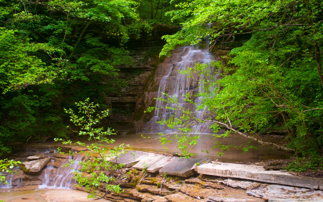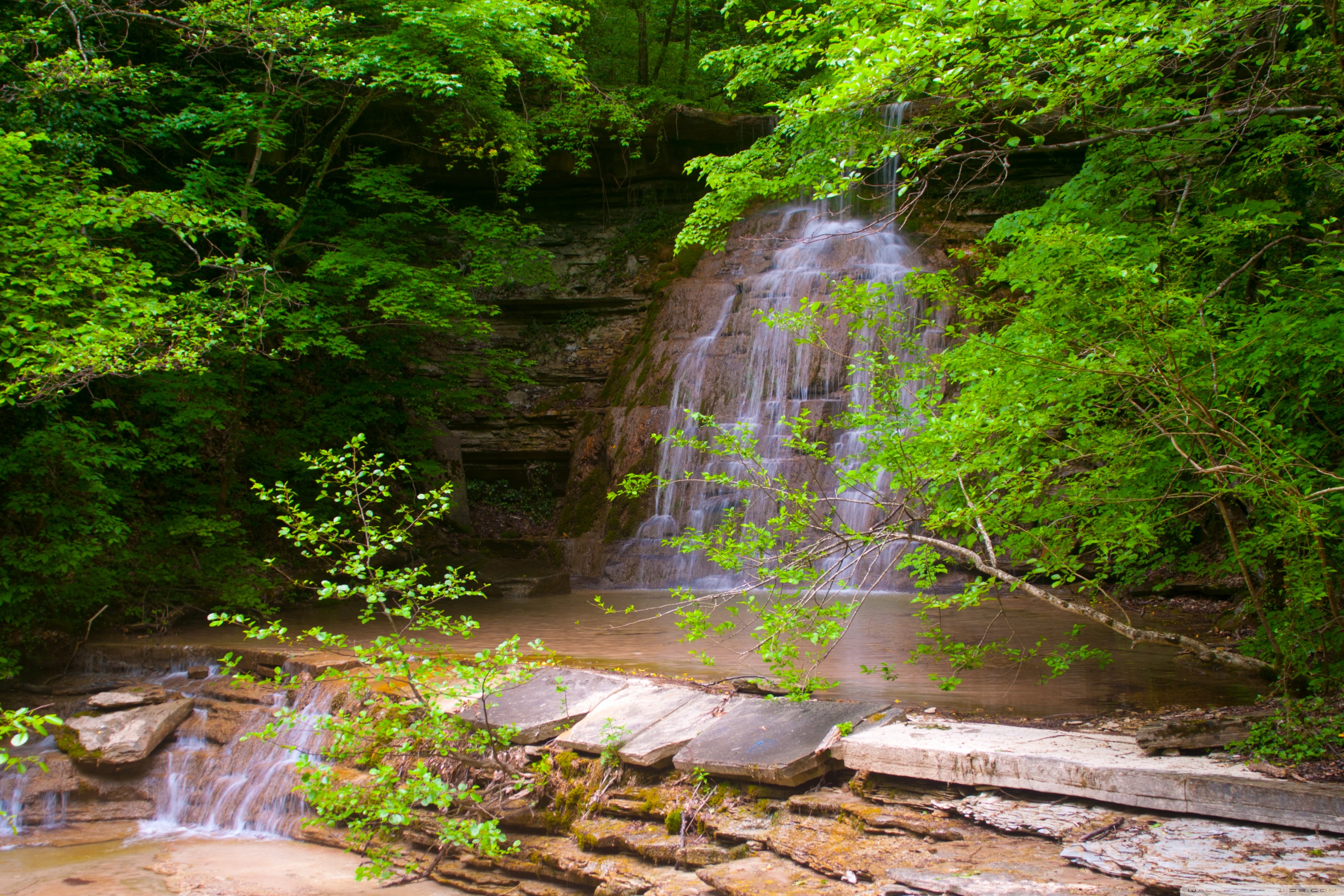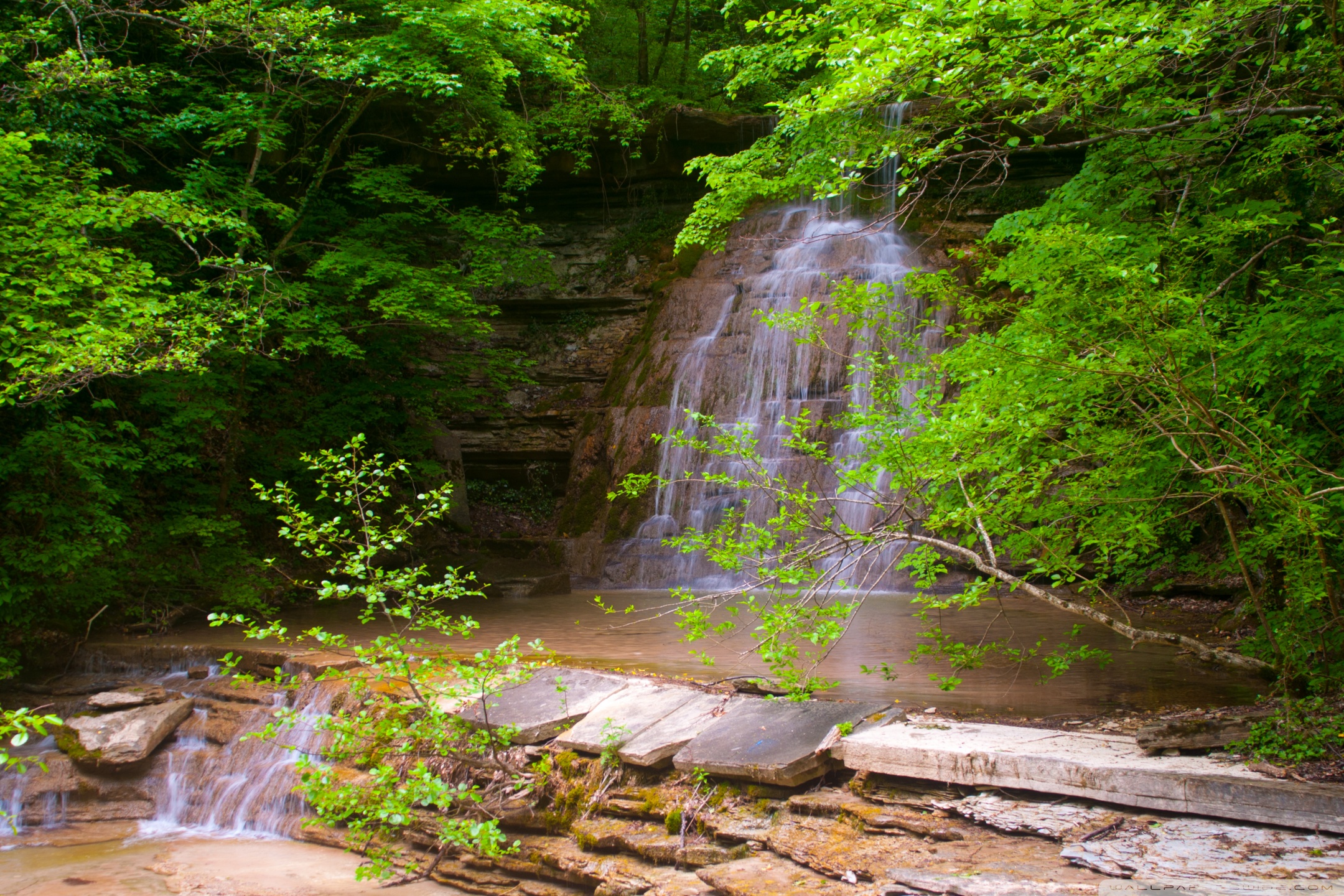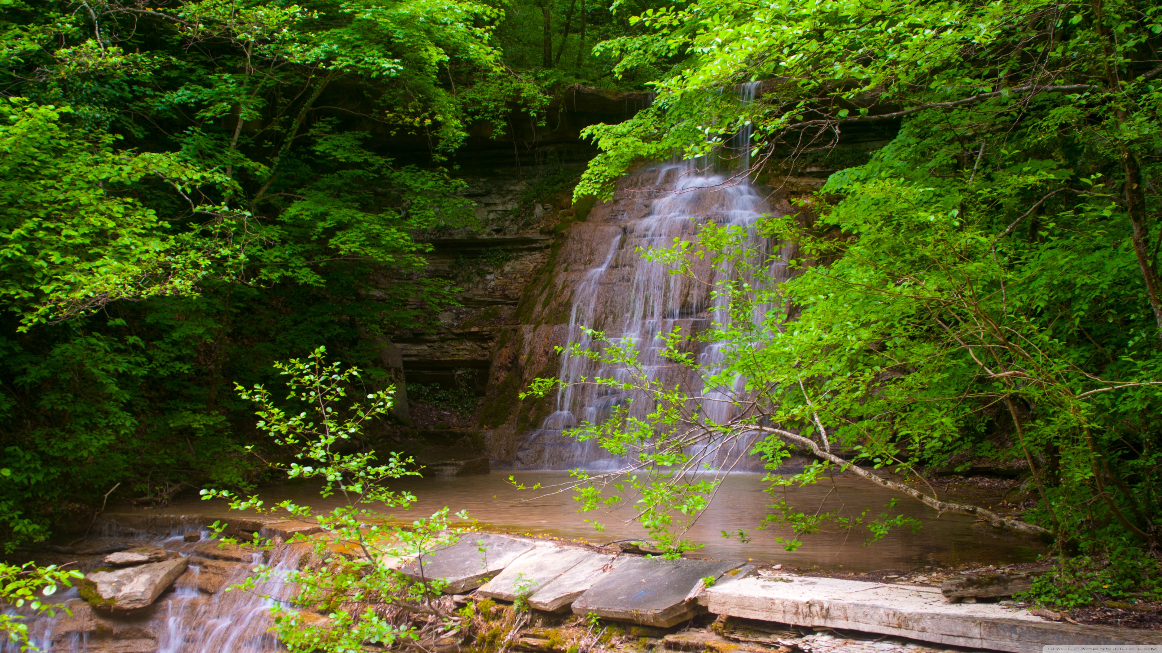 Download Hidden Waterfall Surrounded by Forest 4K UHD Wallpaper