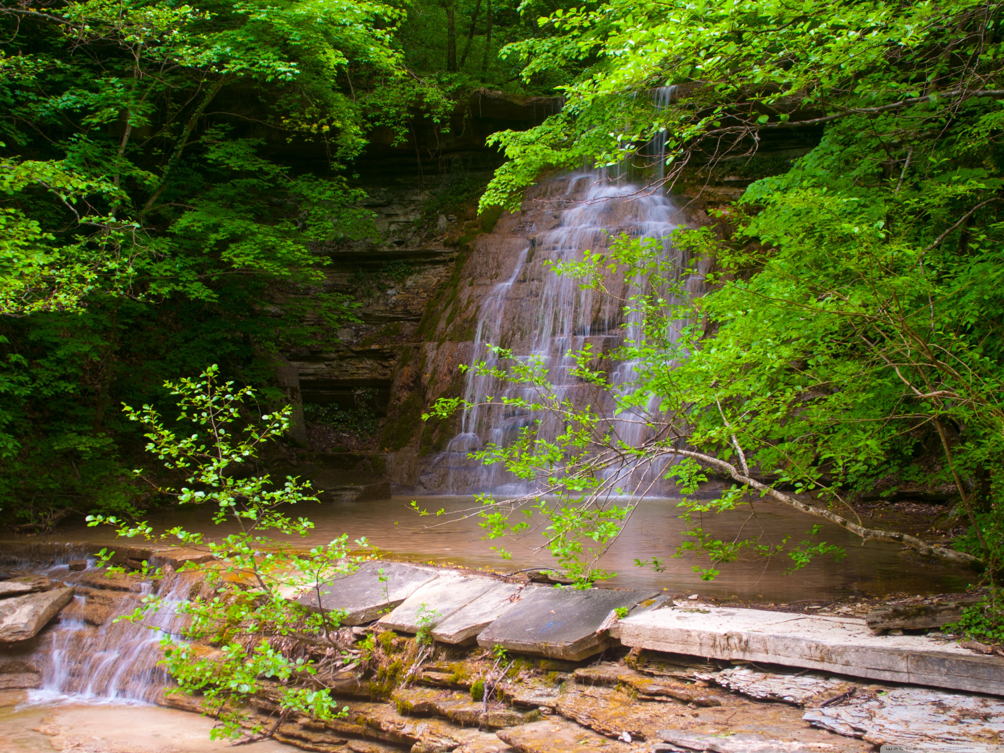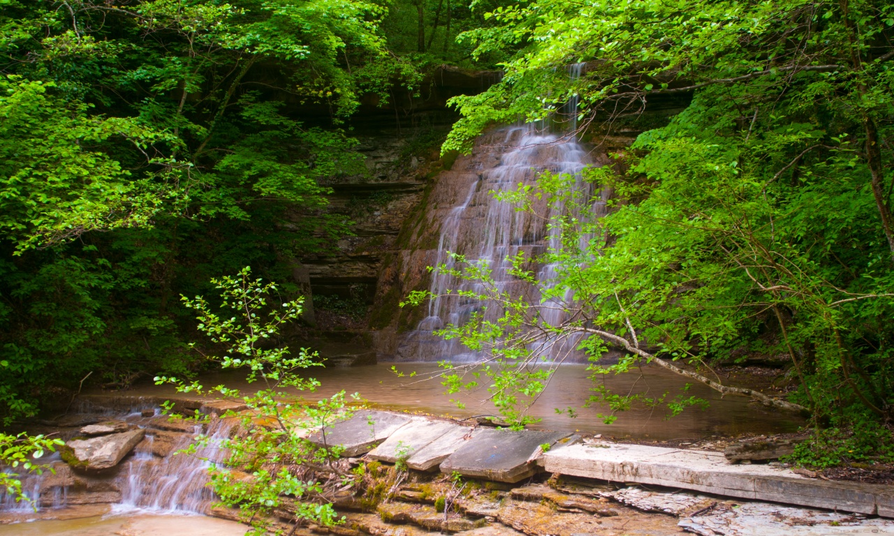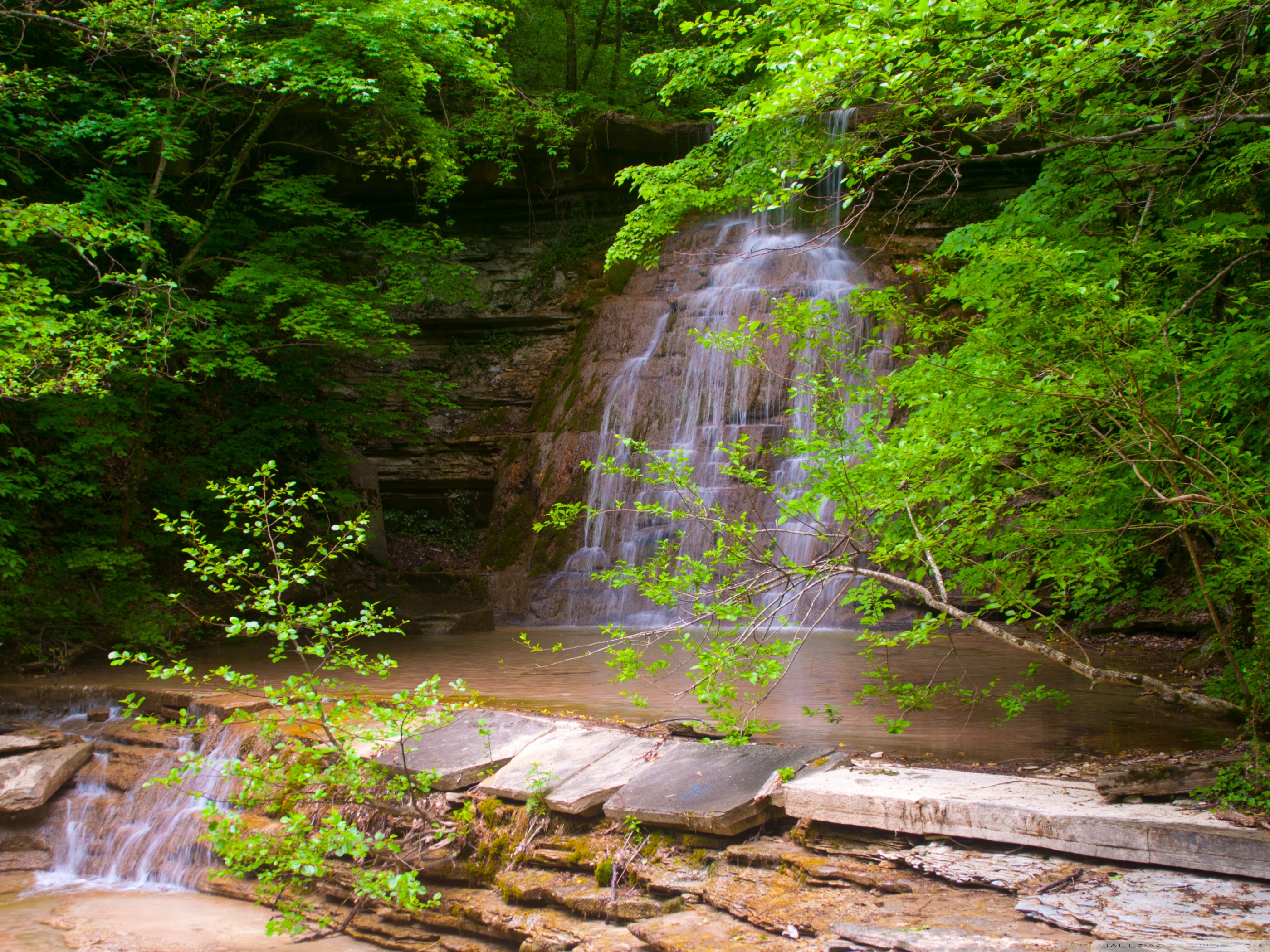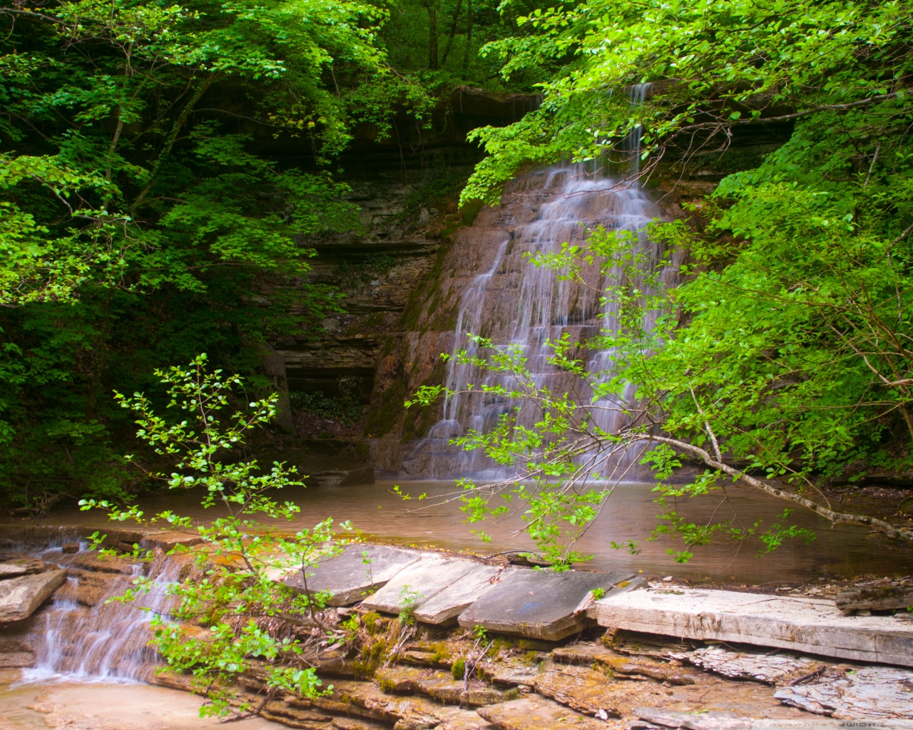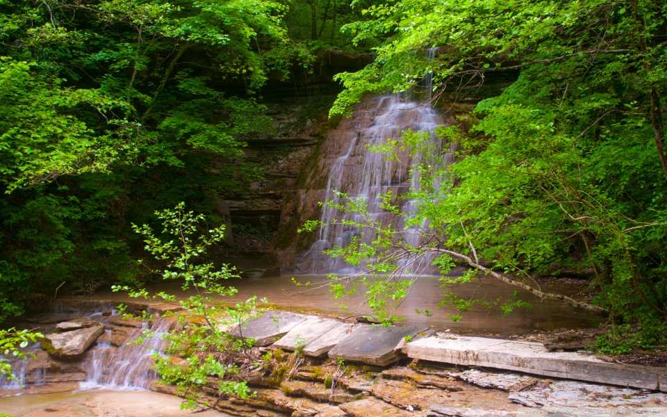 Download Hidden Waterfall Surrounded by Forest 4K UHD Wallpaper