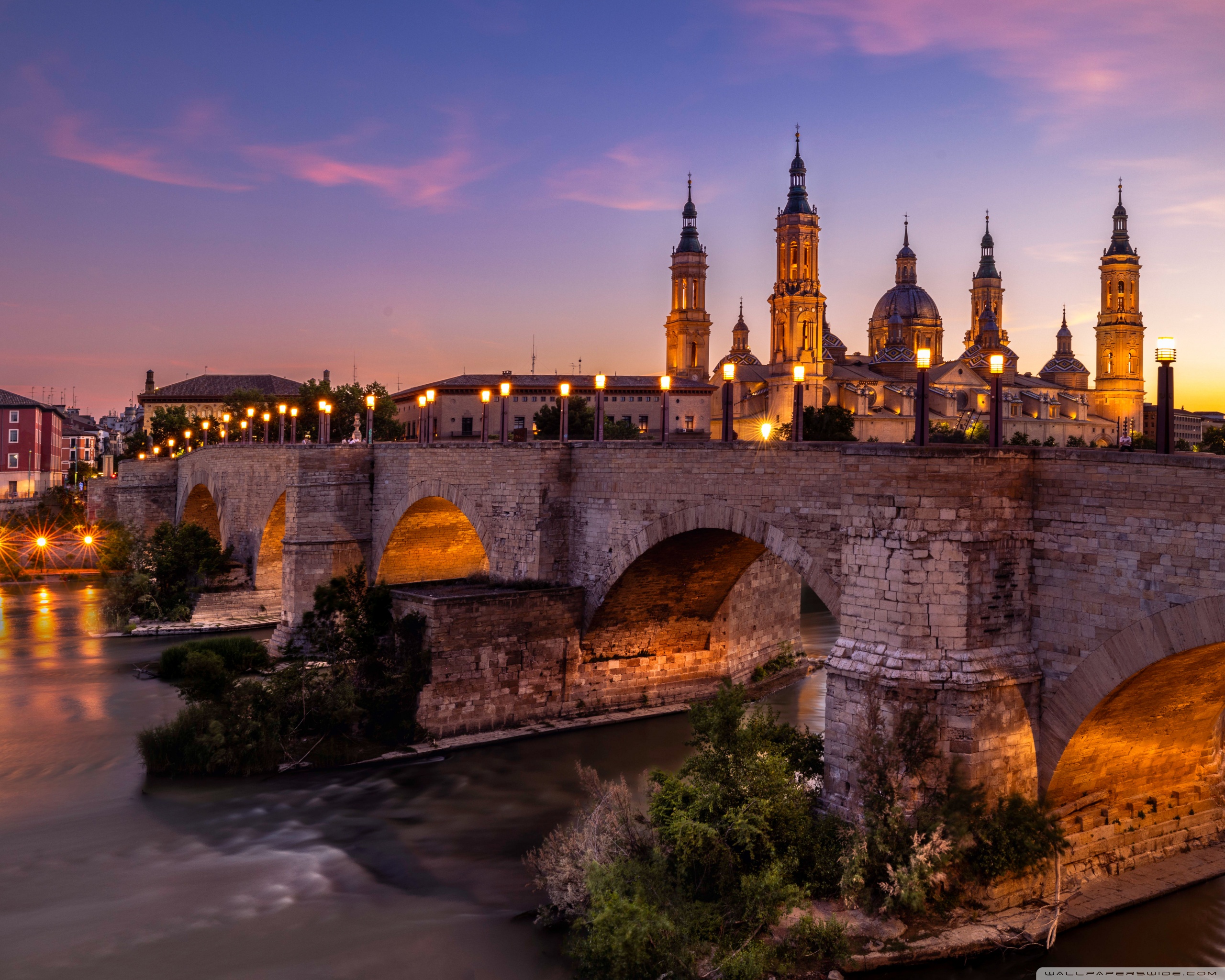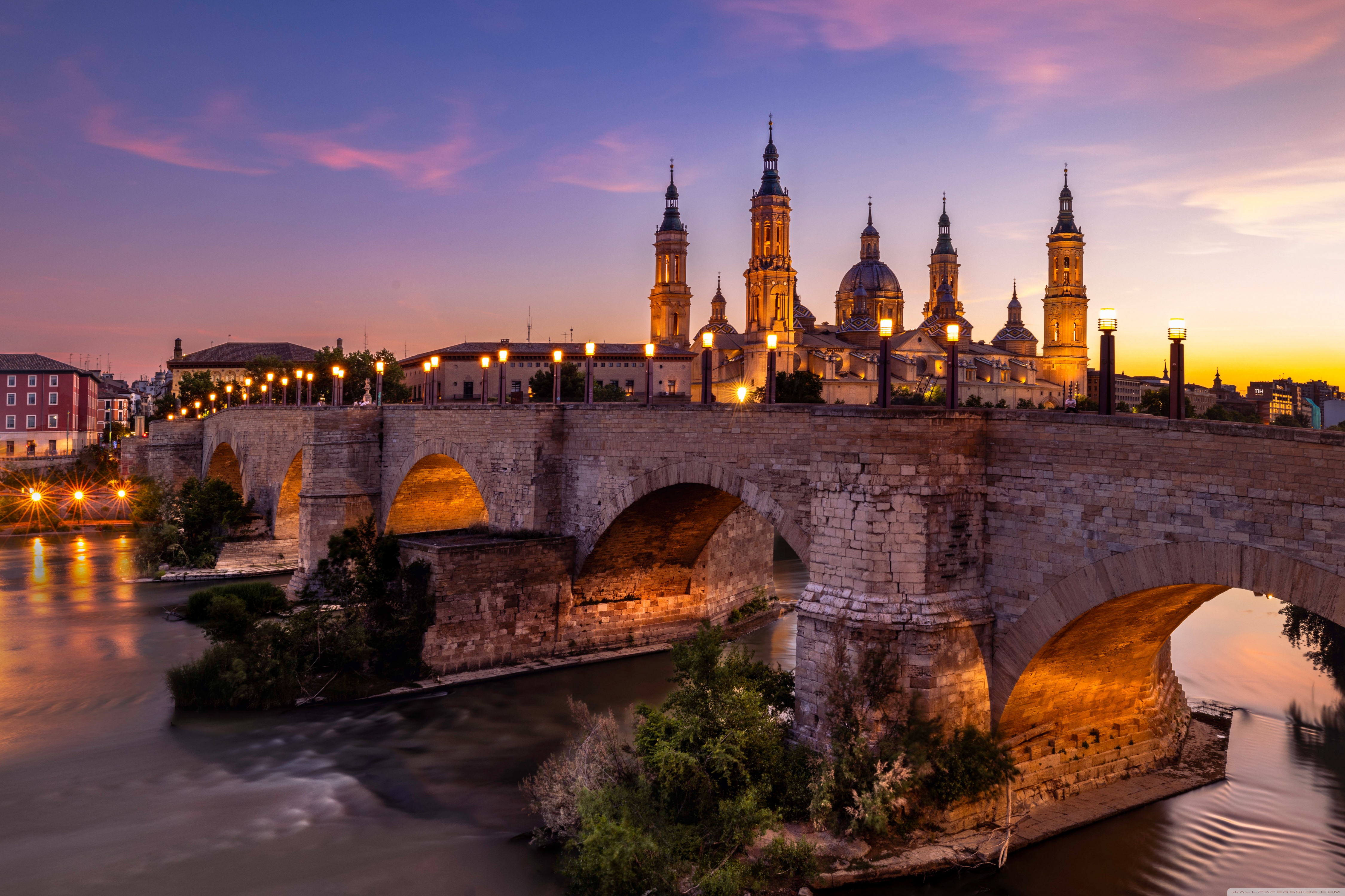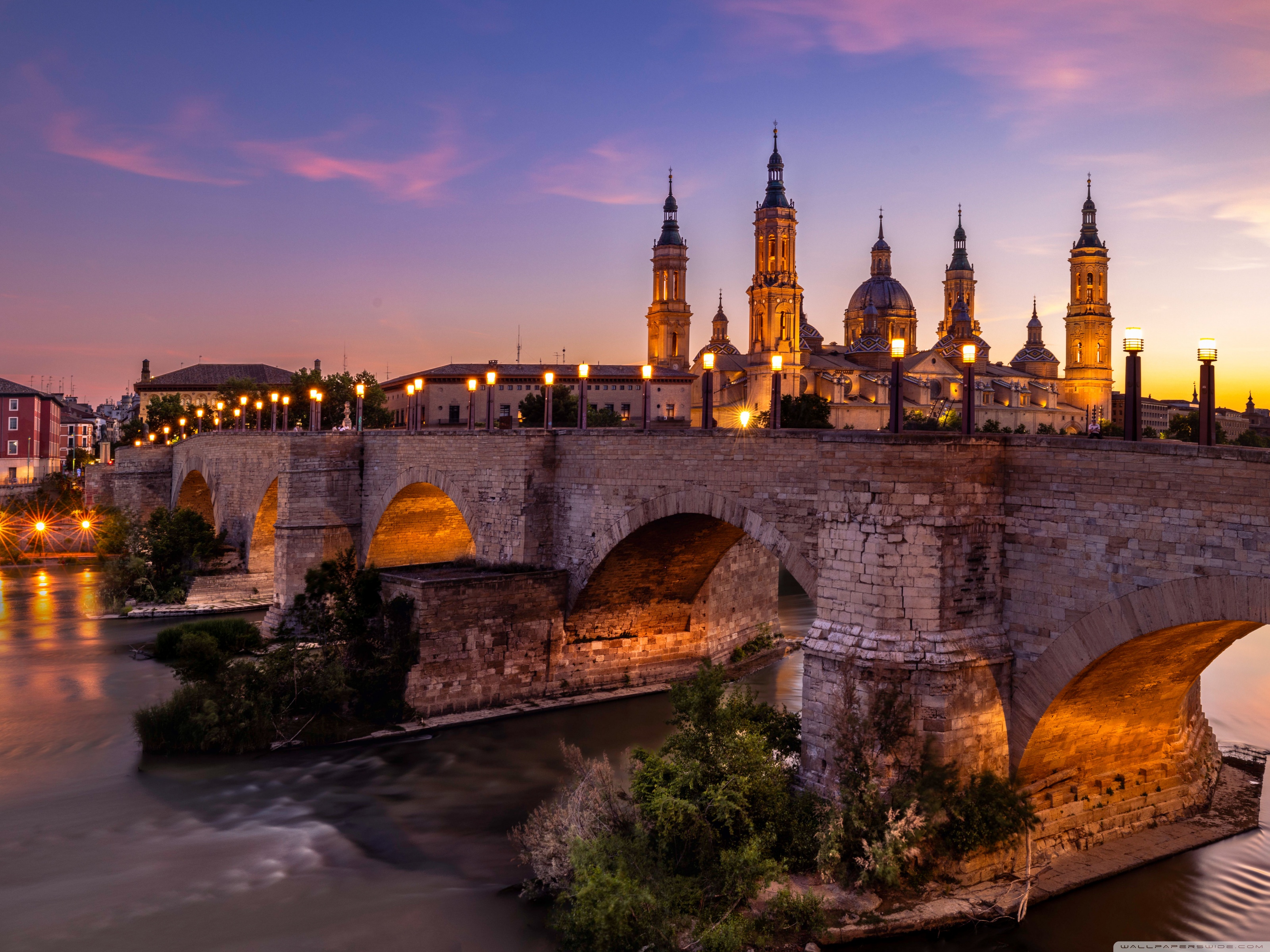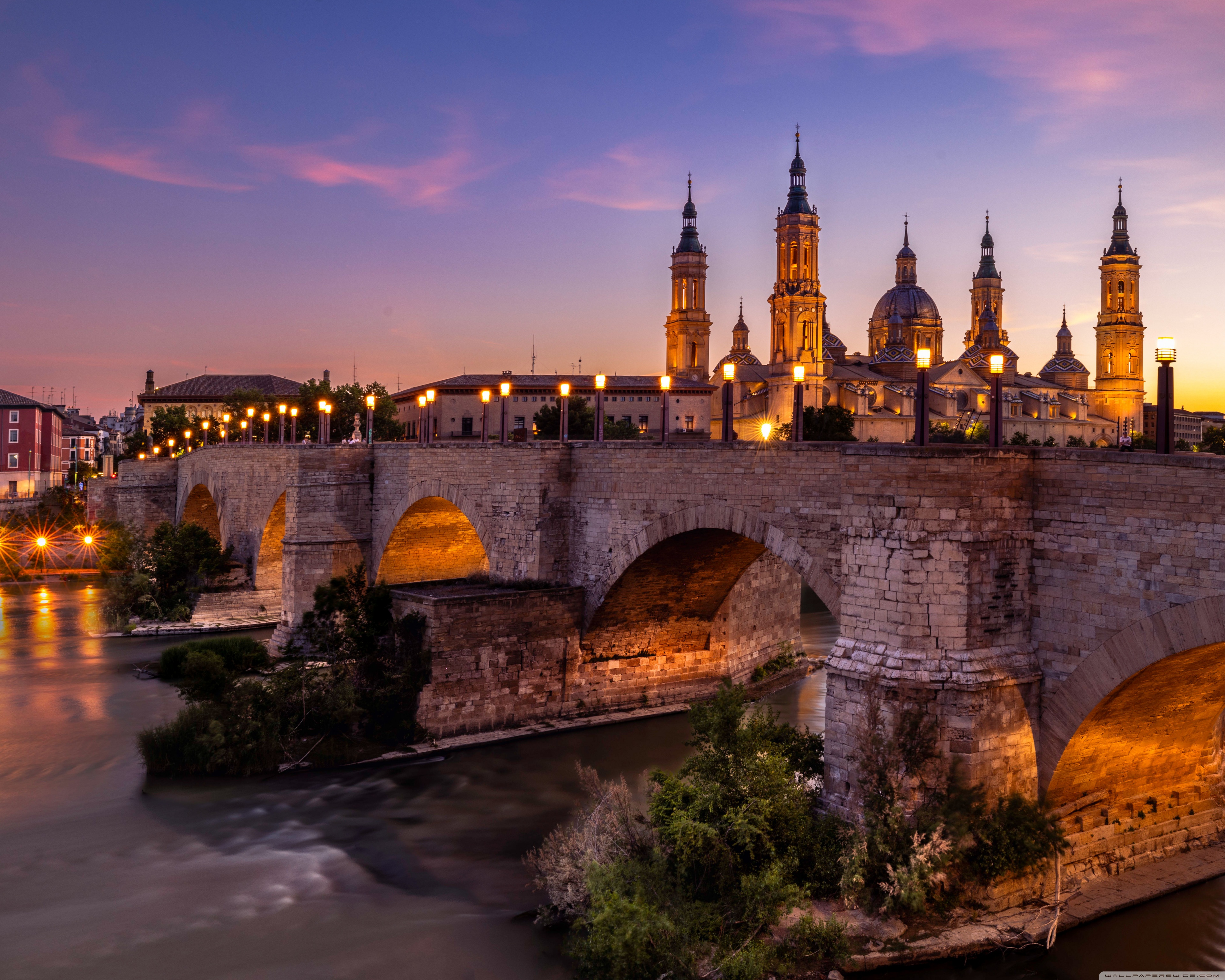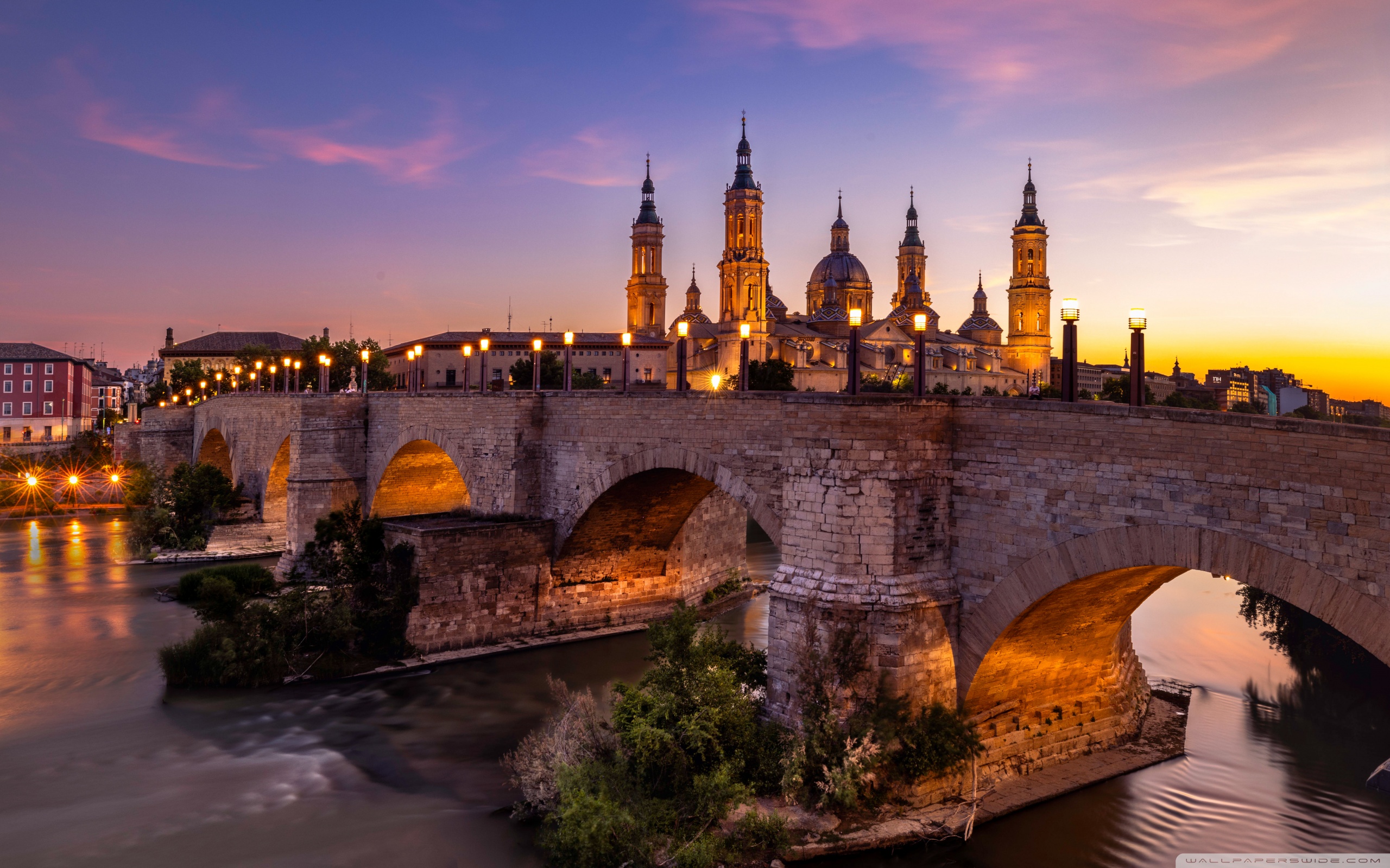Download Historic Stone Bridge Over the River at Dusk 4K UHD Wallpaper