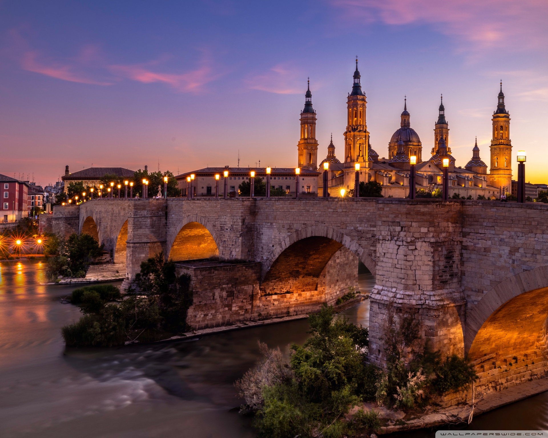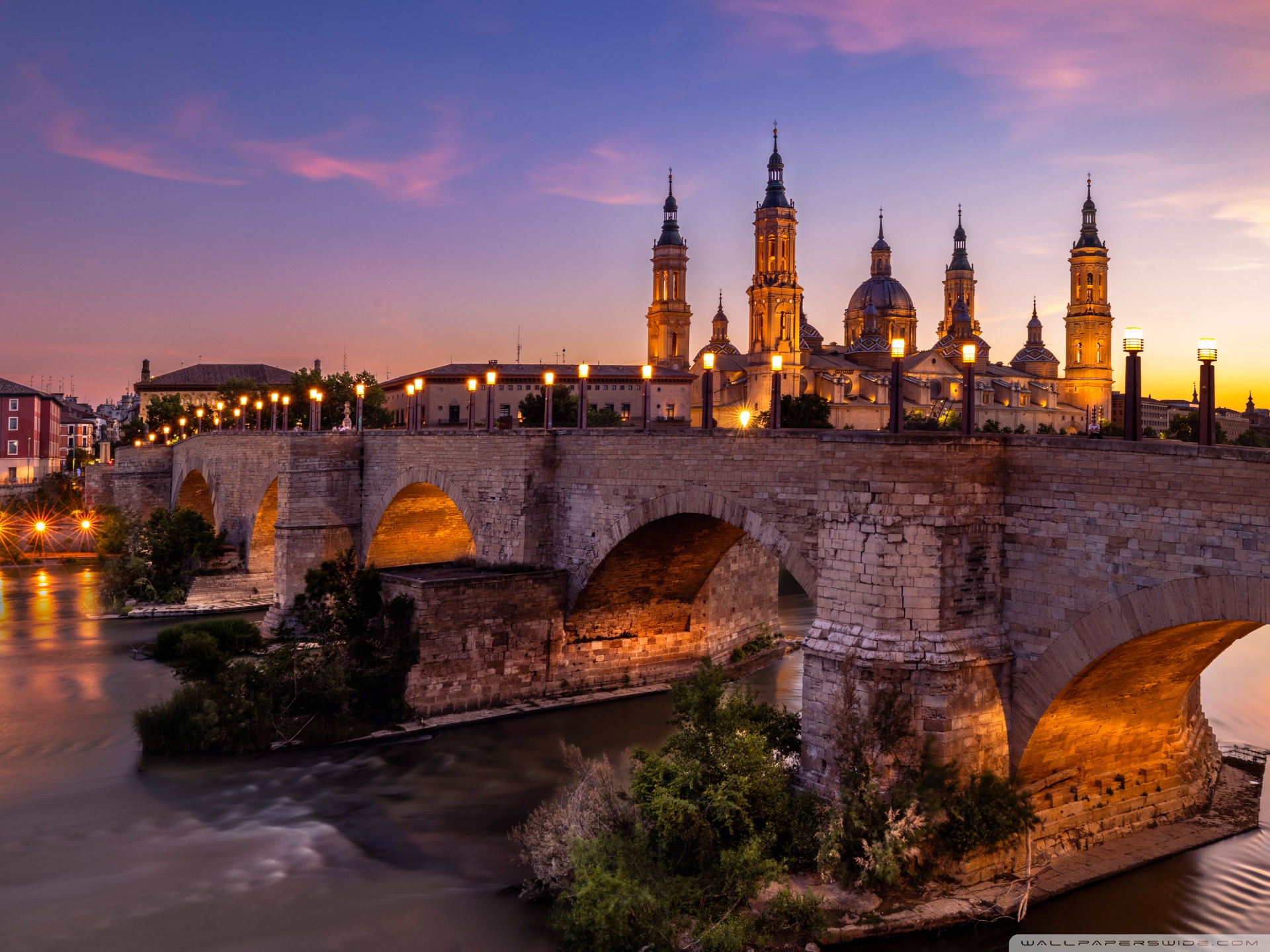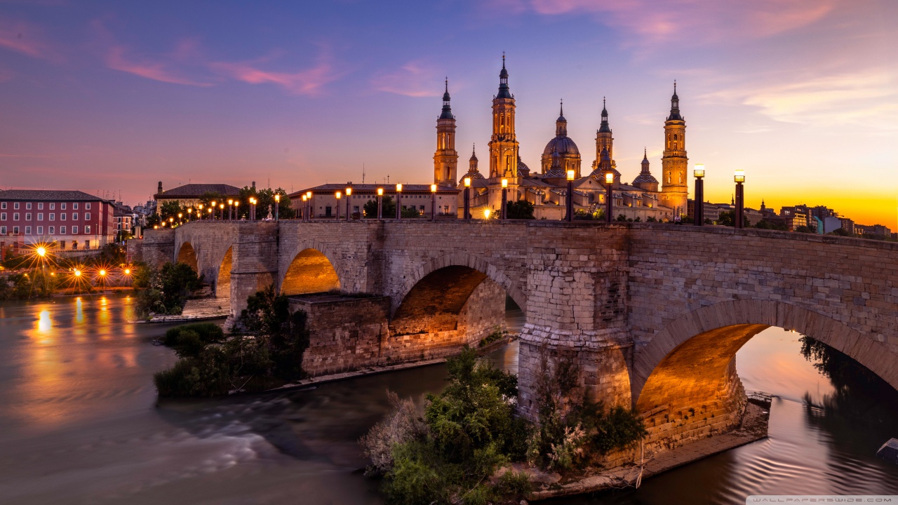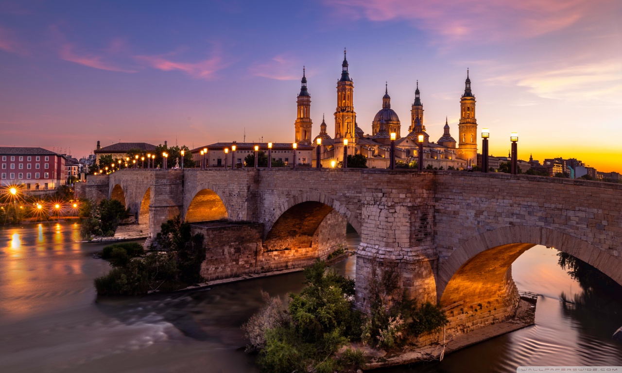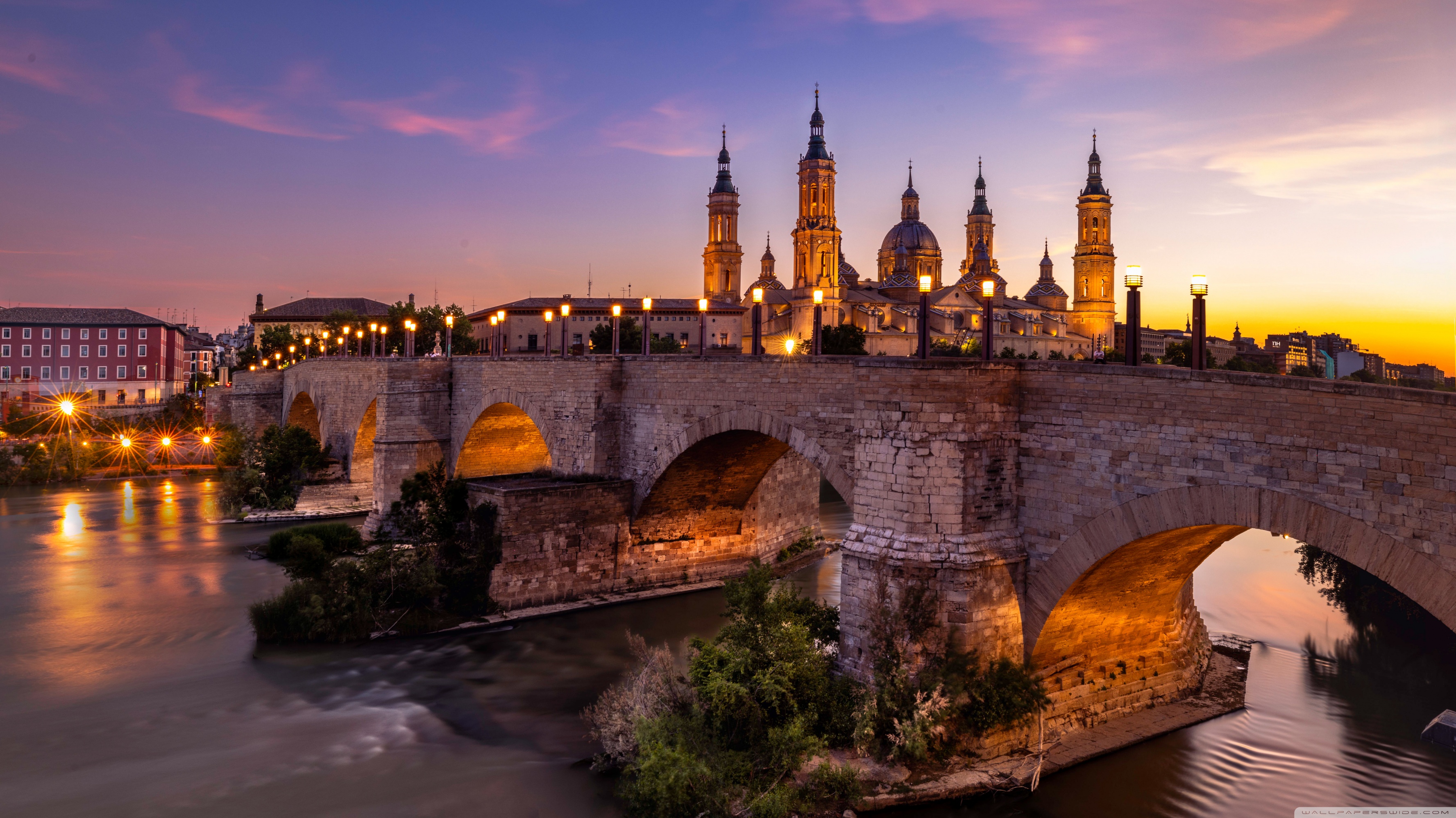 Download Historic Stone Bridge Over the River at Dusk 4K UHD Wallpaper