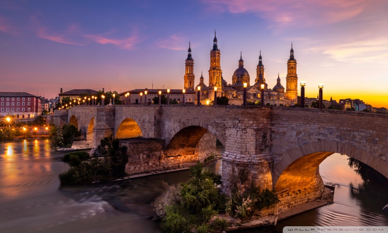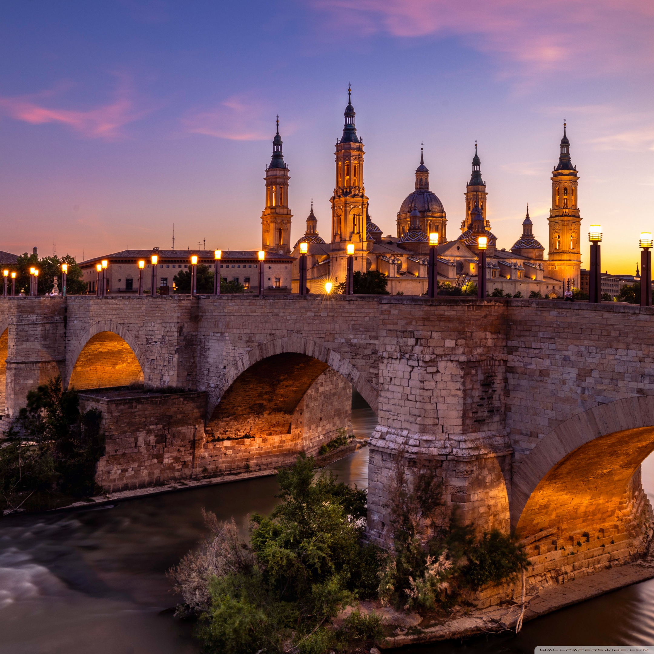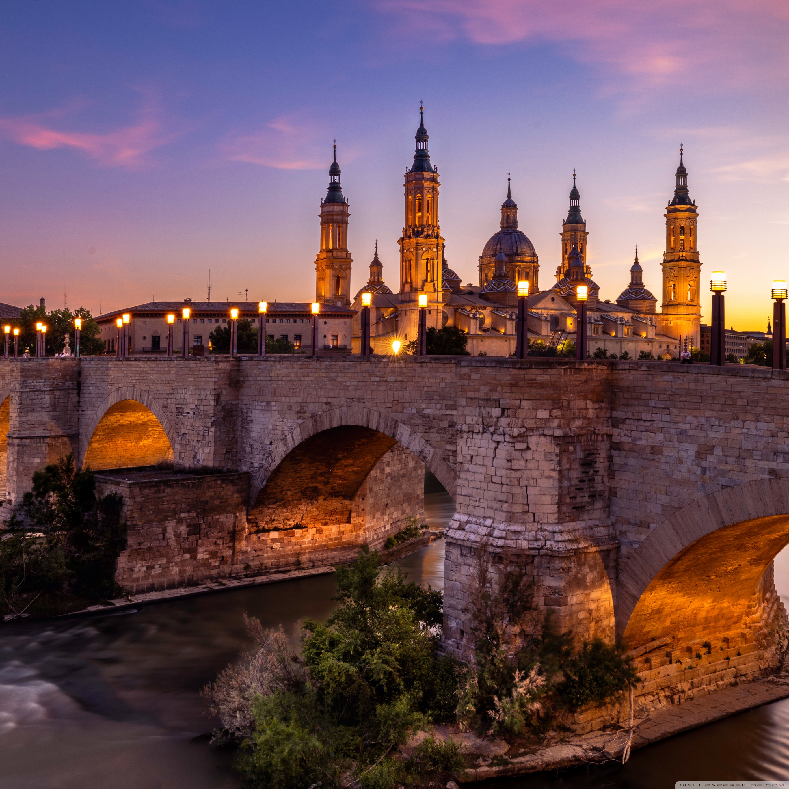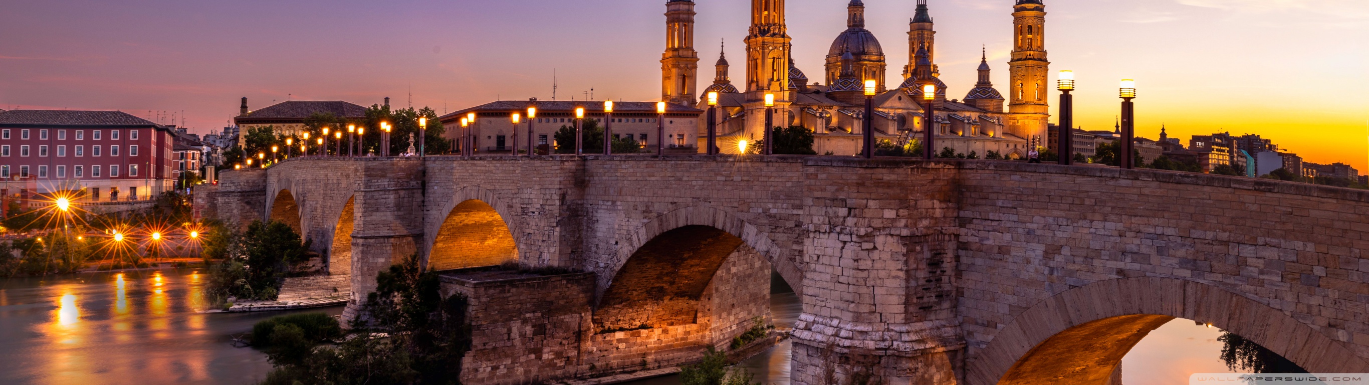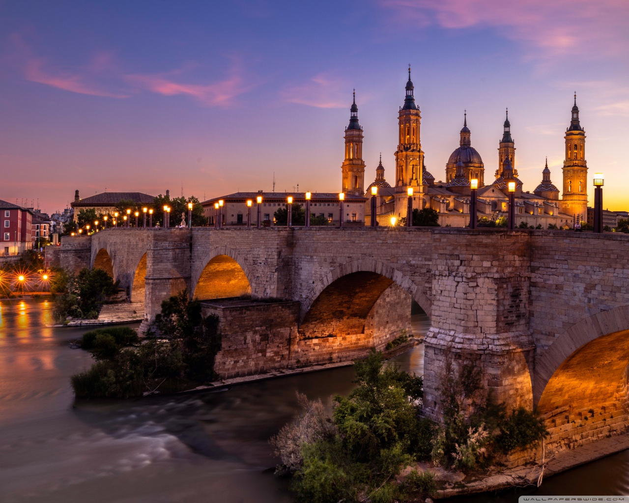 Download Historic Stone Bridge Over the River at Dusk 4K UHD Wallpaper