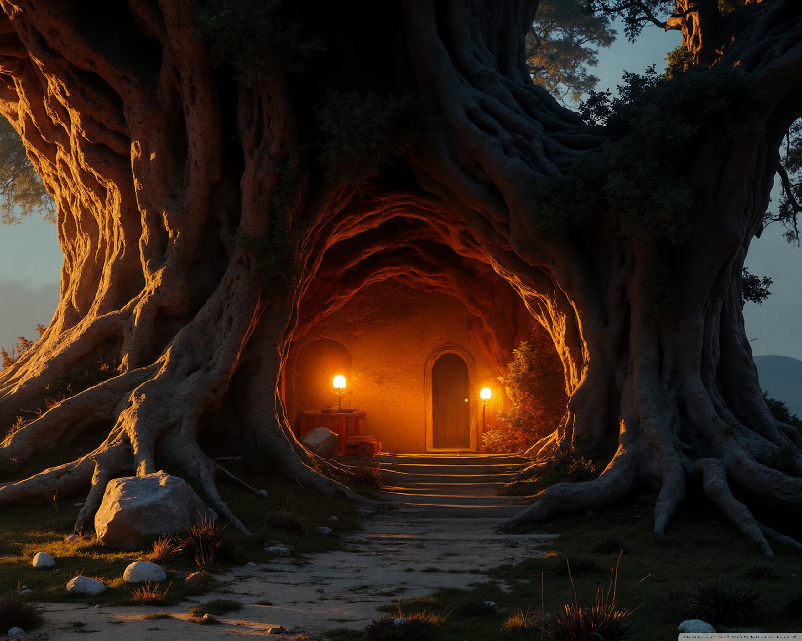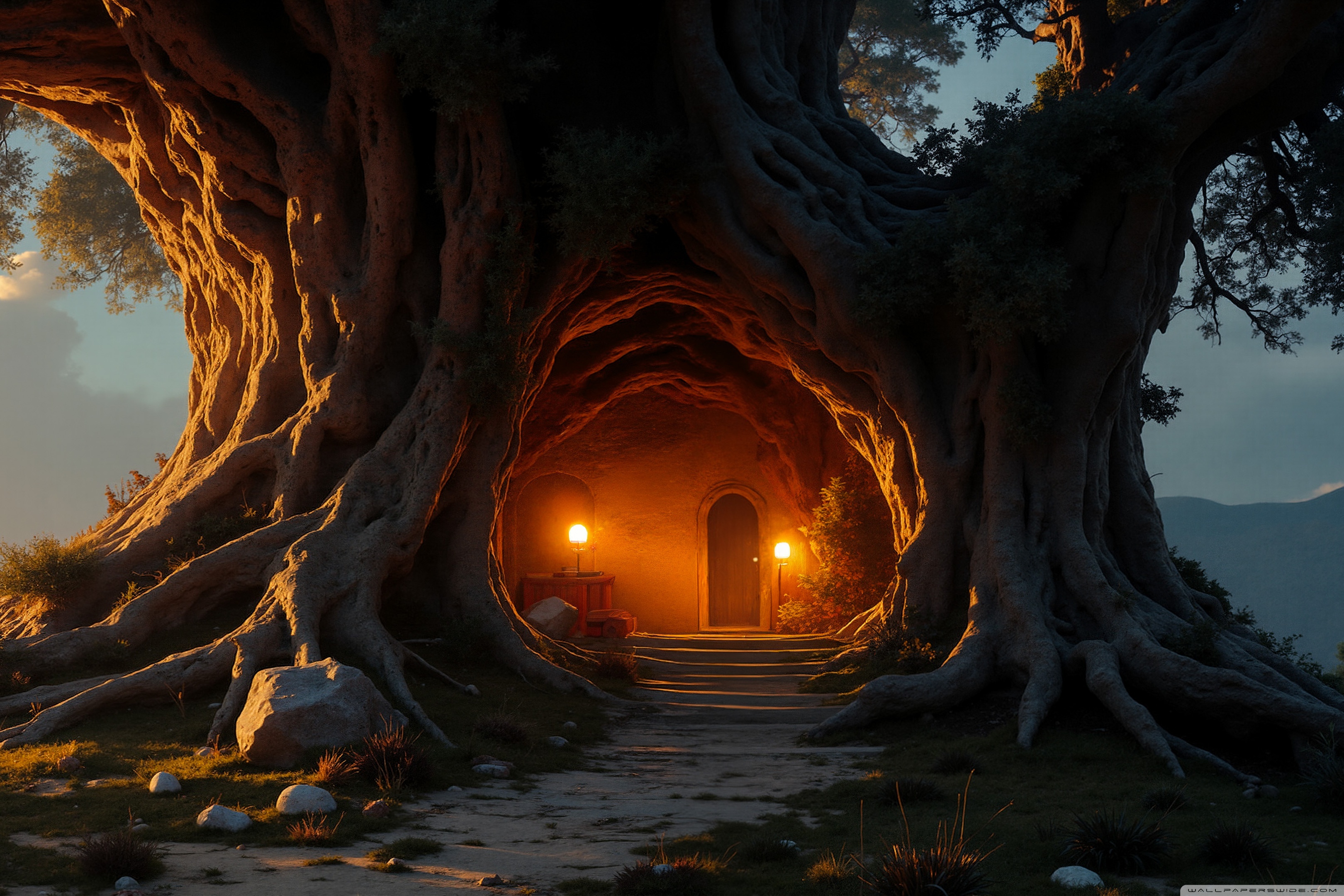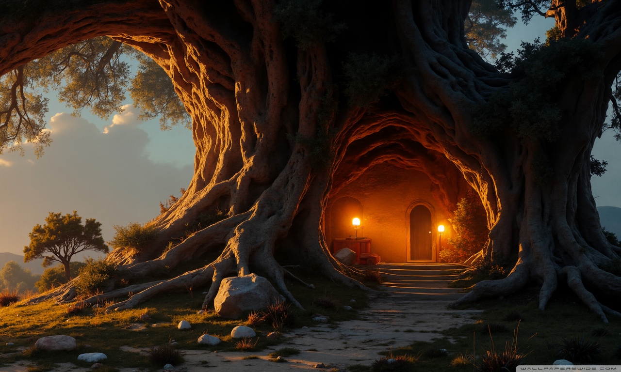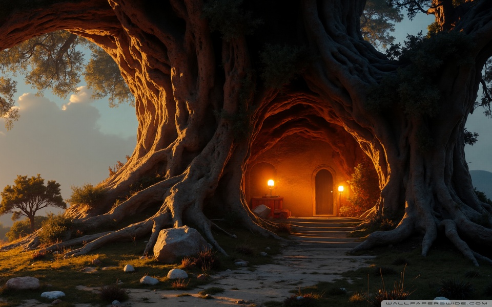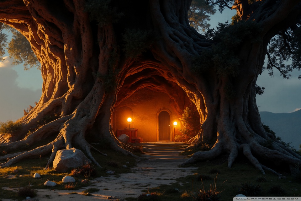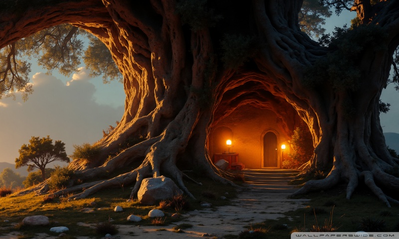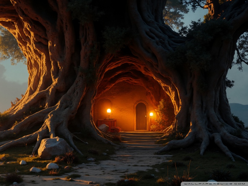 Download House in an Old Tree 4K UHD Wallpaper
