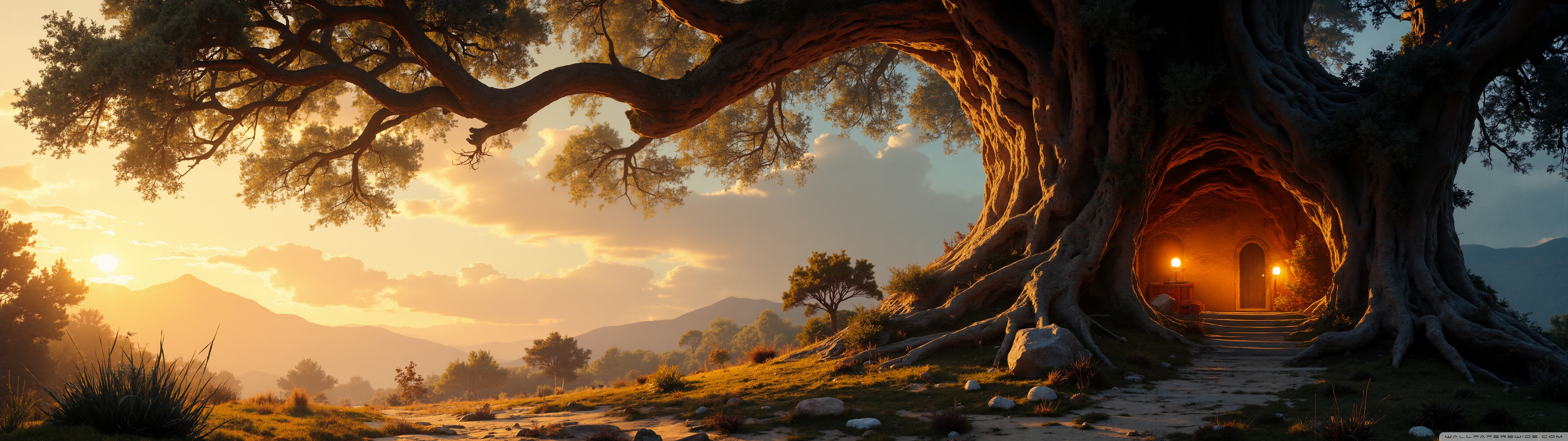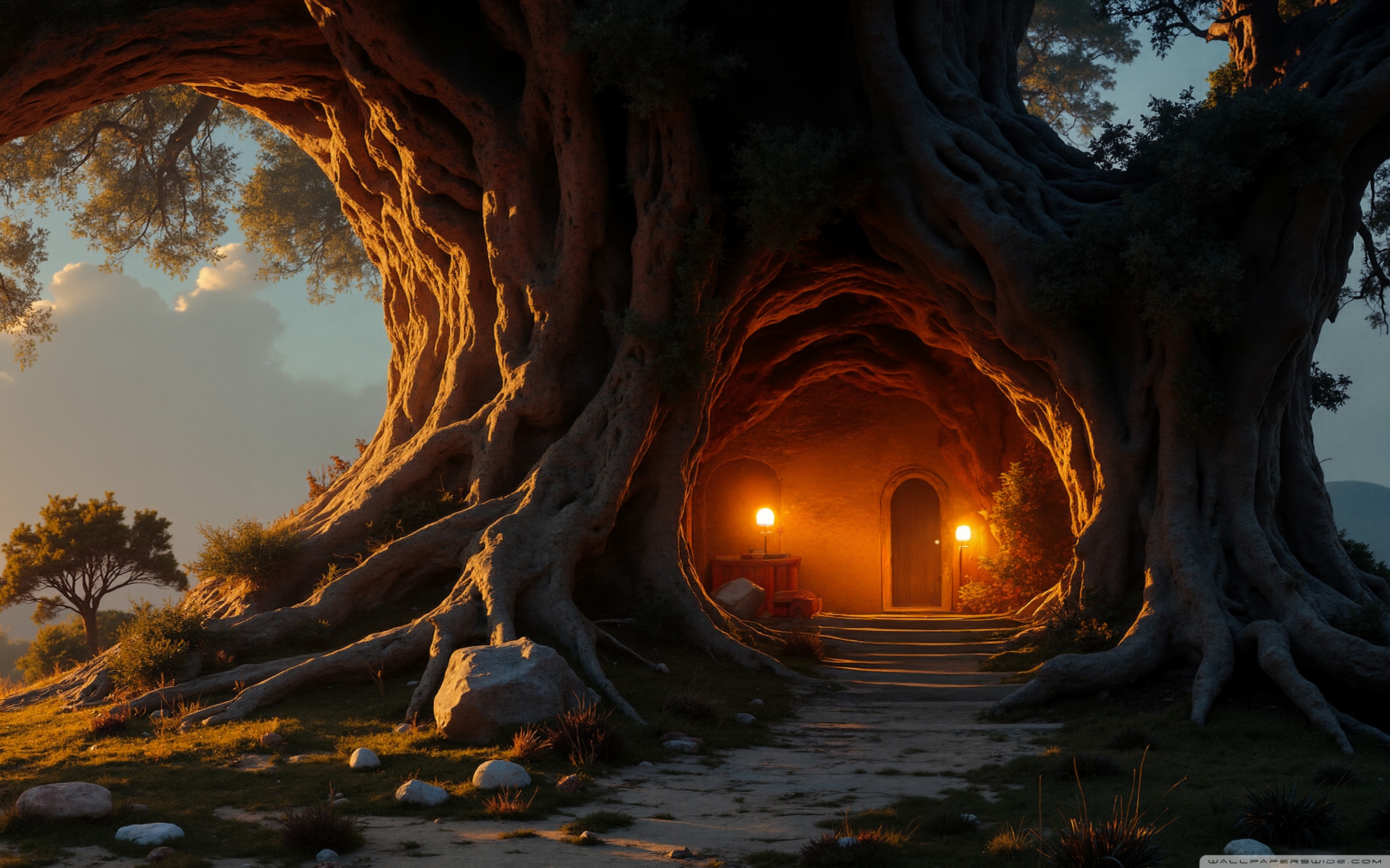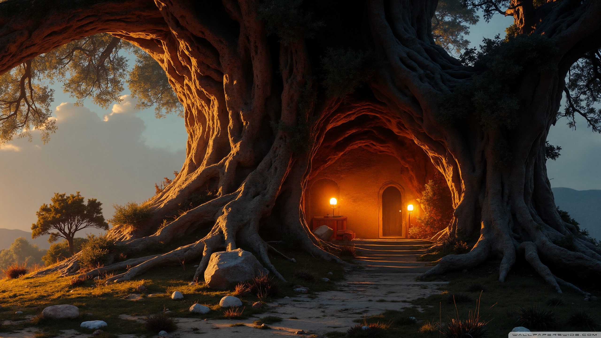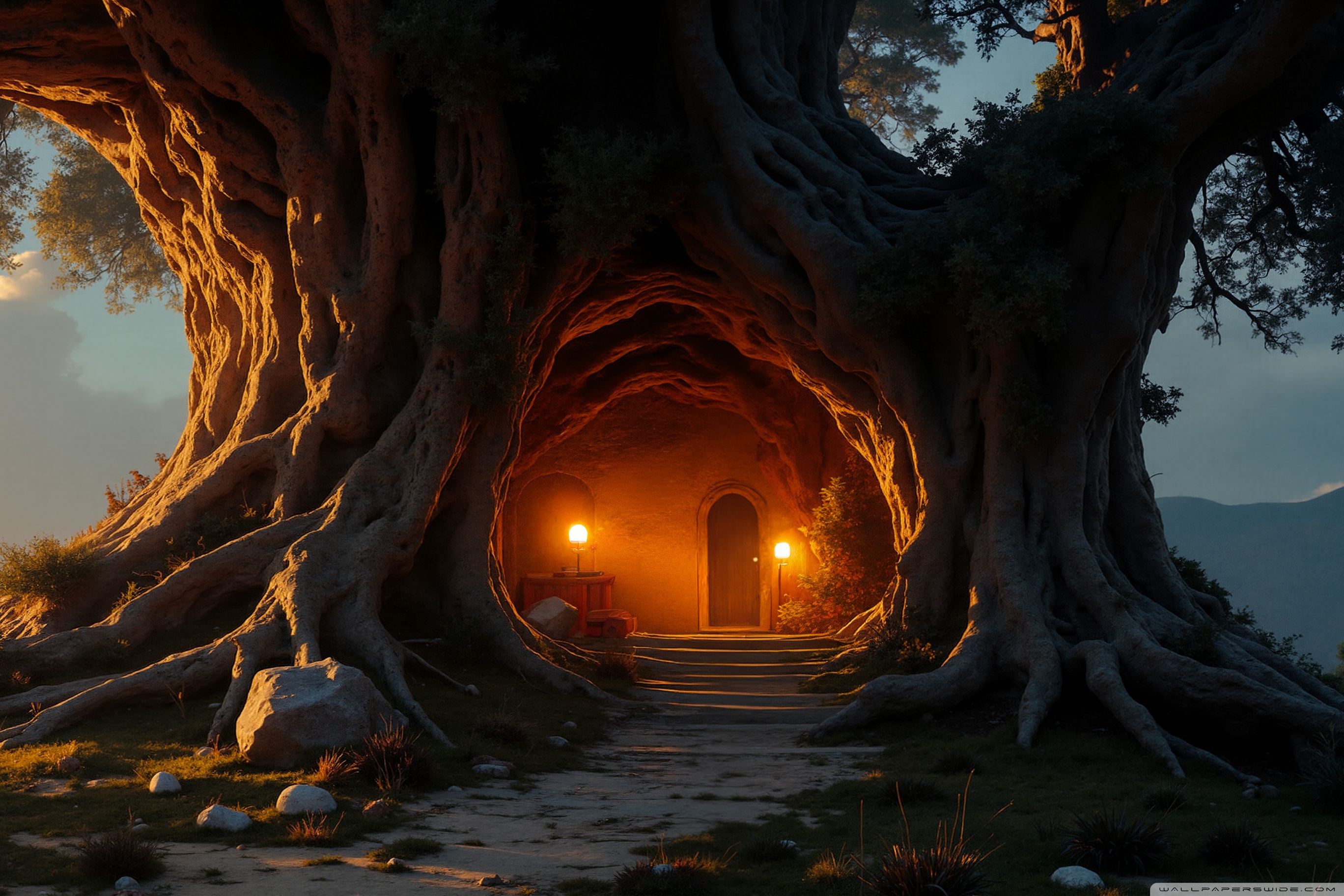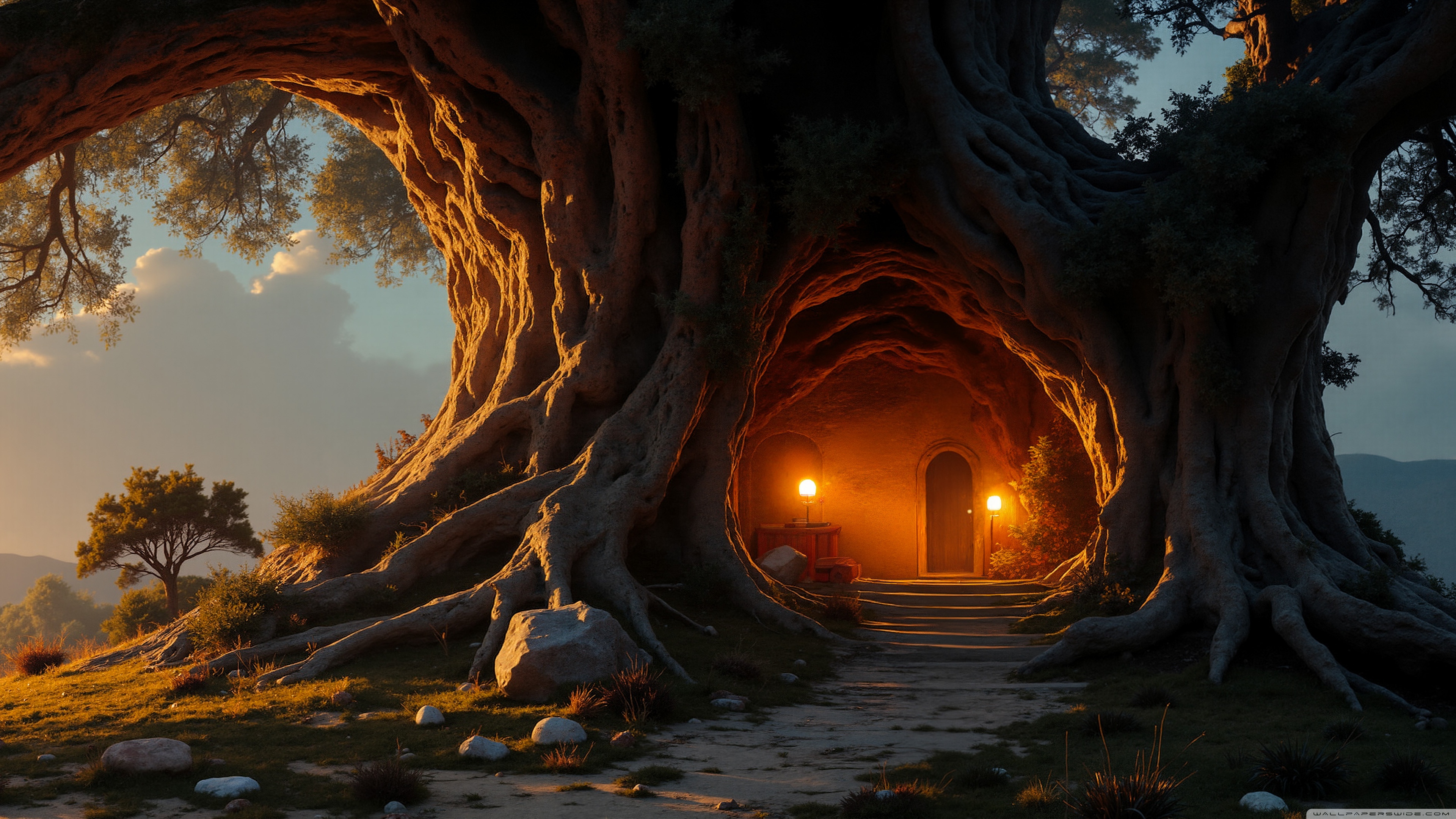 Download House in an Old Tree 4K UHD Wallpaper