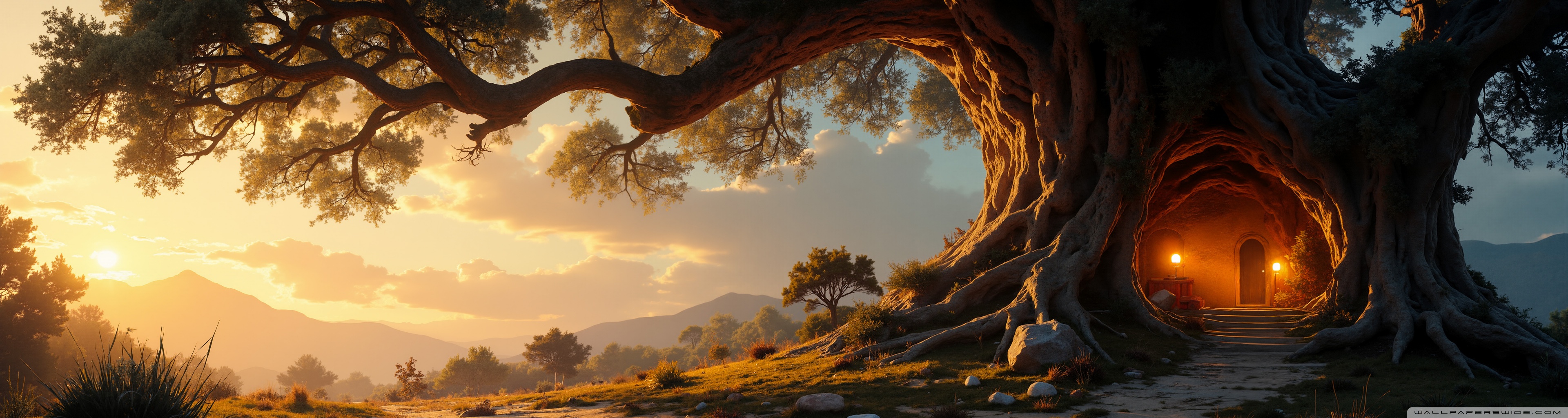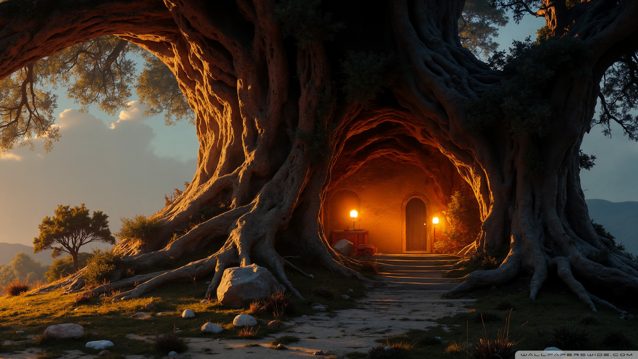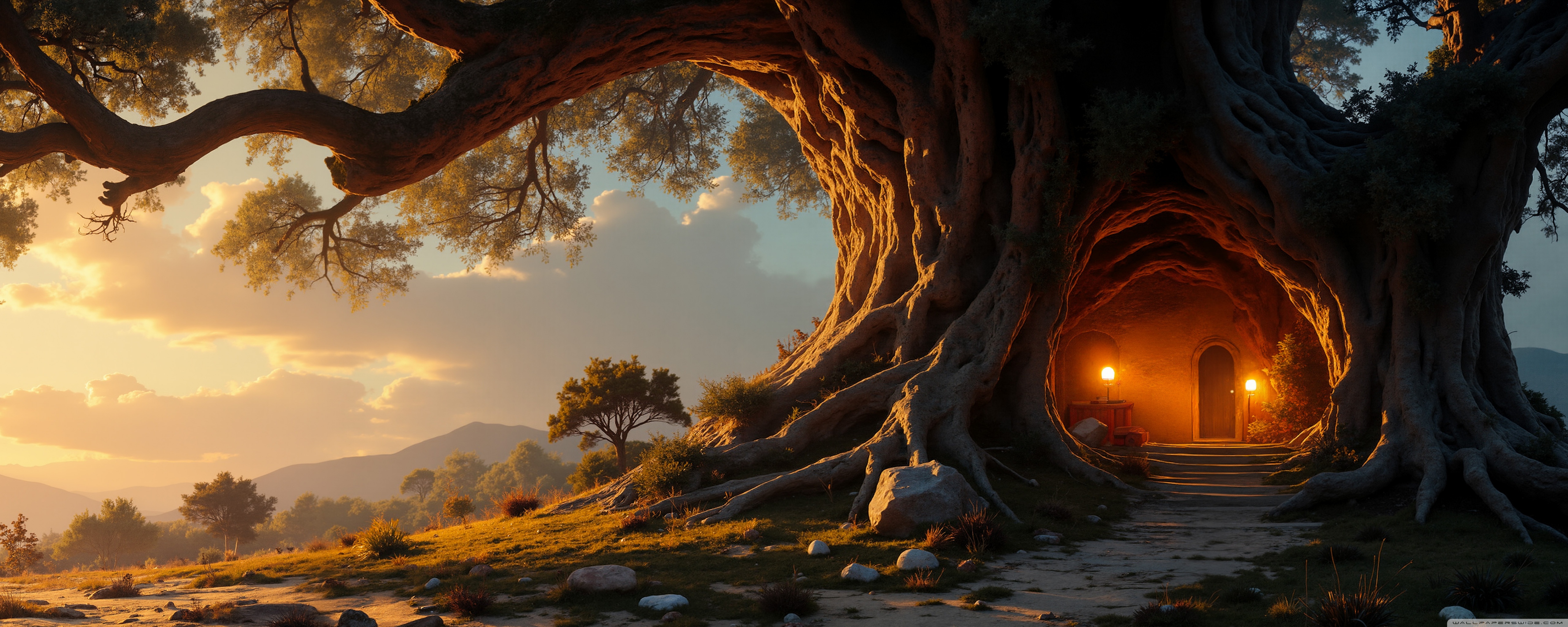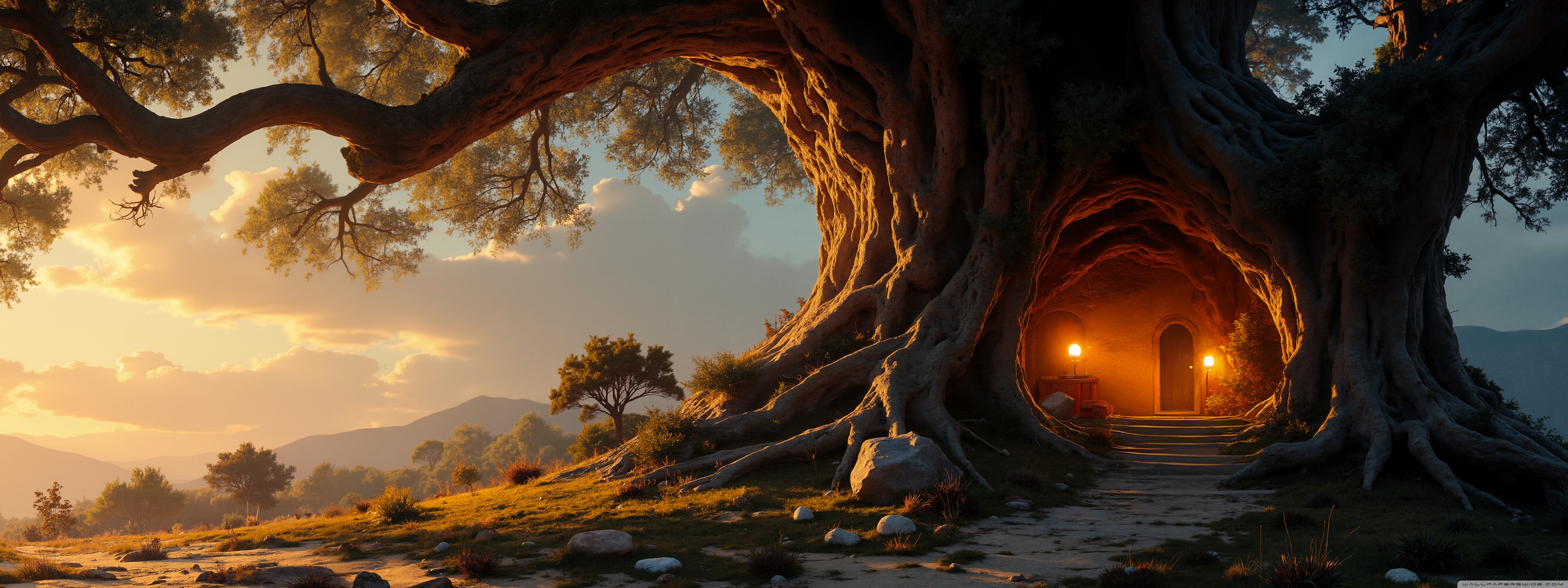Download House in an Old Tree 4K UHD Wallpaper