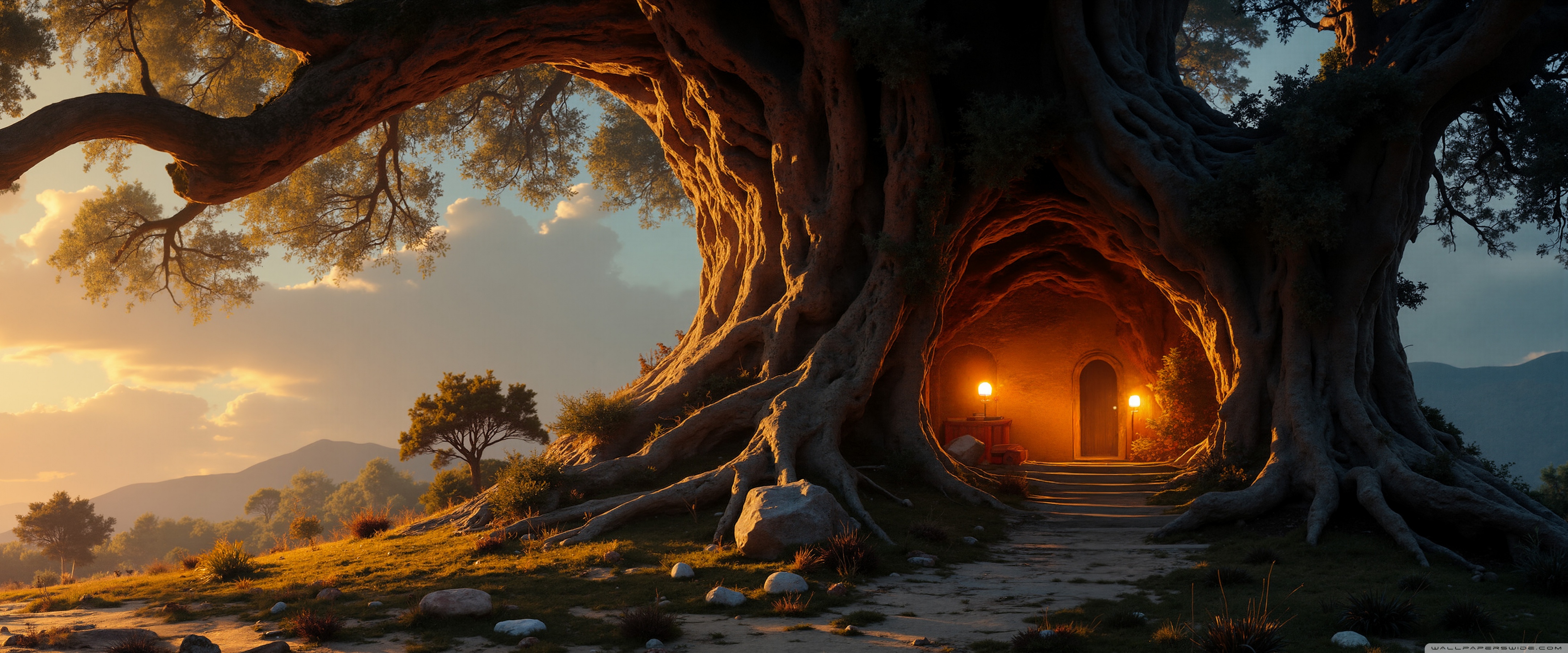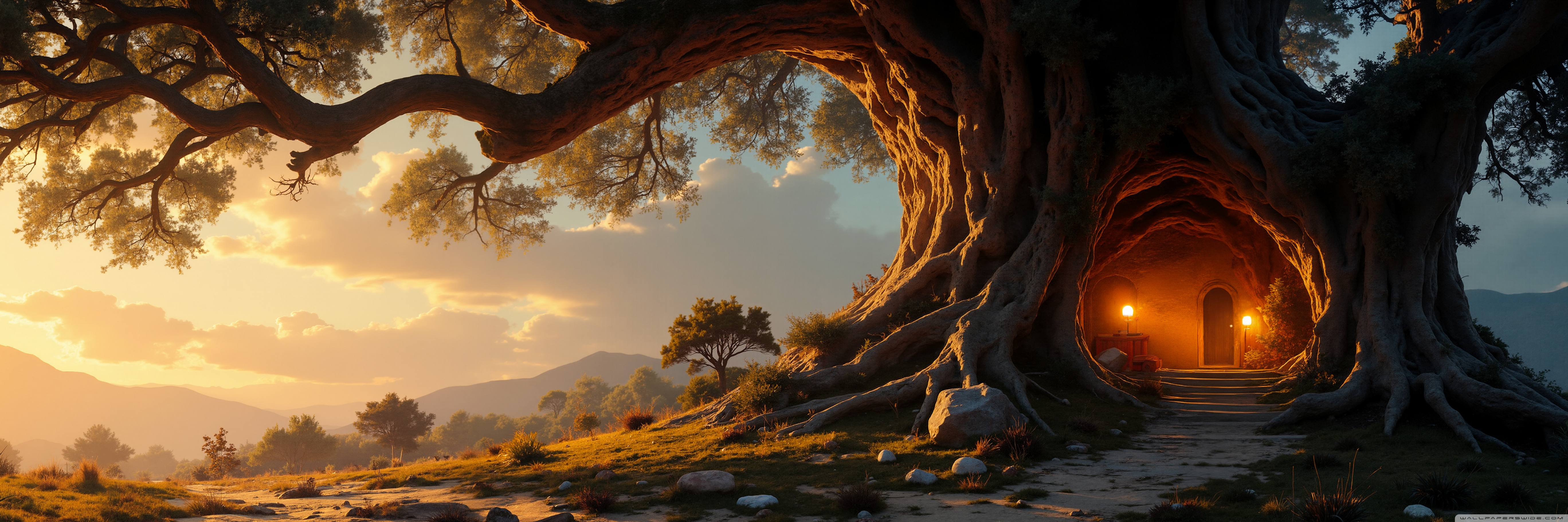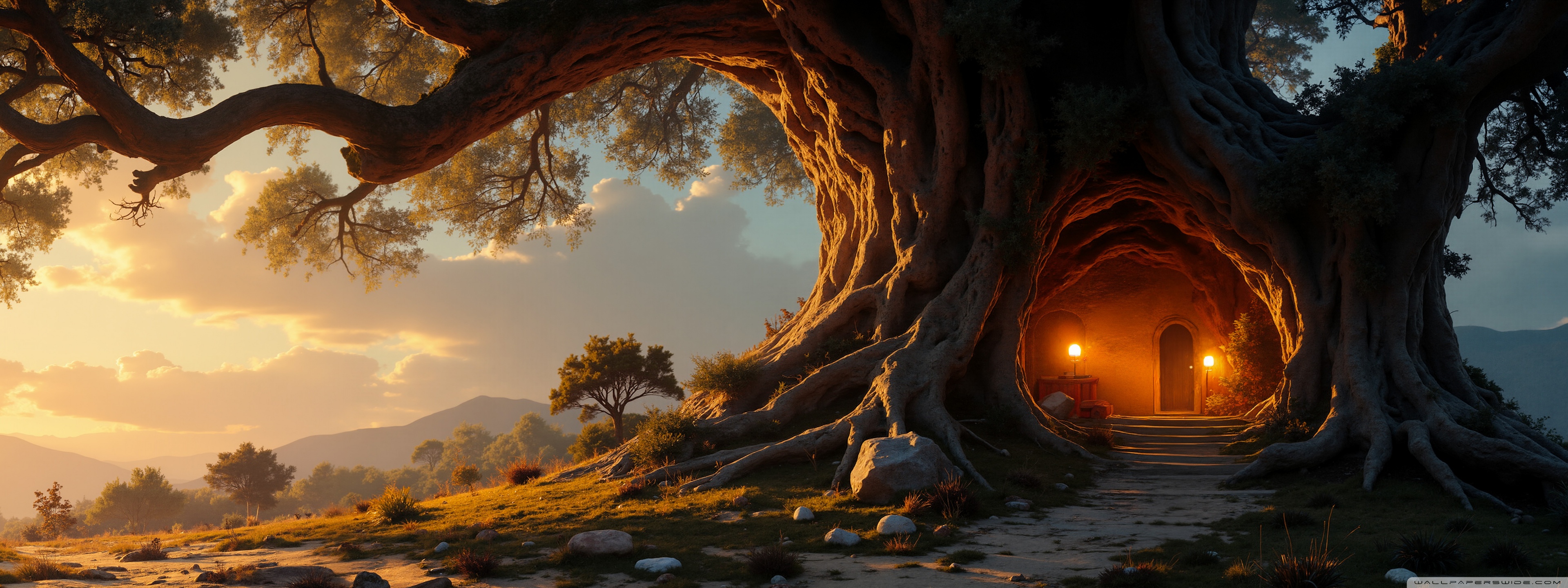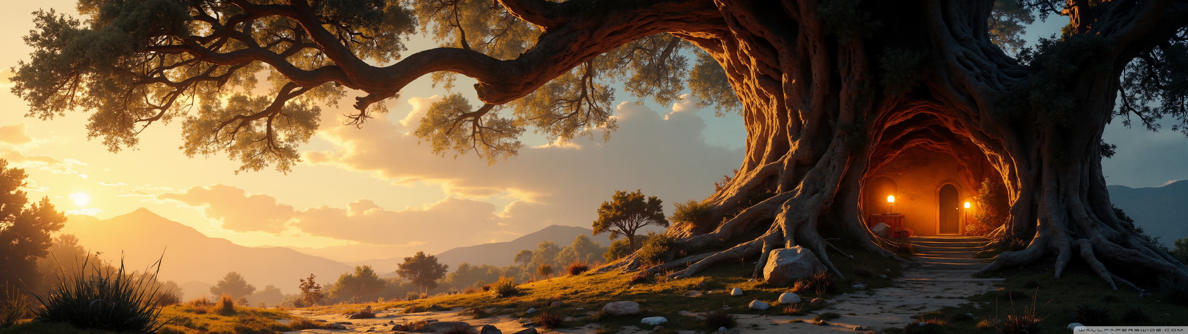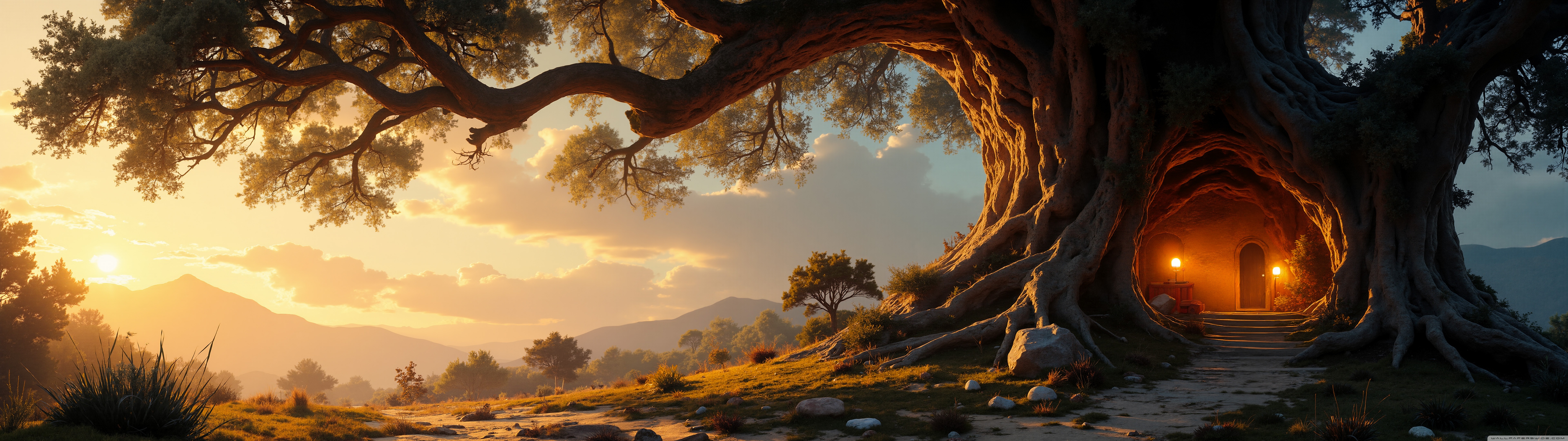 Download House in an Old Tree 4K UHD Wallpaper