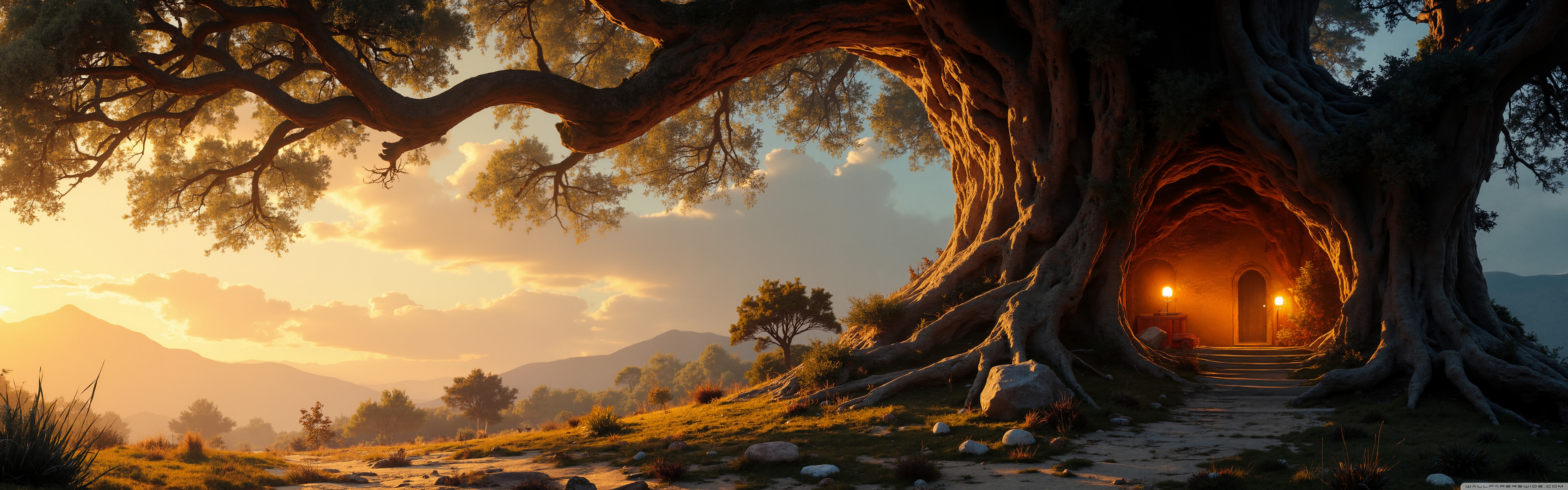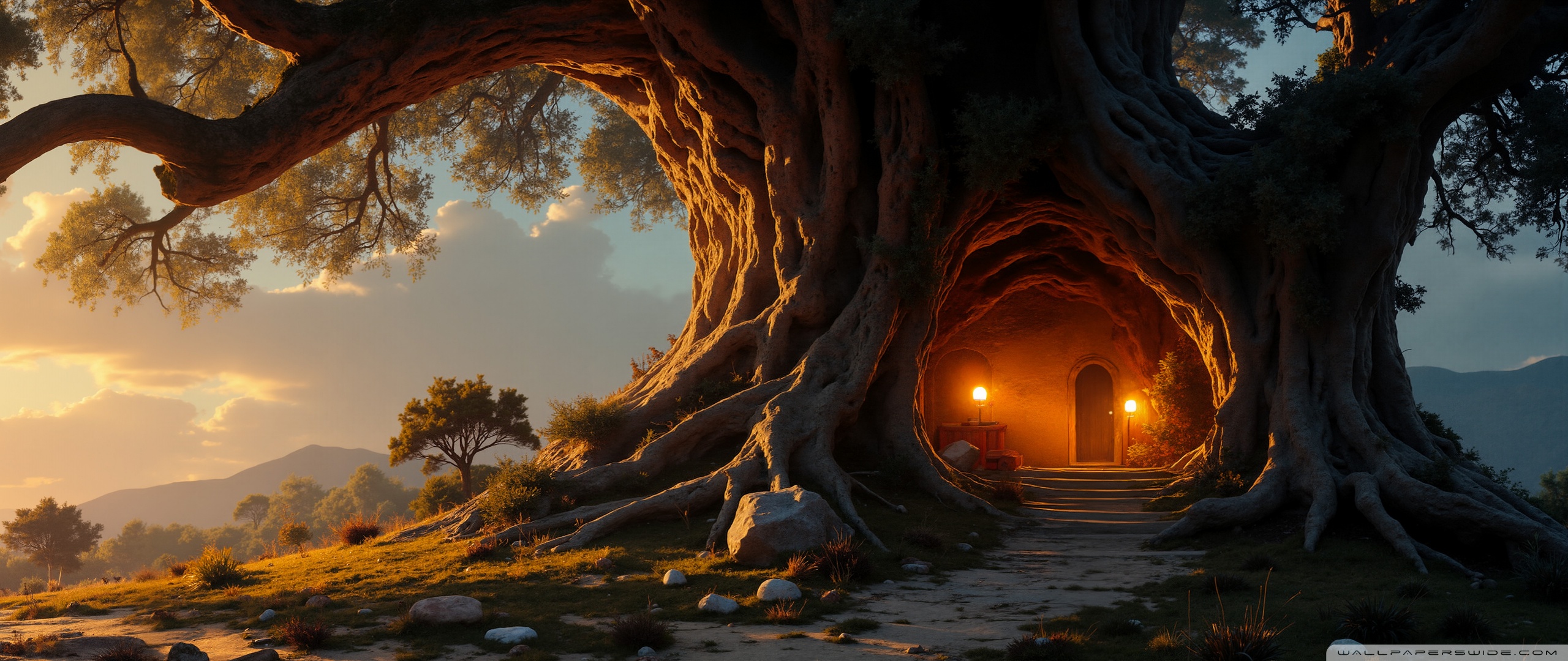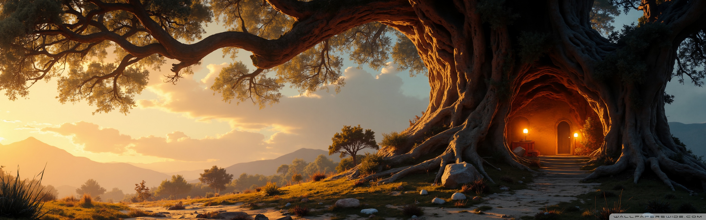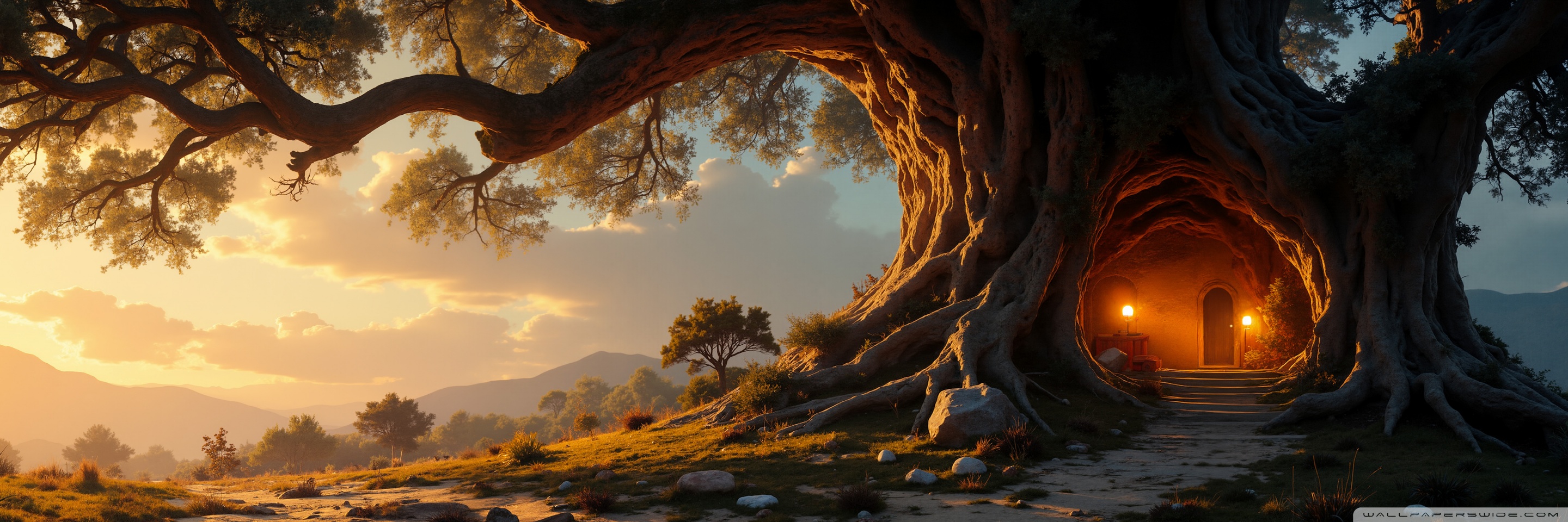 Download House in an Old Tree 4K UHD Wallpaper