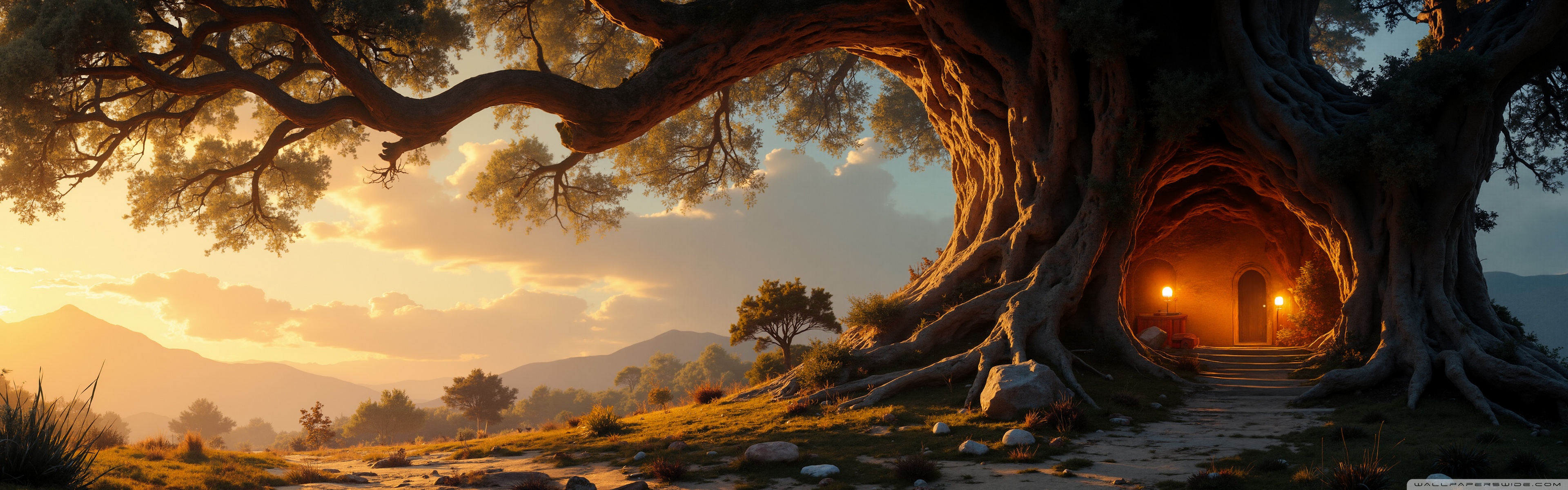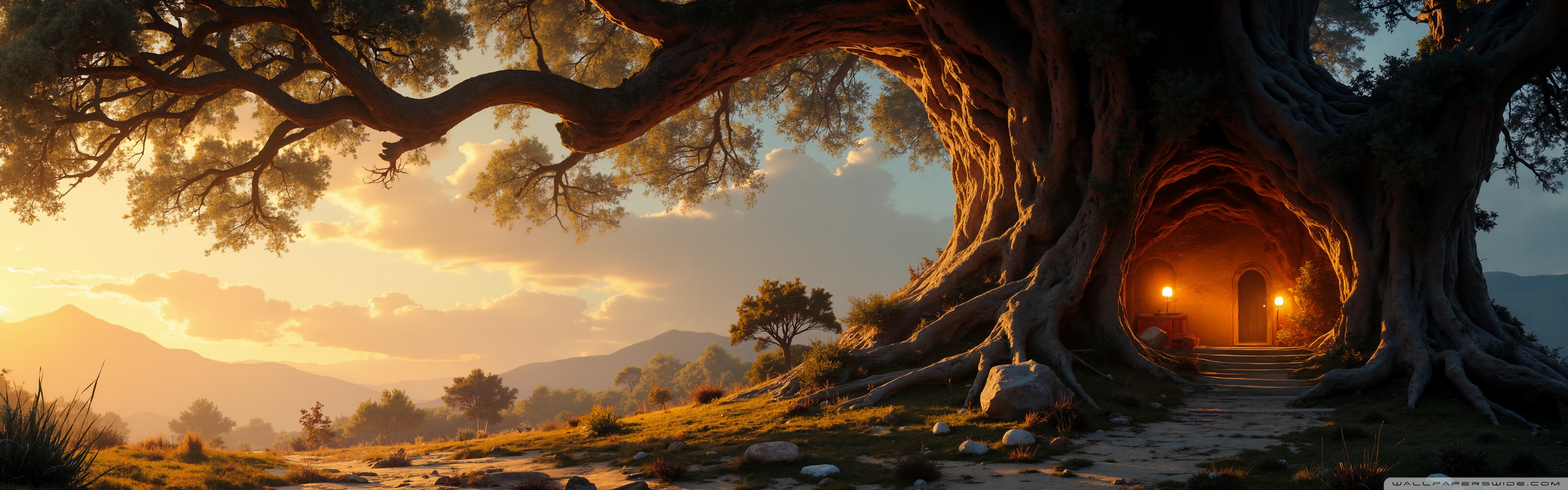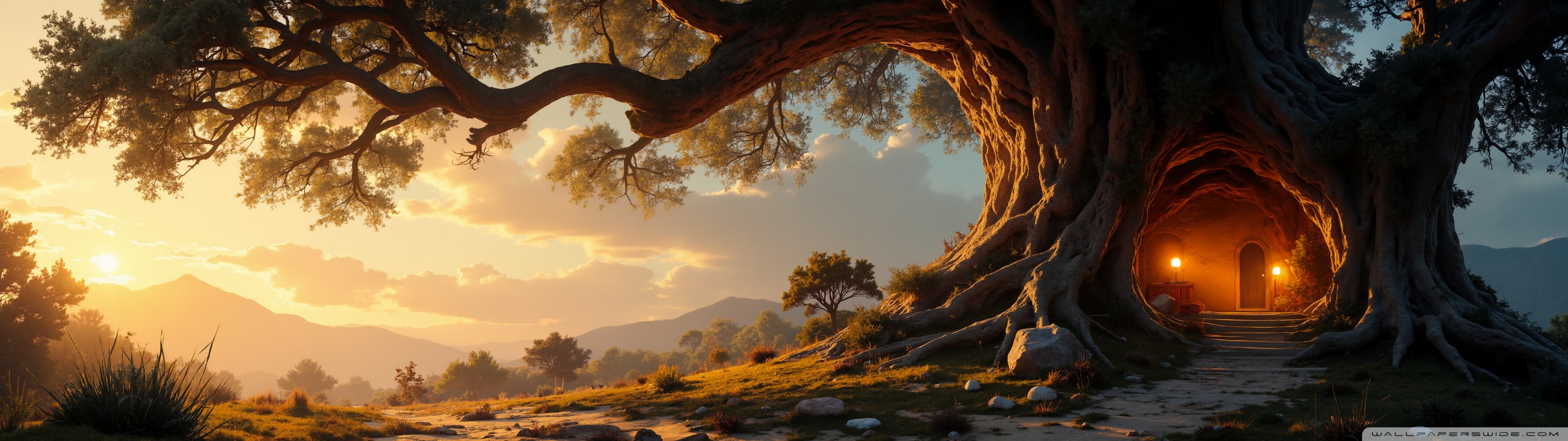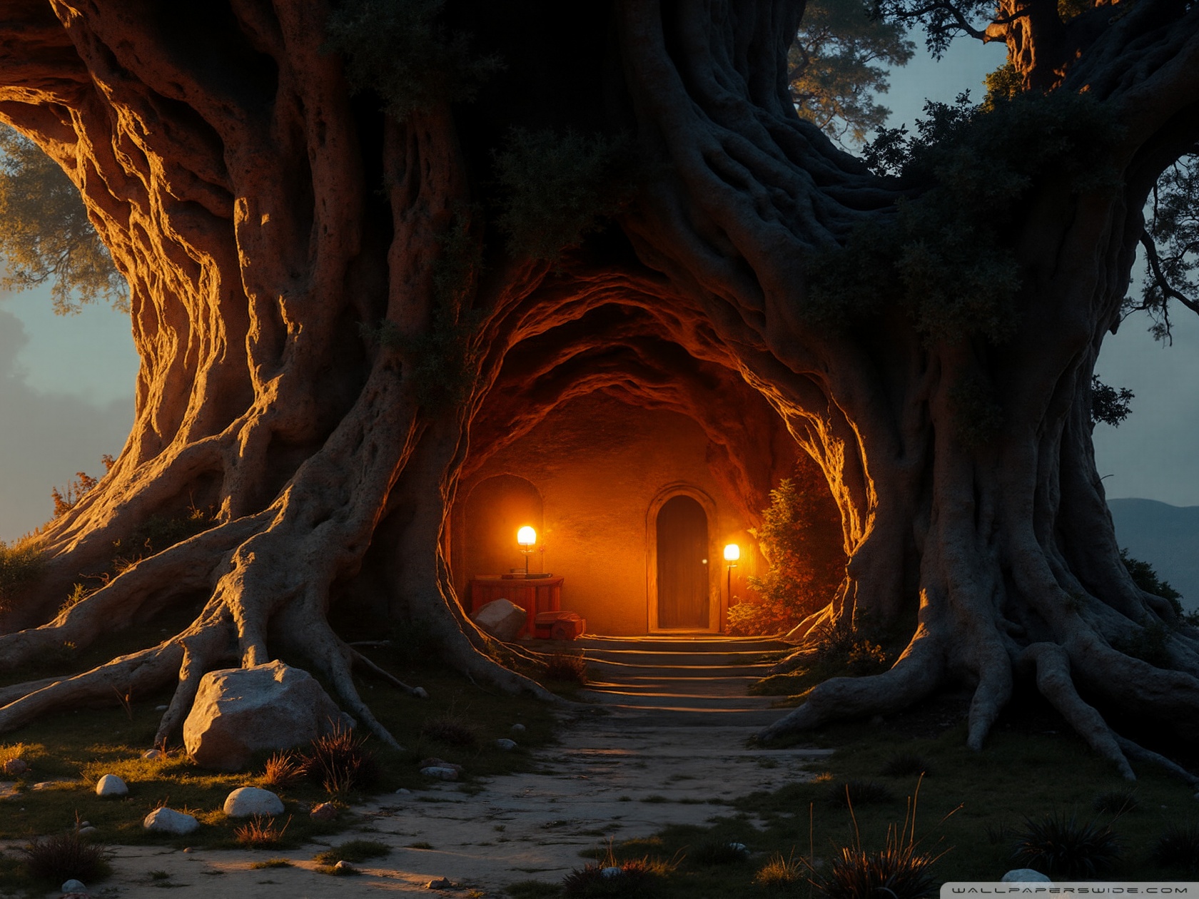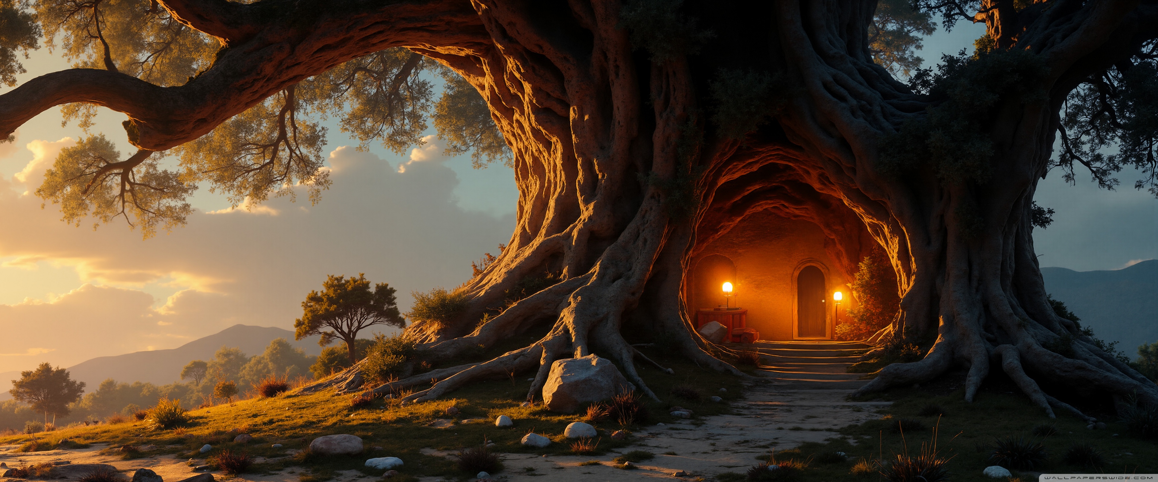 Download House in an Old Tree 4K UHD Wallpaper