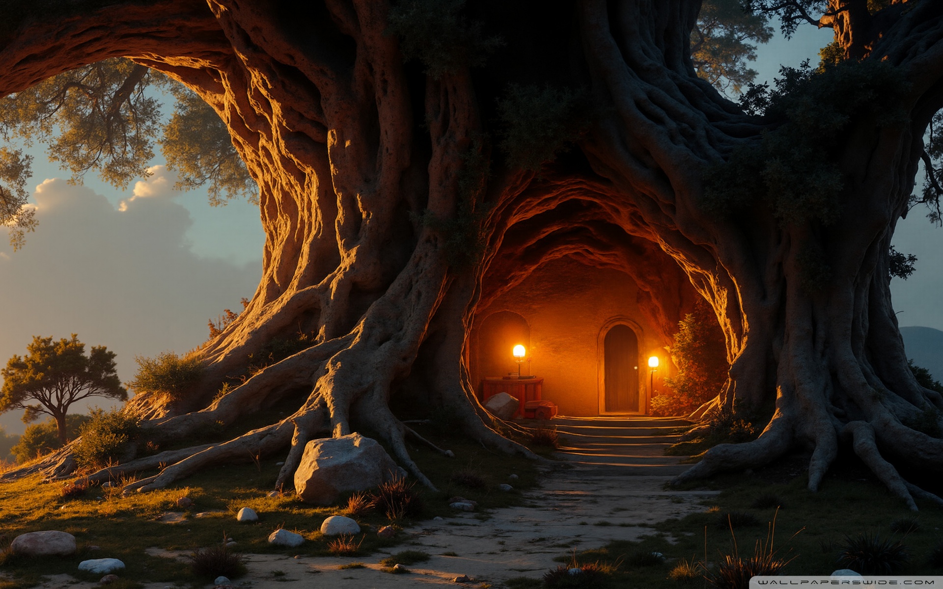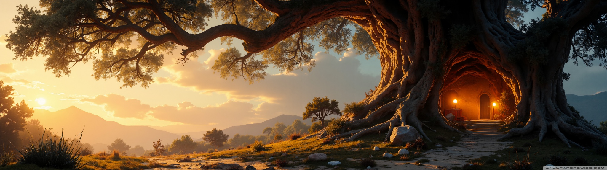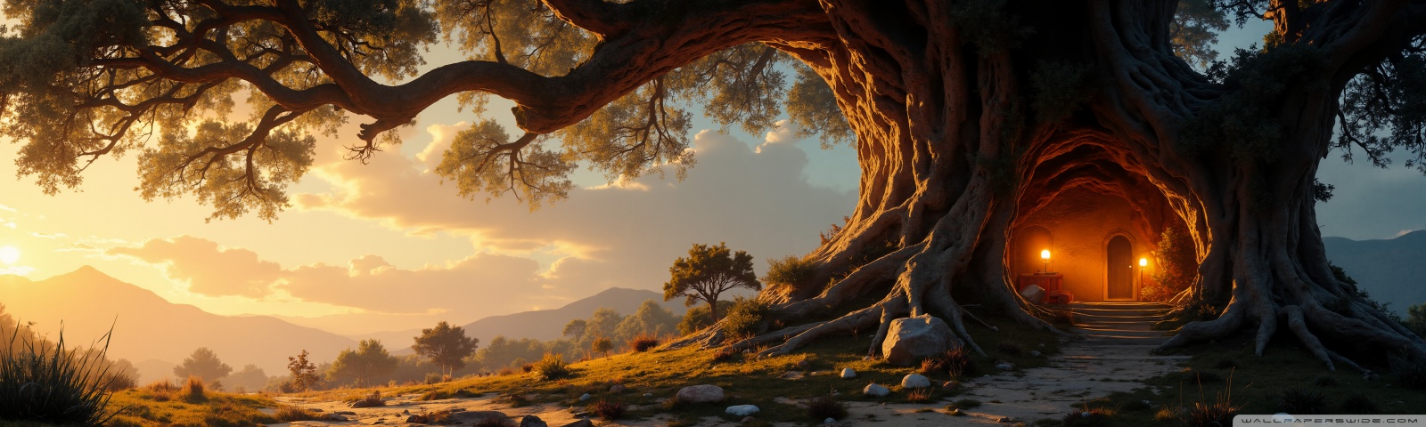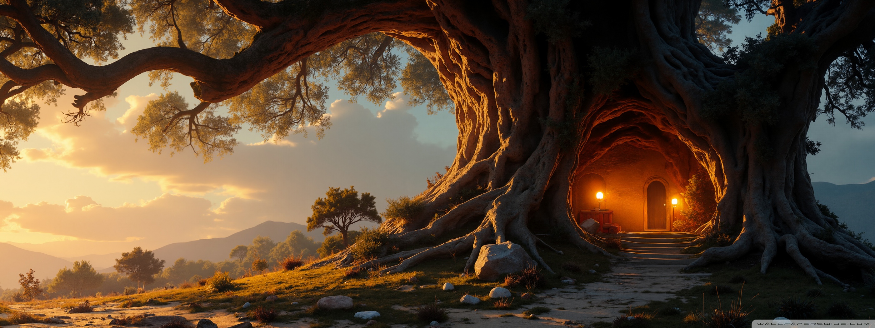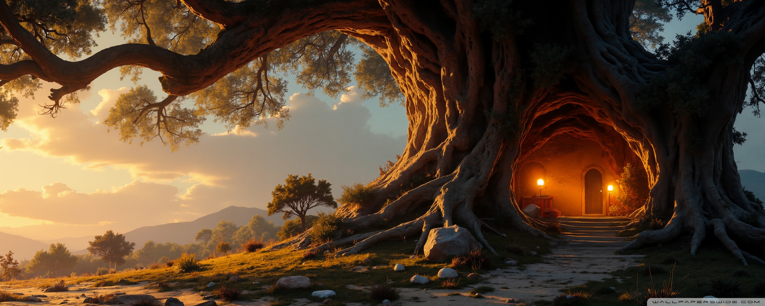 Download House in an Old Tree 4K UHD Wallpaper