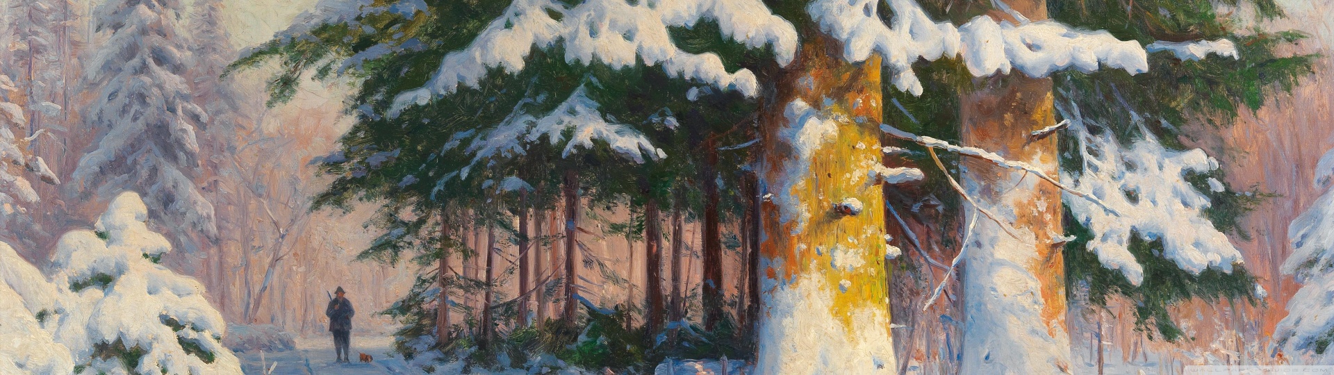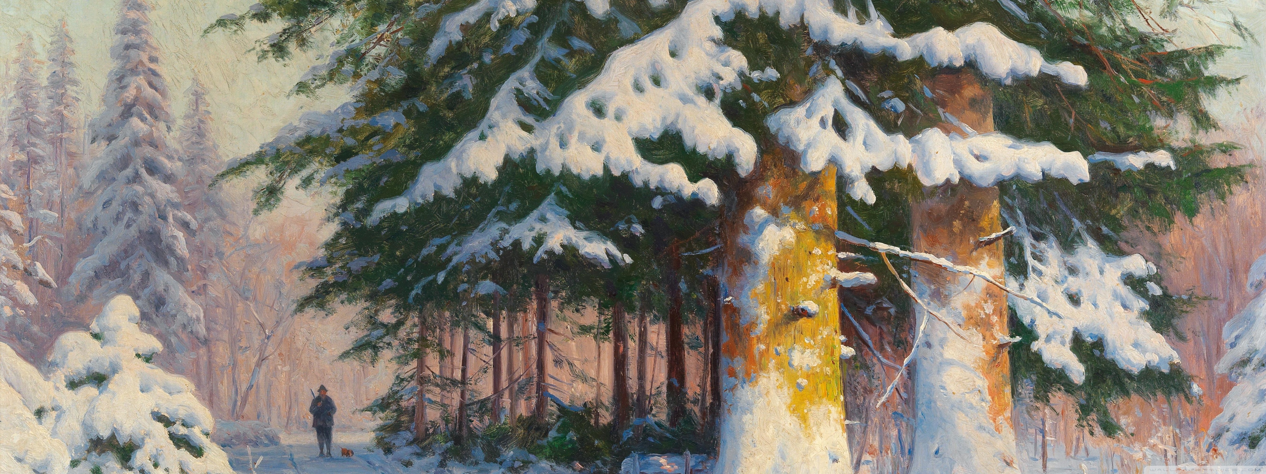 Download Hunter Returning Home in a Winter Woodland... 4K UHD Wallpaper