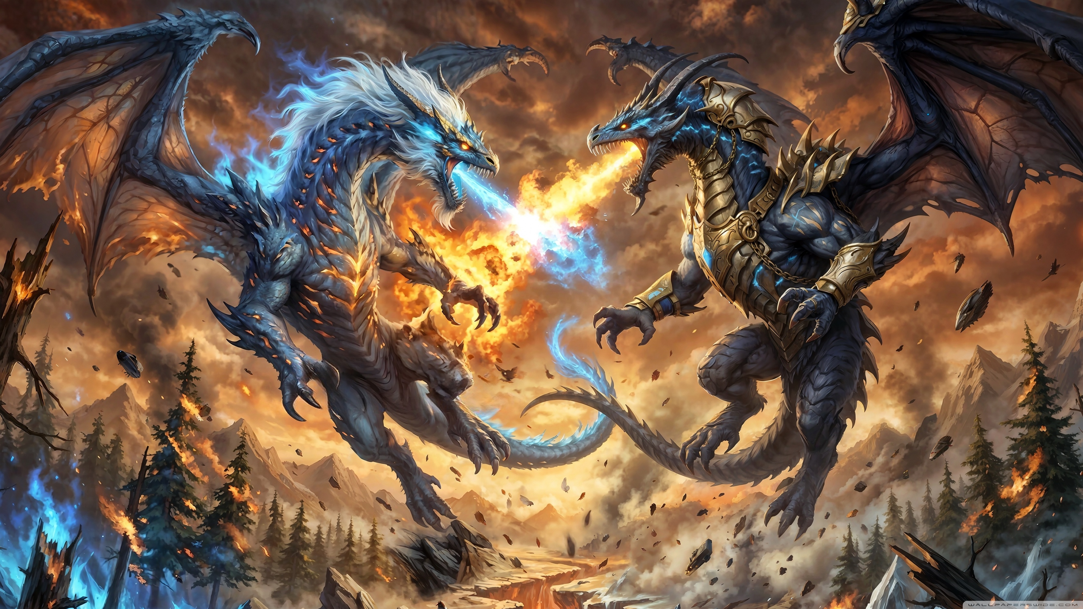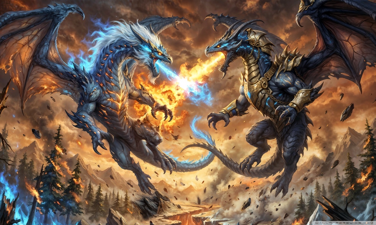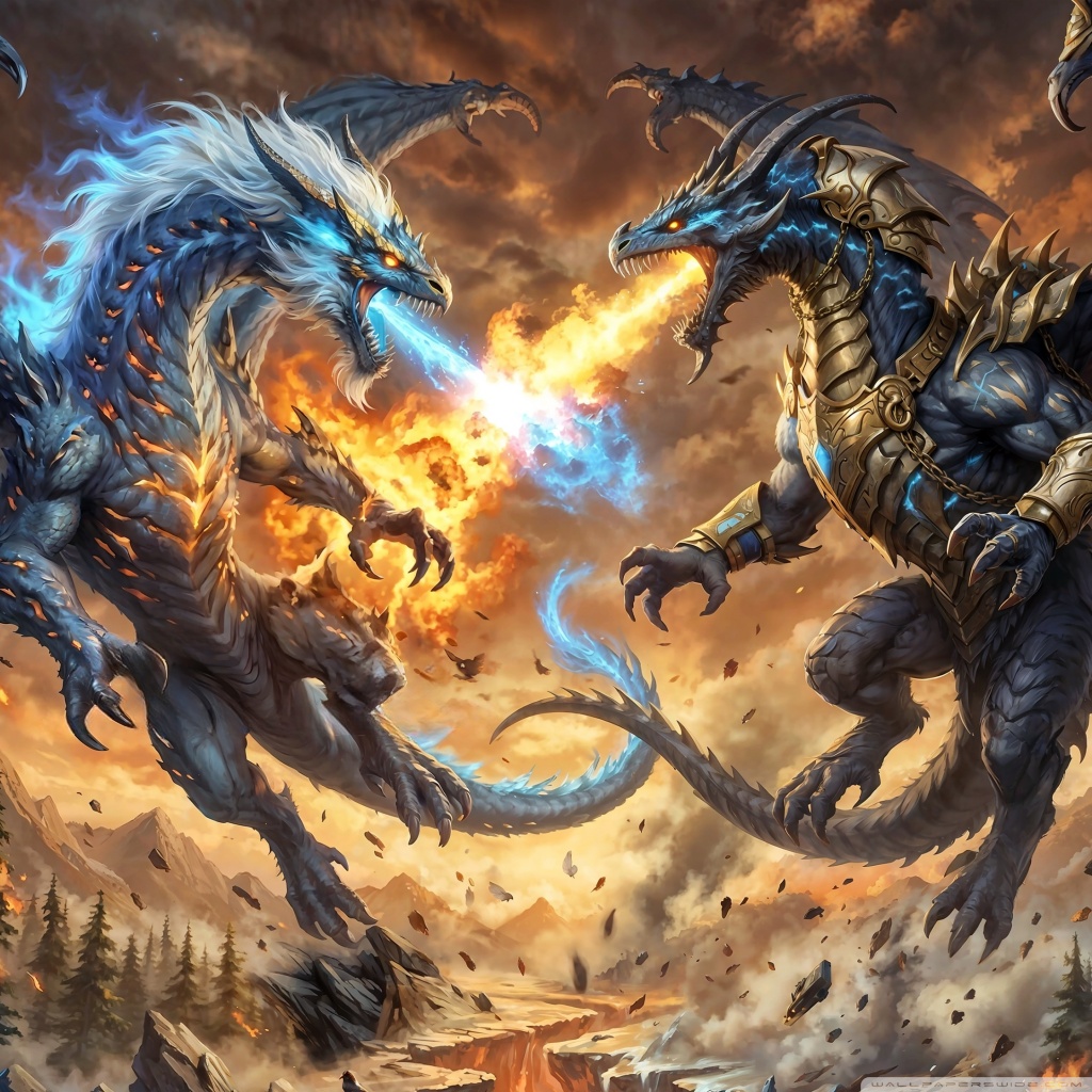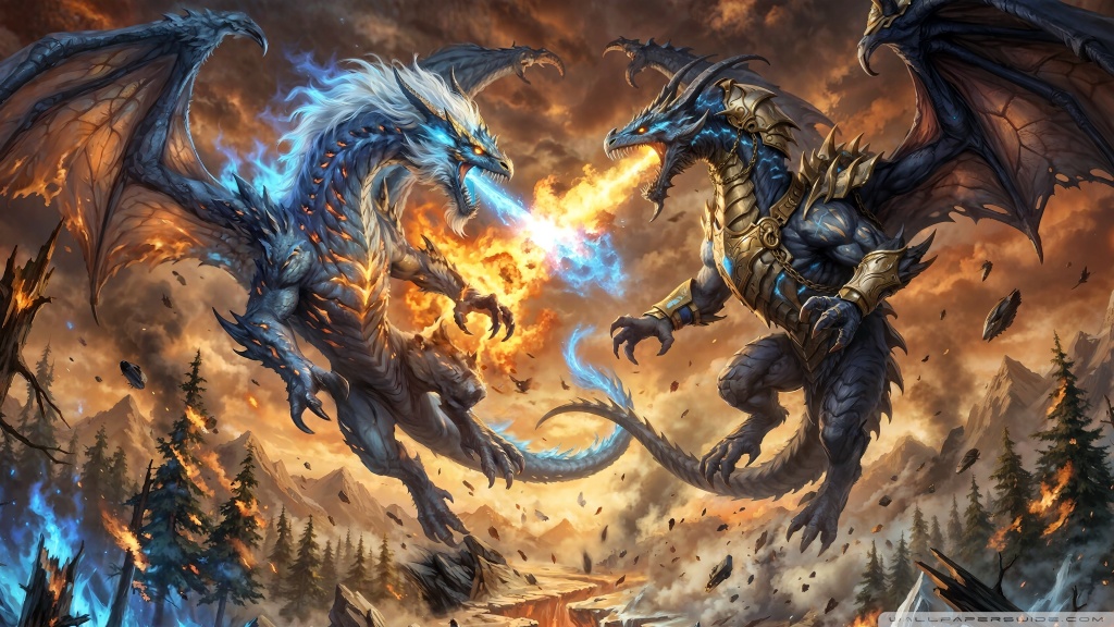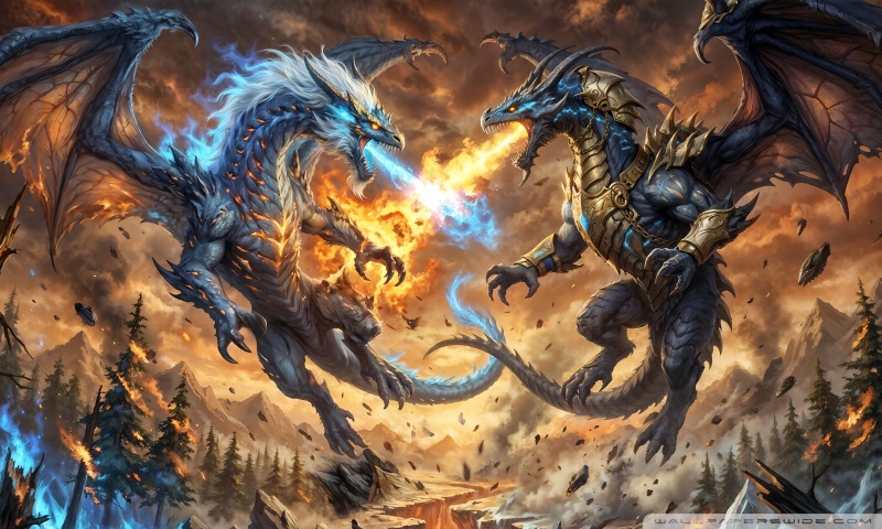Download Ice Dragon vs Fire Dragon 4K UHD Wallpaper