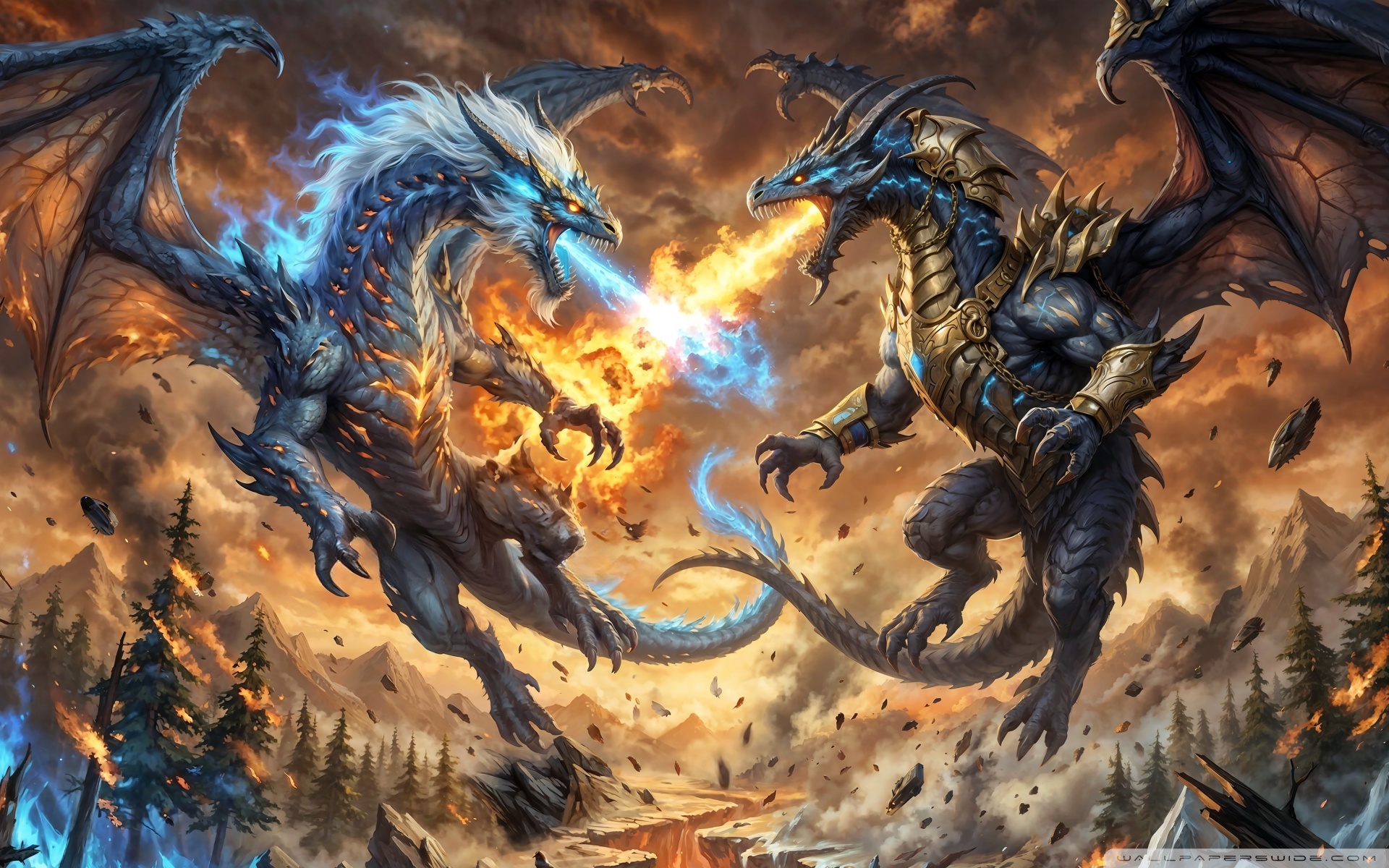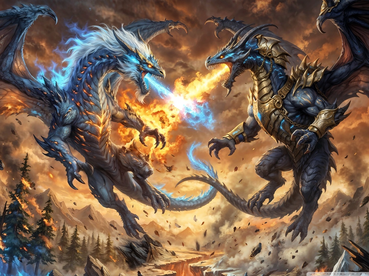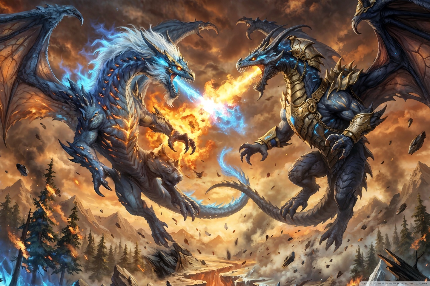 Download Ice Dragon vs Fire Dragon 4K UHD Wallpaper