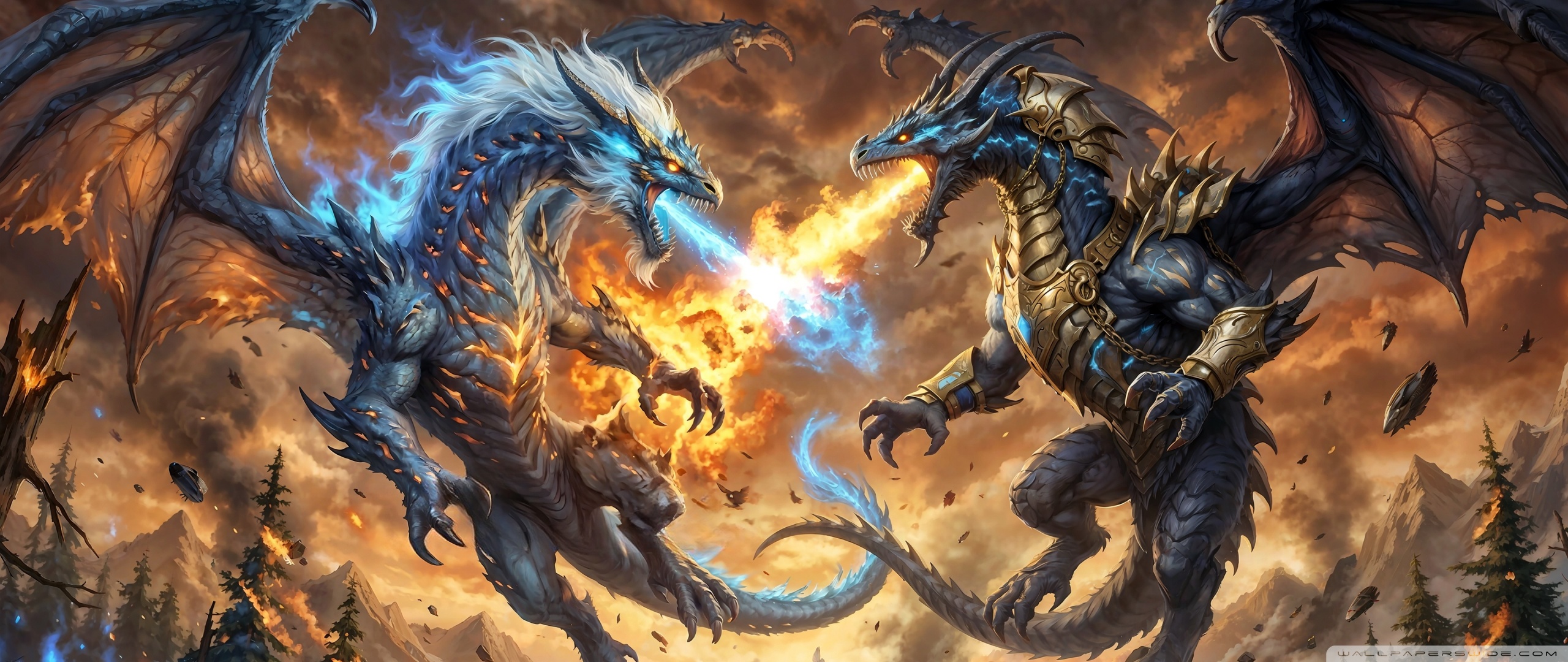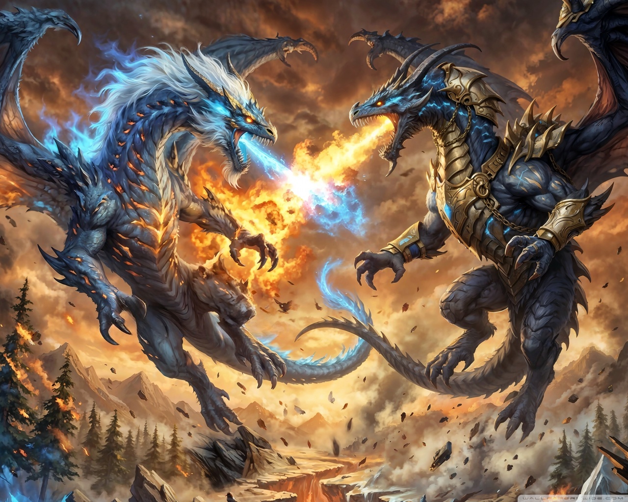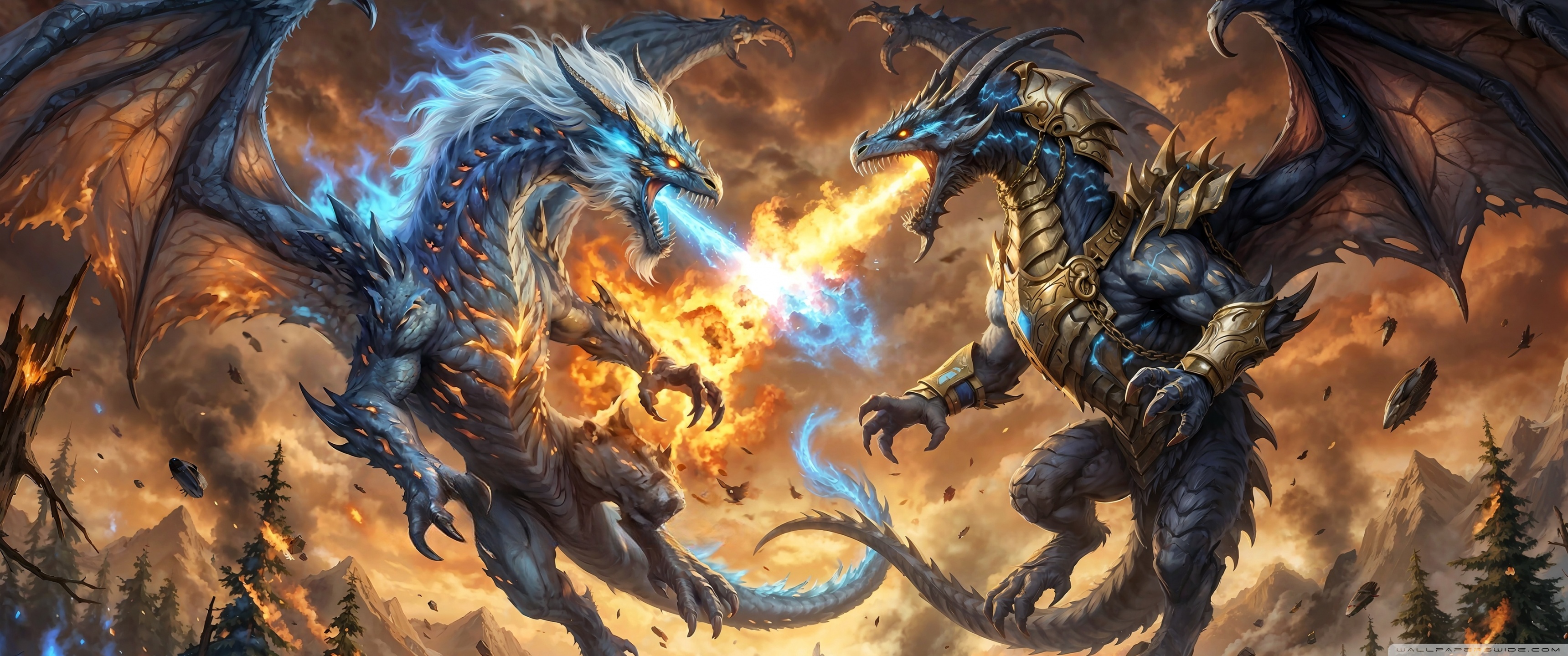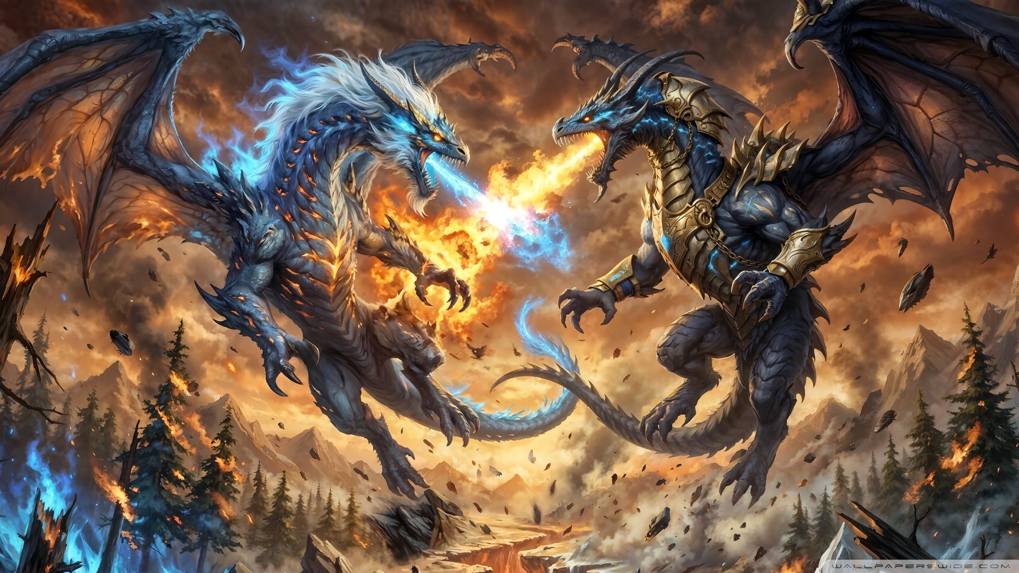 Download Ice Dragon vs Fire Dragon 4K UHD Wallpaper