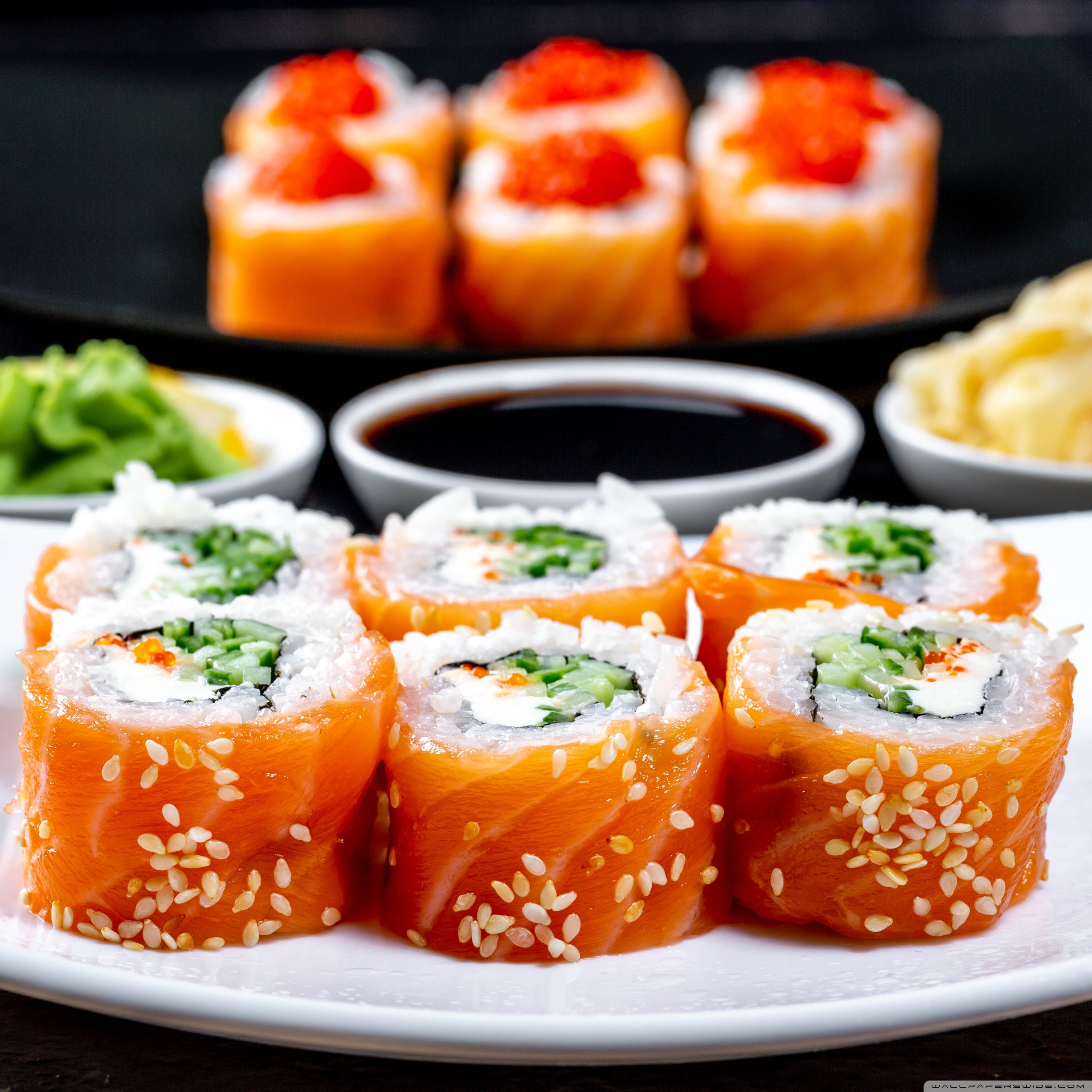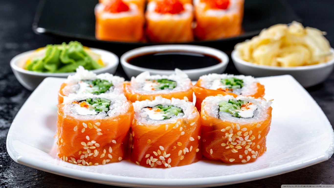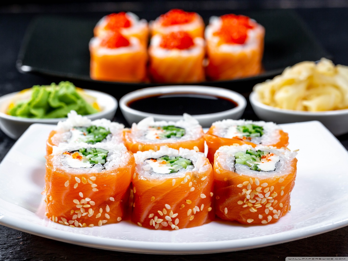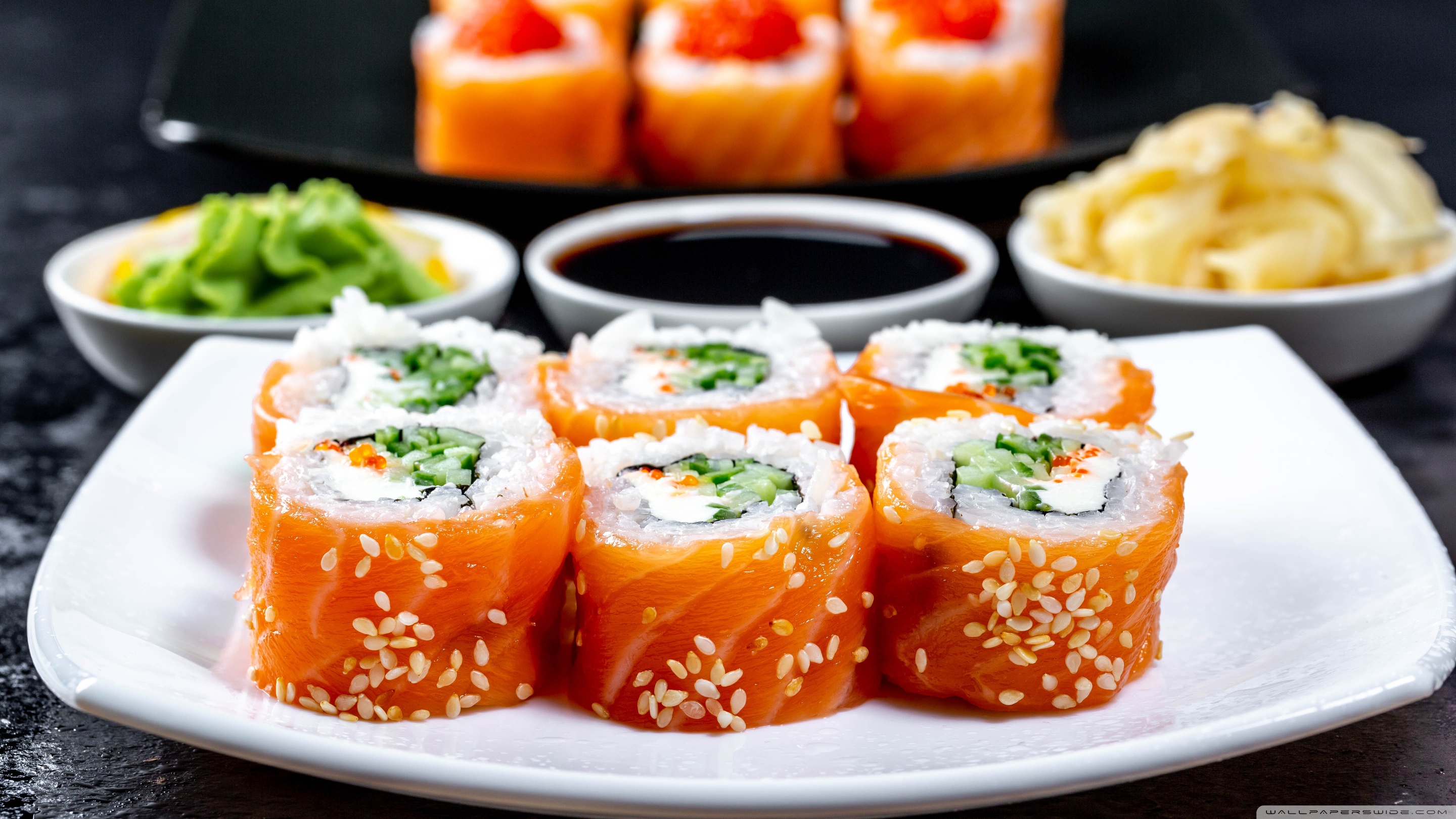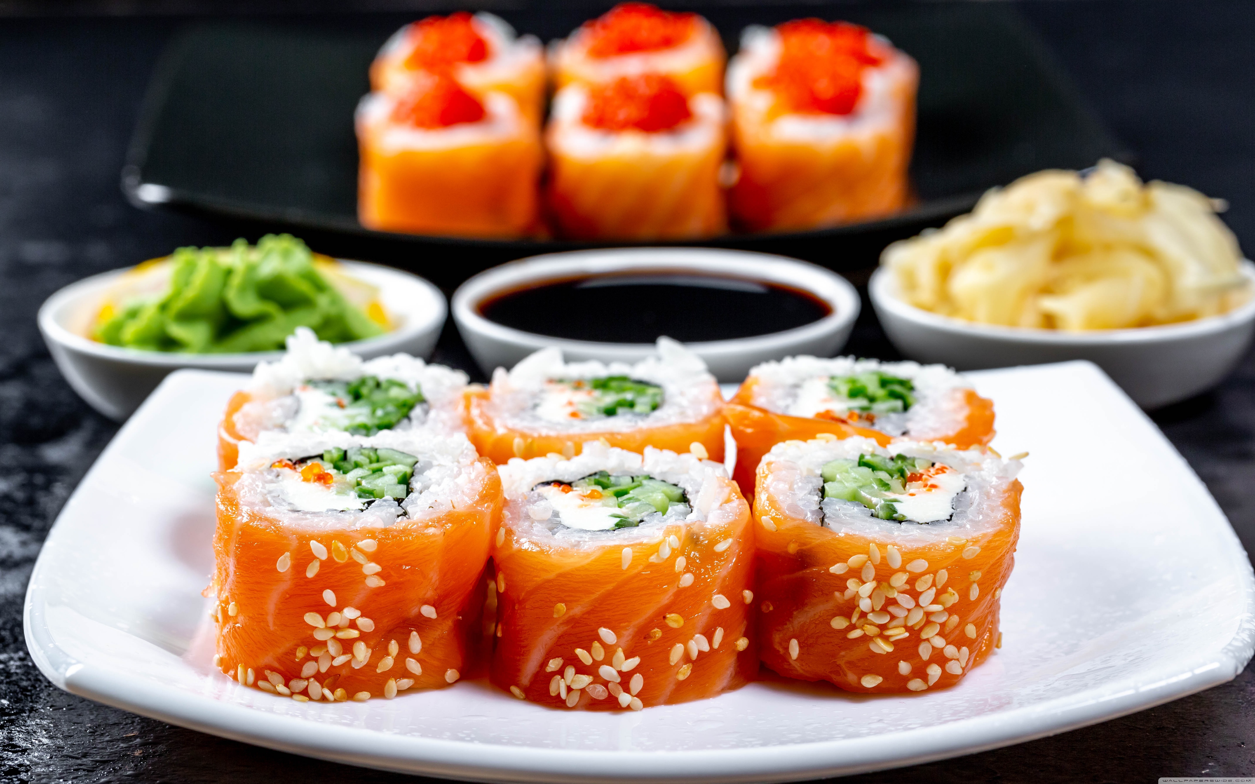 Download Japanese Sushi with Wasabi, Ginger and Soy Sauce 4K UHD Wallpaper