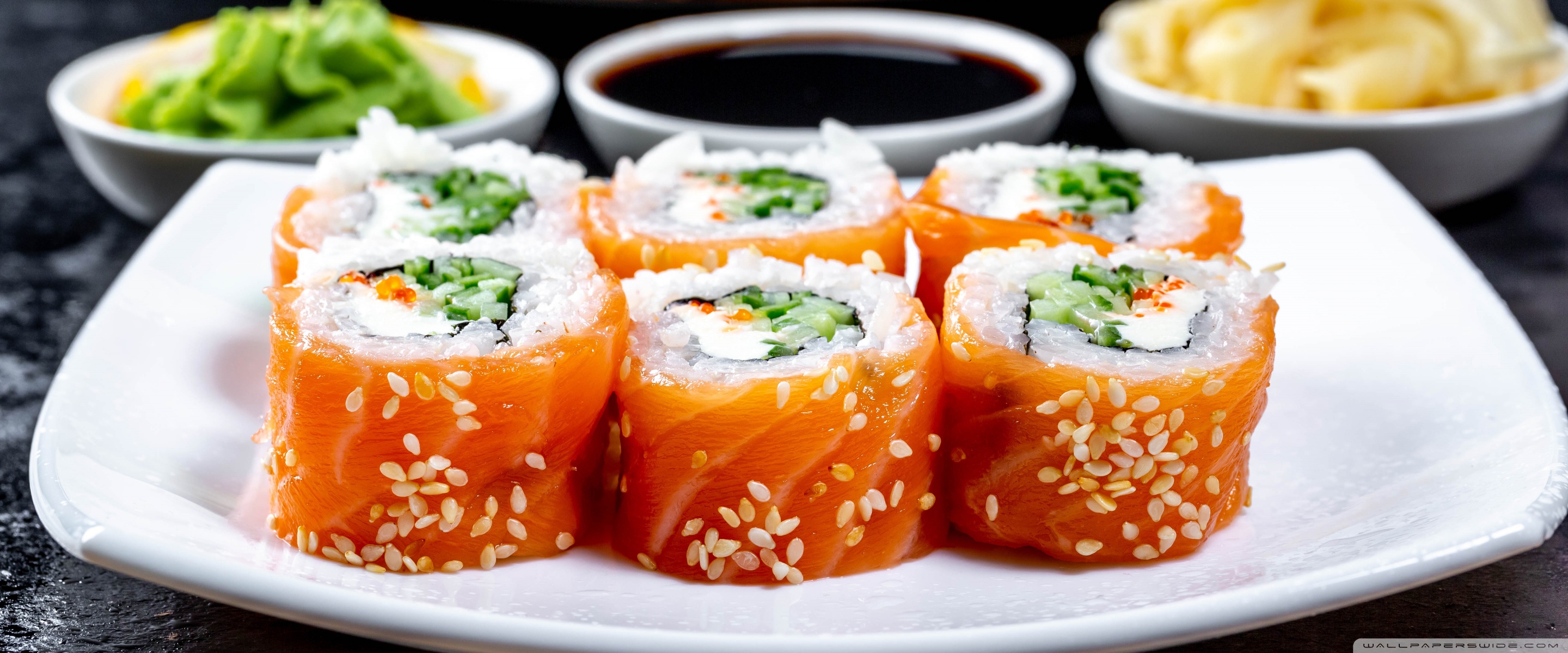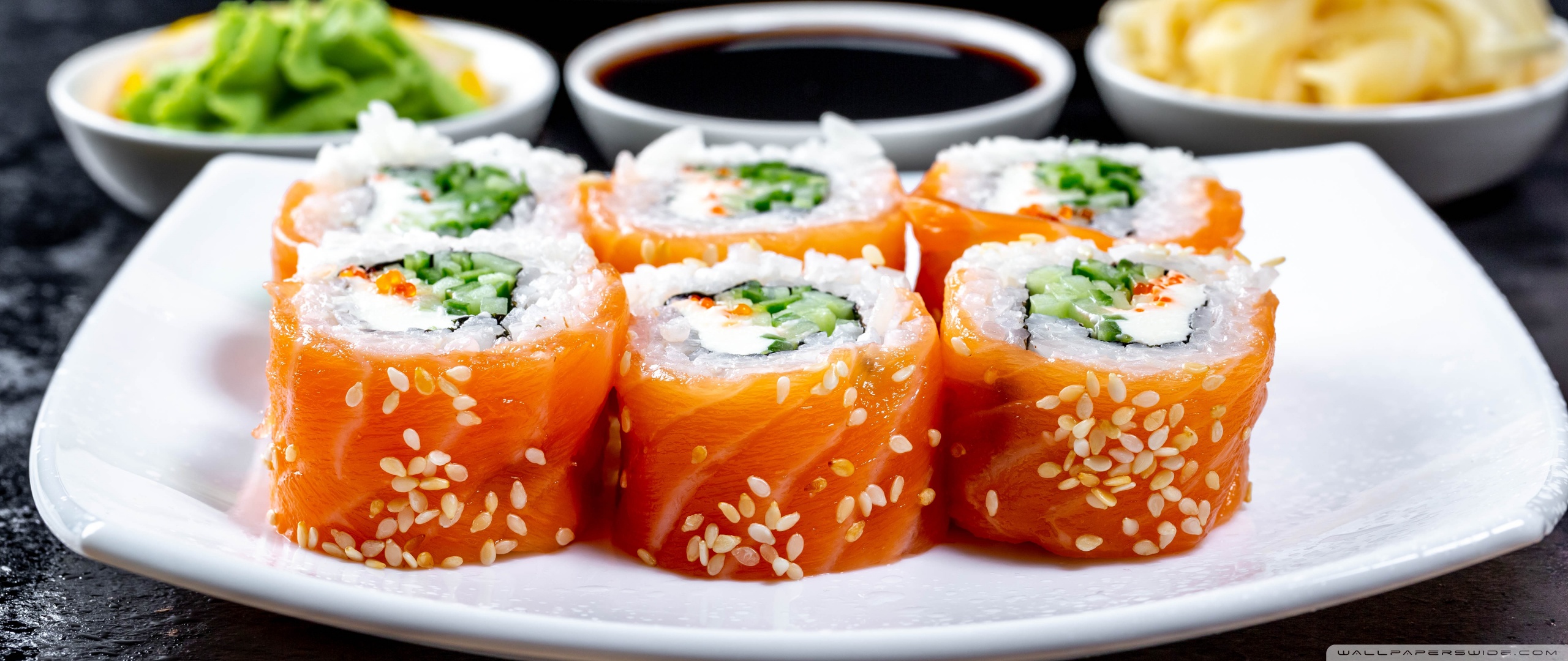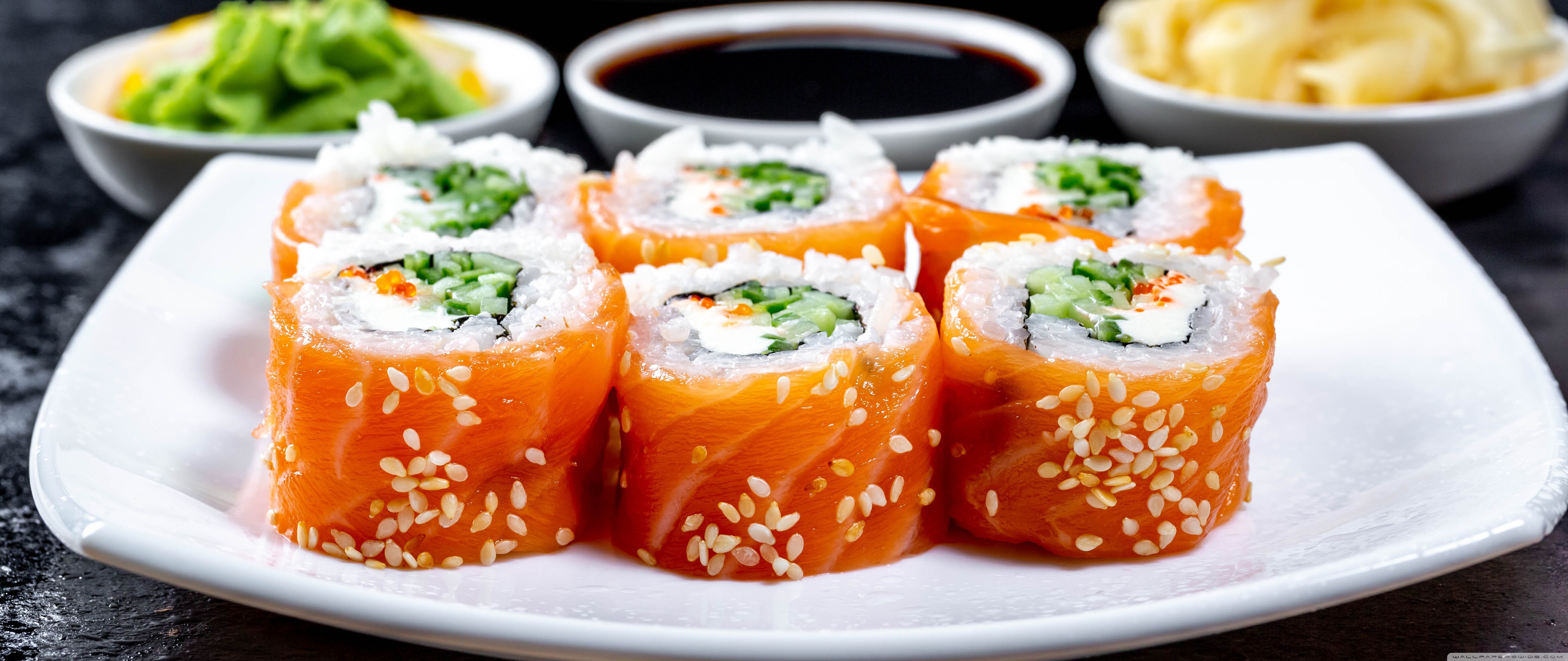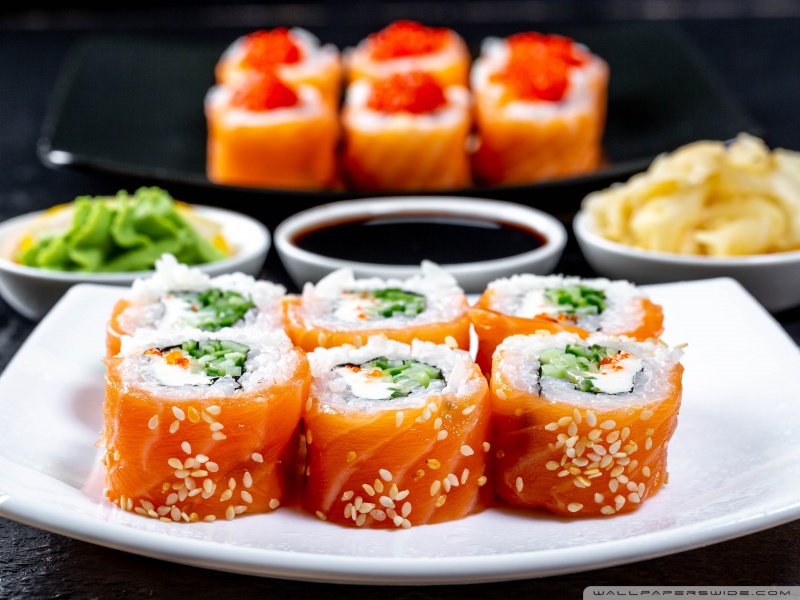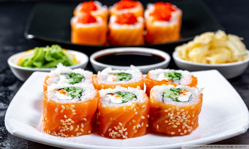 Download Japanese Sushi with Wasabi, Ginger and Soy Sauce 4K UHD Wallpaper