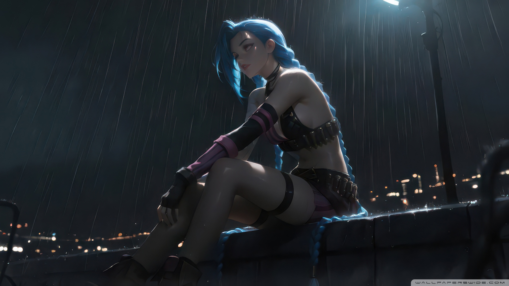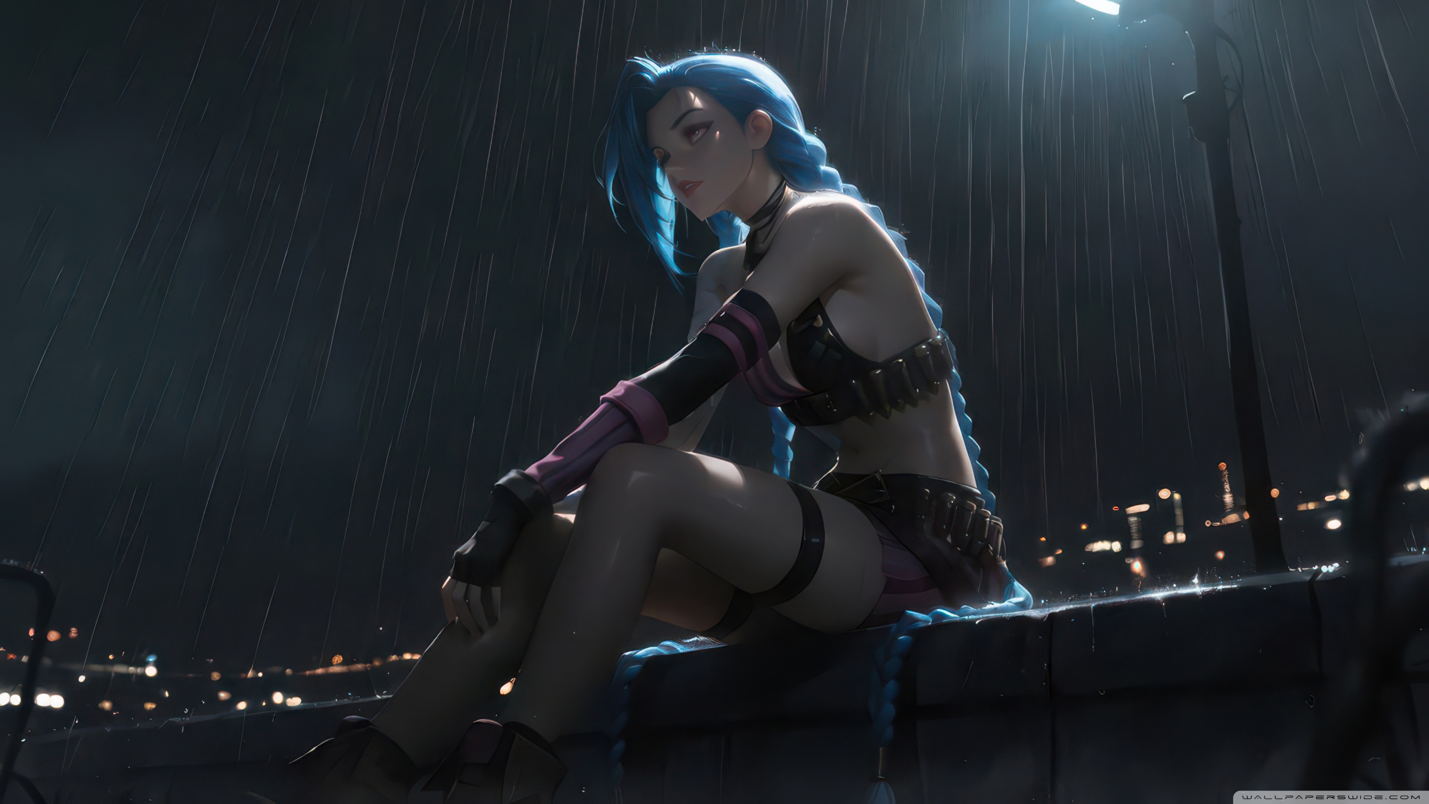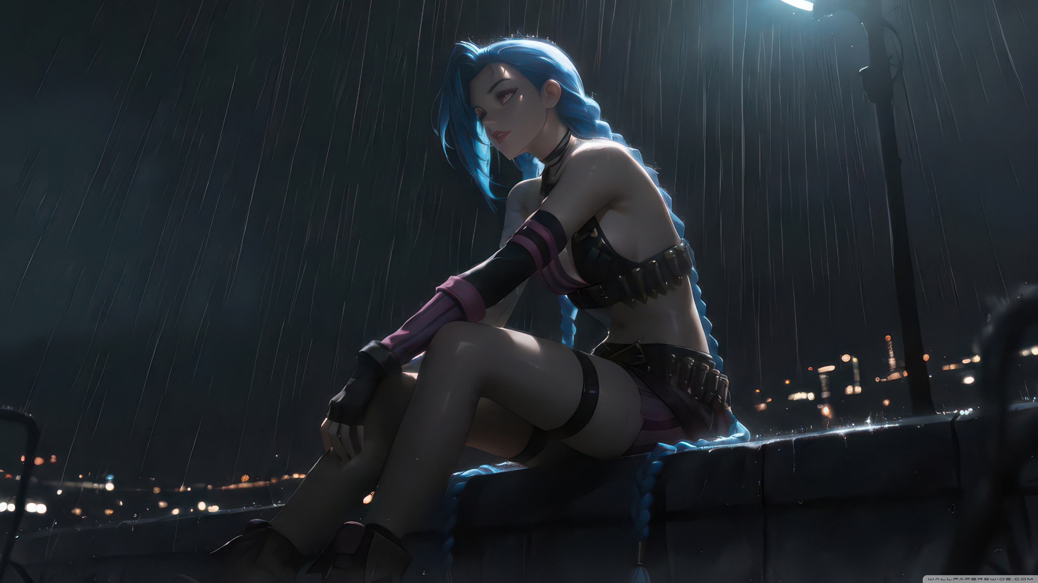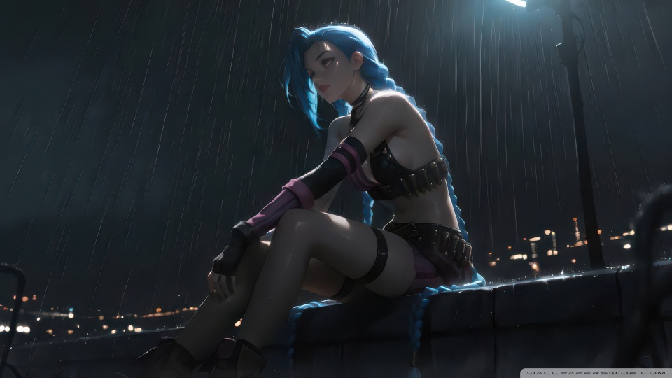 Download Jinx Alone In Rain 4K UHD Wallpaper