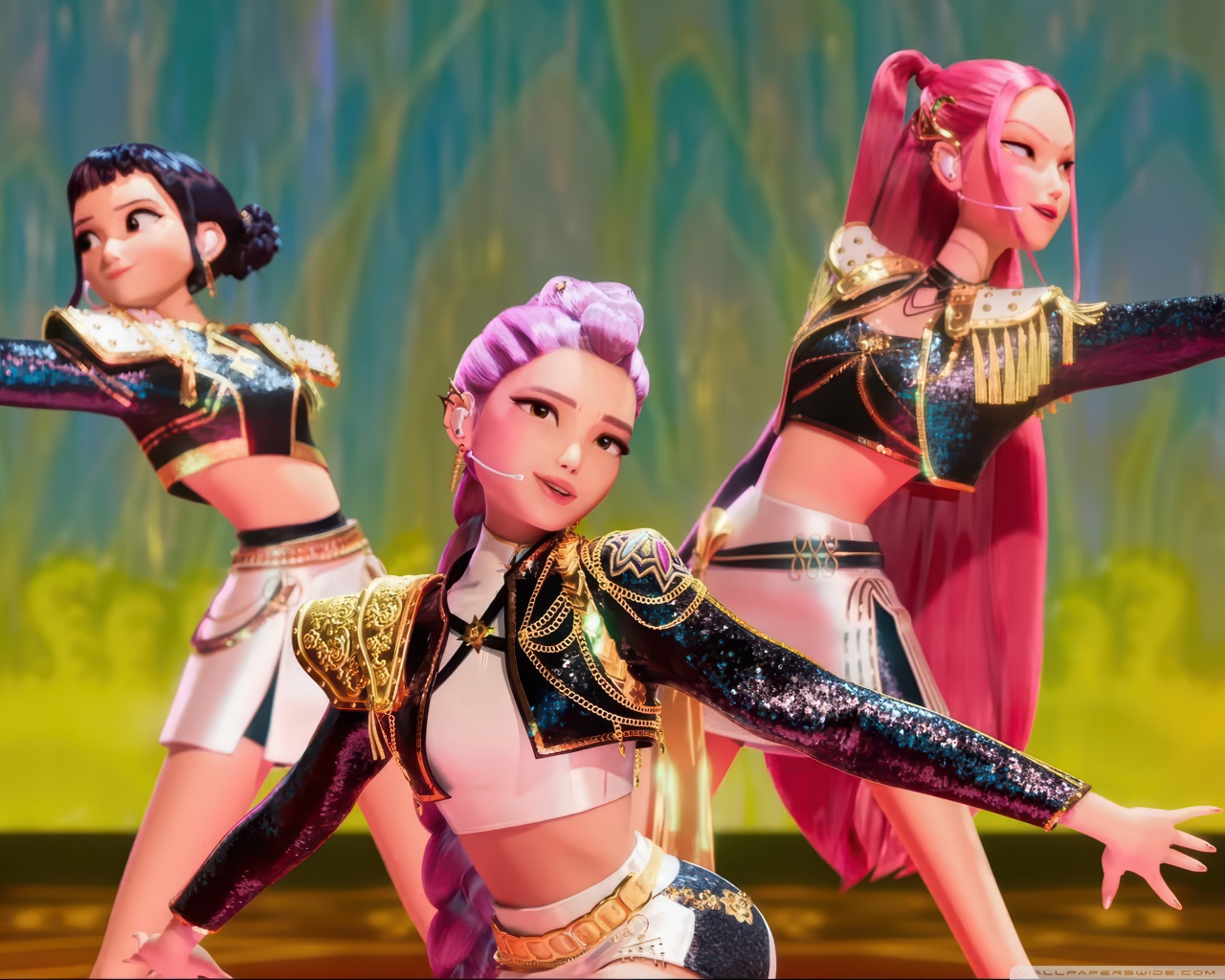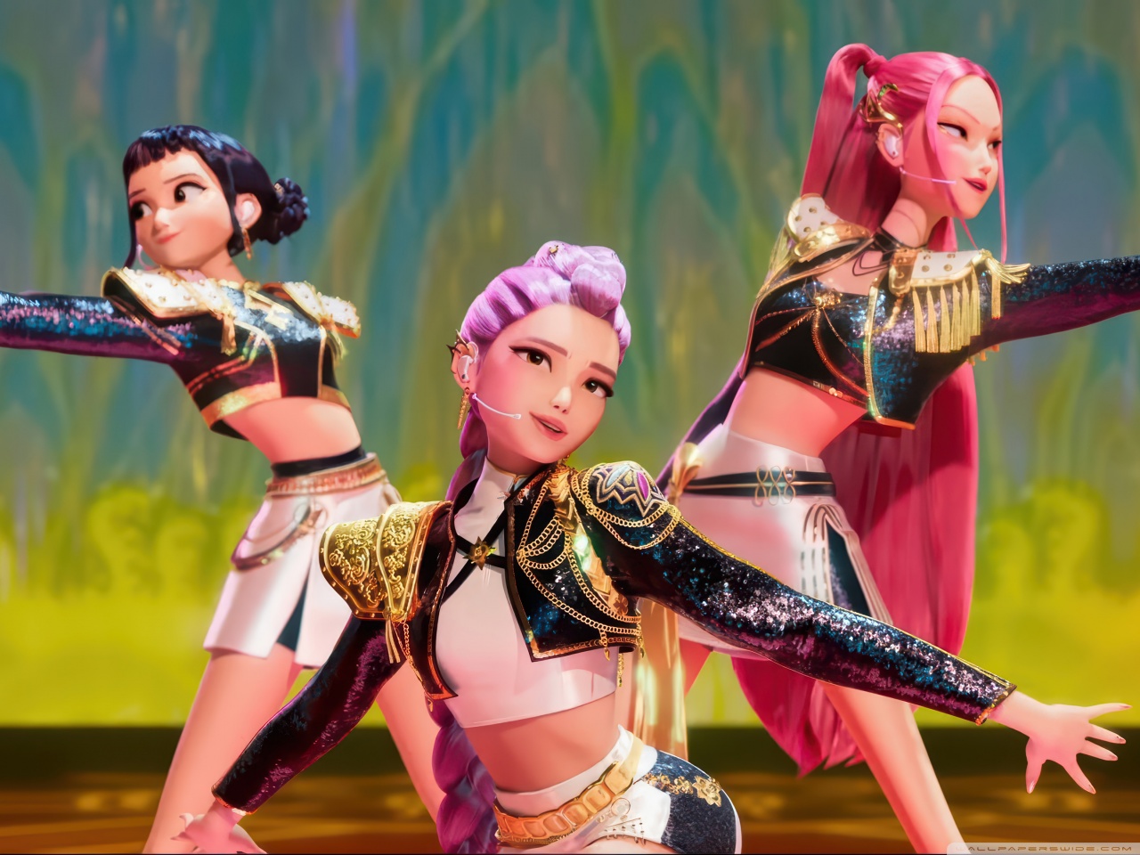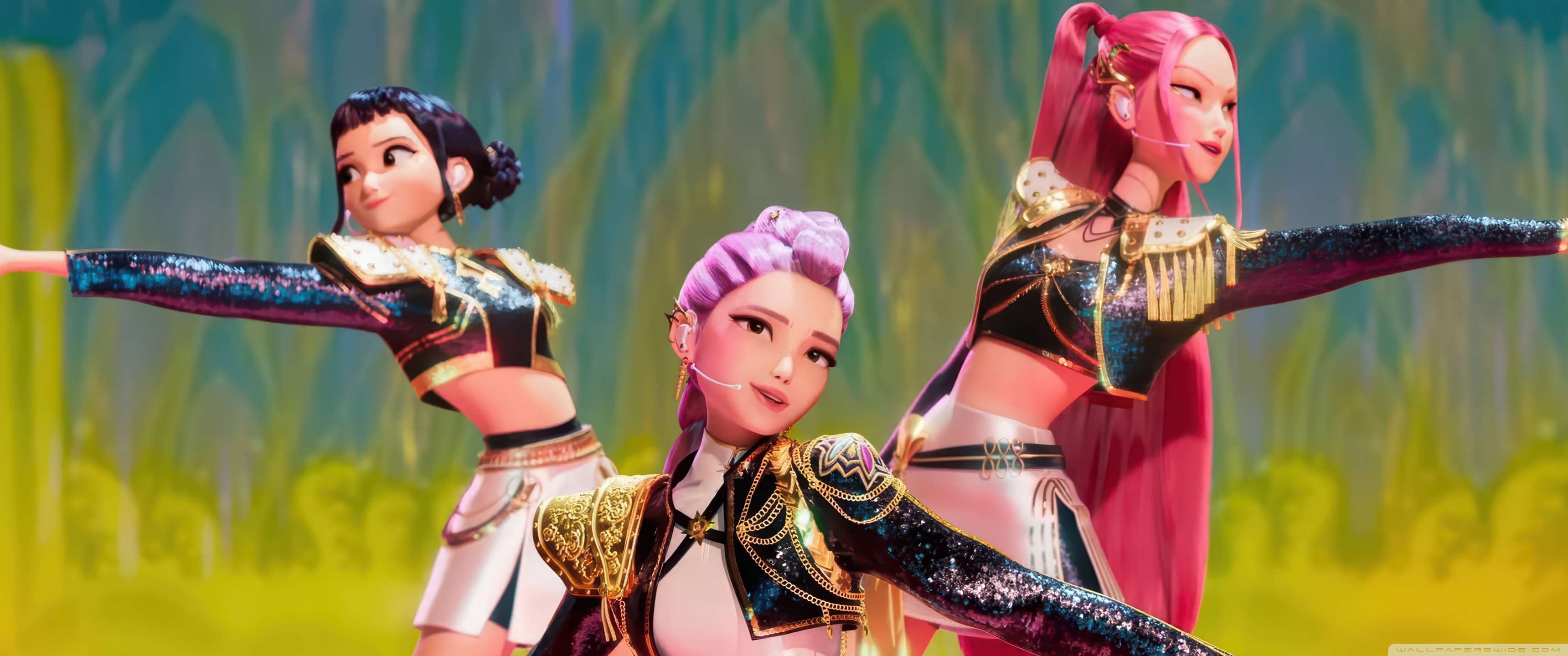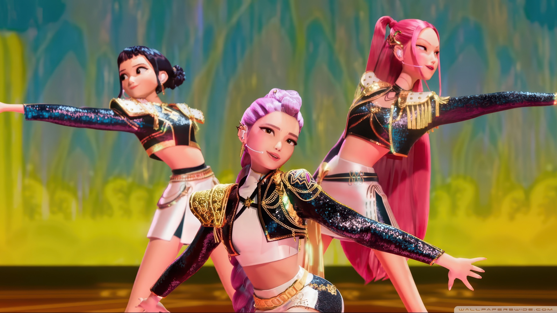 Download KPop Demon Hunters, Rumi, Mira, and Zoey with... 4K UHD Wallpaper
