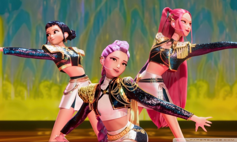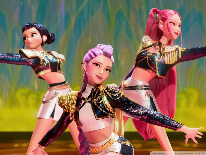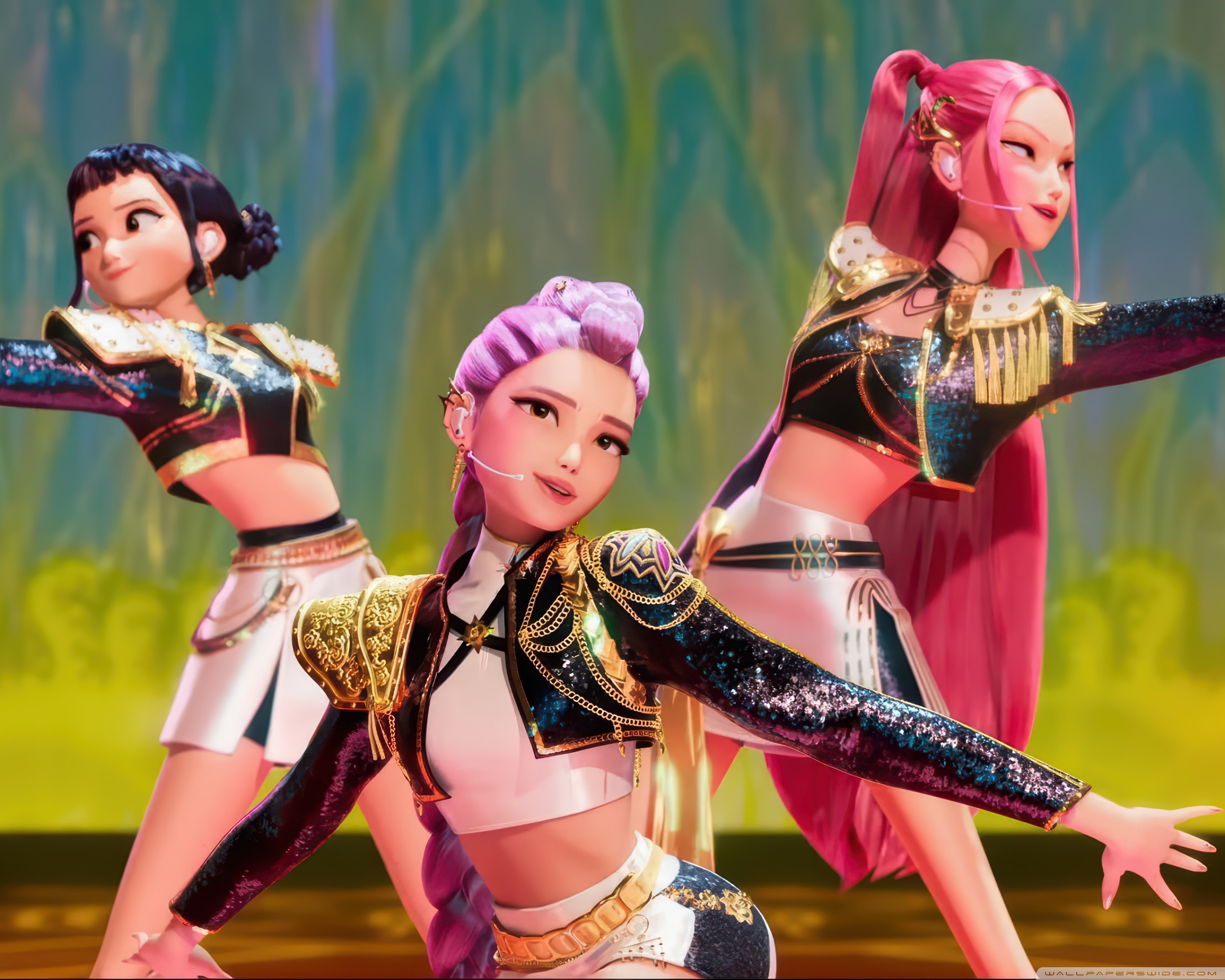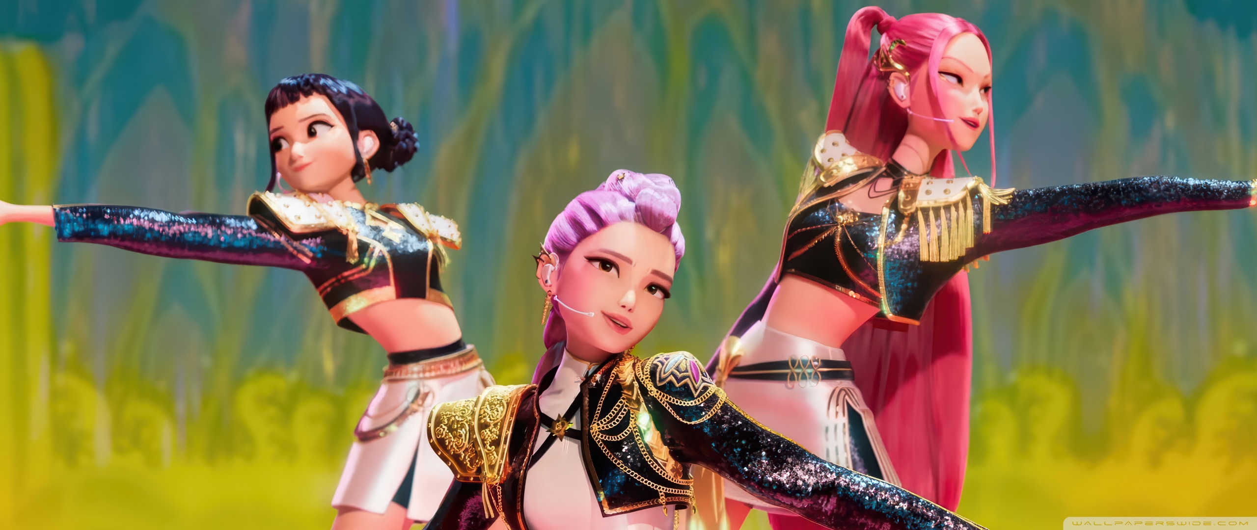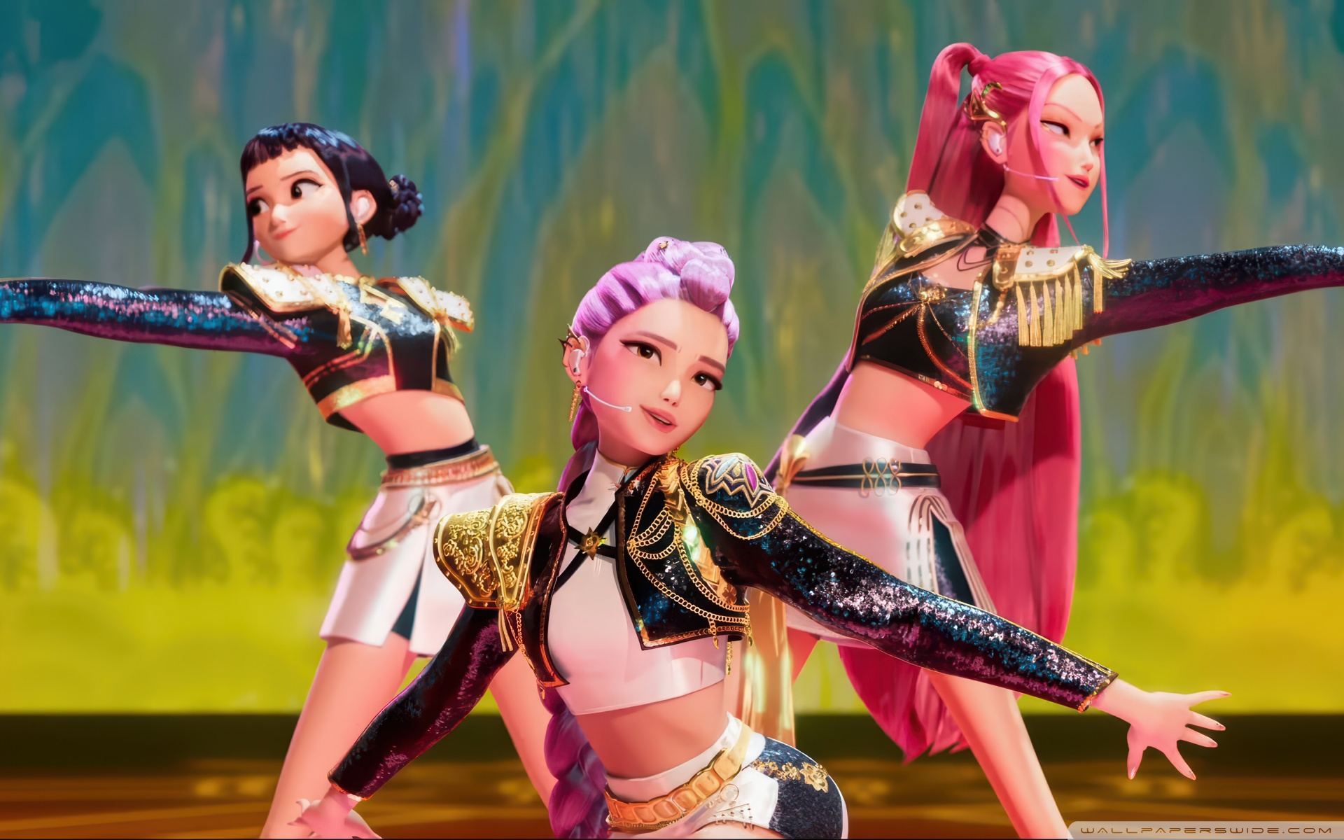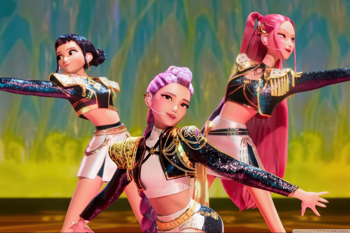 Download KPop Demon Hunters, Rumi, Mira, and Zoey with... 4K UHD Wallpaper