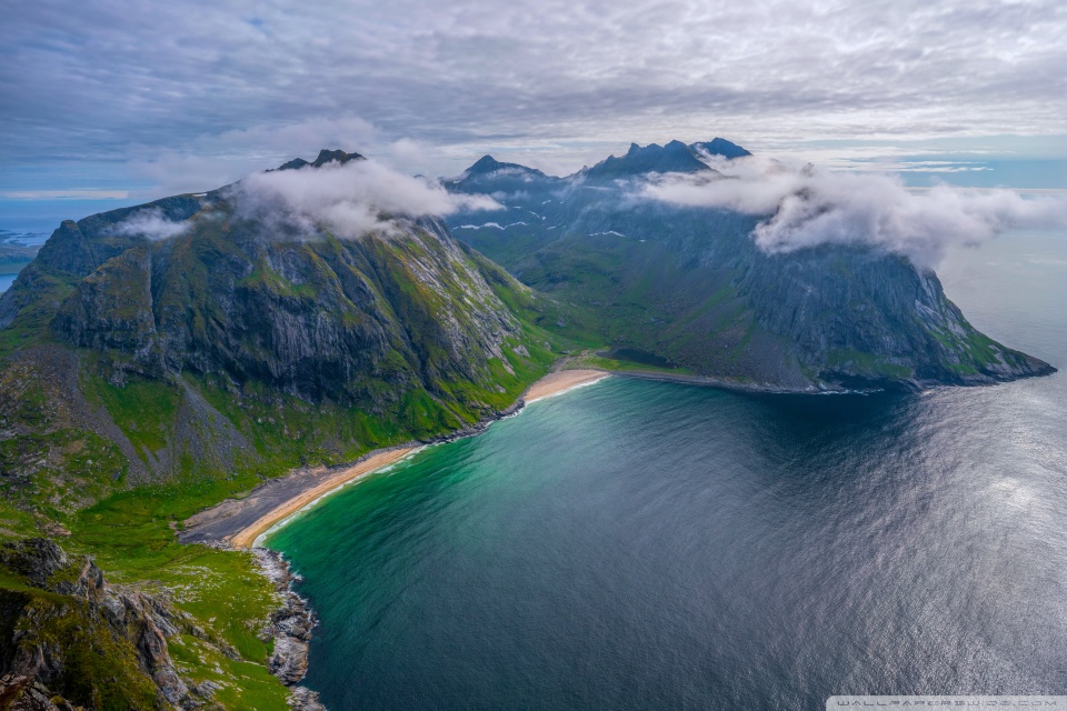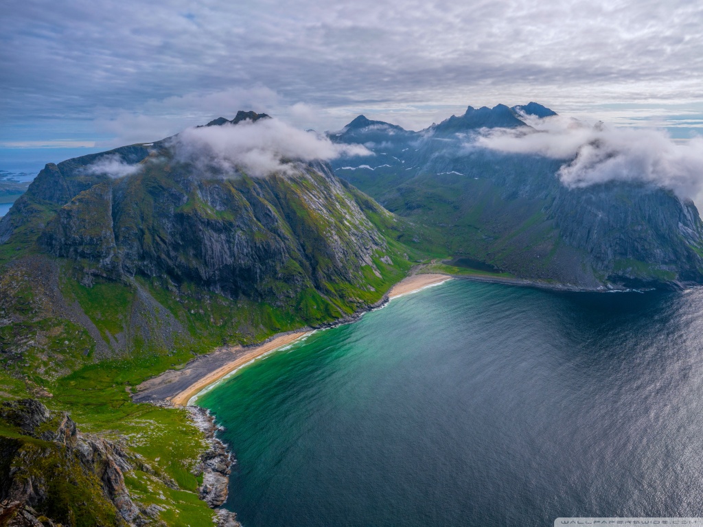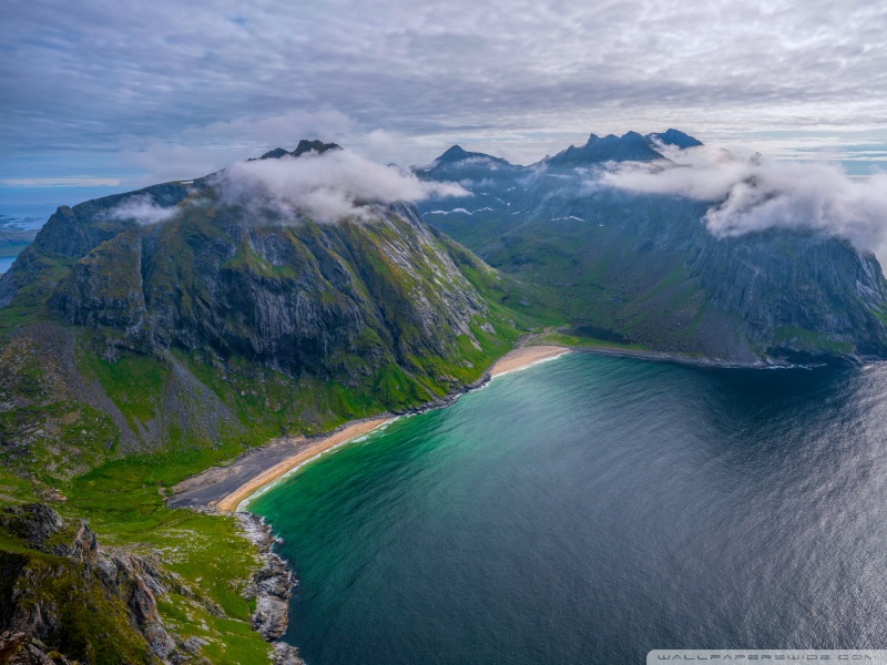 Download Kvalvika Beach, Lofoten Islands, Norway 4K UHD Wallpaper