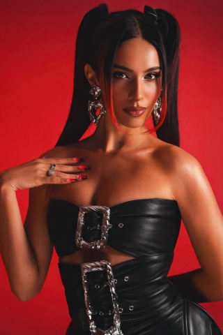 Download Kylie Cantrall 2026 Photoshoot, Red Background 4K UHD Wallpaper