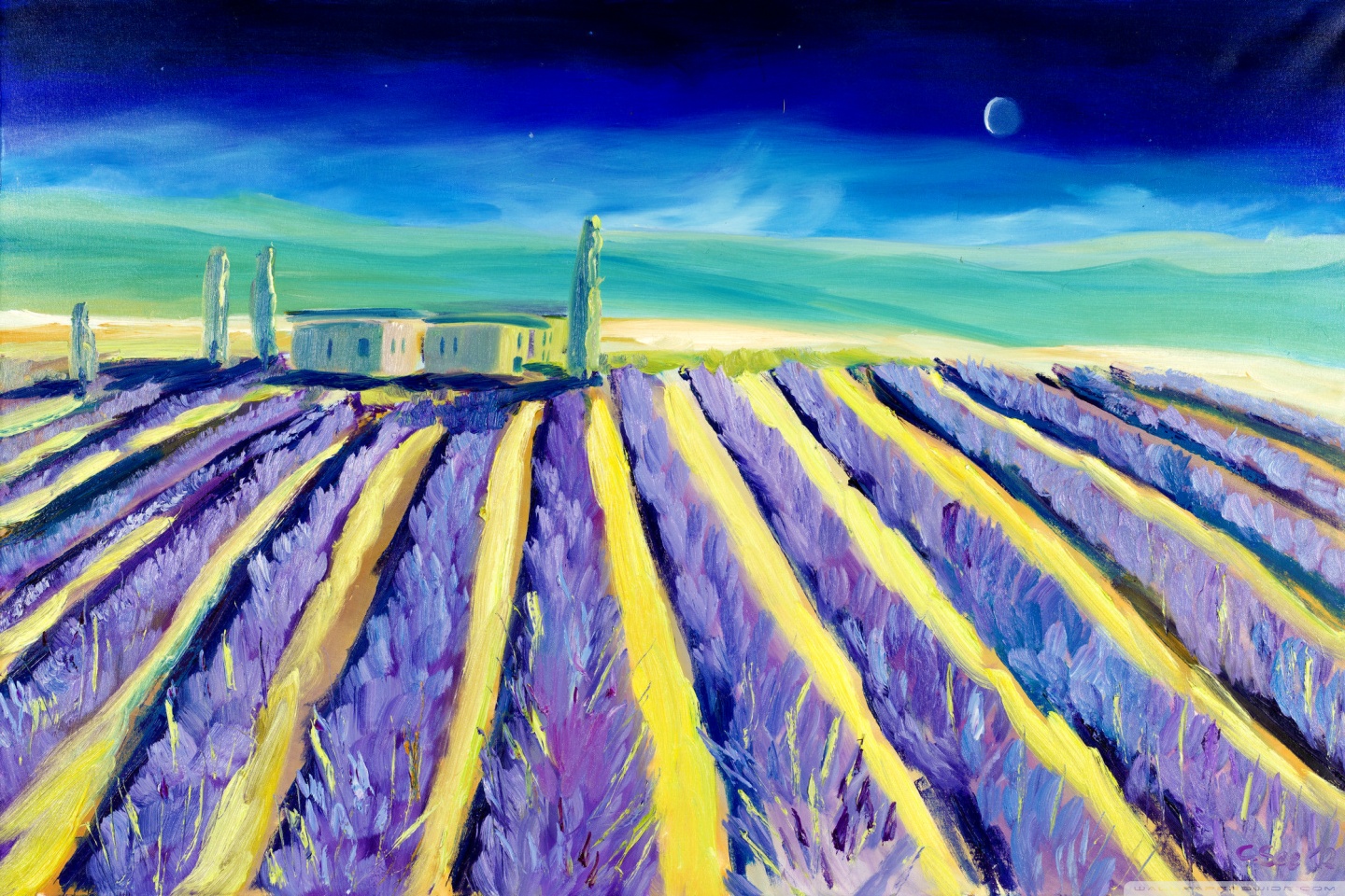 Download Lavender Field Toscany Painting 4K UHD Wallpaper