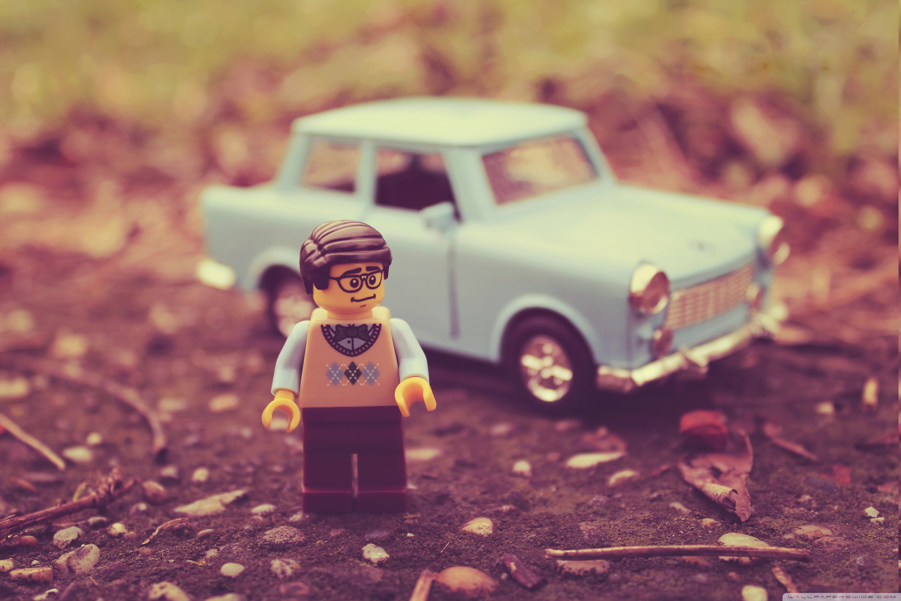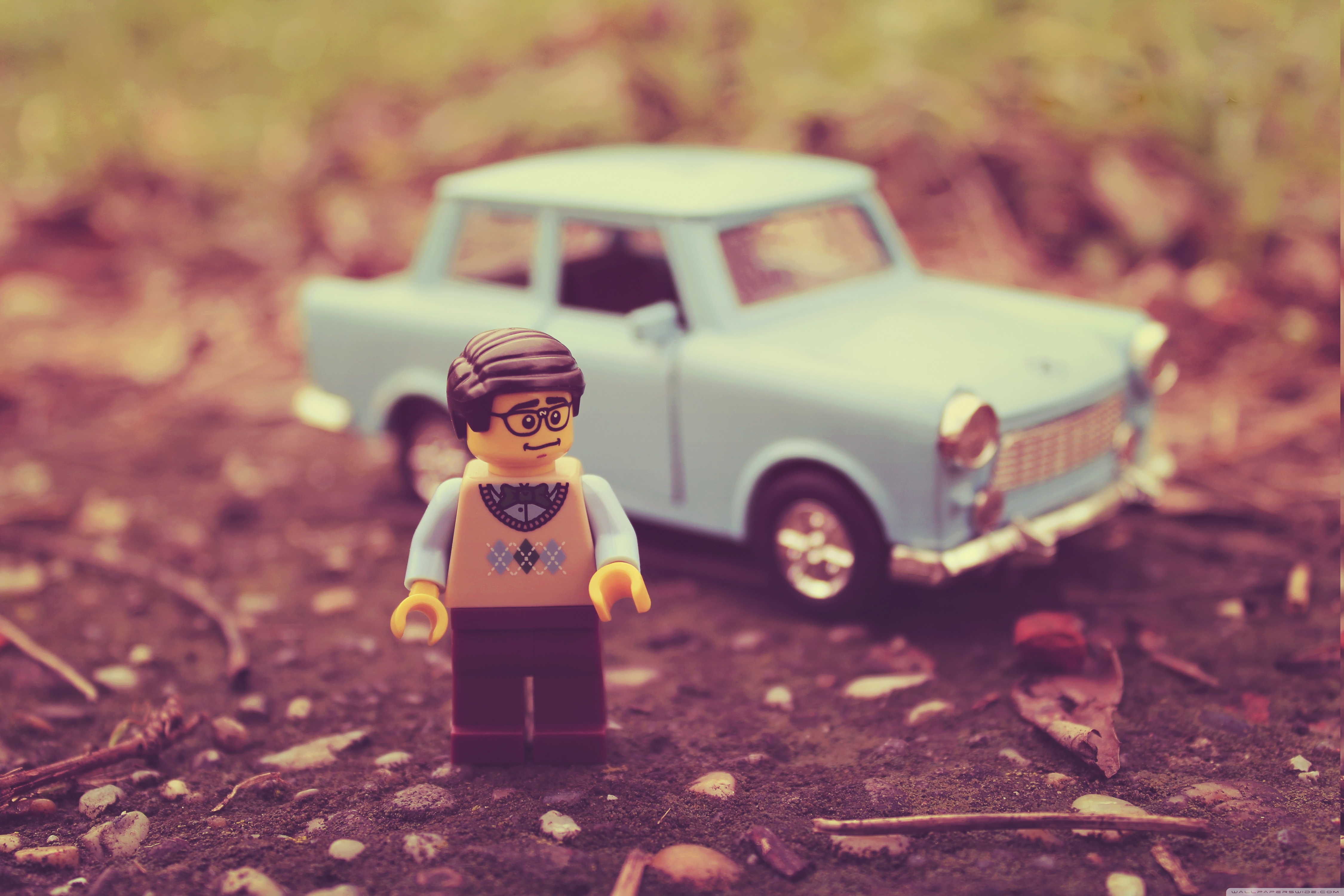 Download LEGO Figurine, Trabant Miniature Car 4K UHD Wallpaper