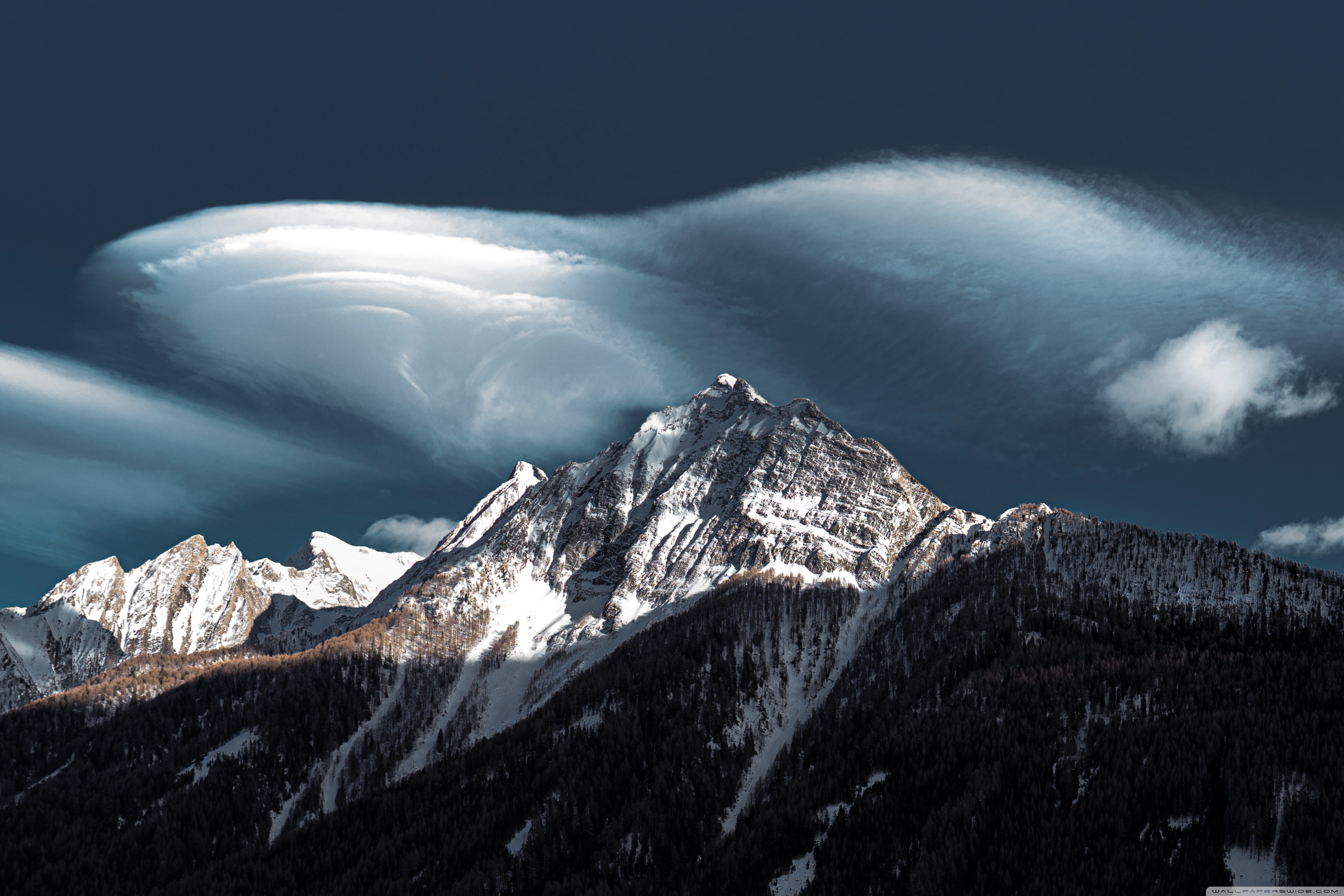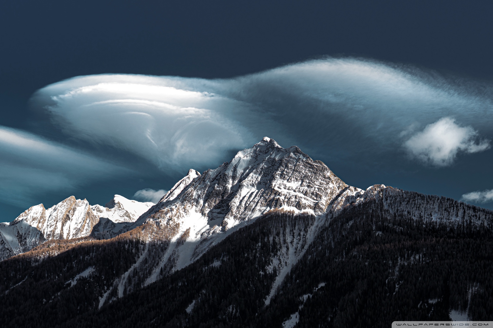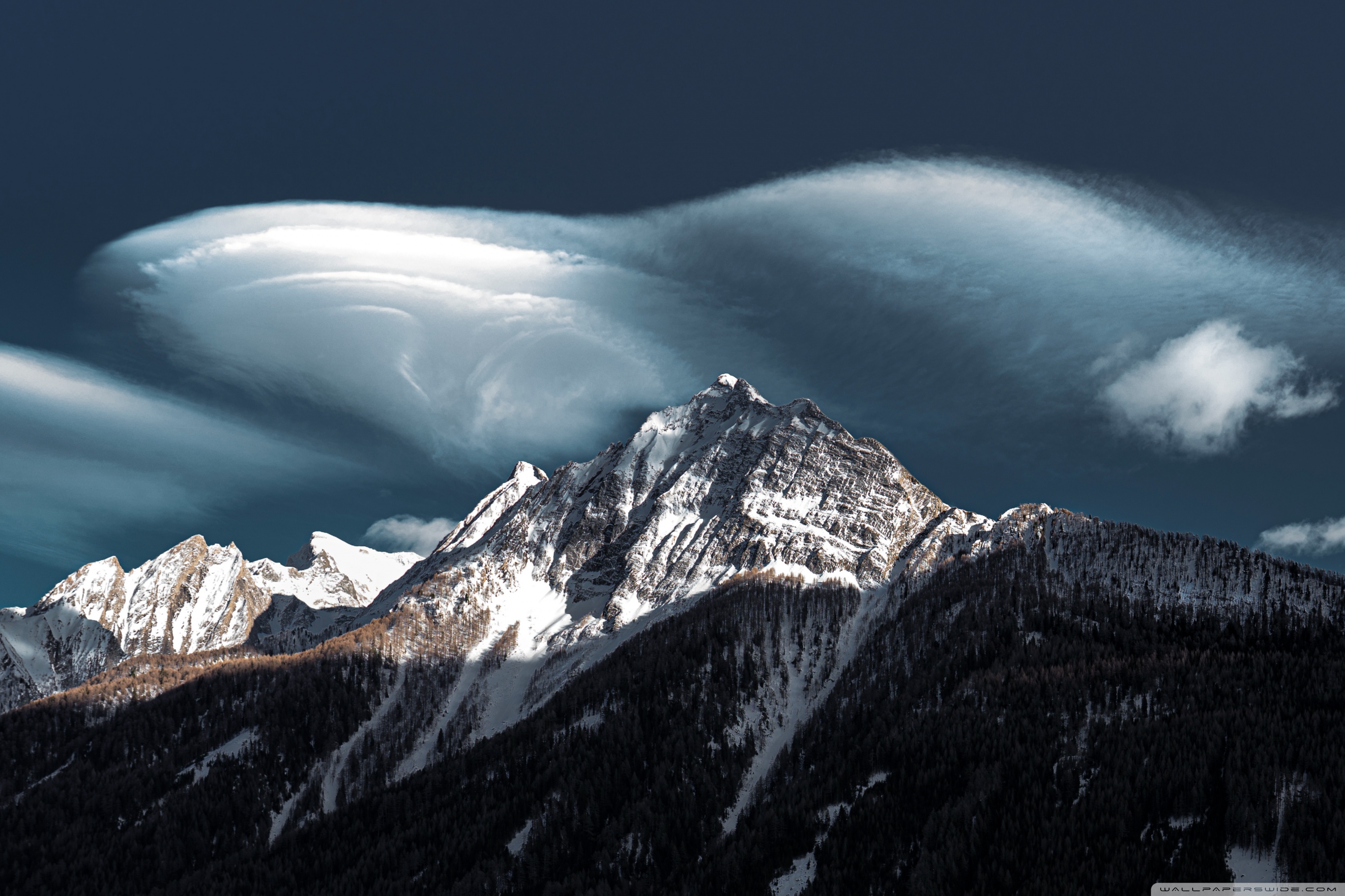 Download Lenticular Clouds over Mountain Peaks 4K UHD Wallpaper