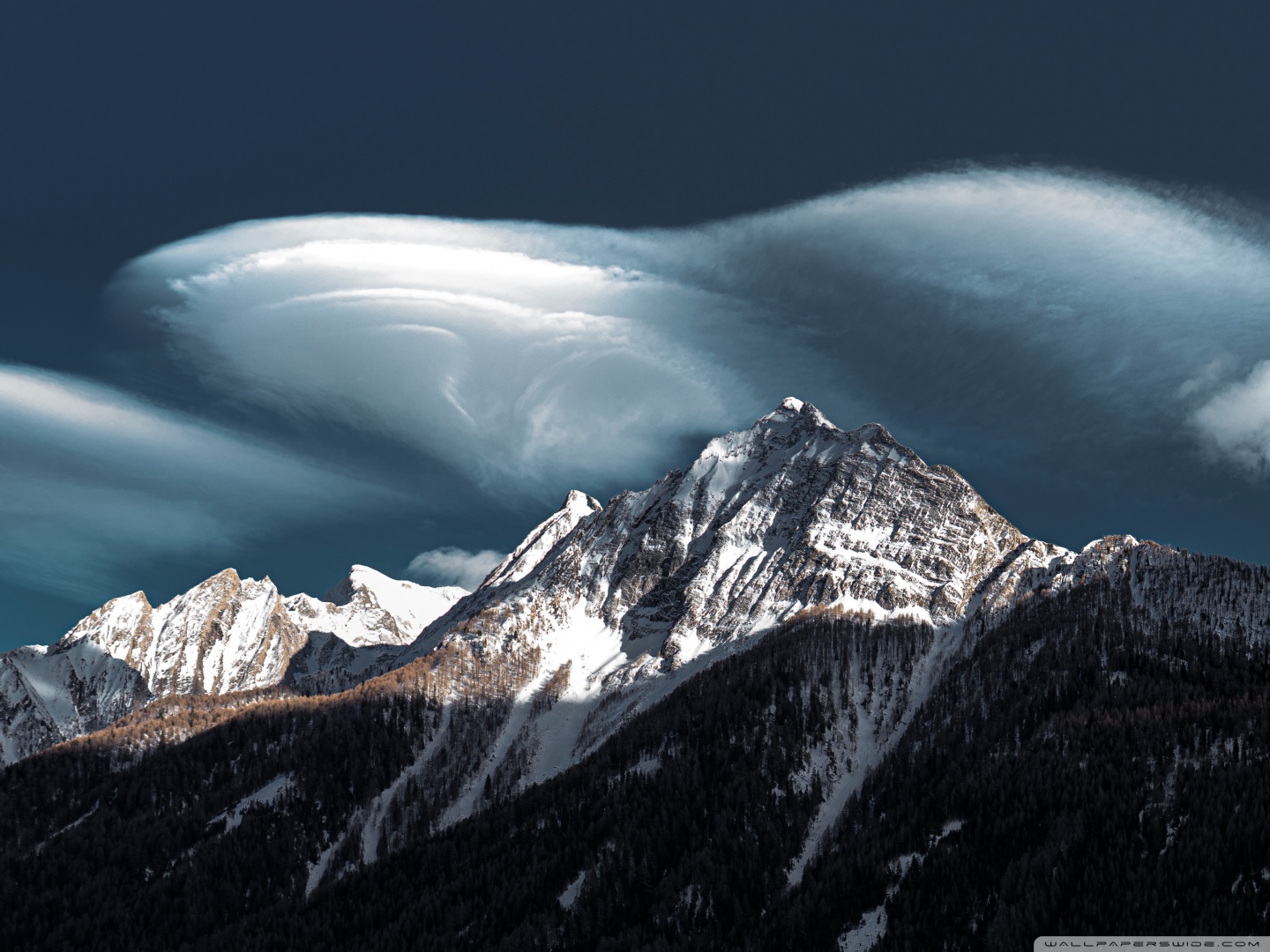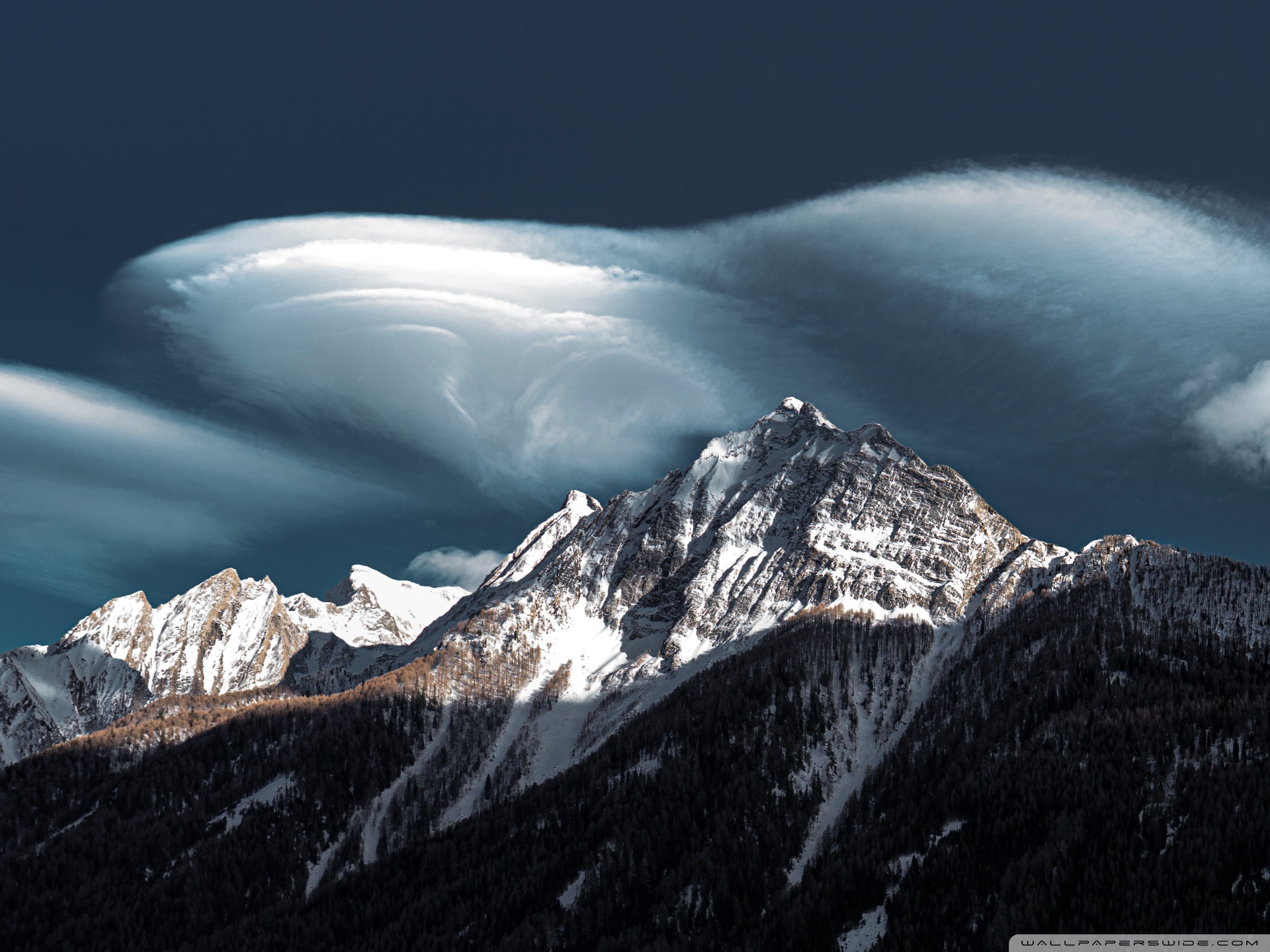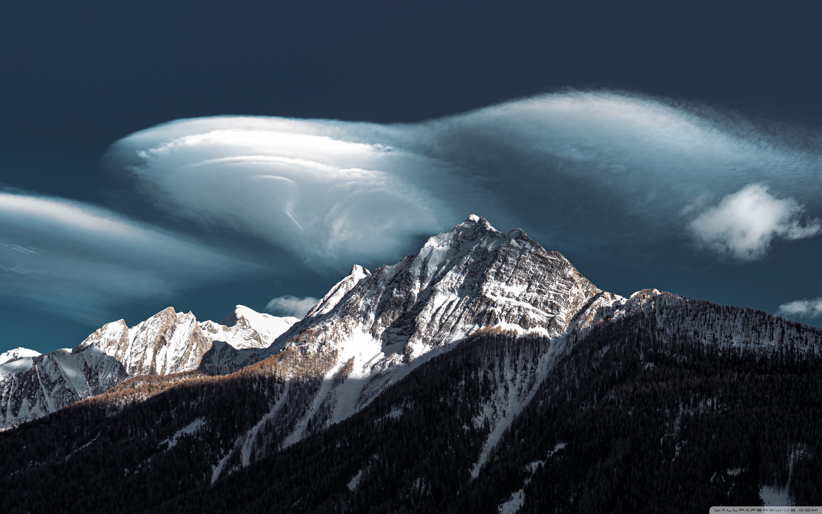 Download Lenticular Clouds over Mountain Peaks 4K UHD Wallpaper