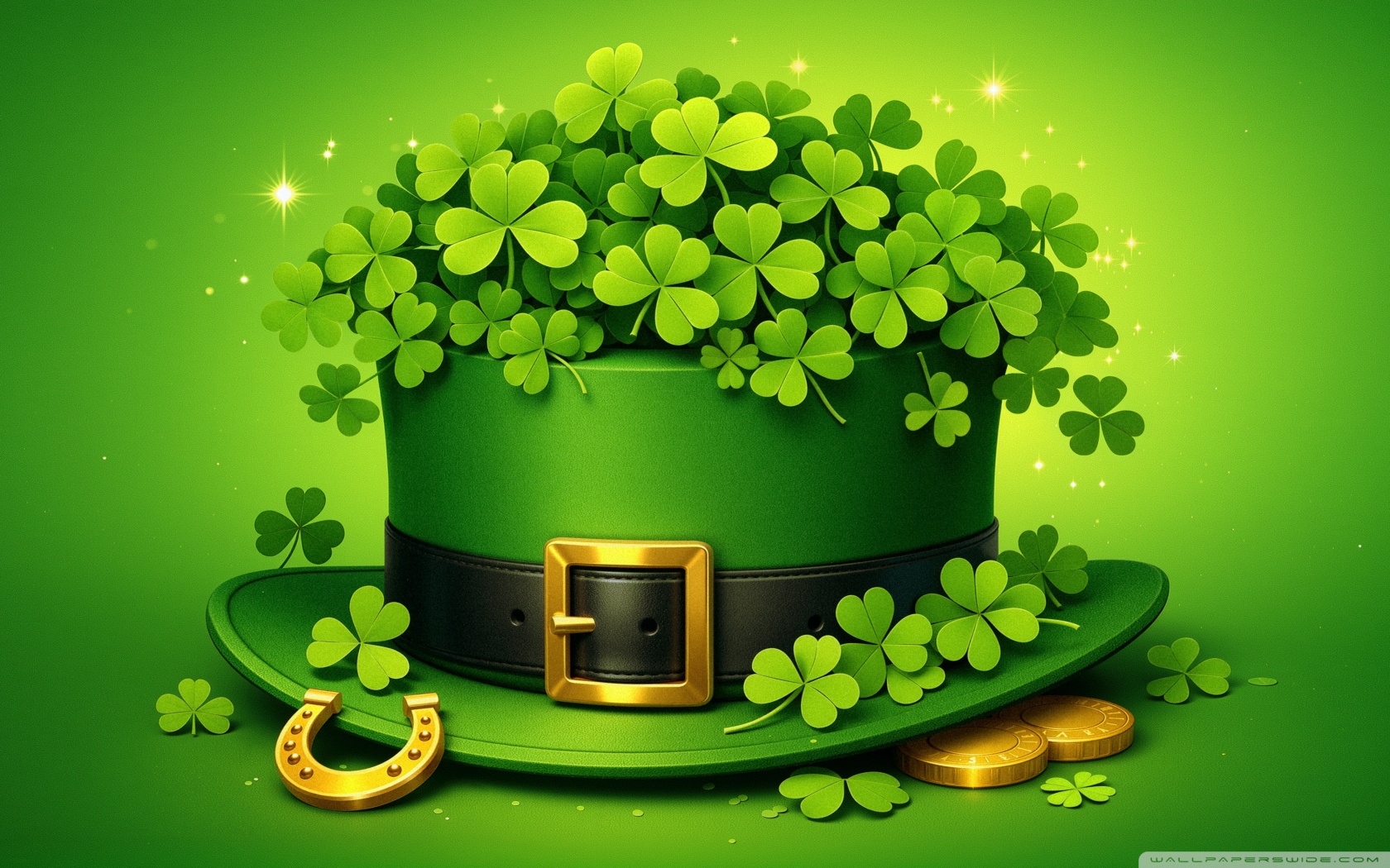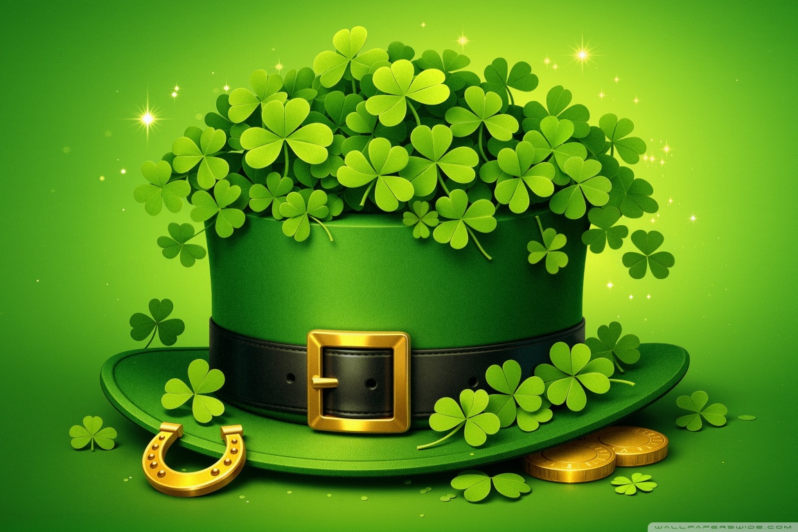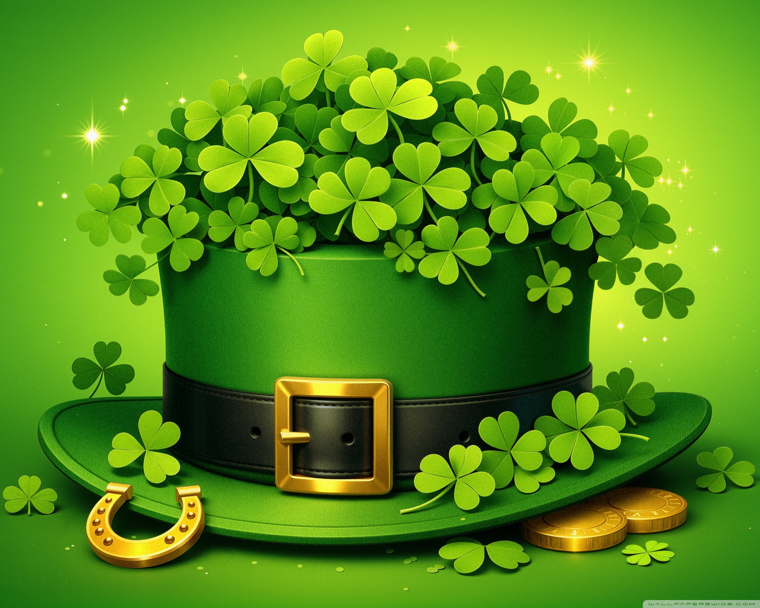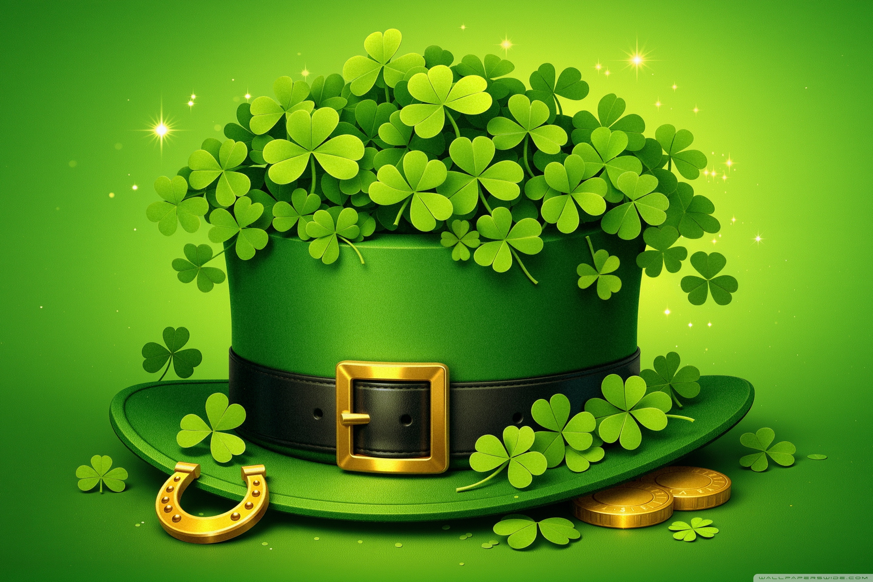 Download Leprechaun Hat, Shamrock, St Patricks Day 4K UHD Wallpaper