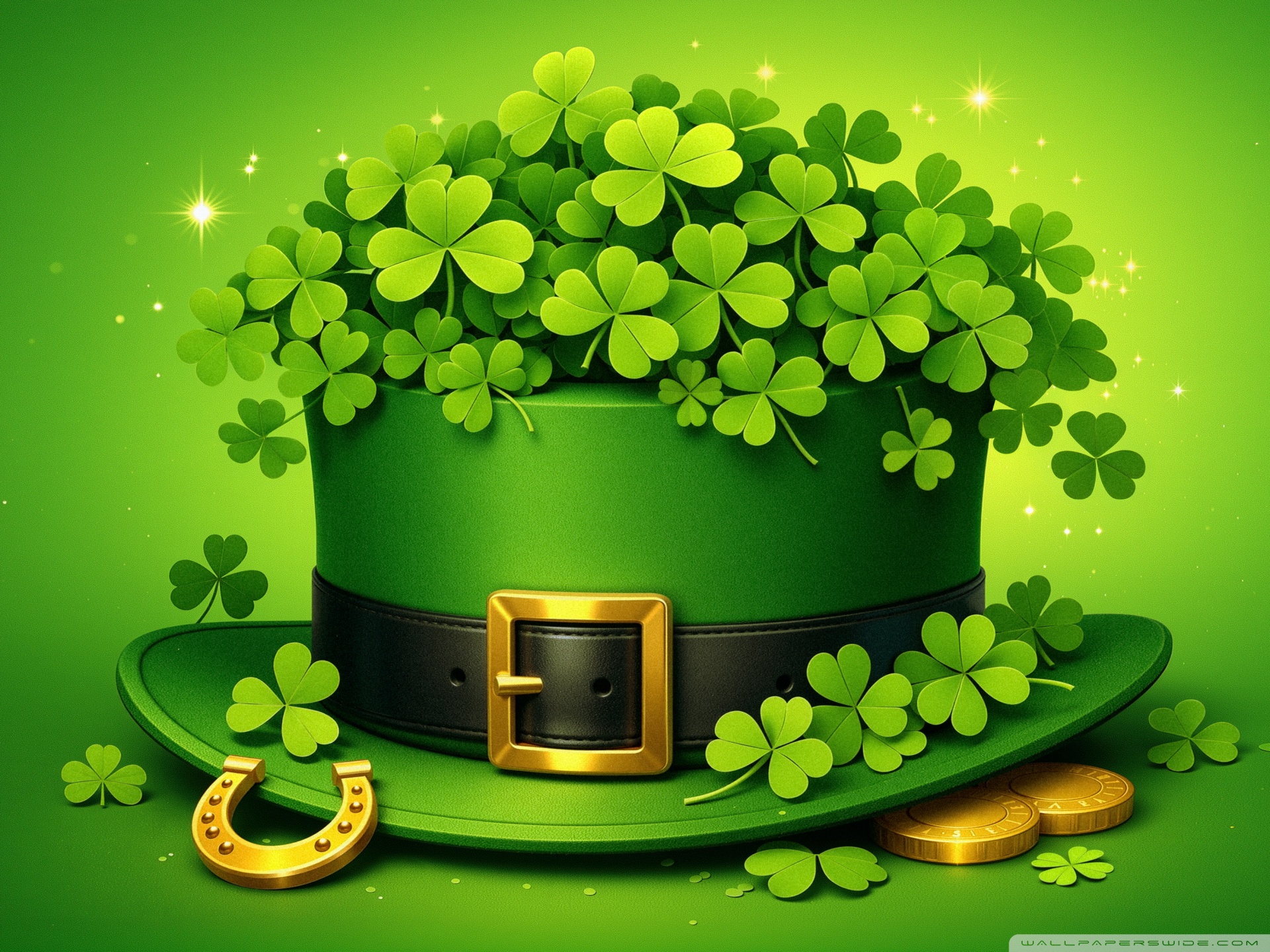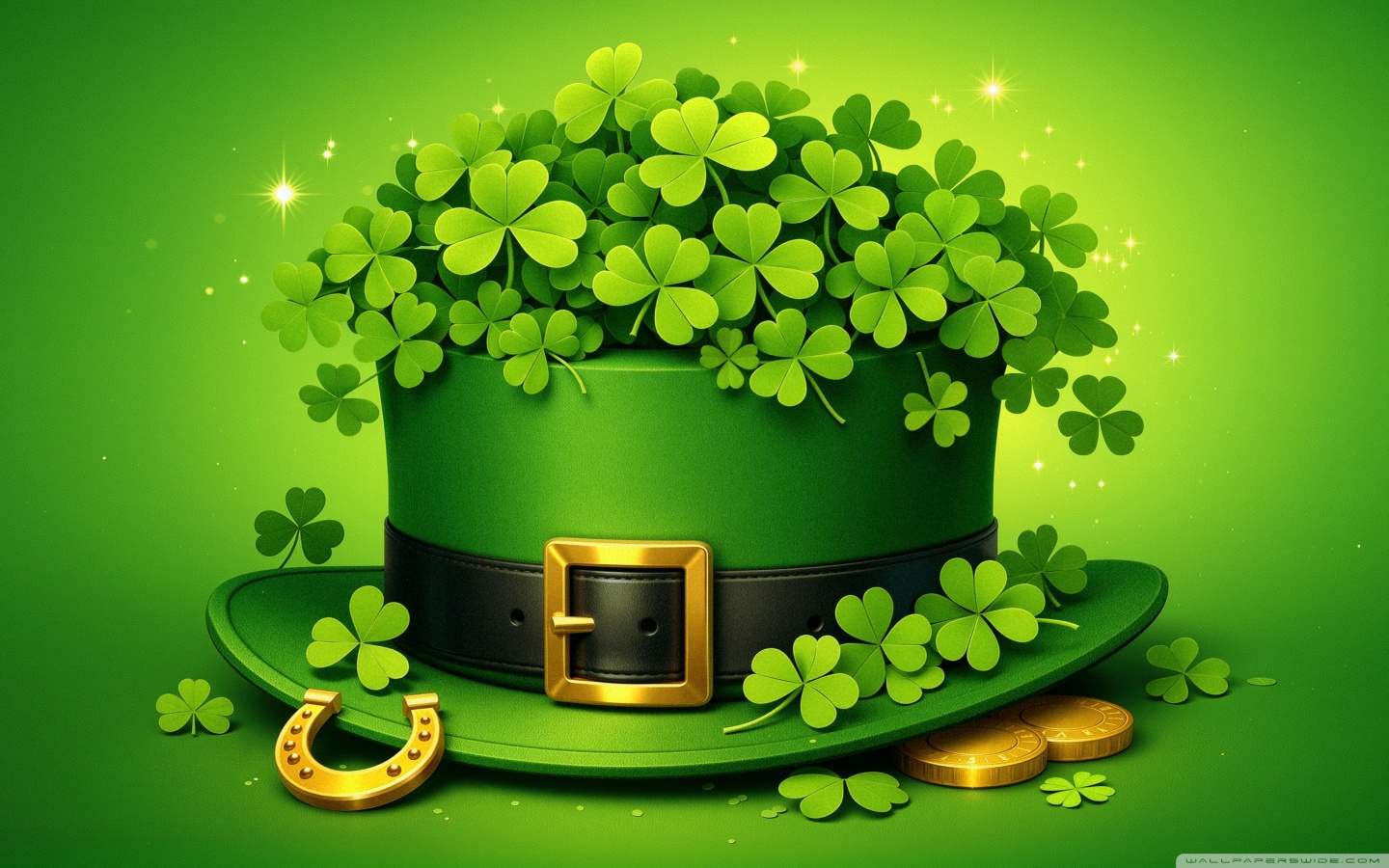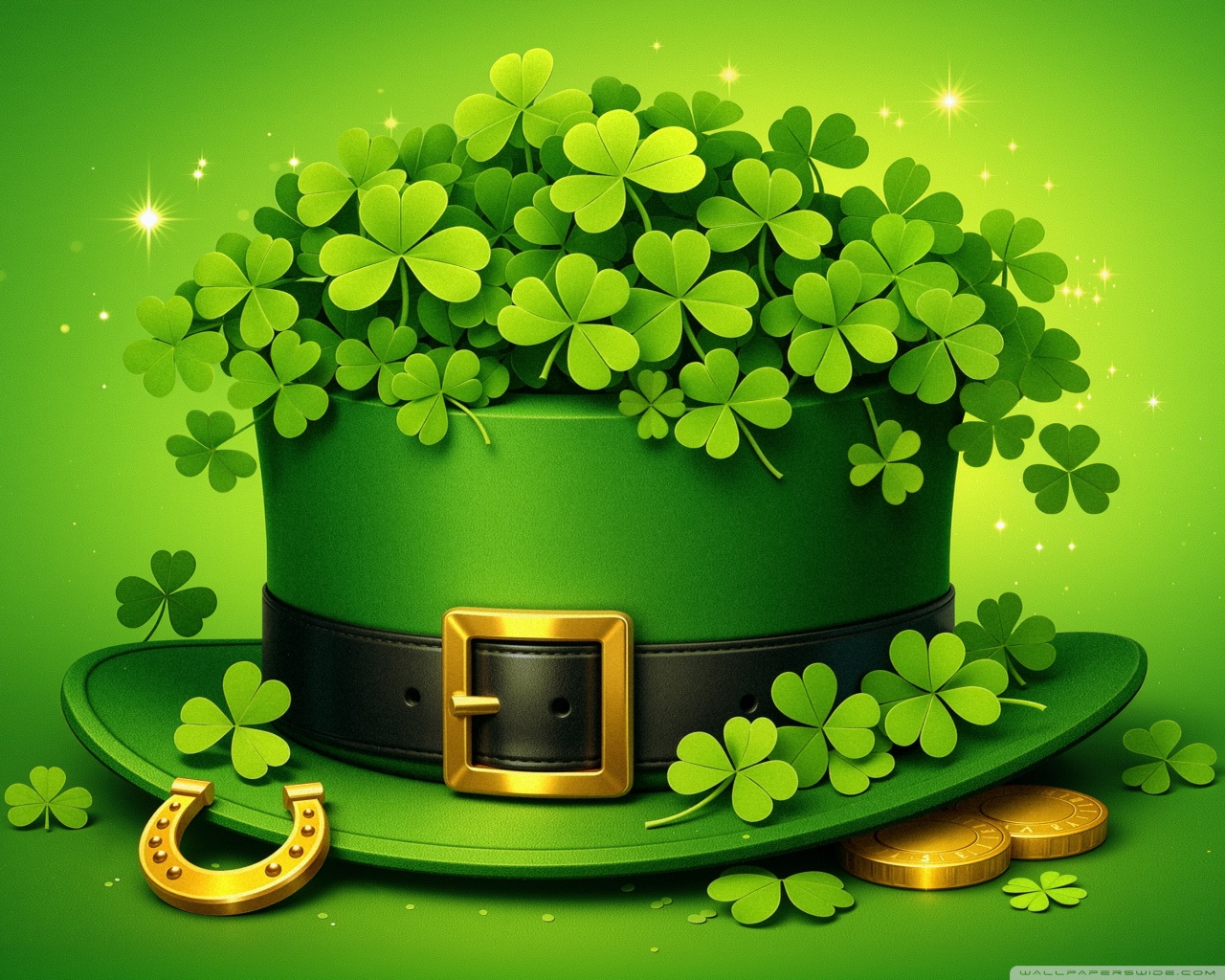 Download Leprechaun Hat, Shamrock, St Patricks Day 4K UHD Wallpaper
