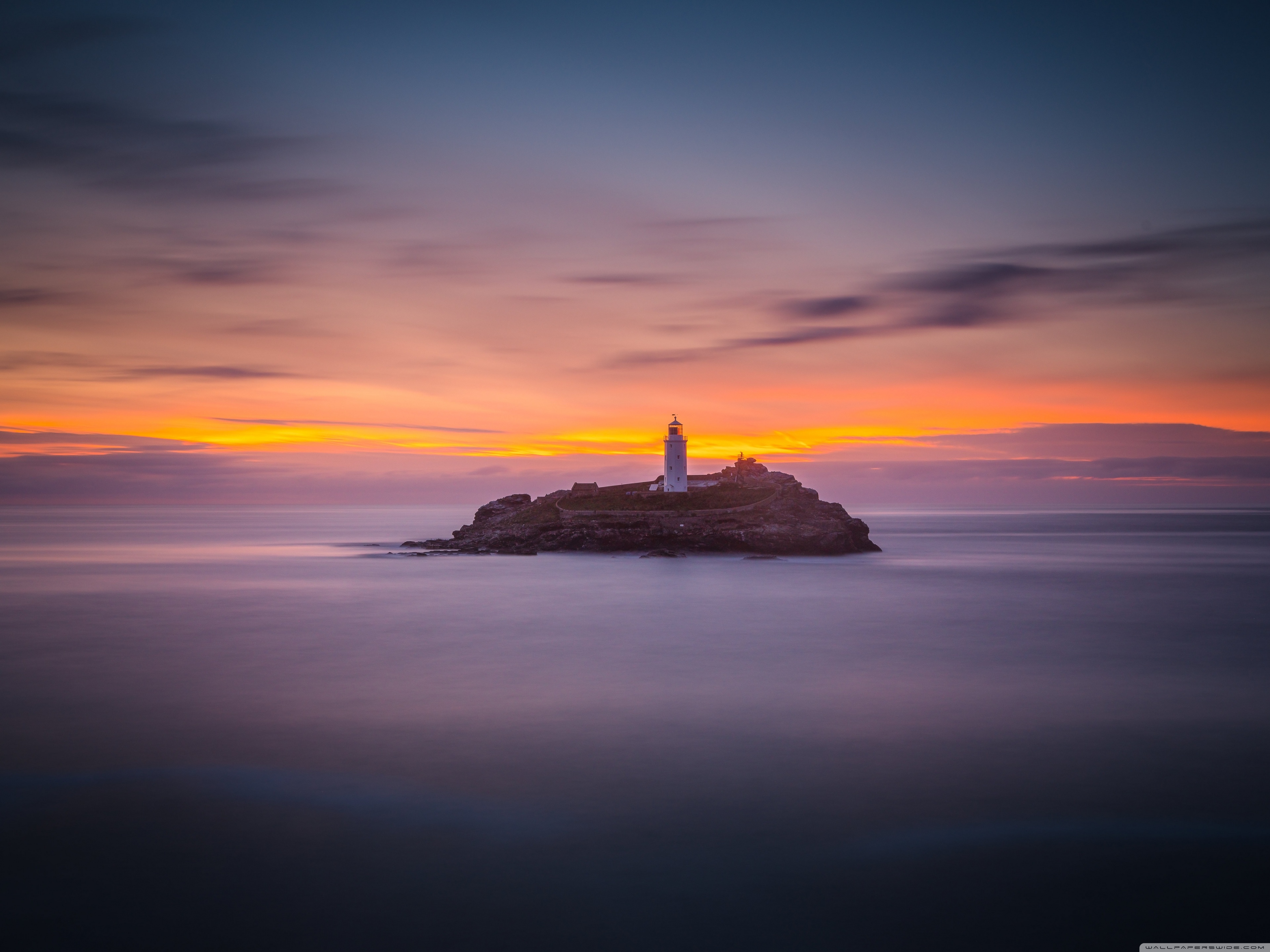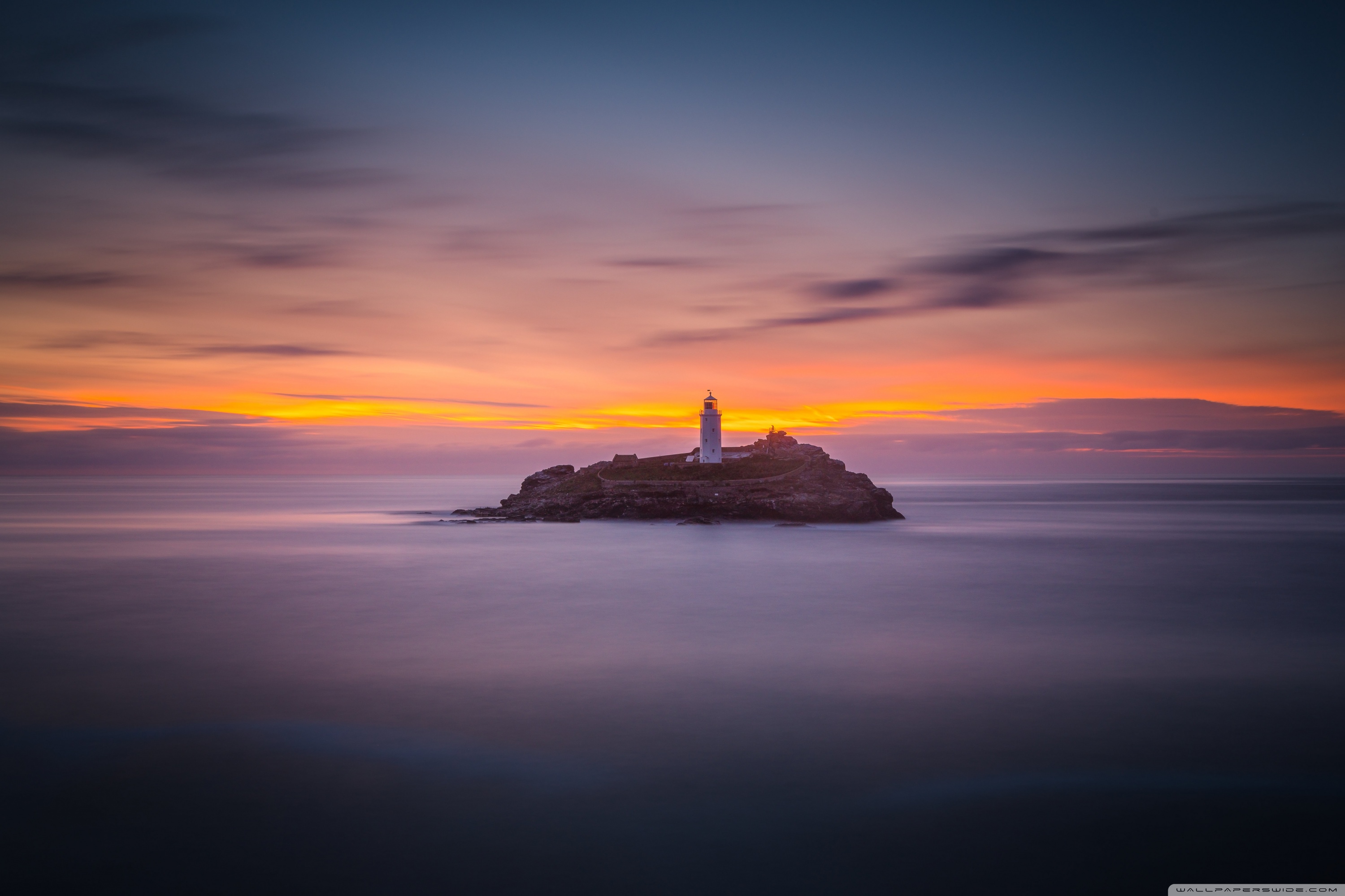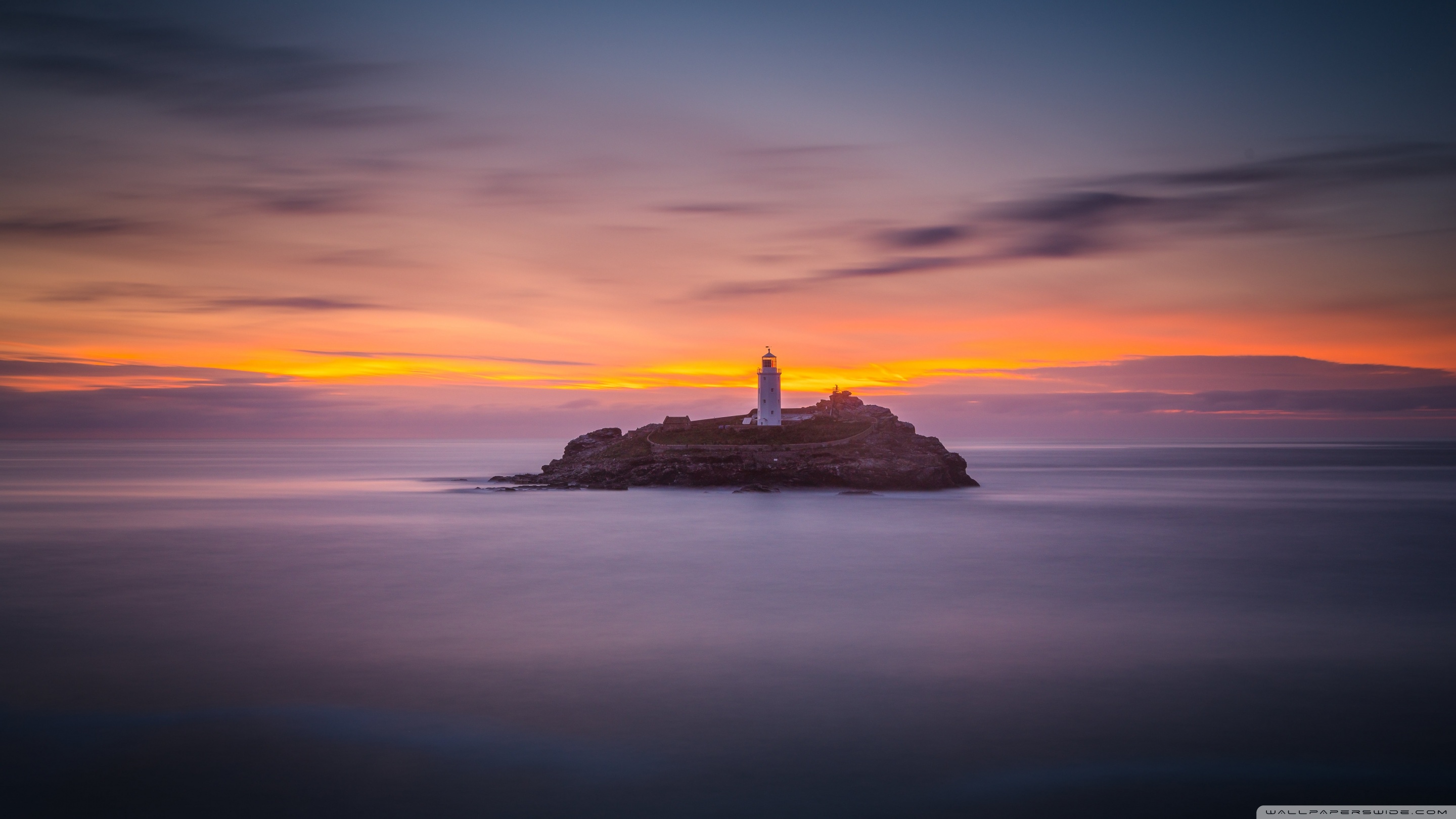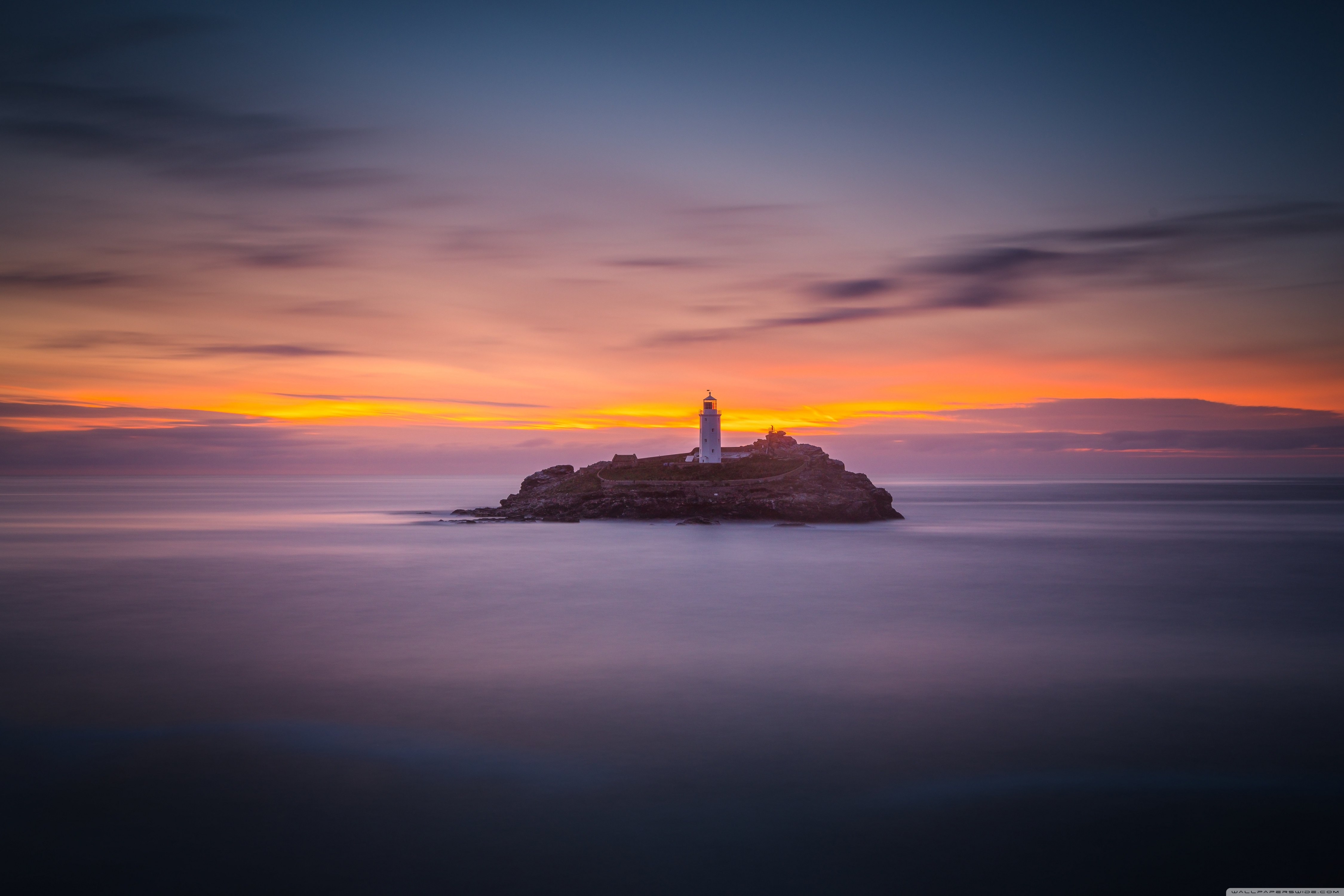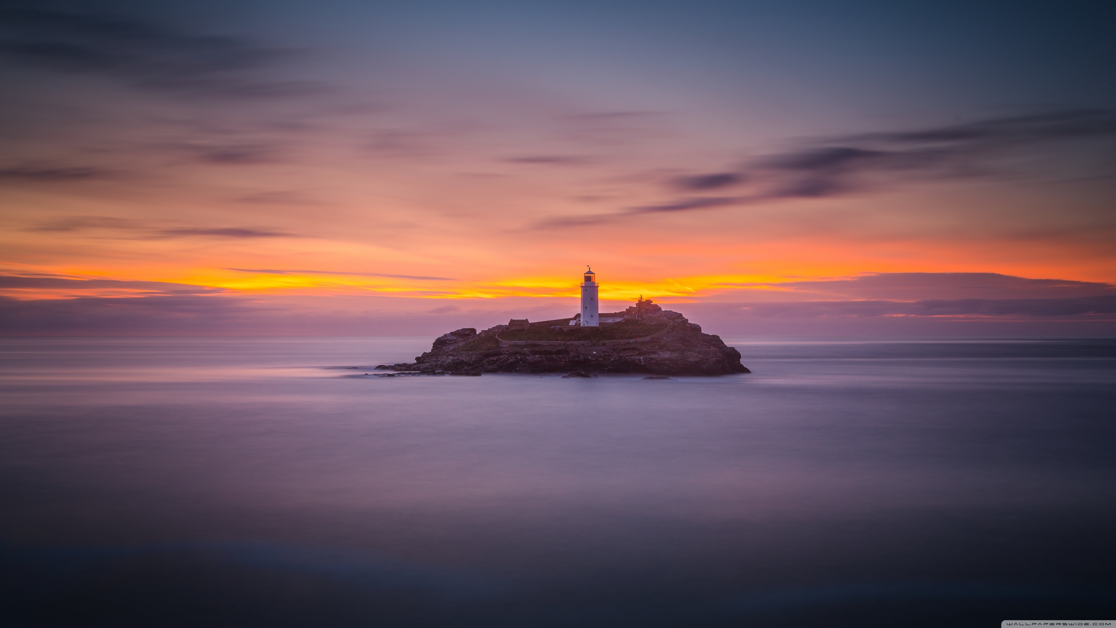 Download Lighthouse Island at Sunset 4K UHD Wallpaper