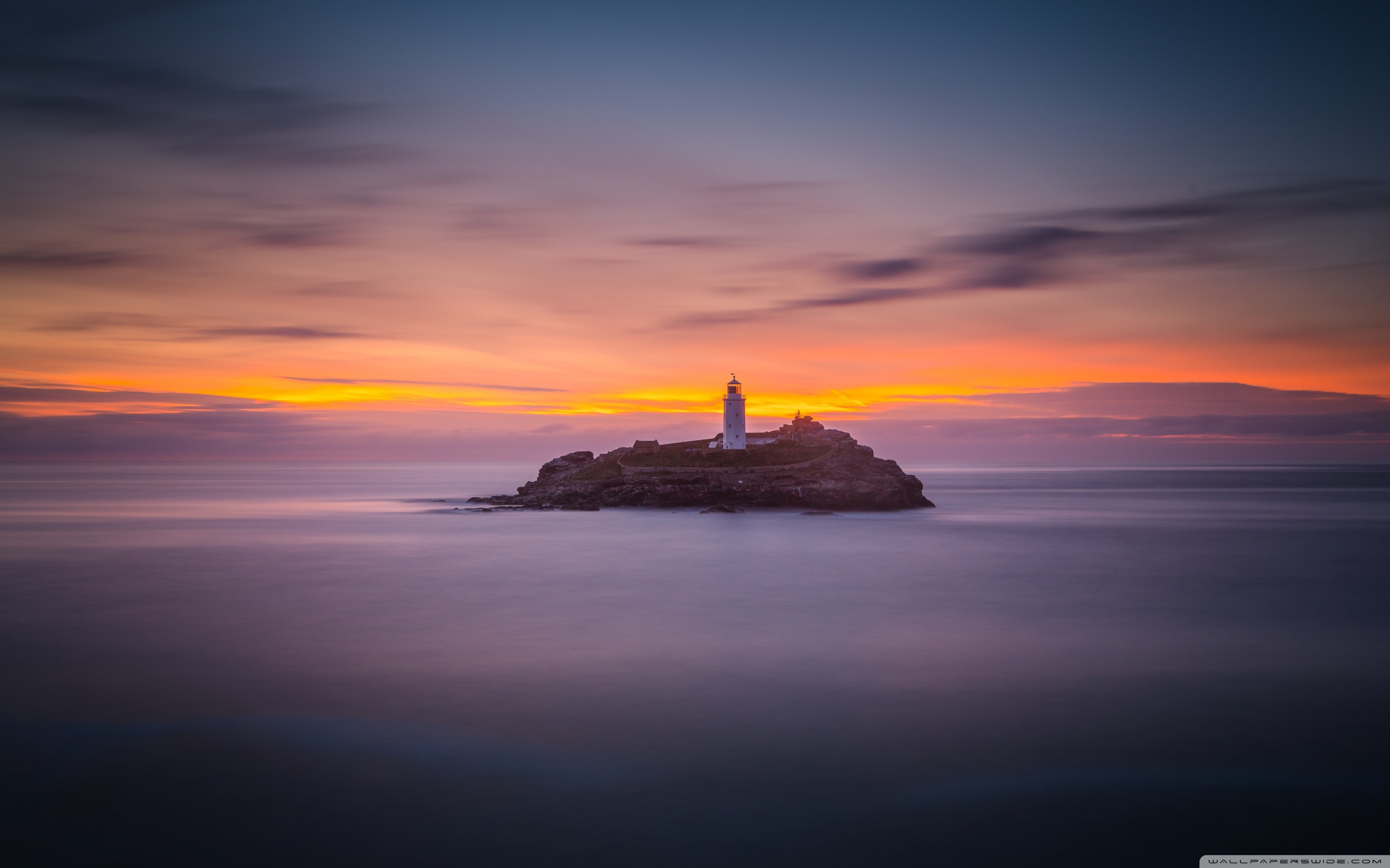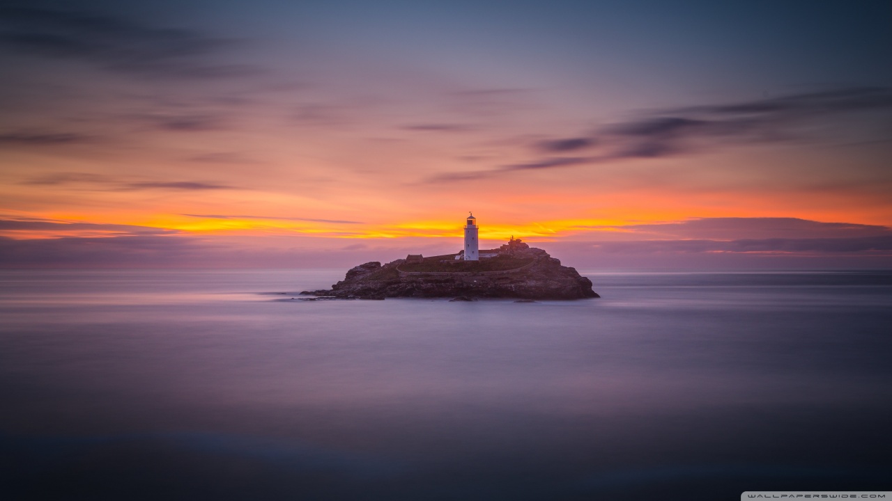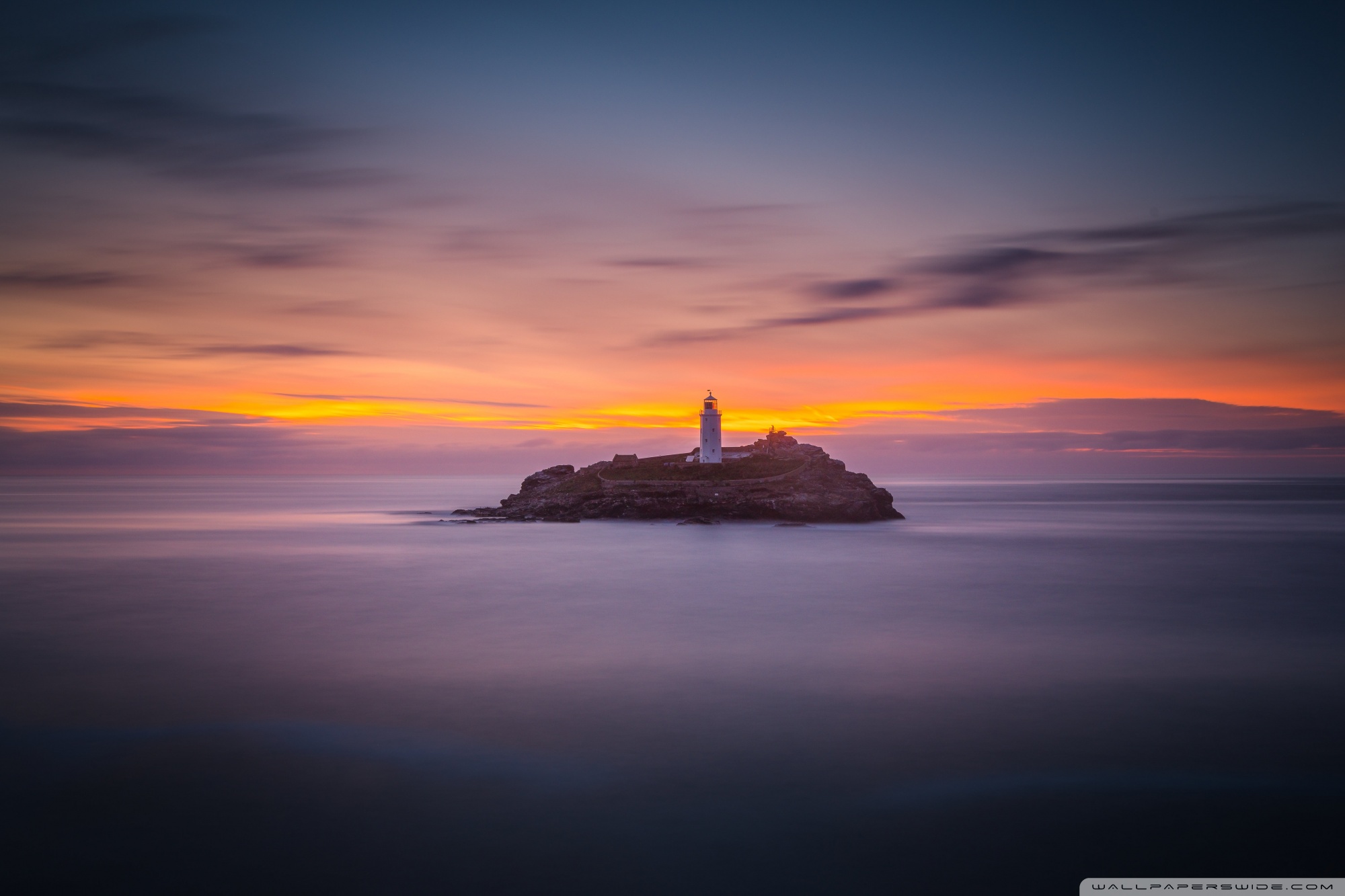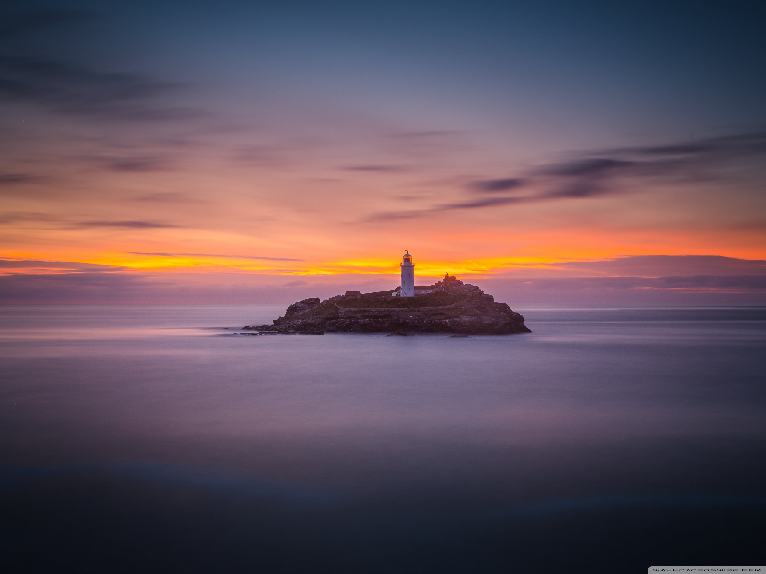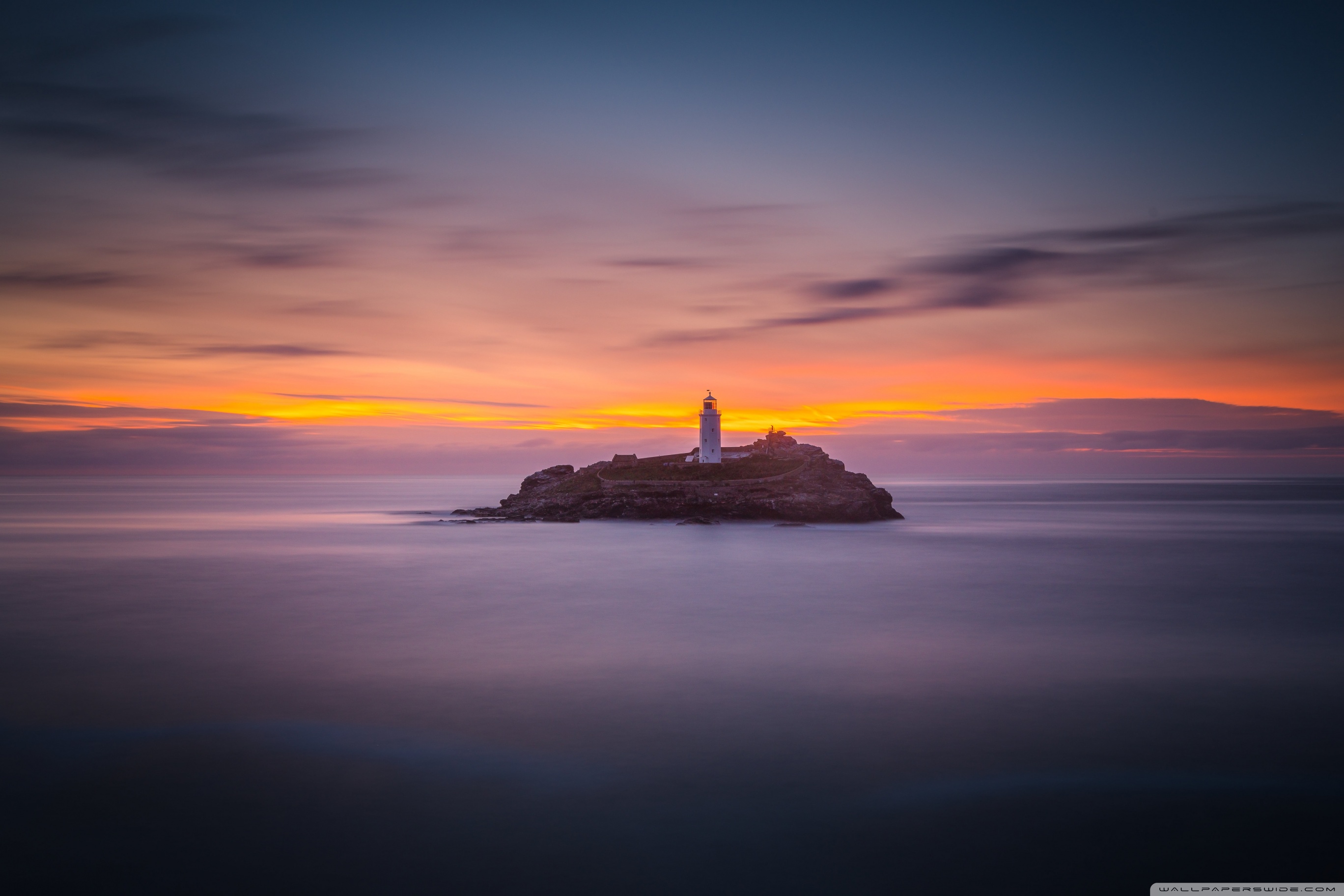 Download Lighthouse Island at Sunset 4K UHD Wallpaper