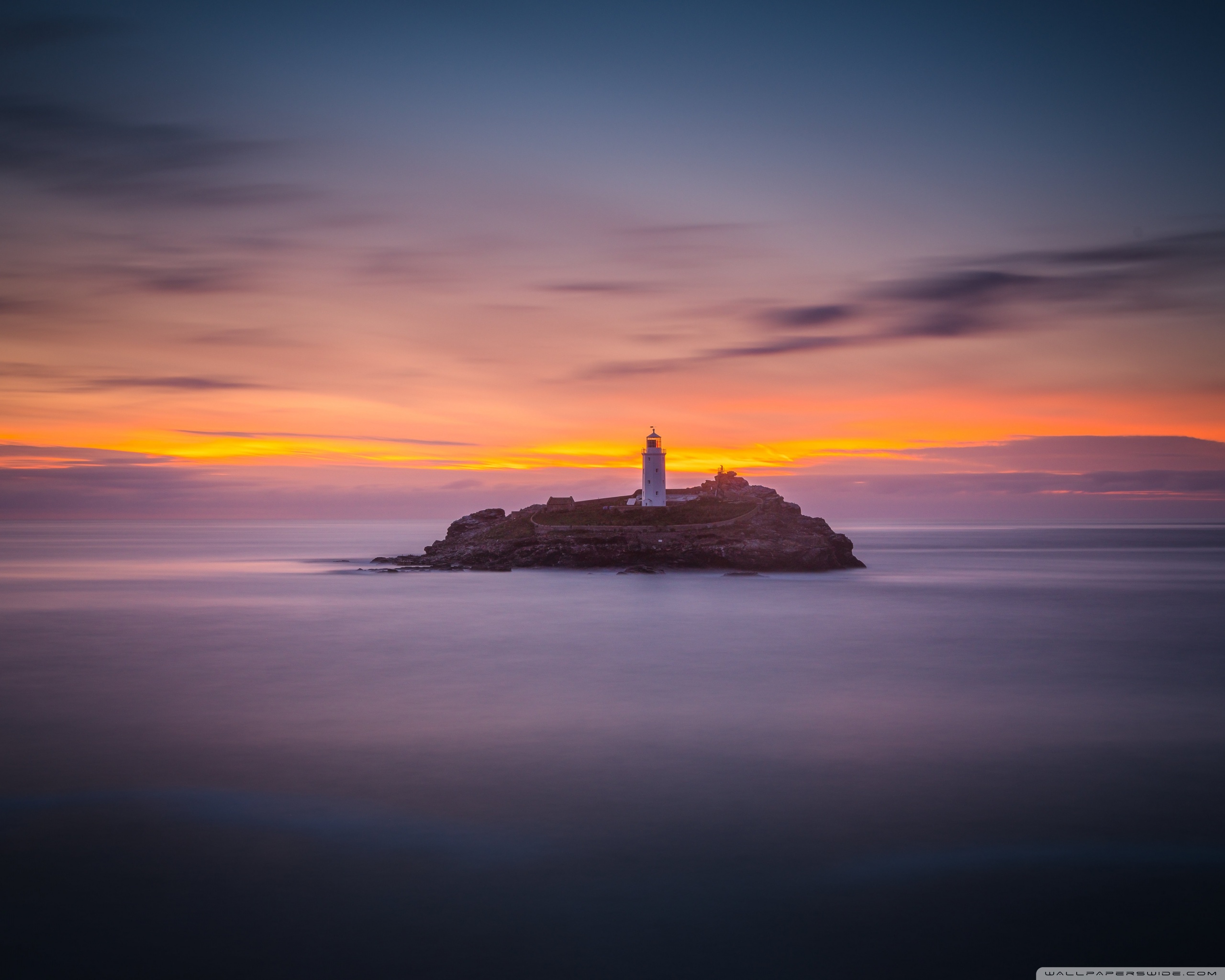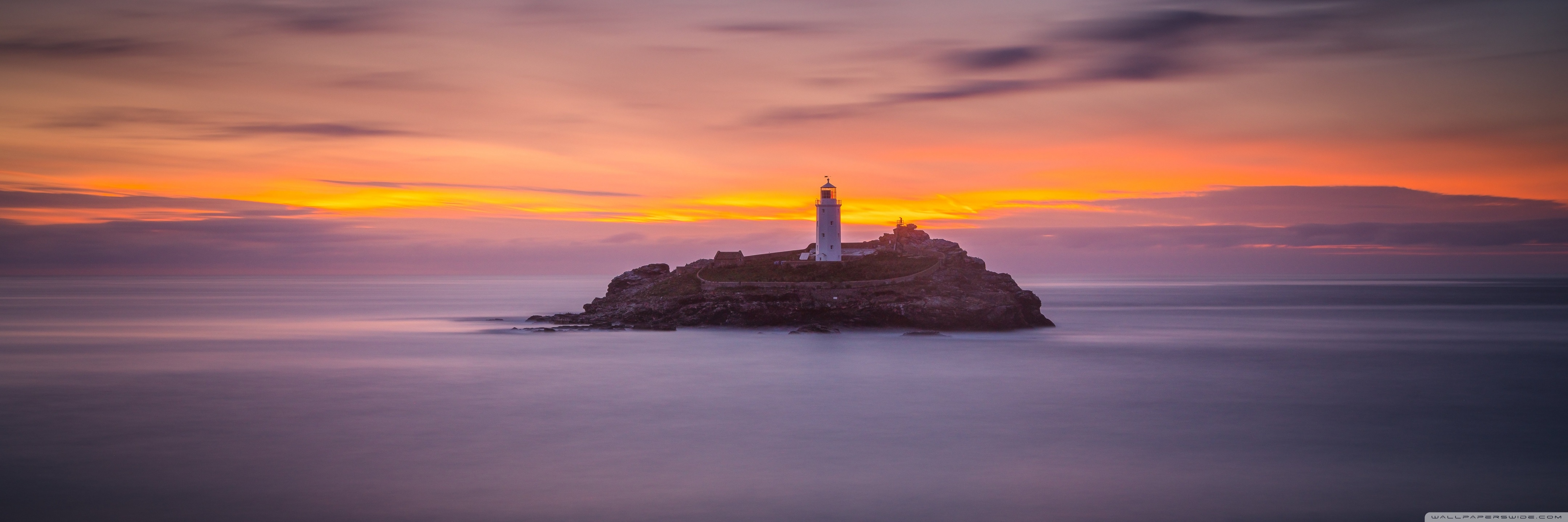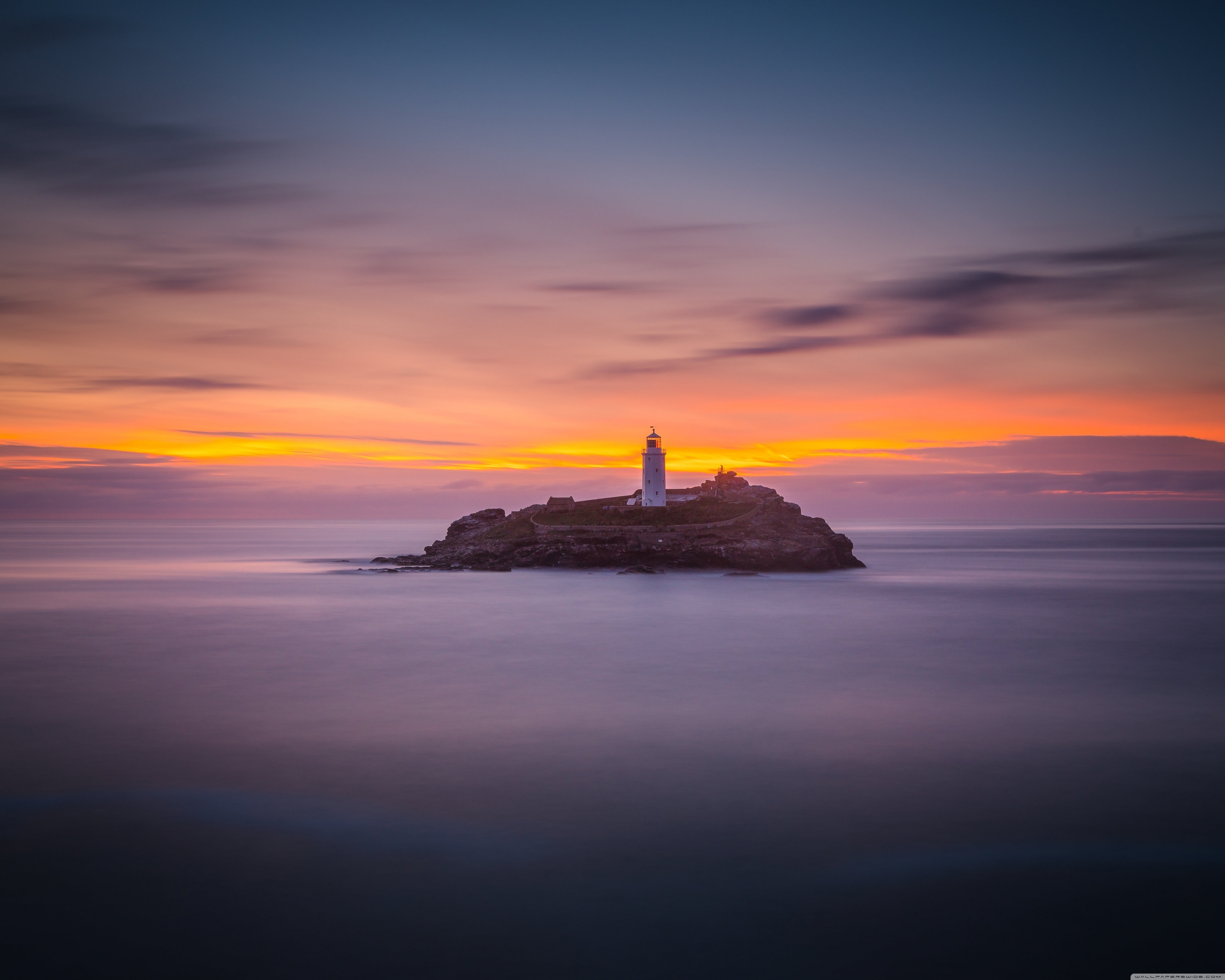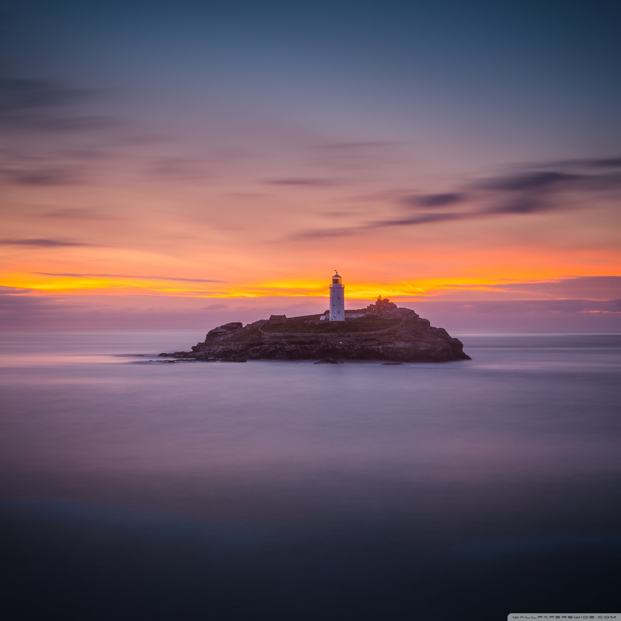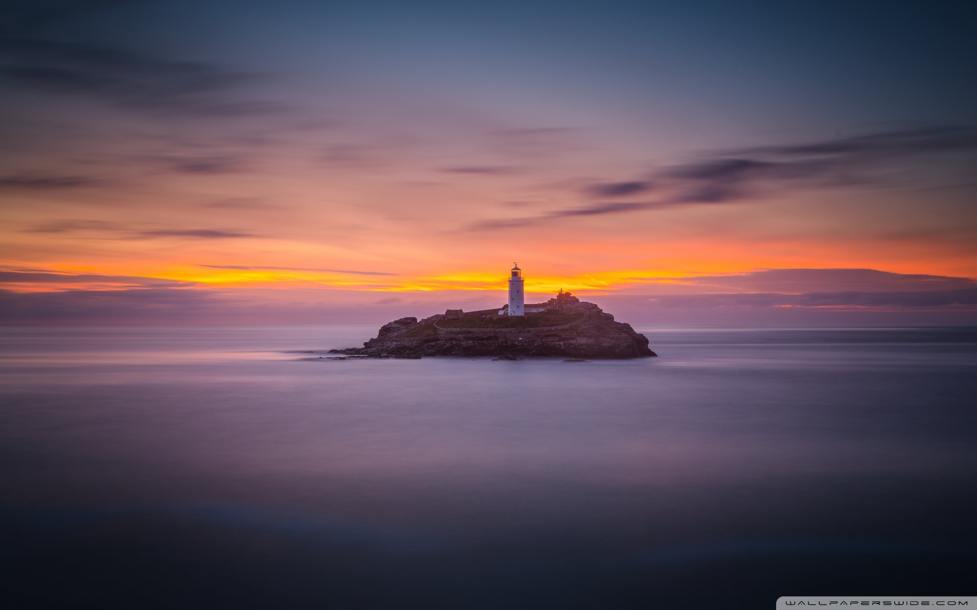 Download Lighthouse Island at Sunset 4K UHD Wallpaper