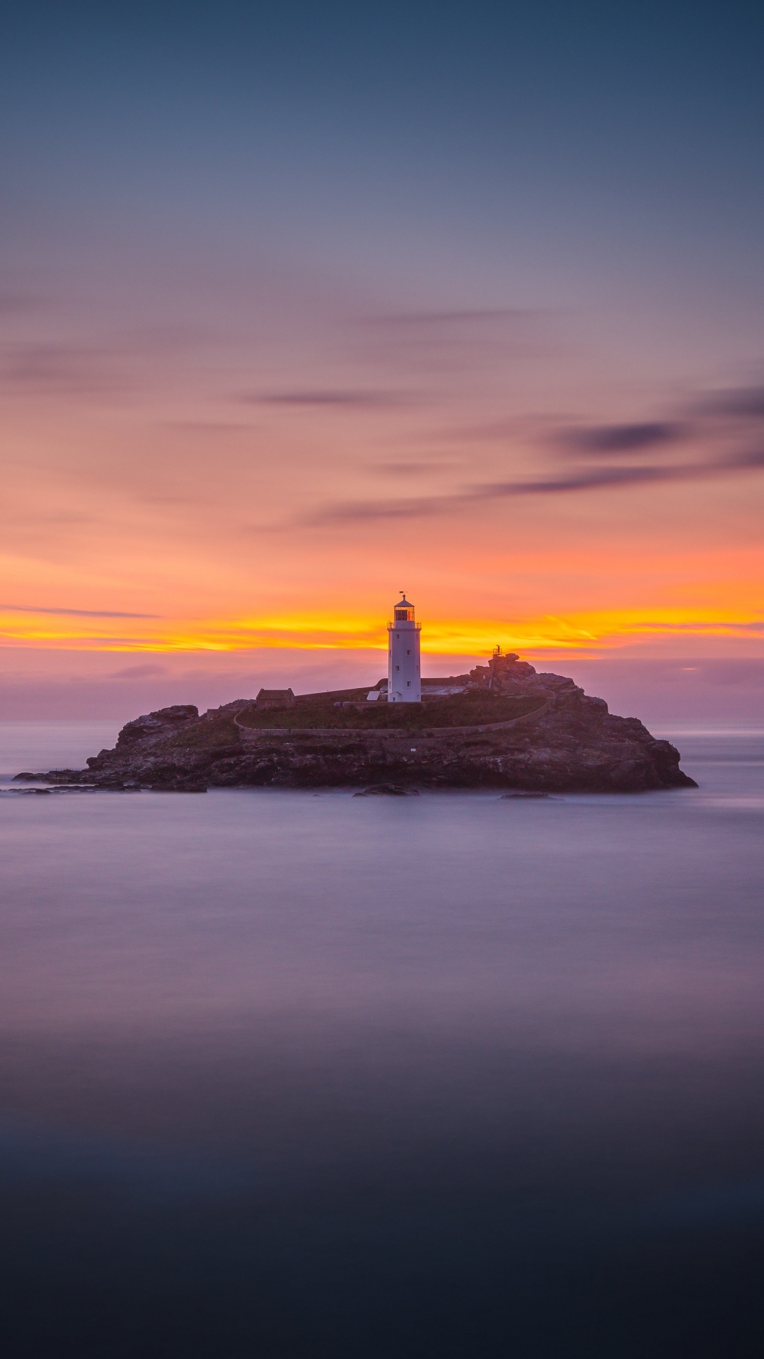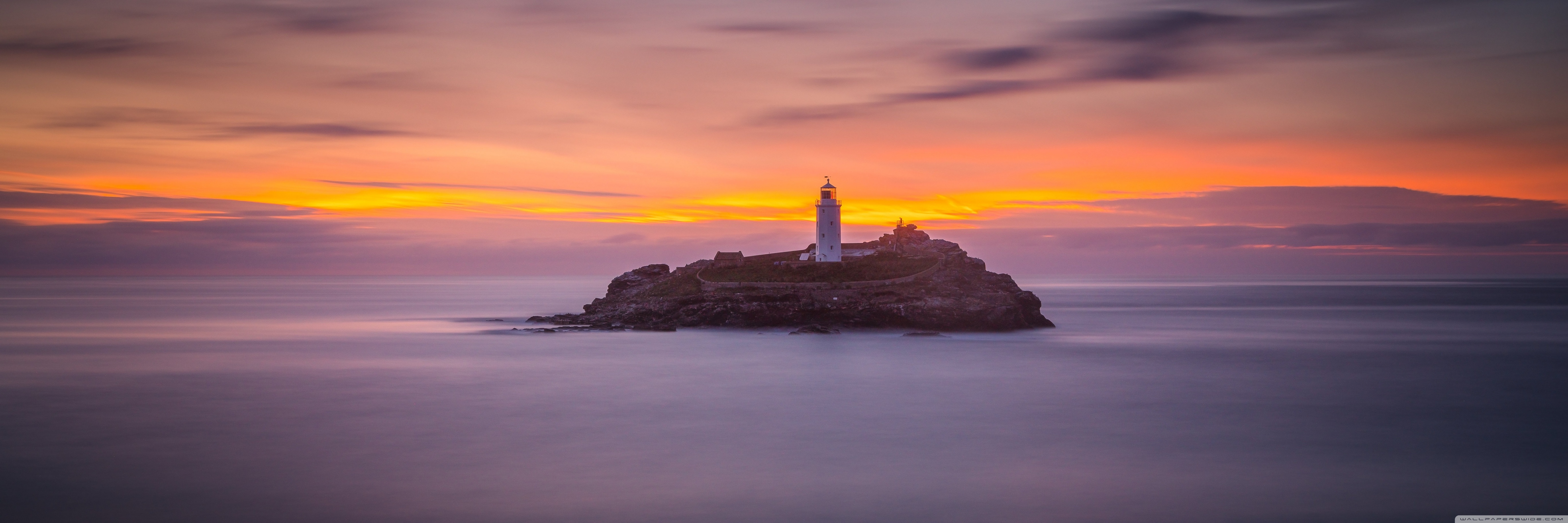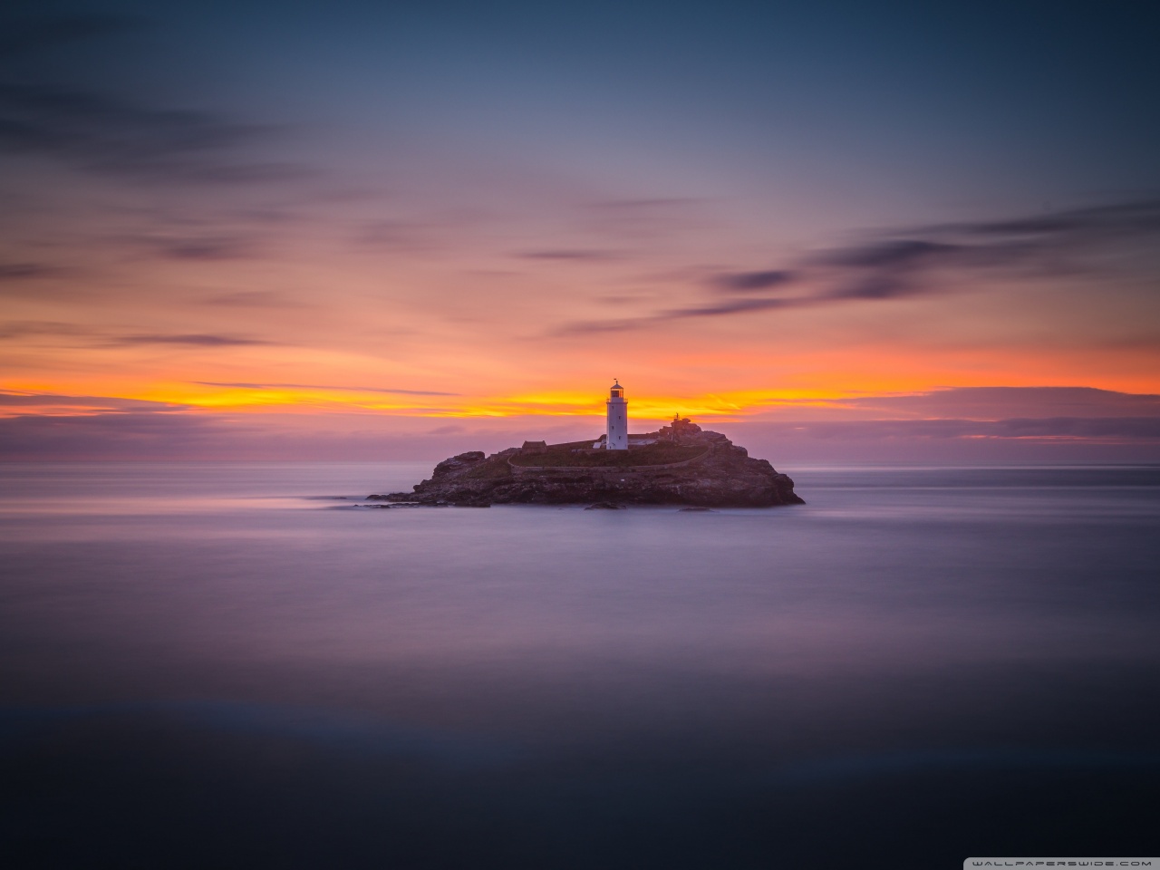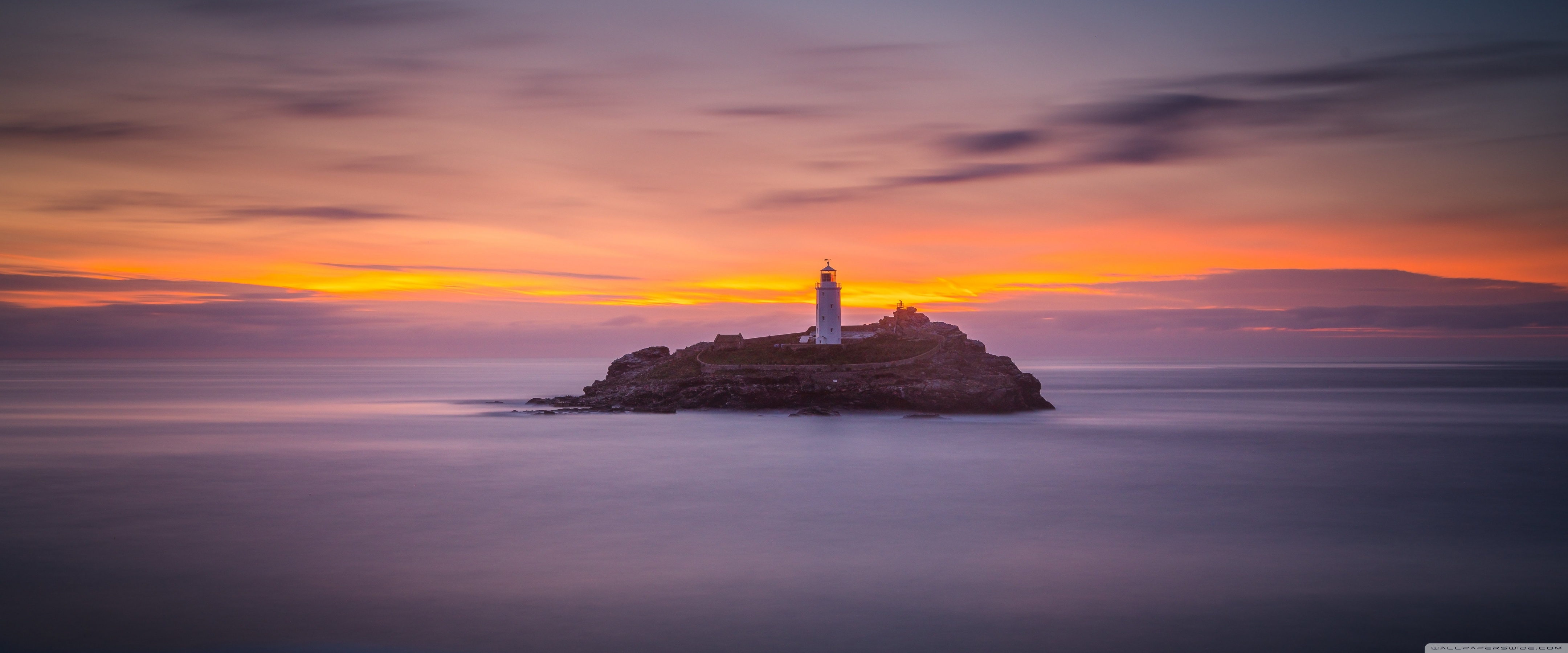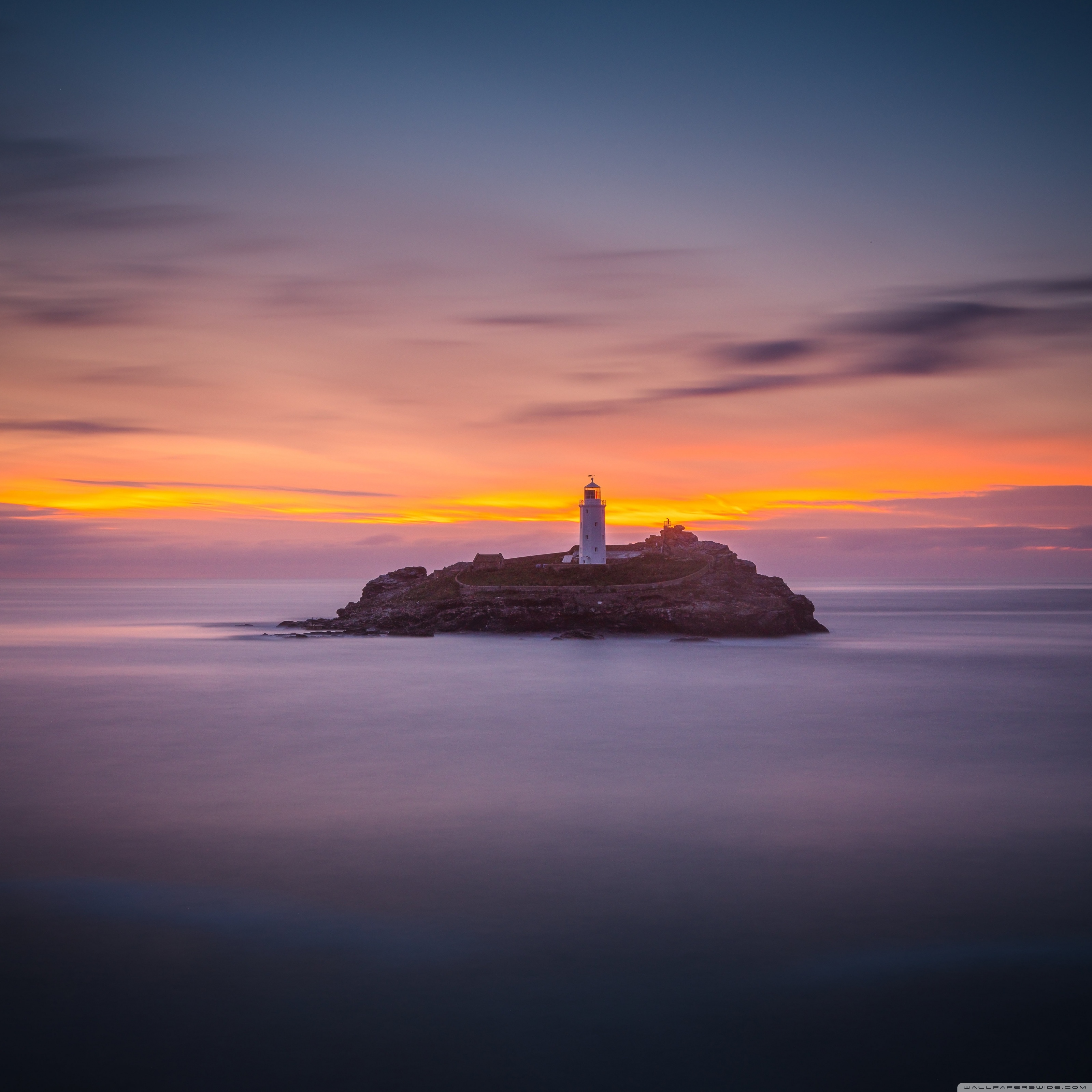 Download Lighthouse Island at Sunset 4K UHD Wallpaper
