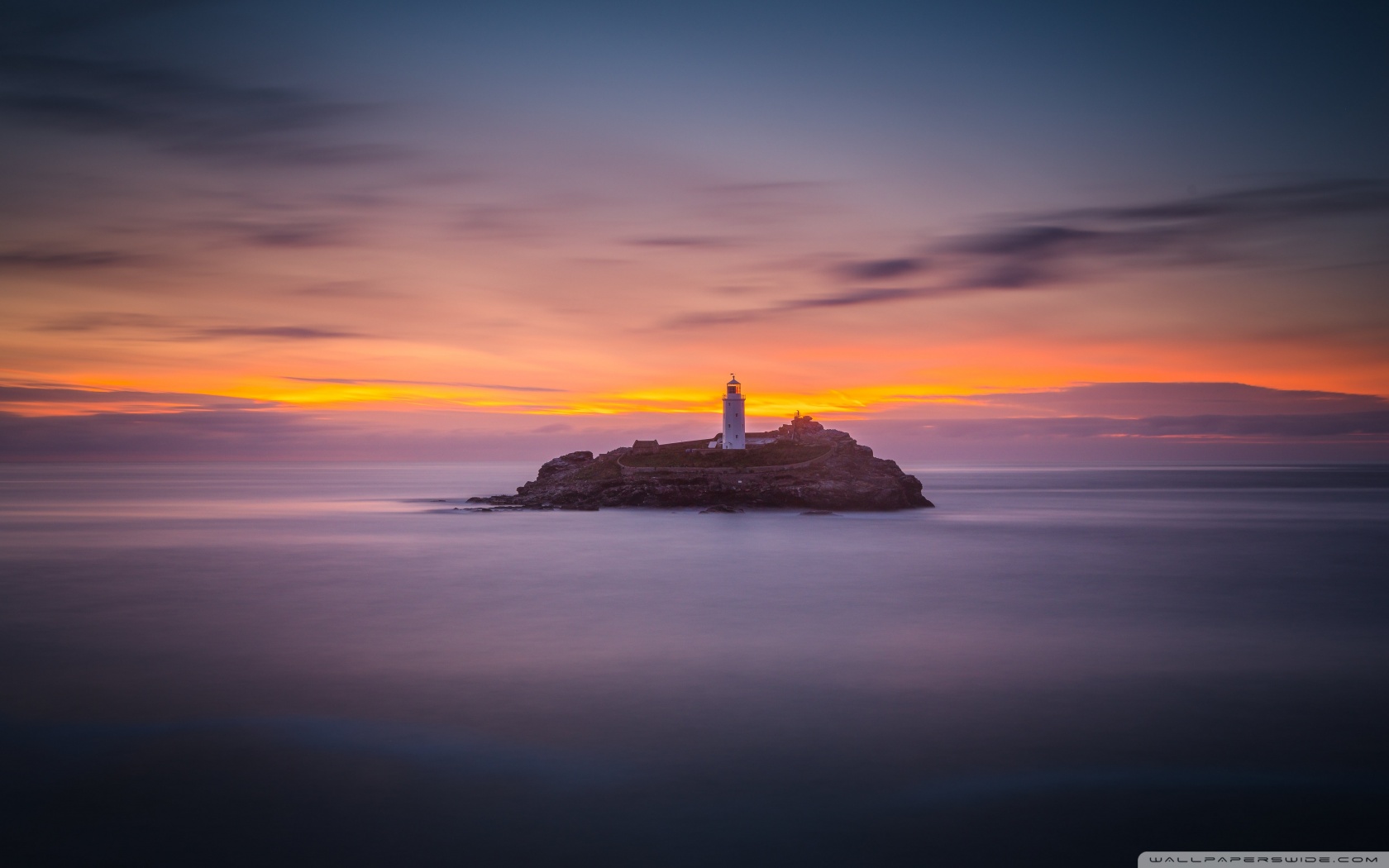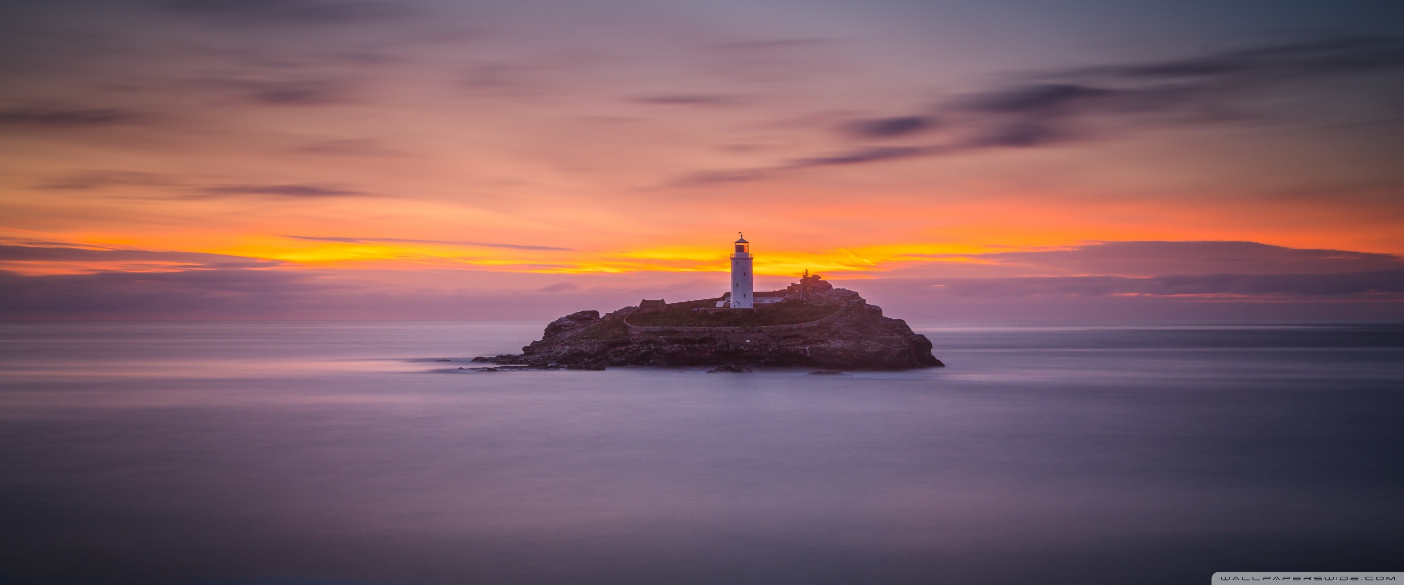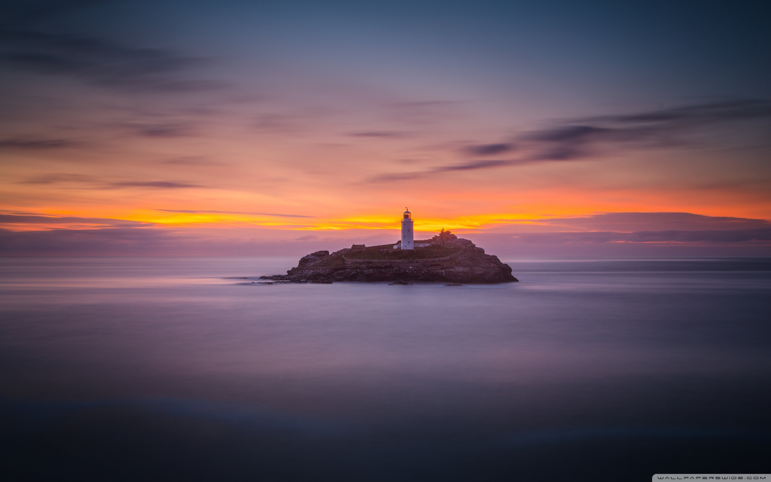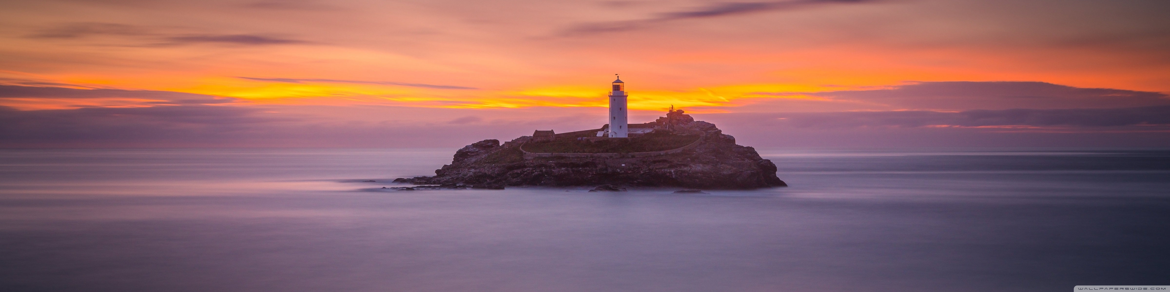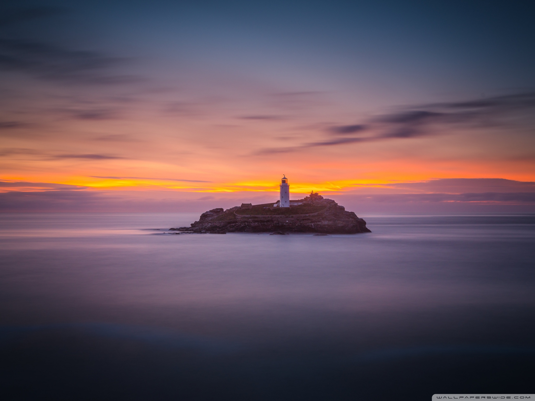 Download Lighthouse Island at Sunset 4K UHD Wallpaper
