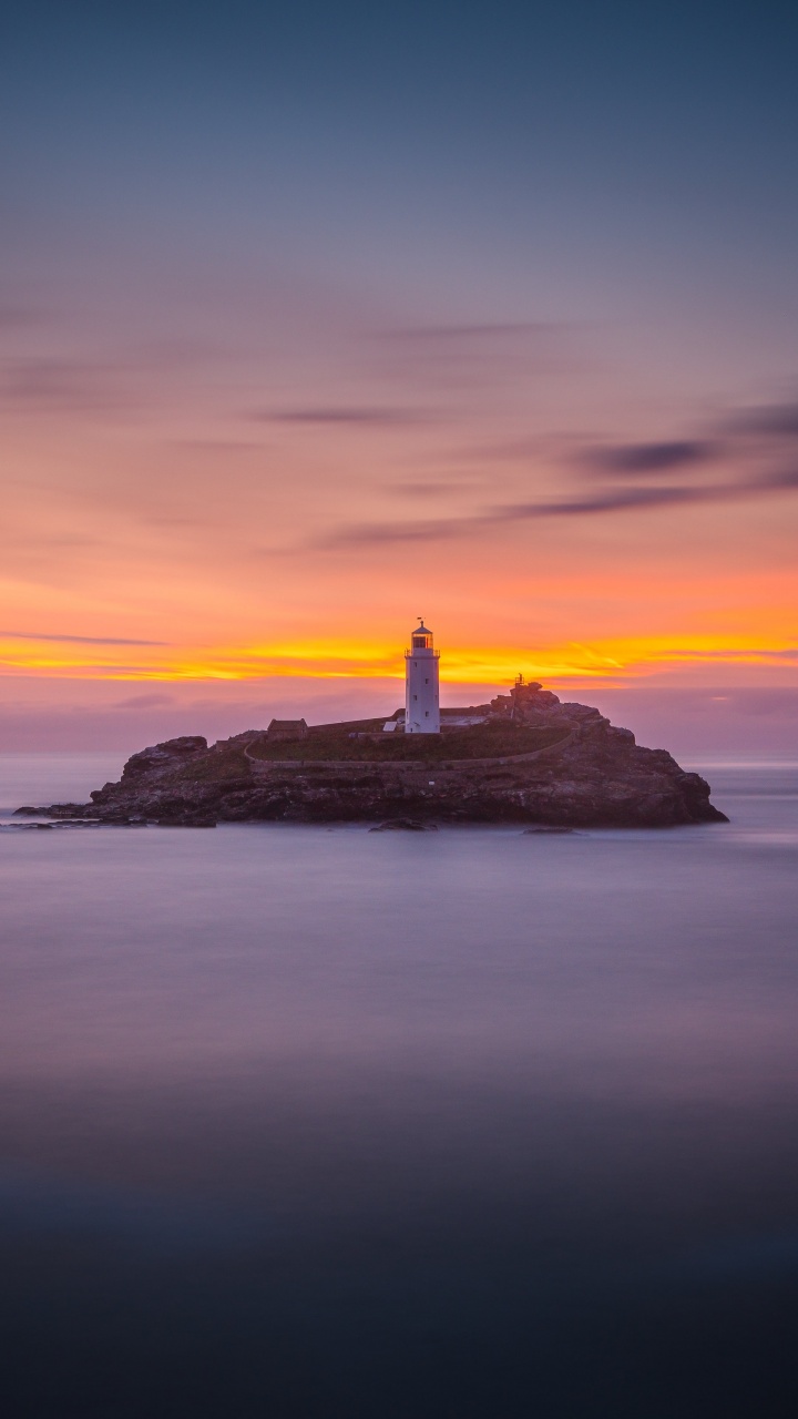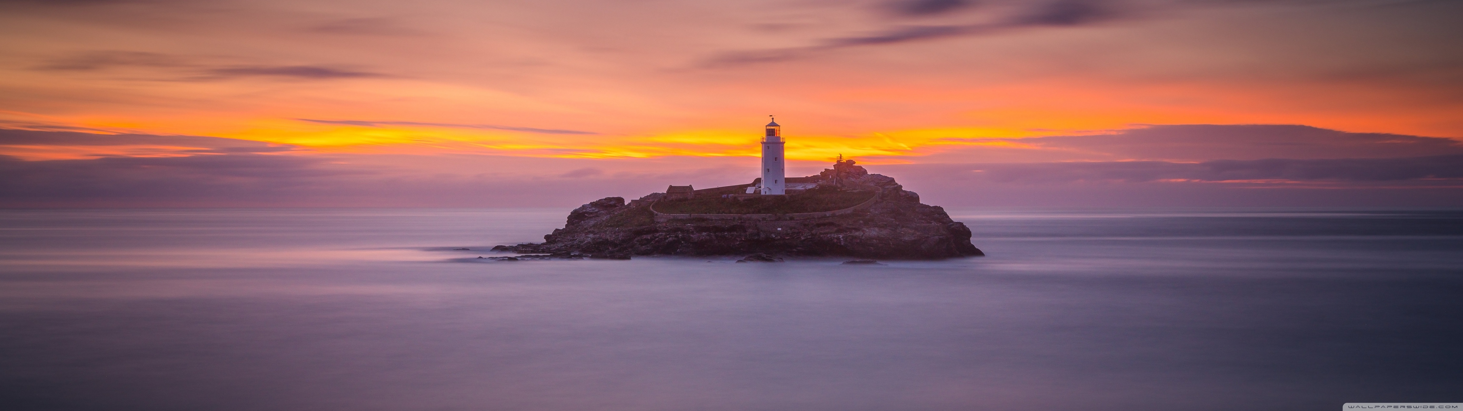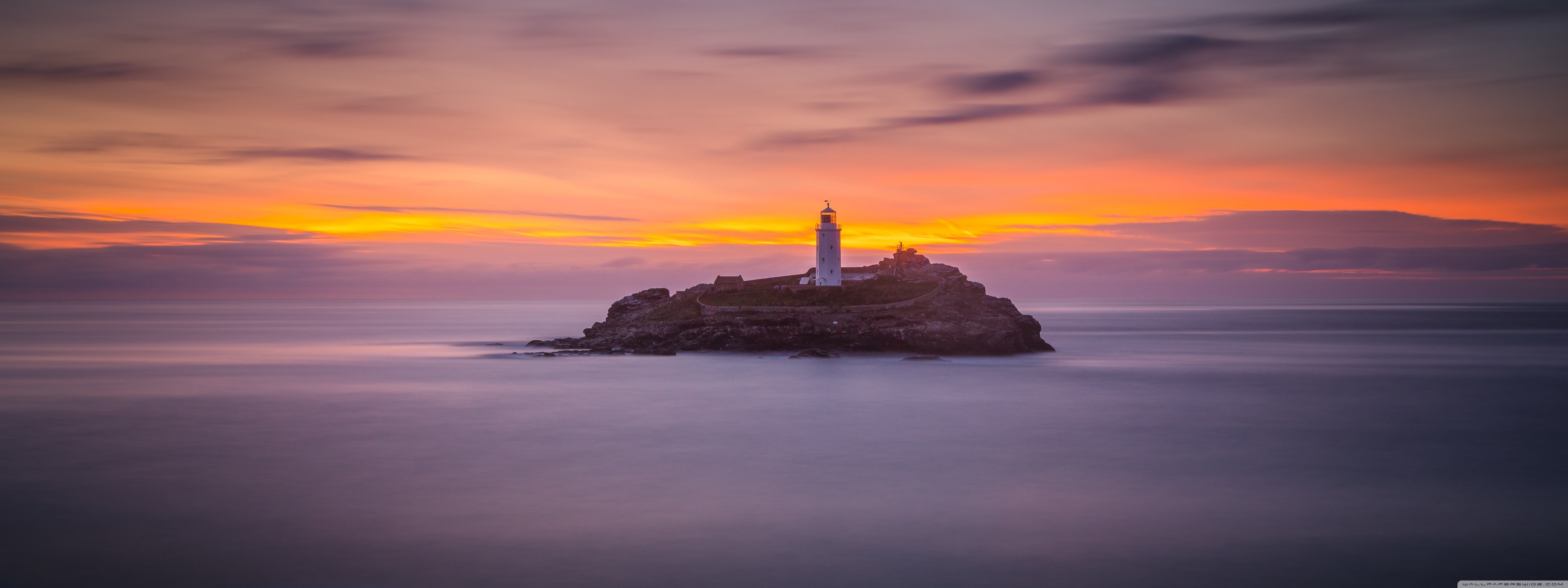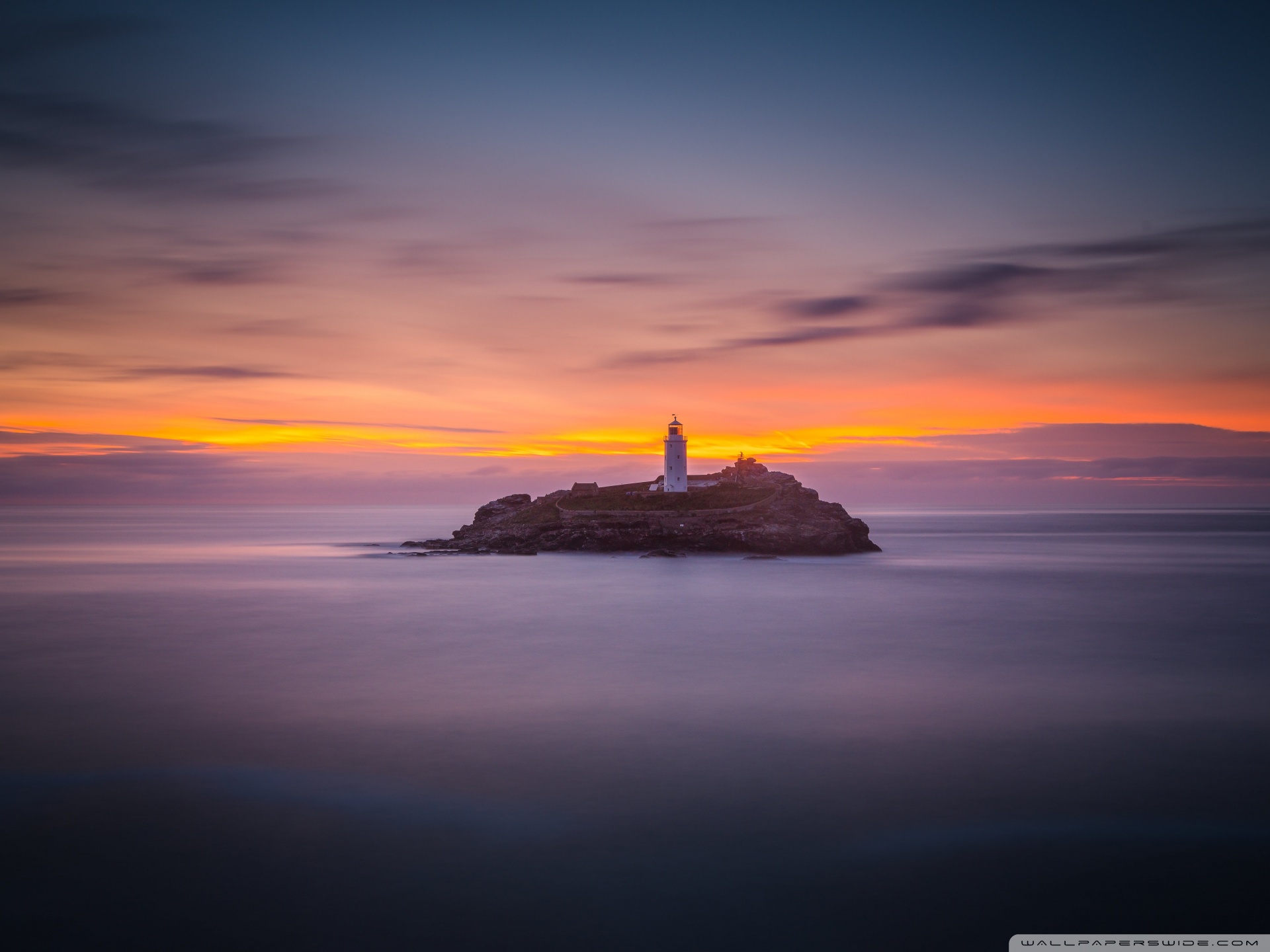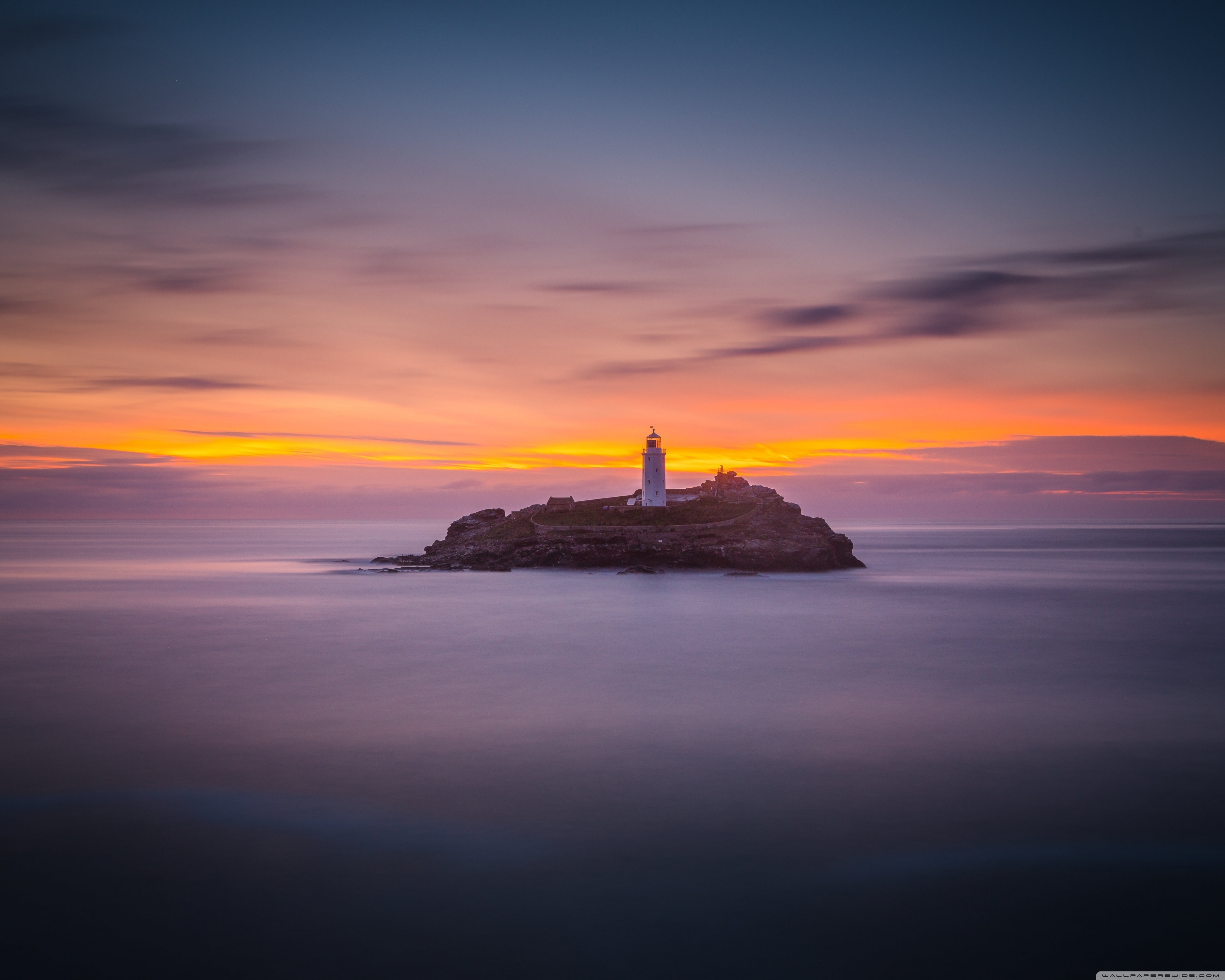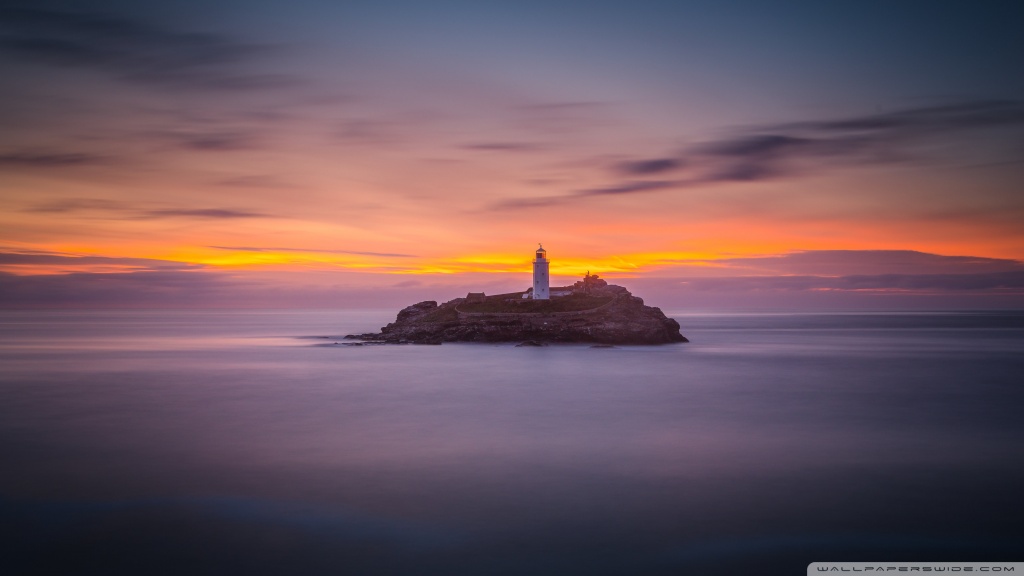 Download Lighthouse Island at Sunset 4K UHD Wallpaper