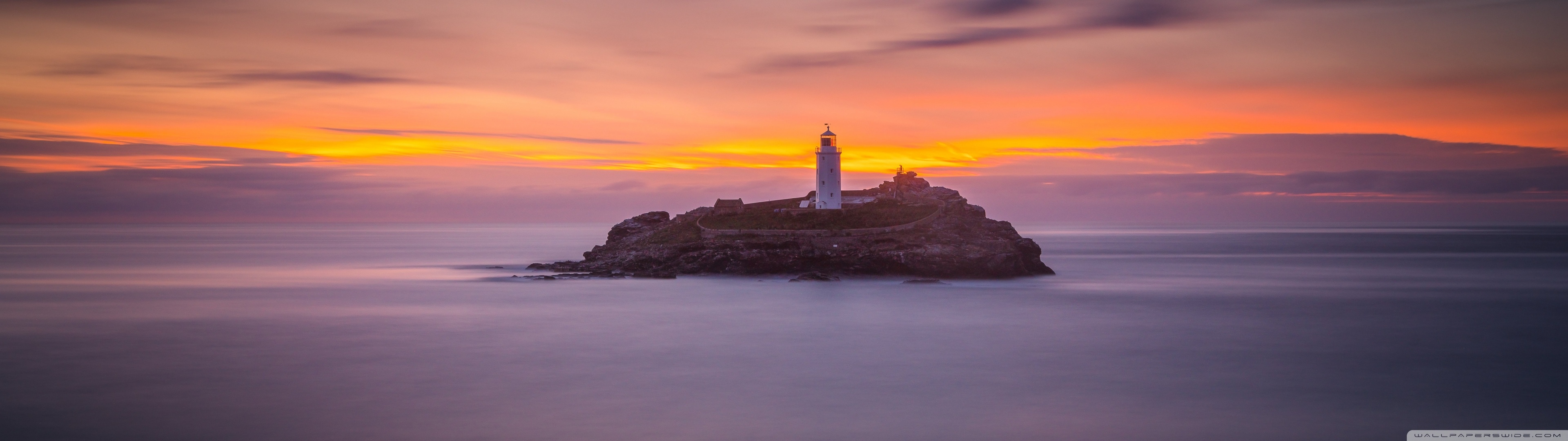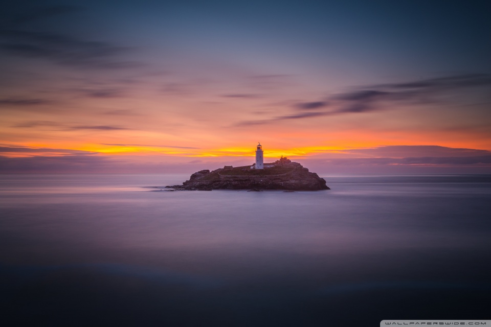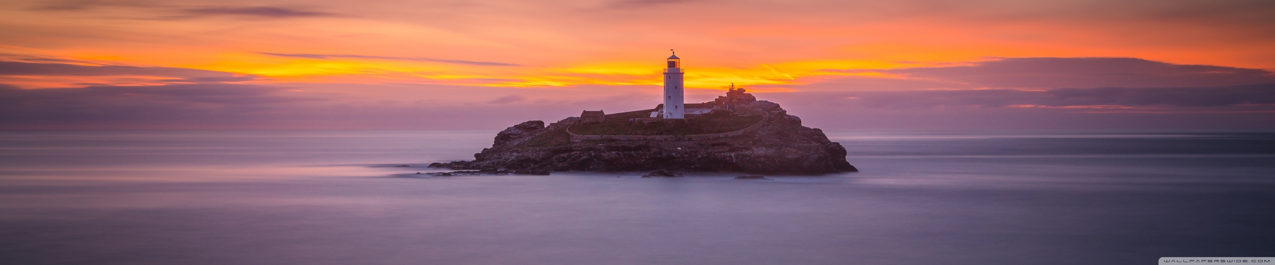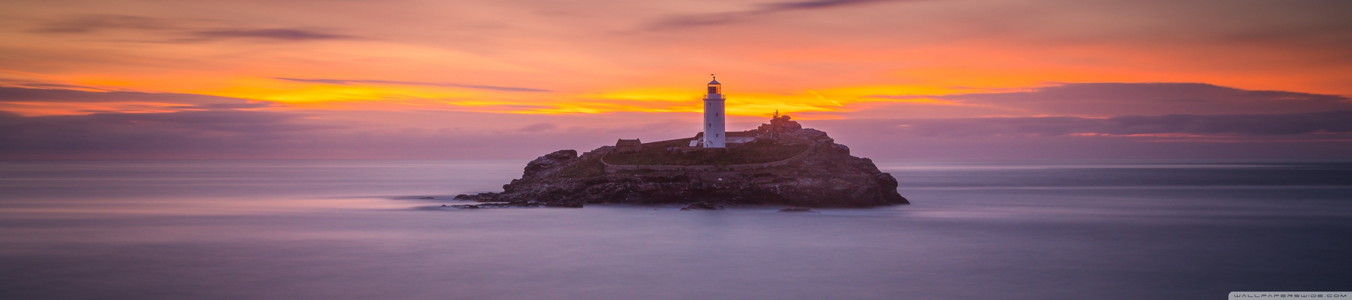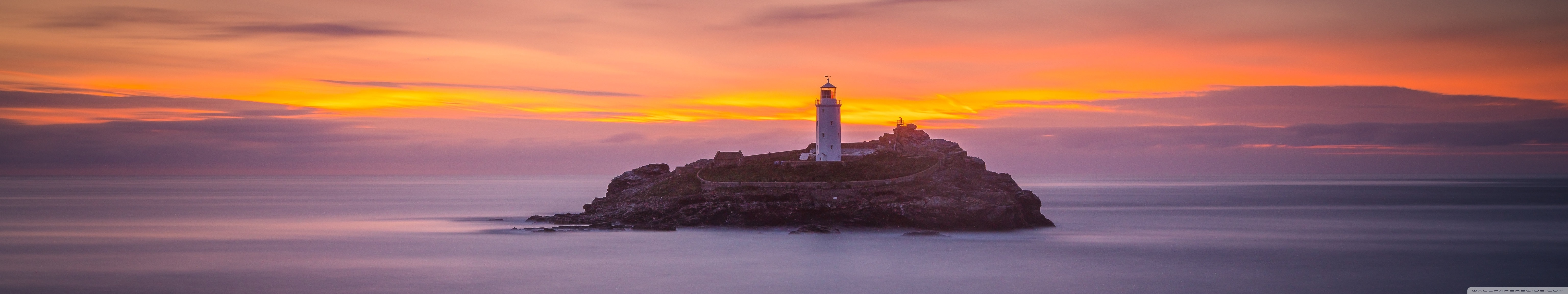 Download Lighthouse Island at Sunset 4K UHD Wallpaper