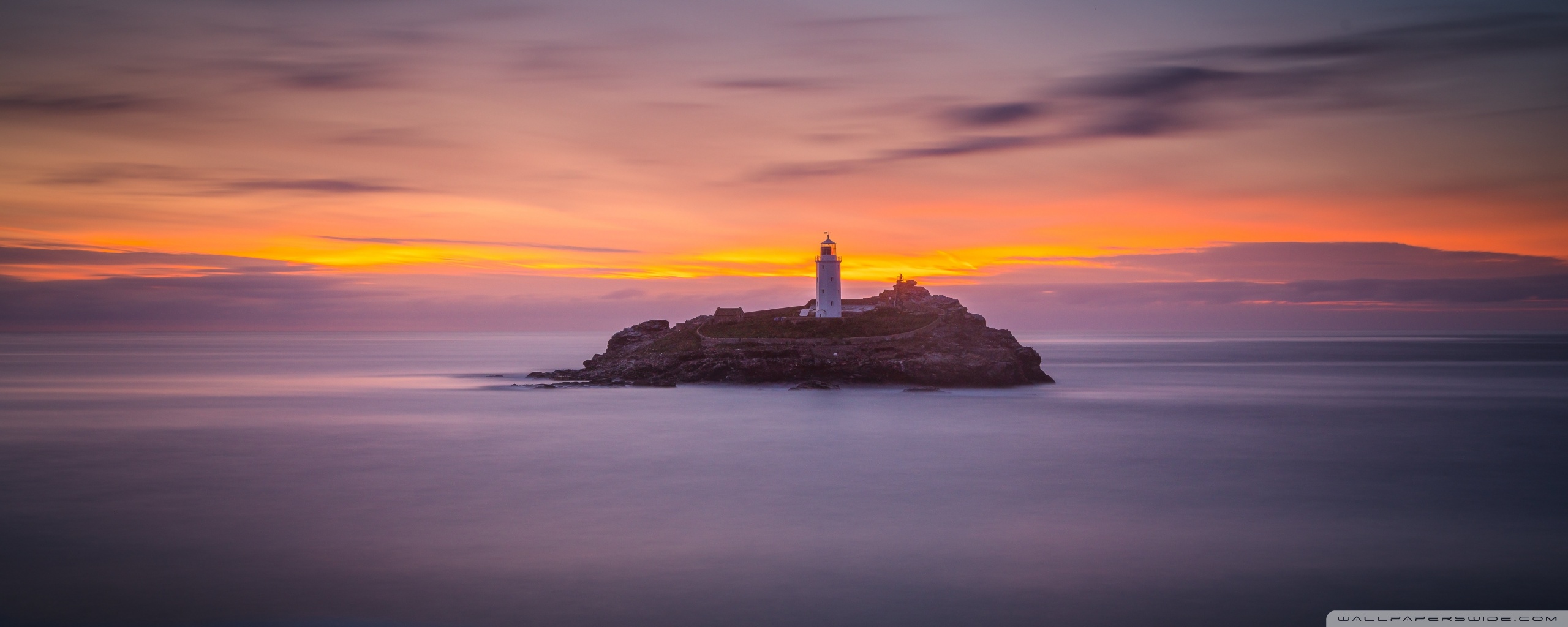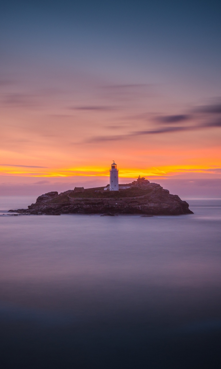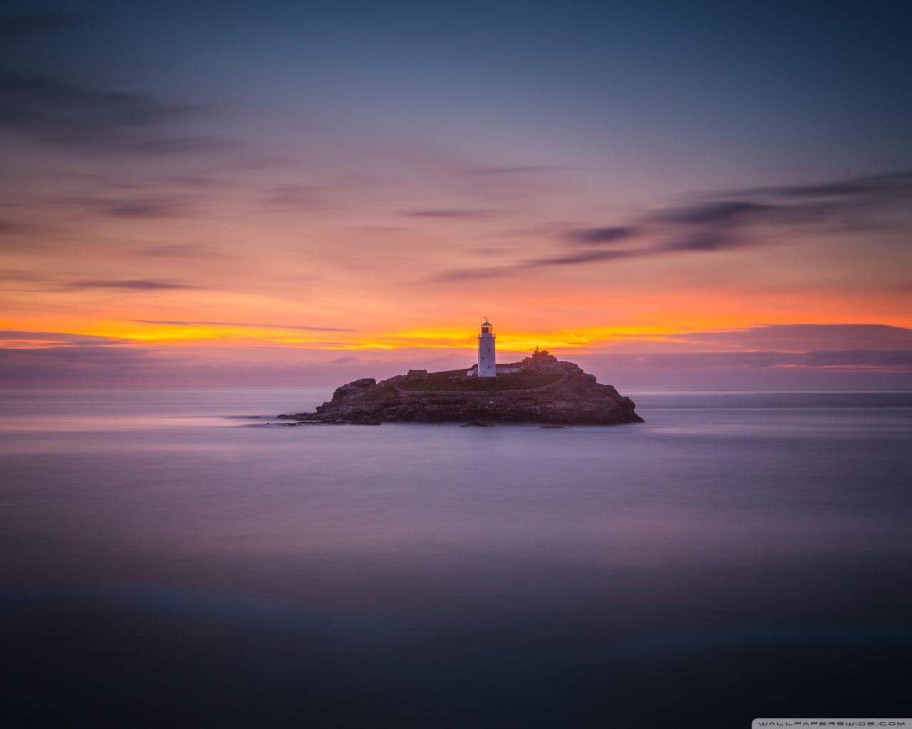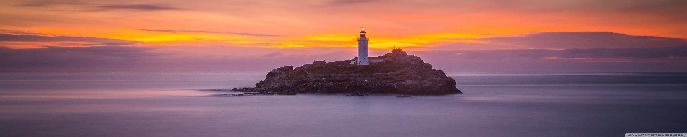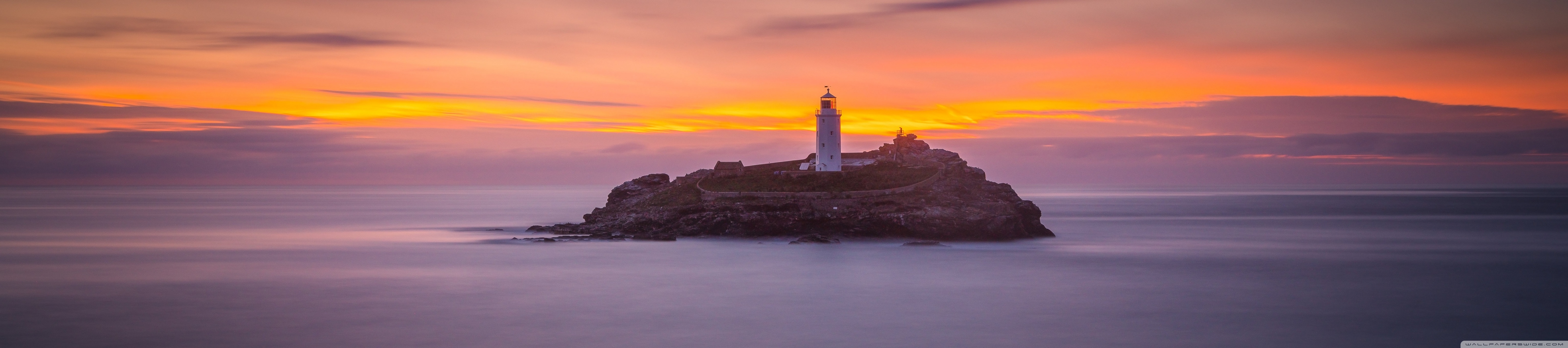 Download Lighthouse Island at Sunset 4K UHD Wallpaper