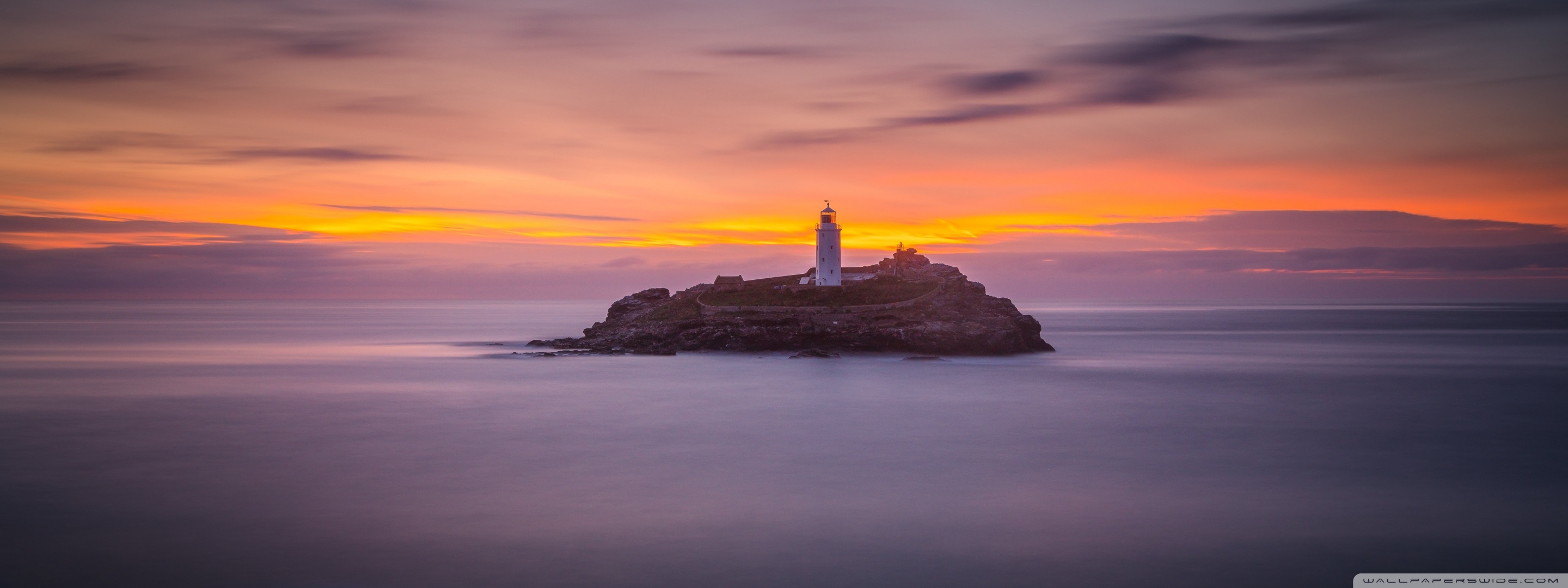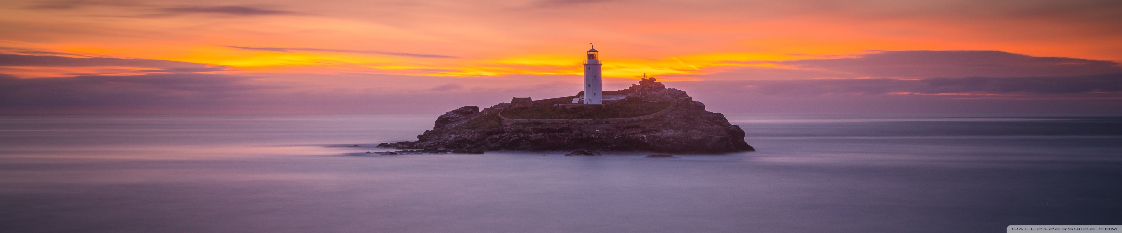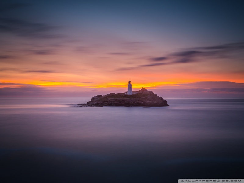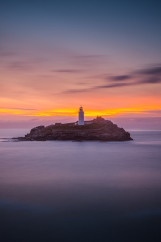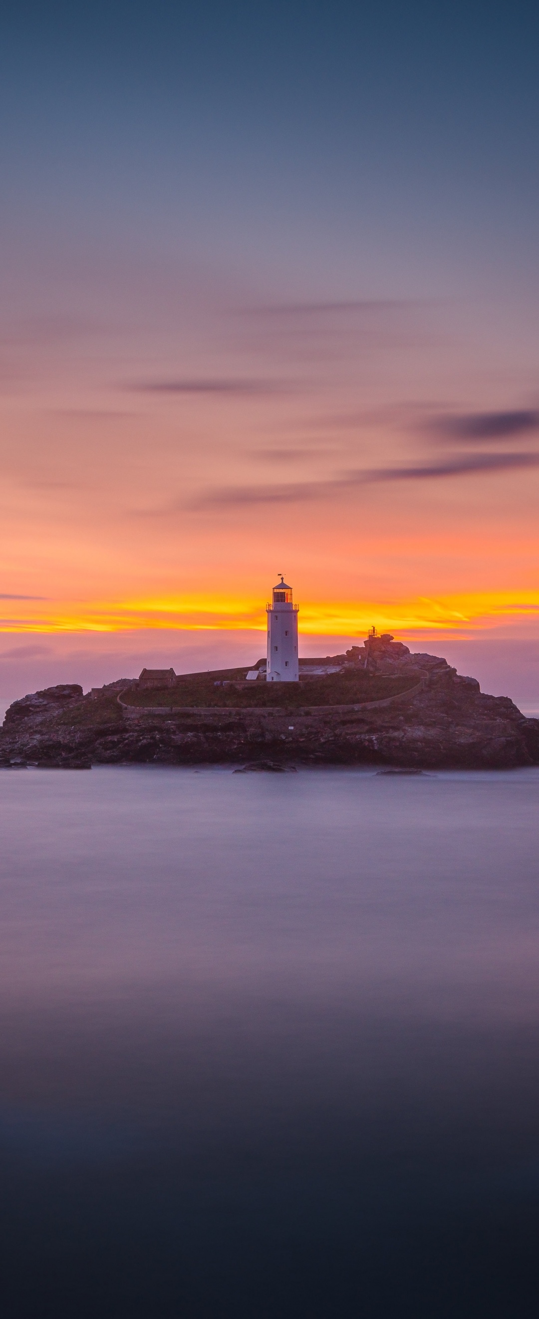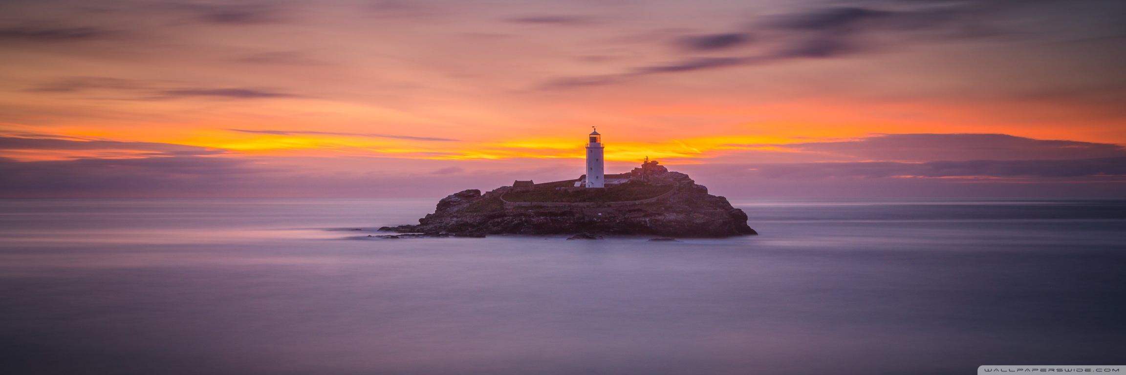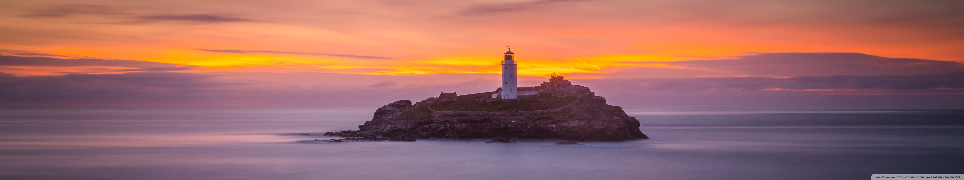 Download Lighthouse Island at Sunset 4K UHD Wallpaper