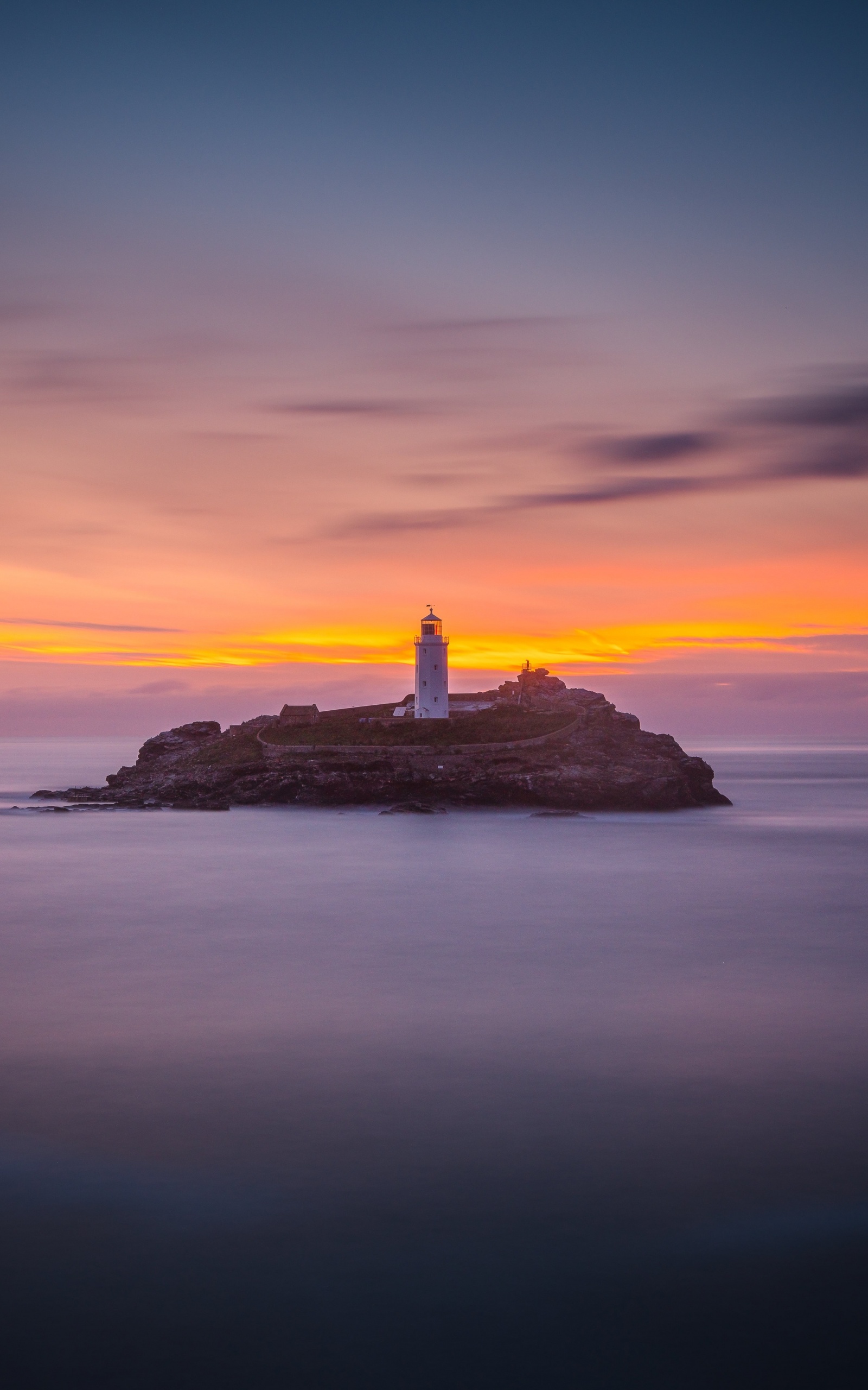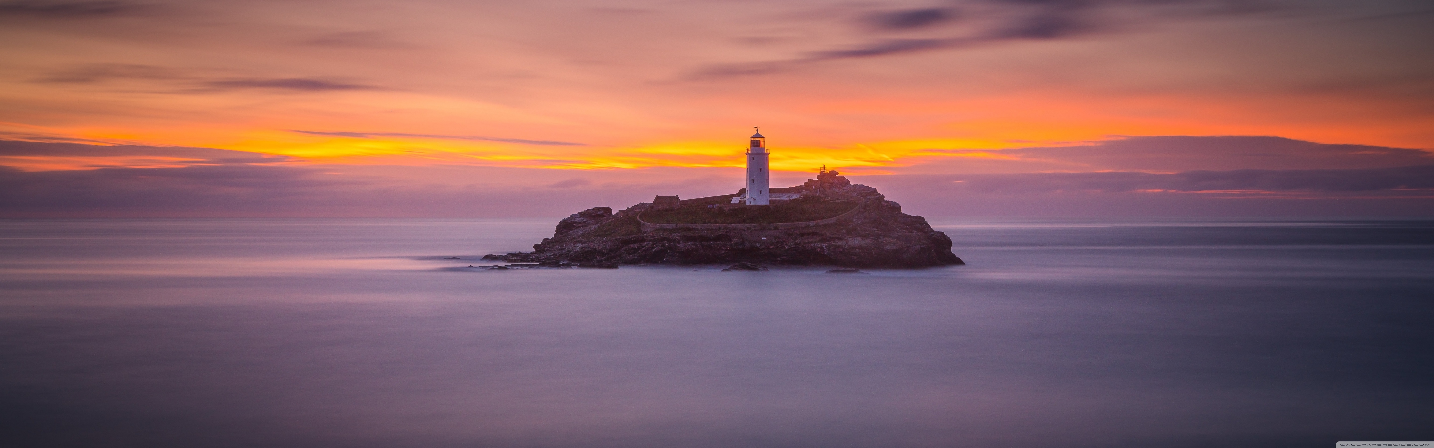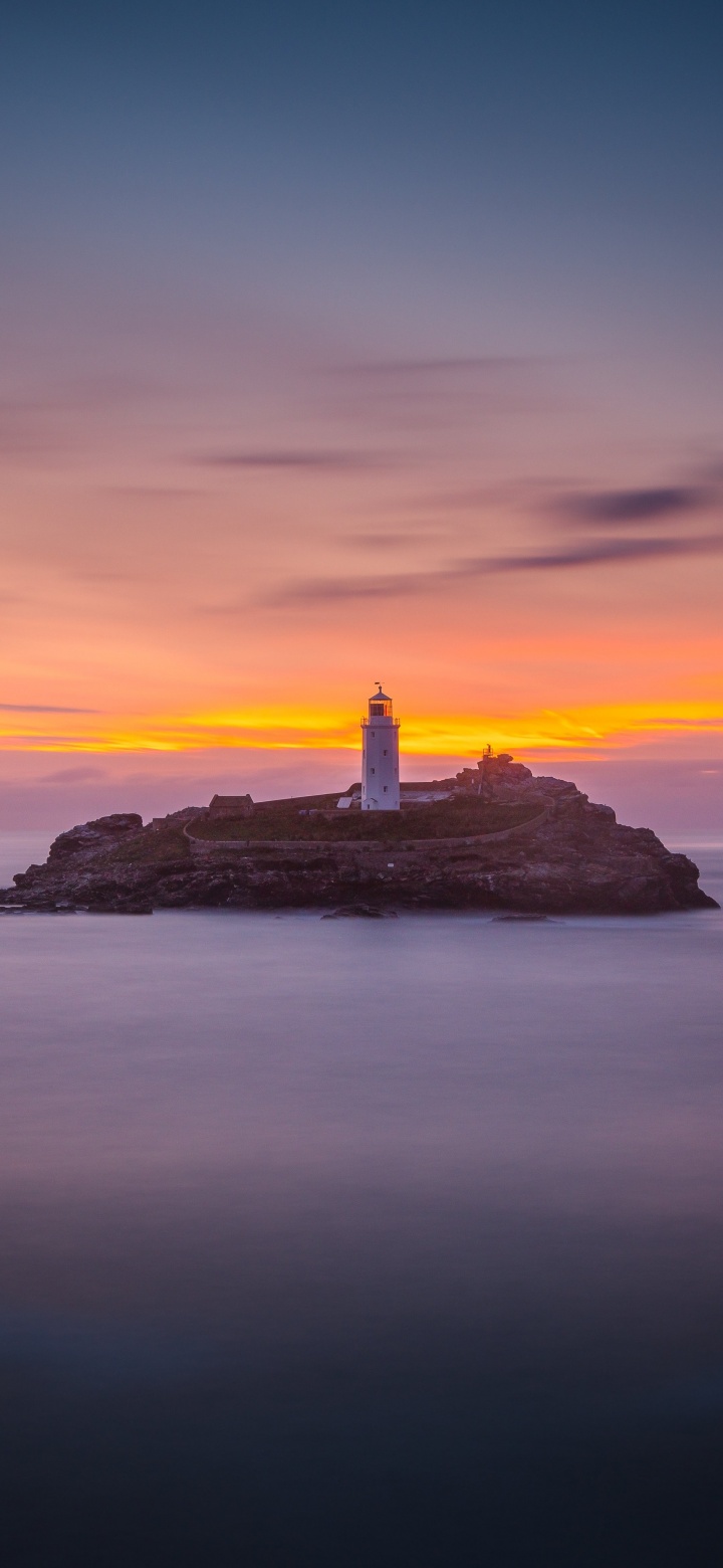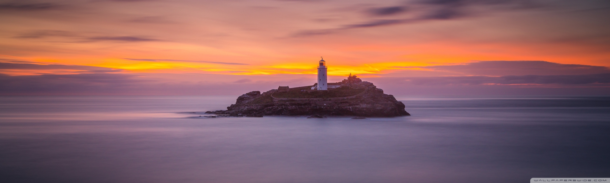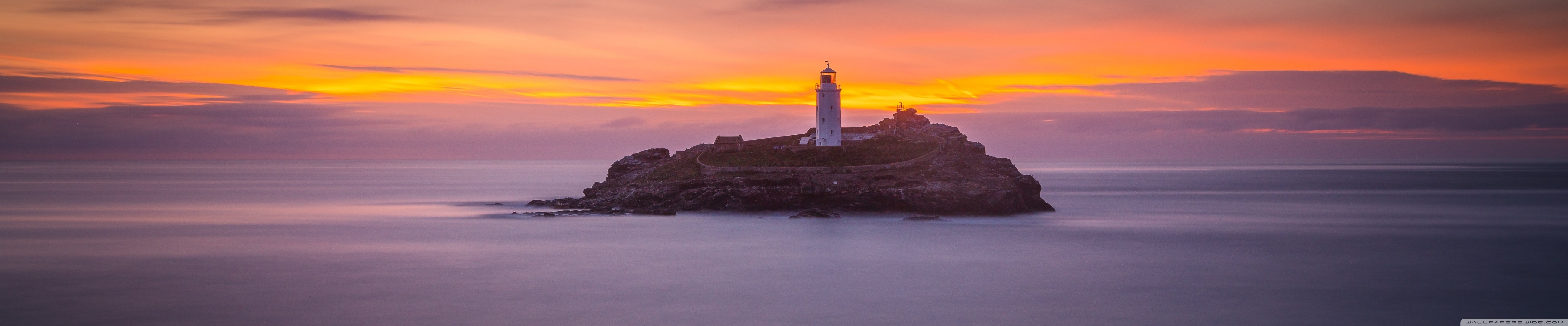 Download Lighthouse Island at Sunset 4K UHD Wallpaper
