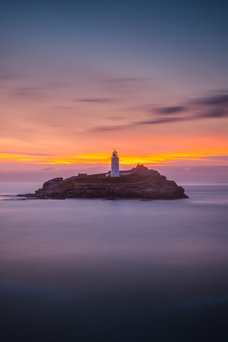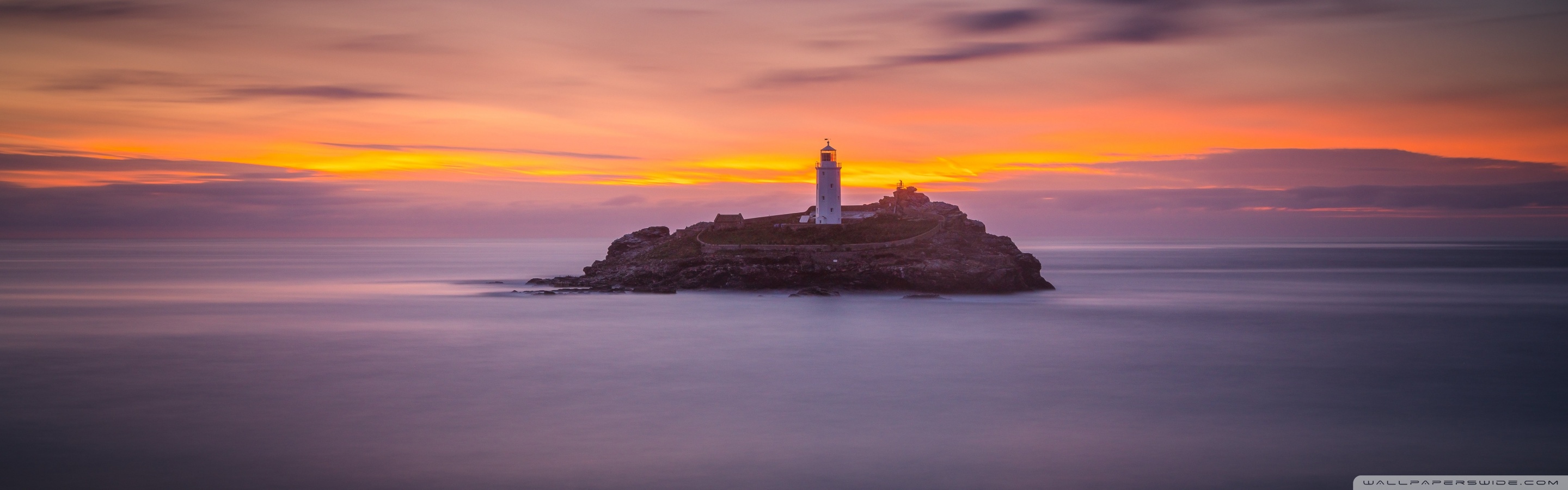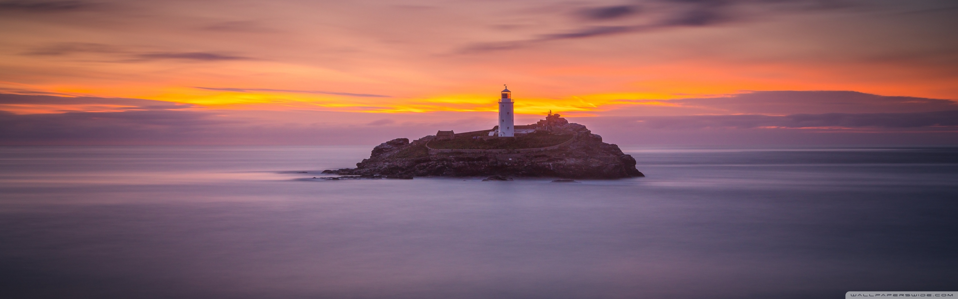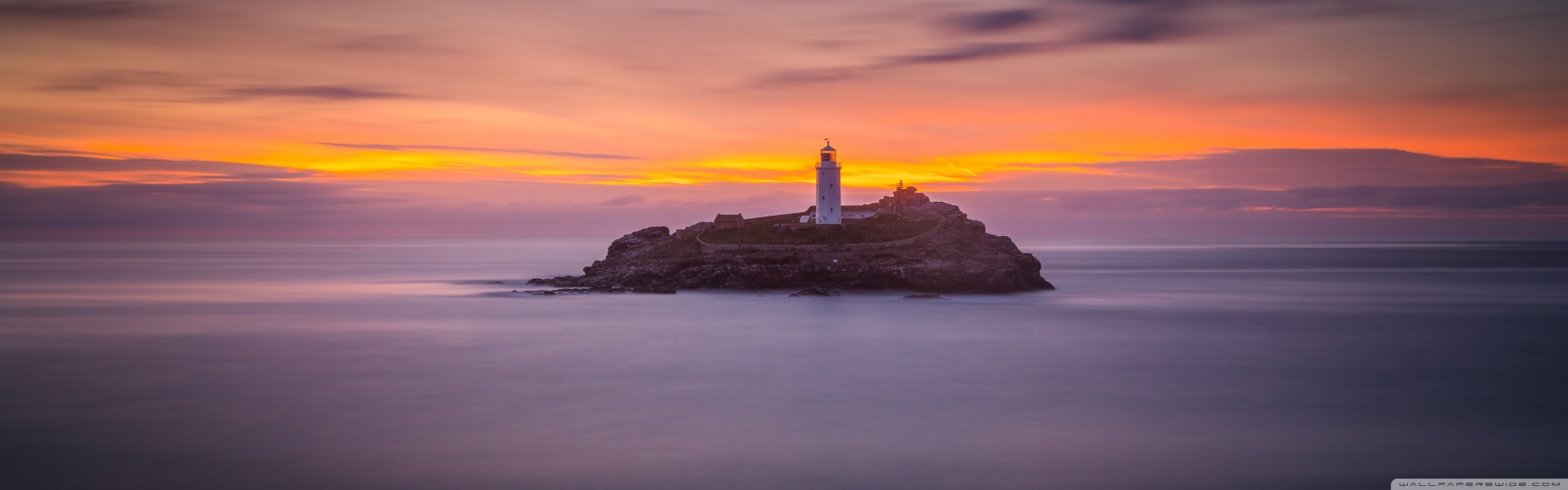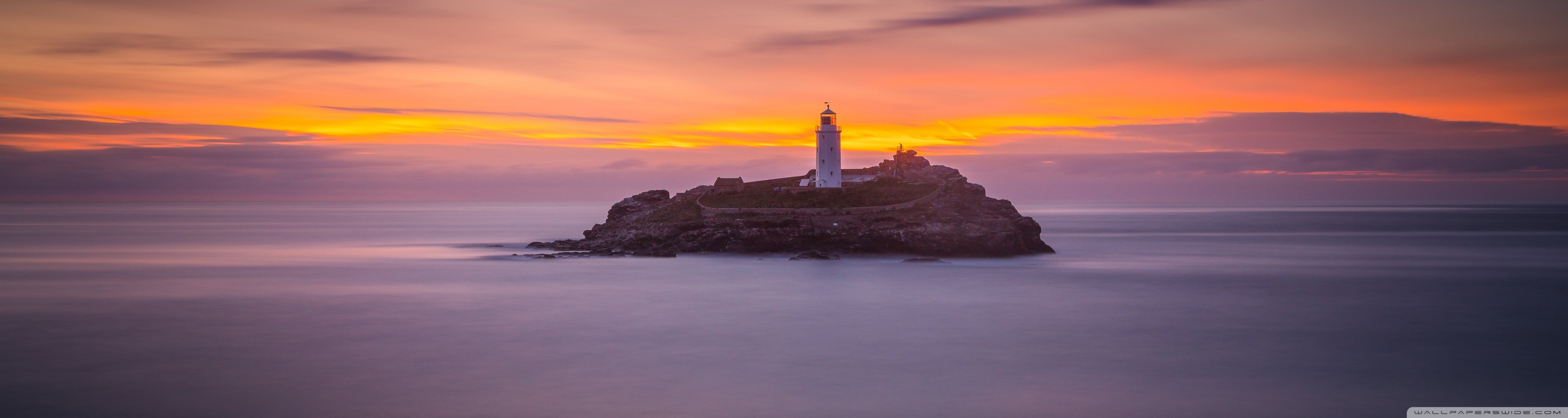 Download Lighthouse Island at Sunset 4K UHD Wallpaper