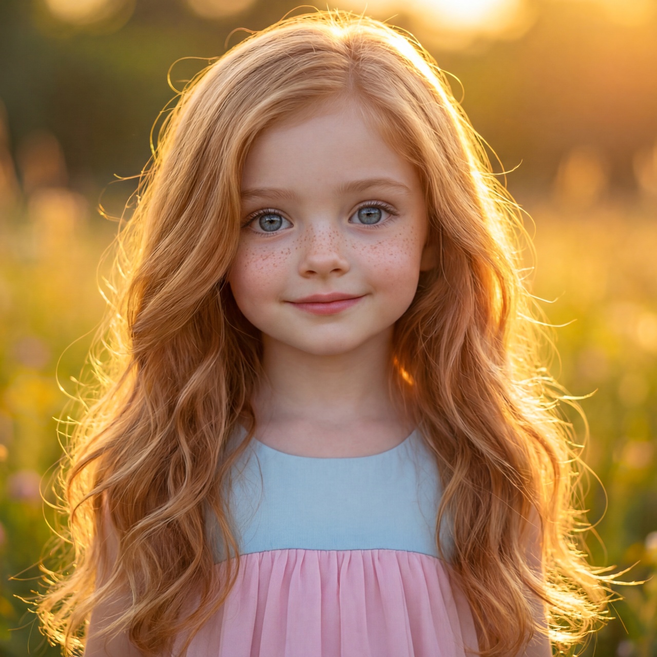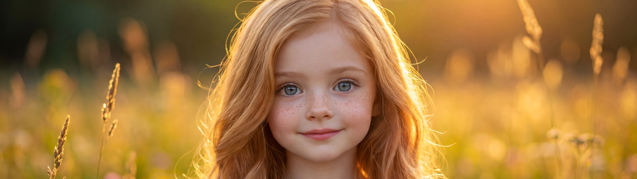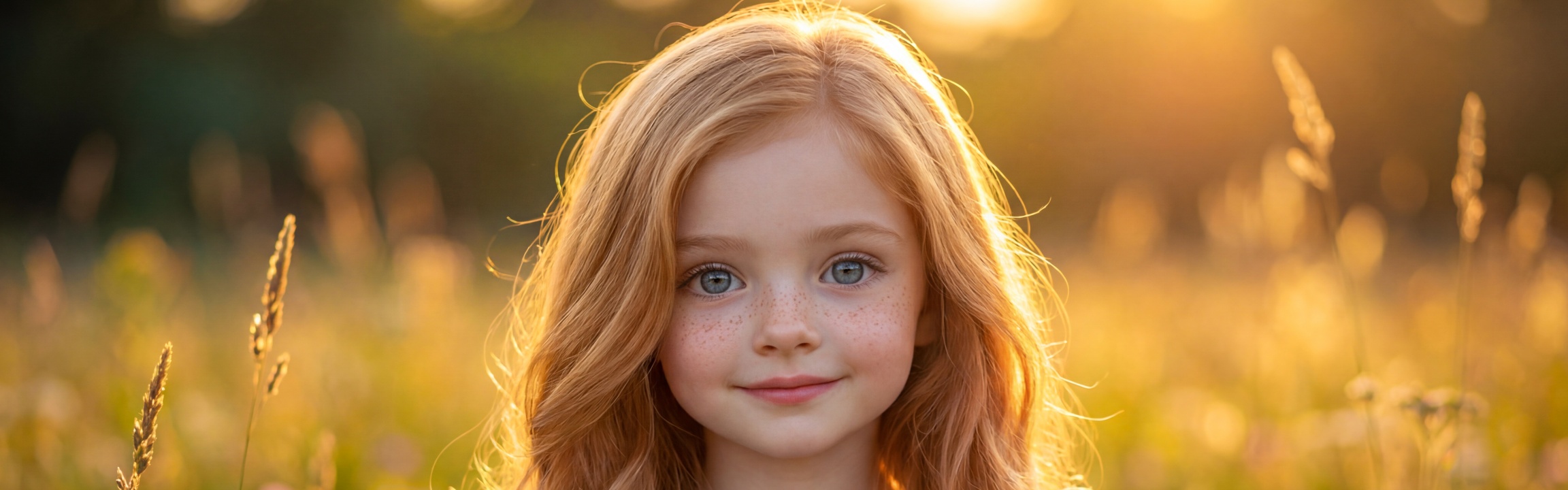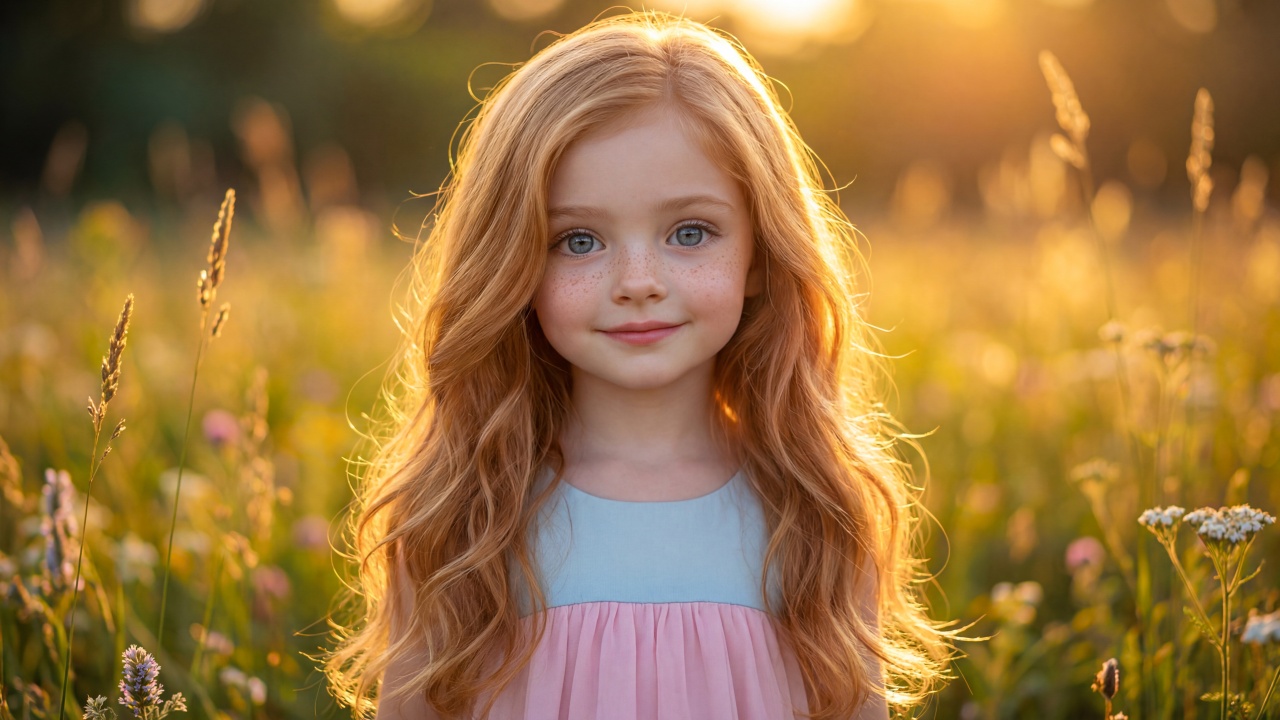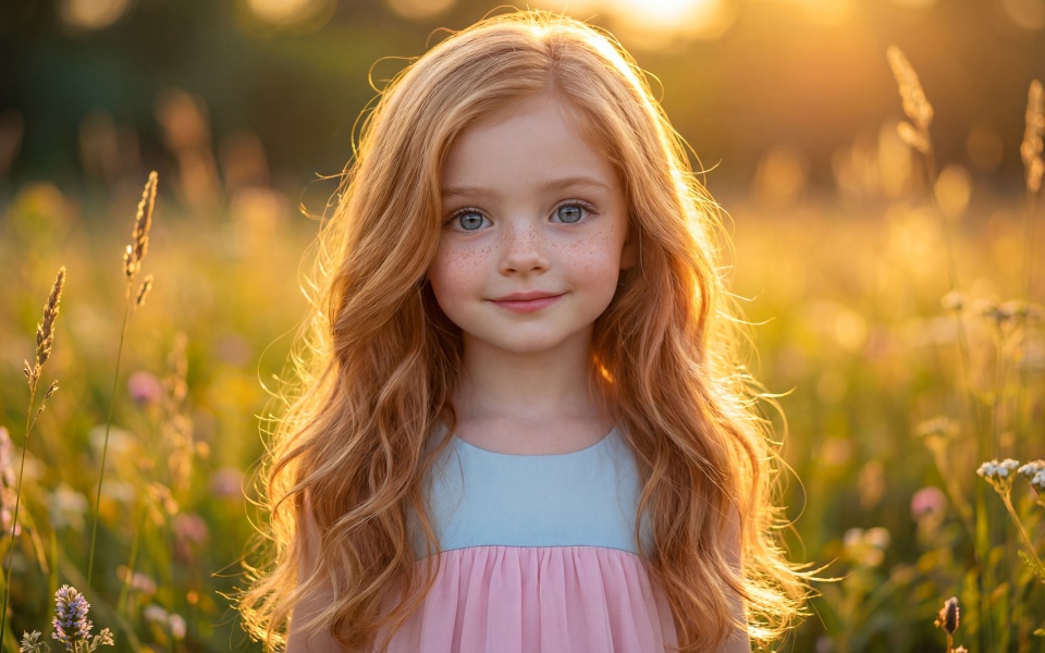 Download Little Girl in Sunlit Meadow at Golden Hour 4K UHD Wallpaper