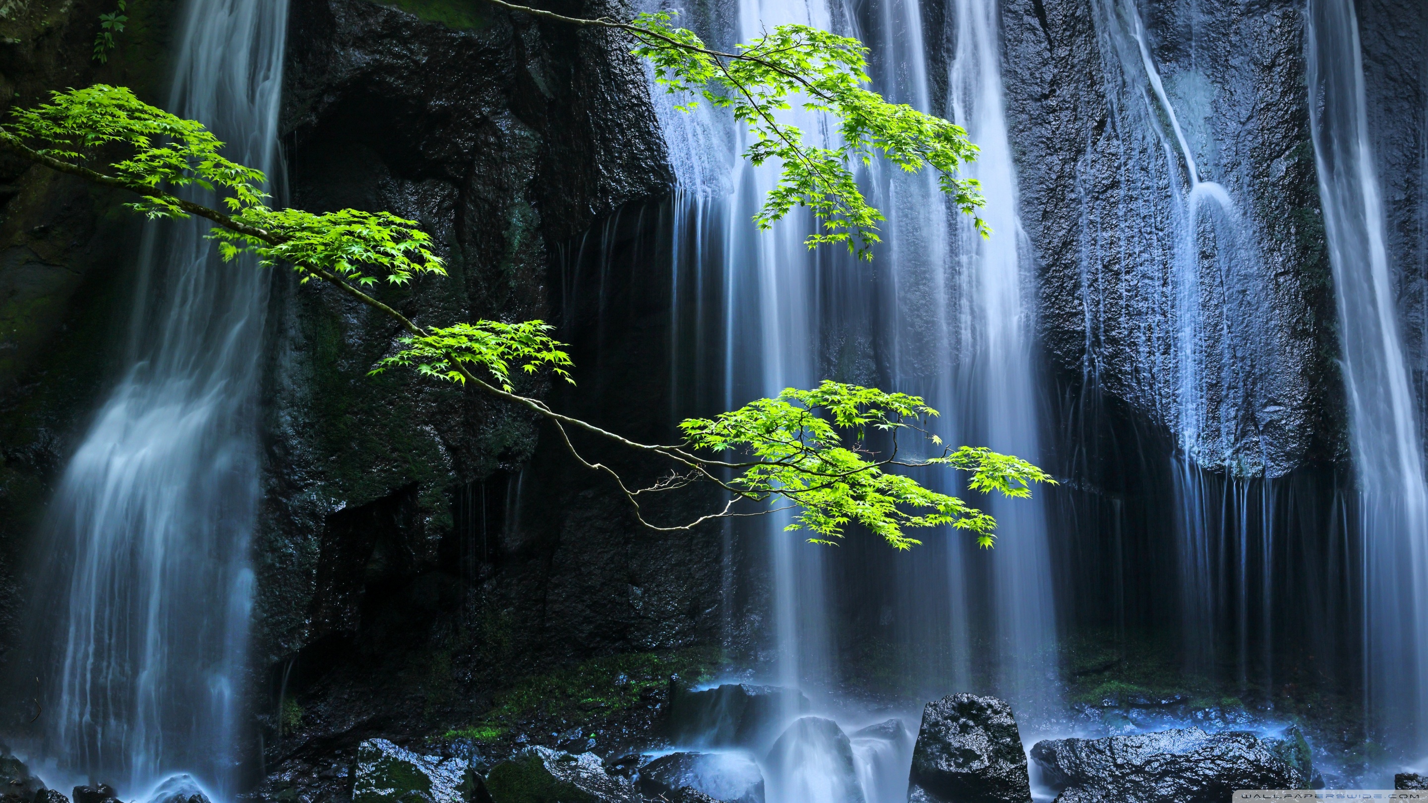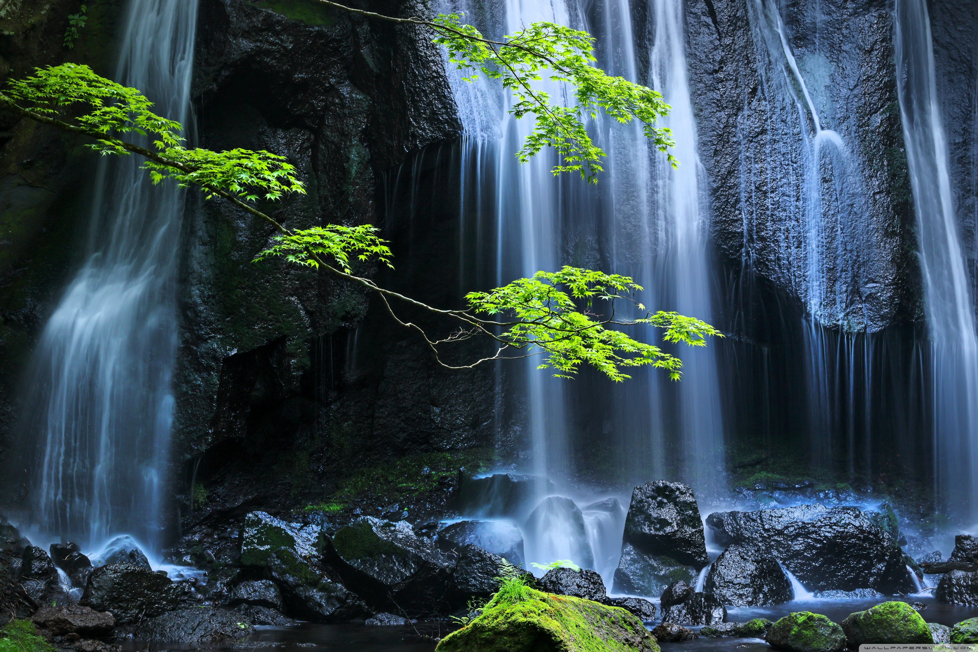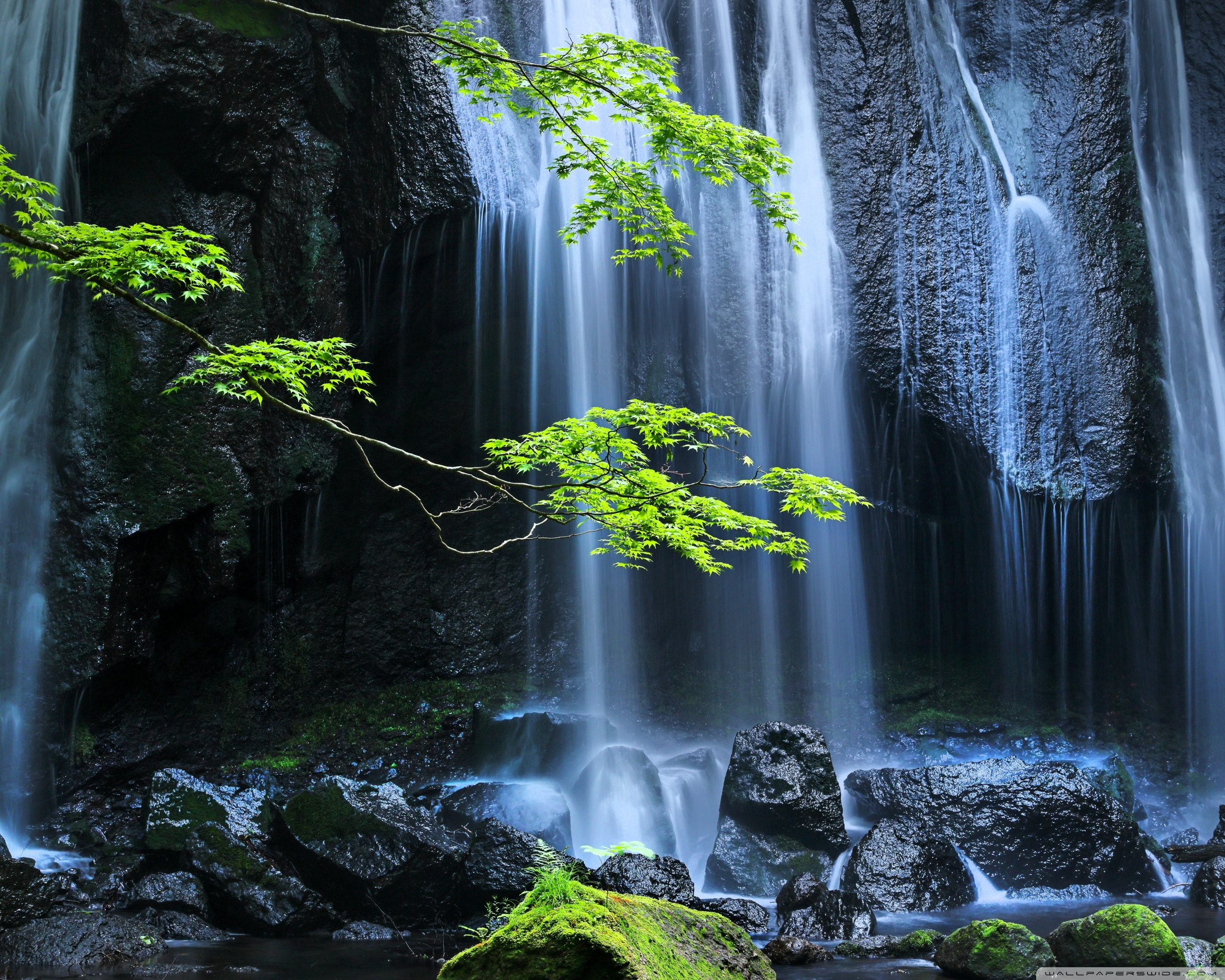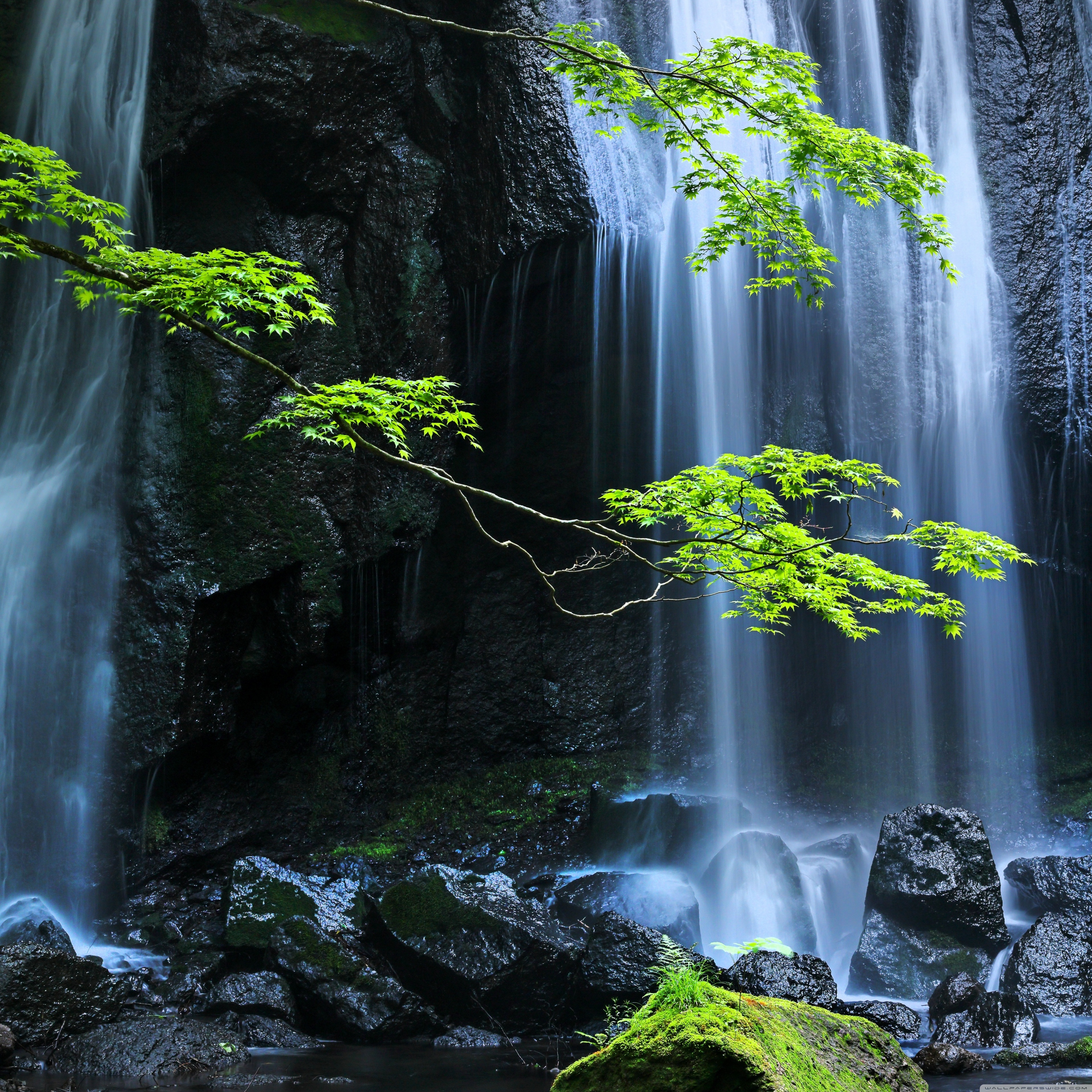 Download Long Exposure Forest Waterfall 4K UHD Wallpaper