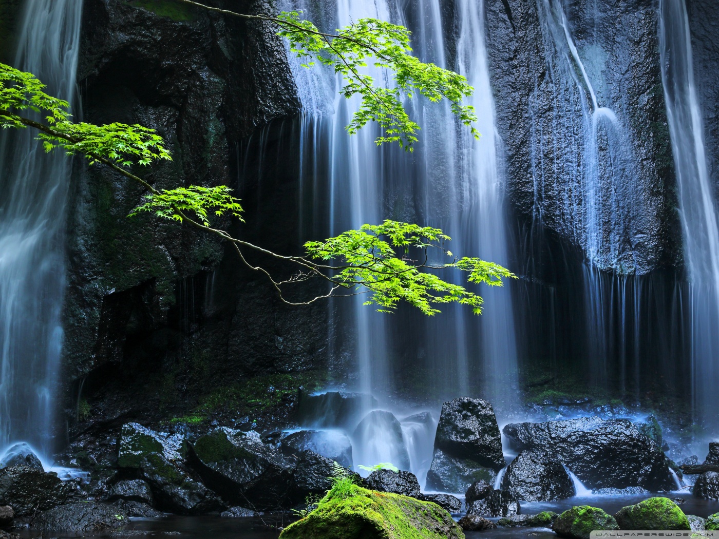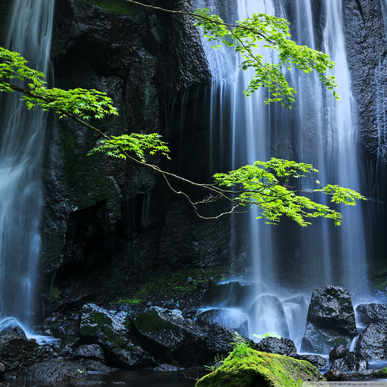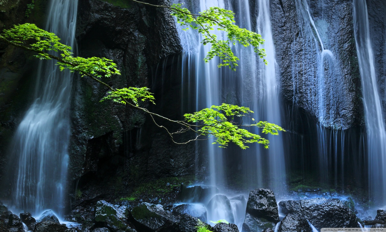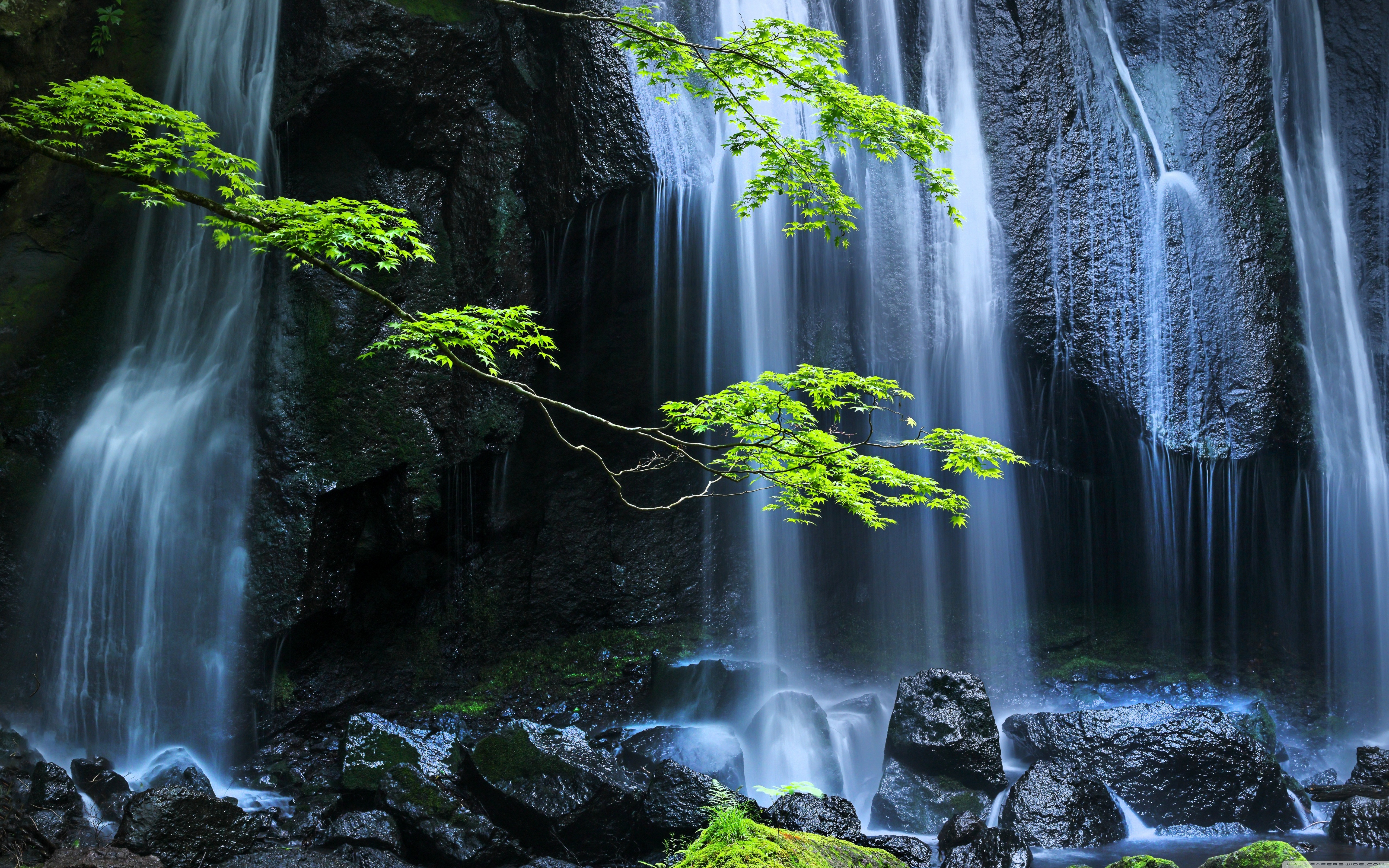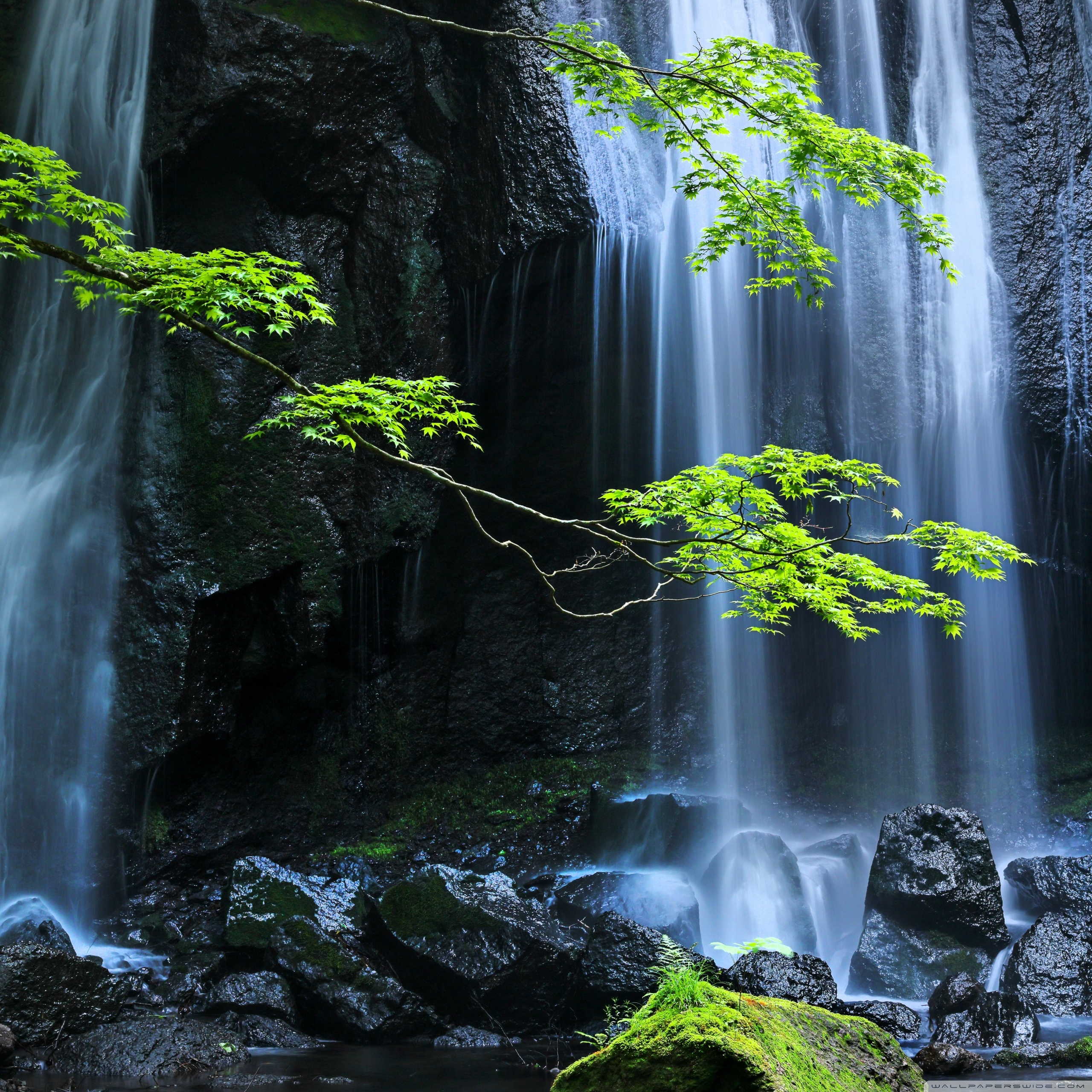 Download Long Exposure Forest Waterfall 4K UHD Wallpaper
