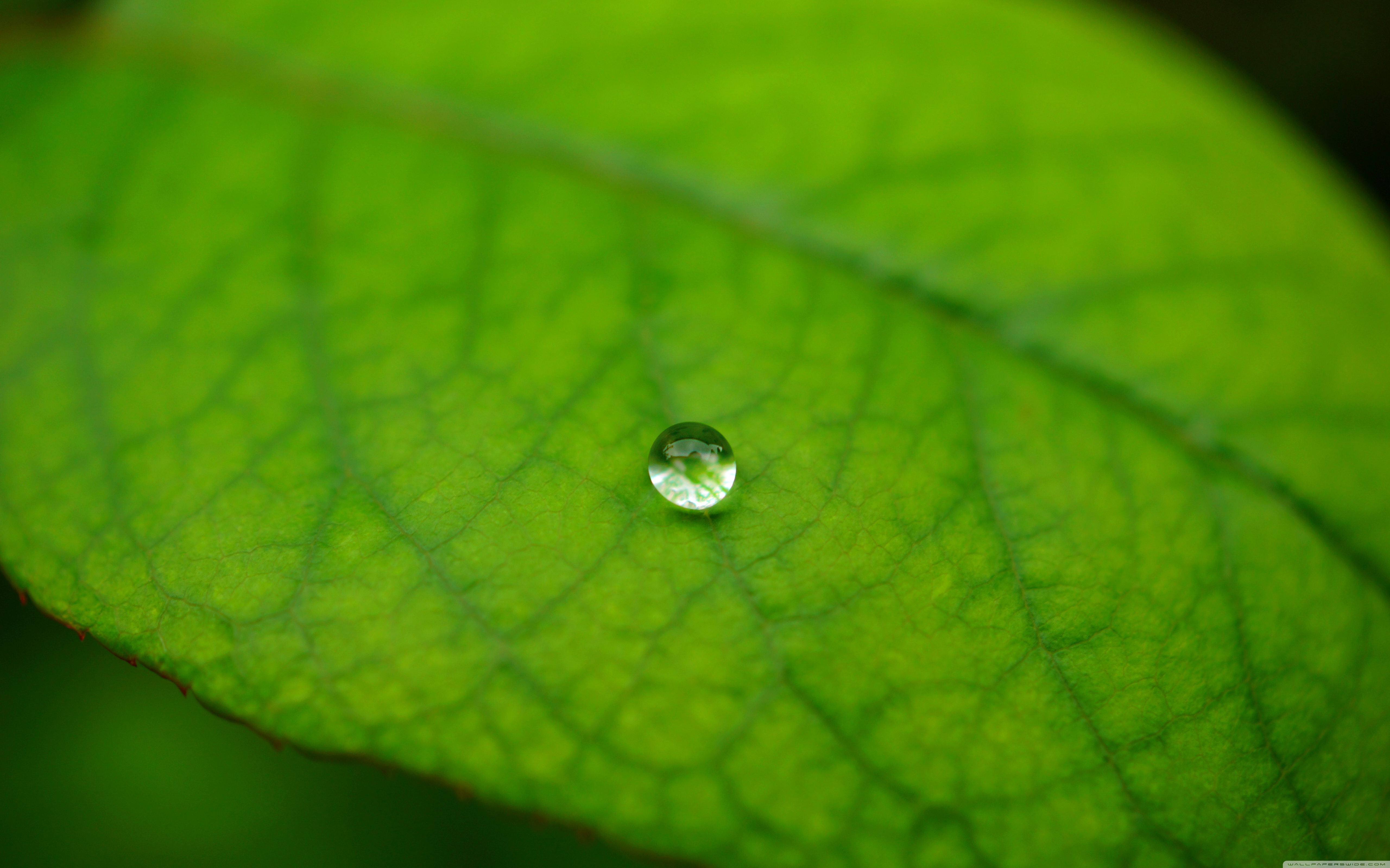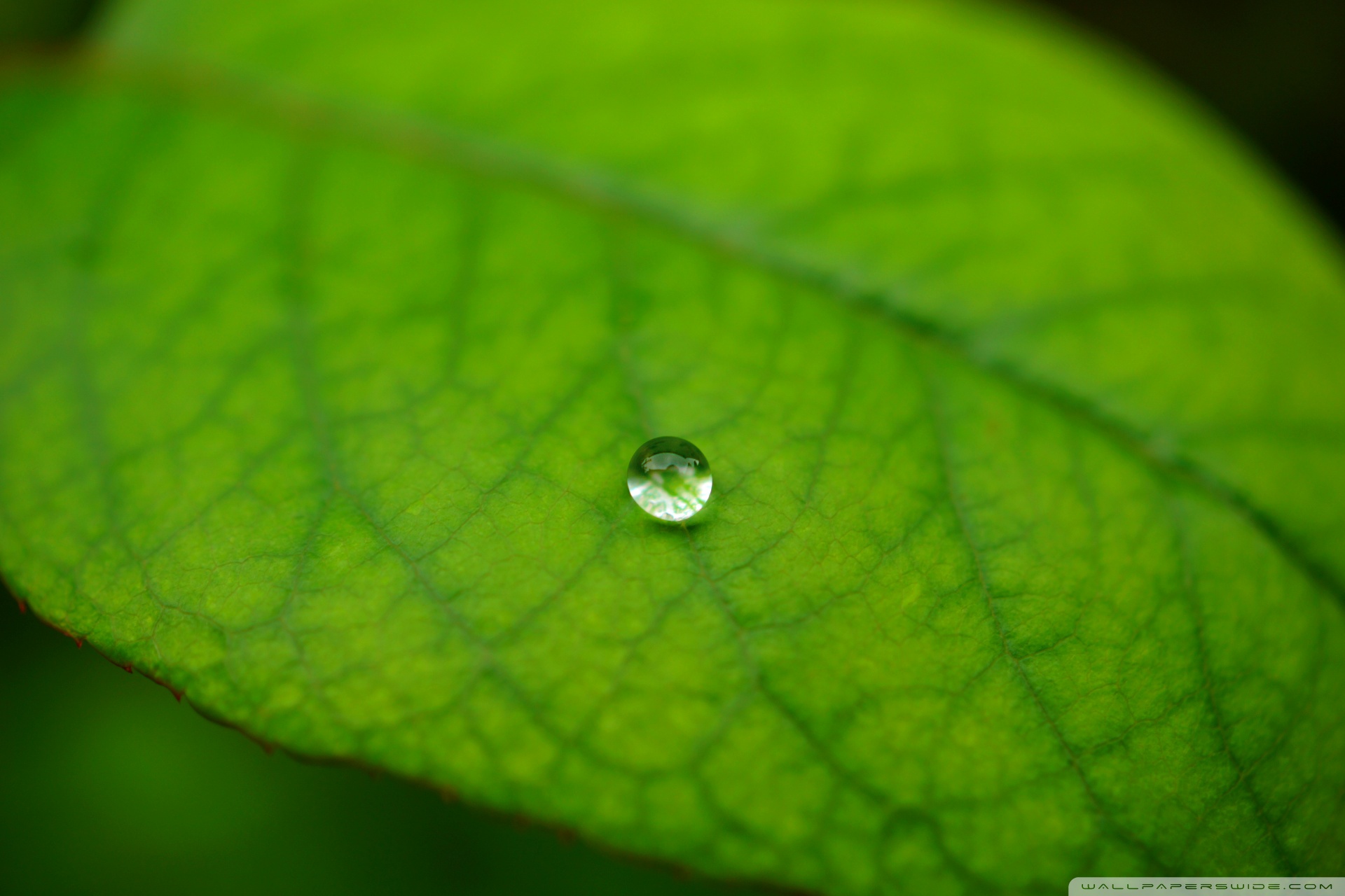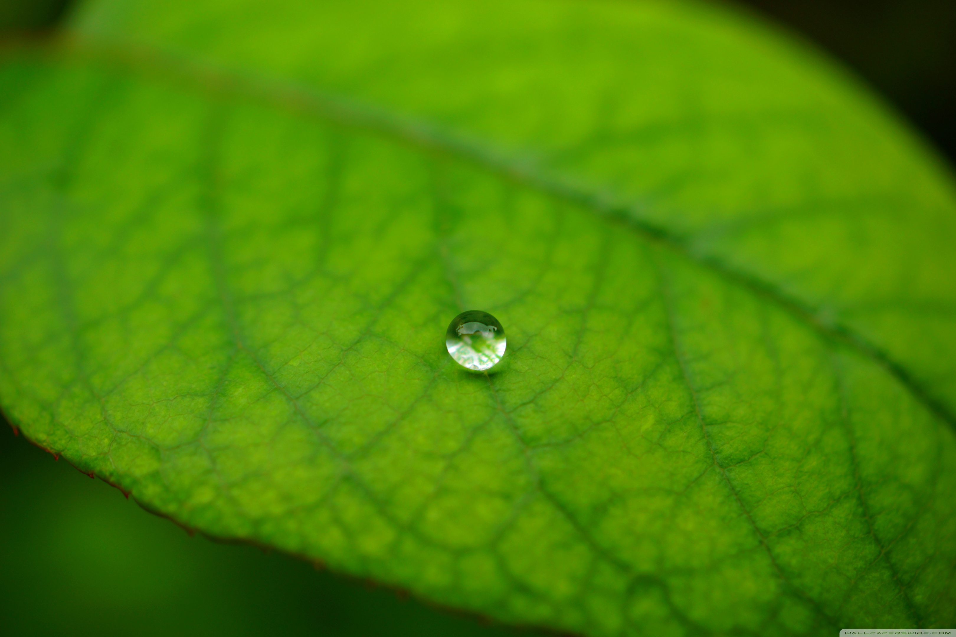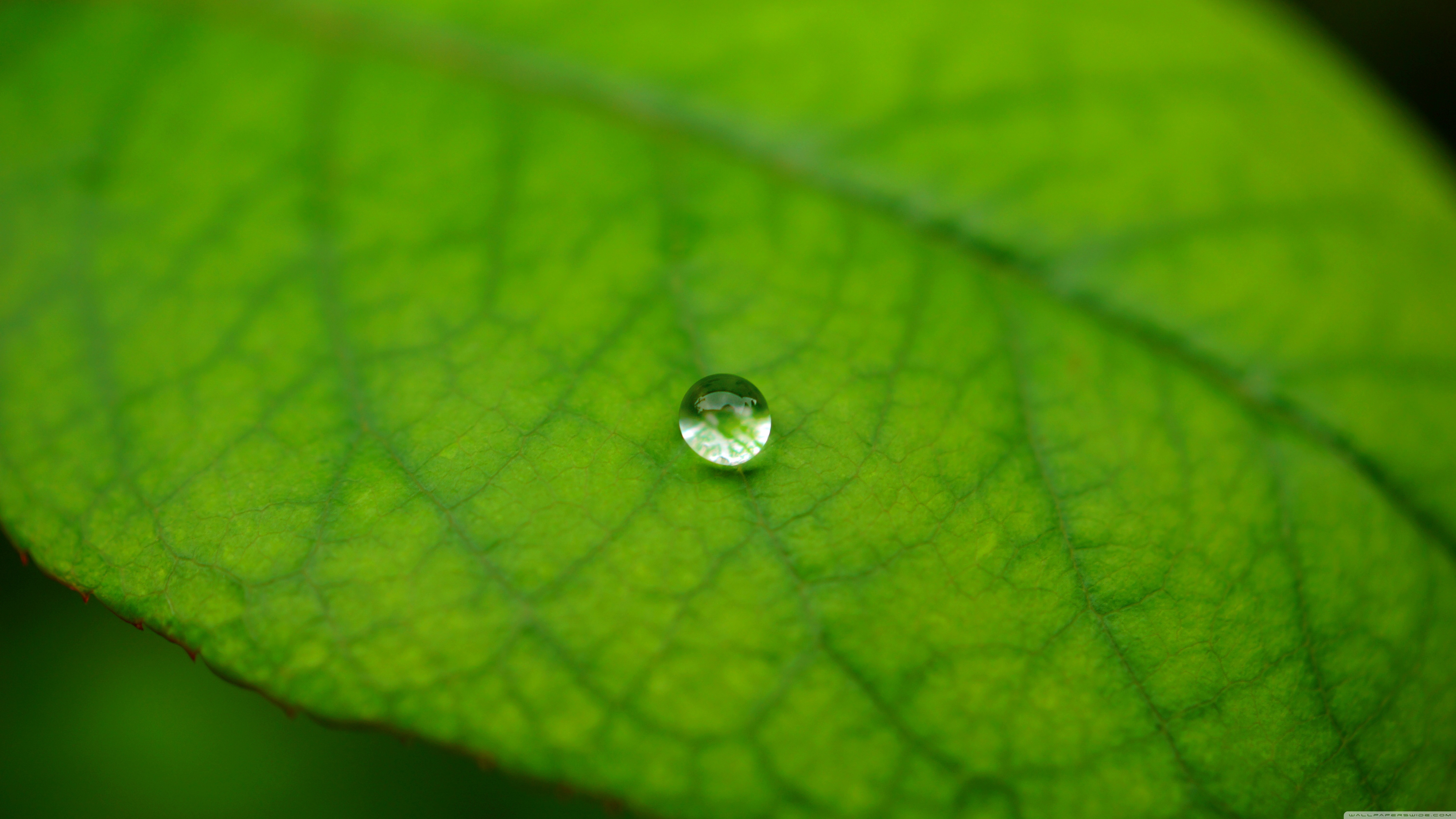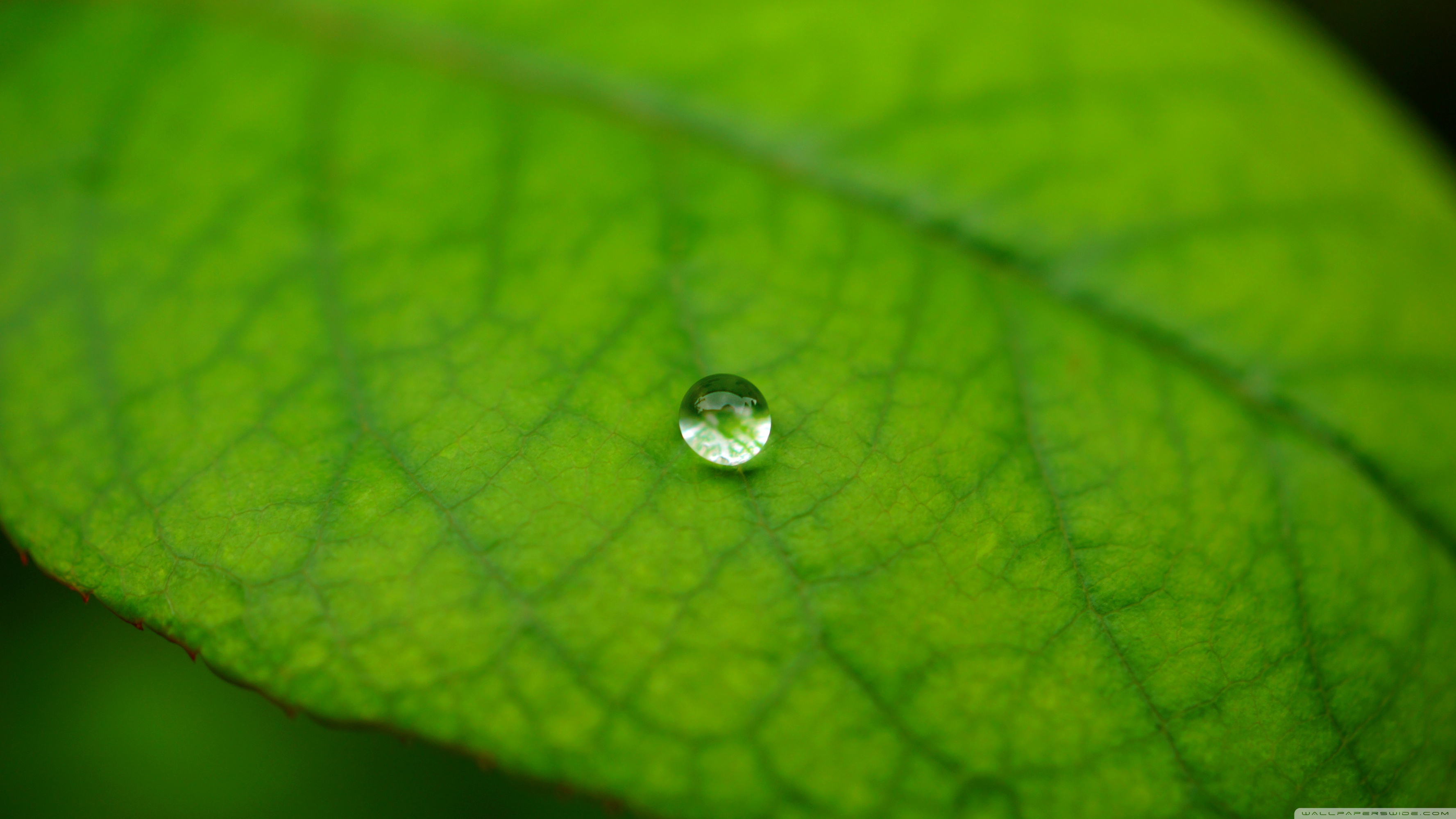 Download Macro Waterdrop on a Green Leaf 4K UHD Wallpaper