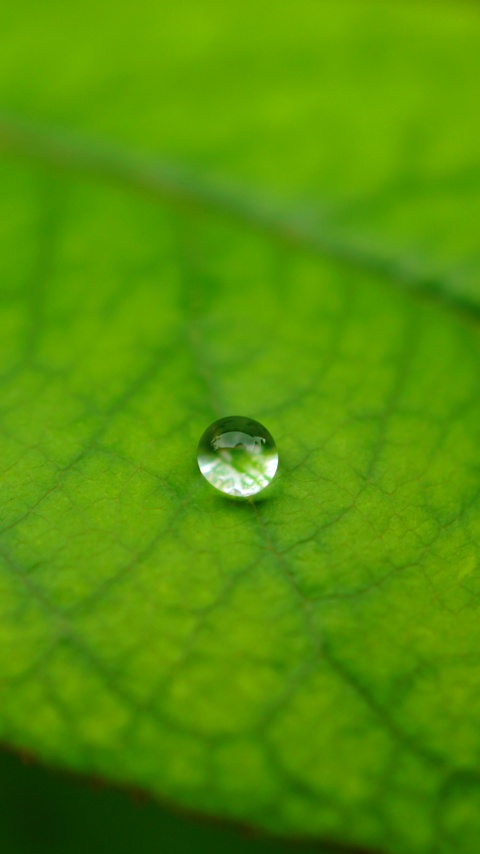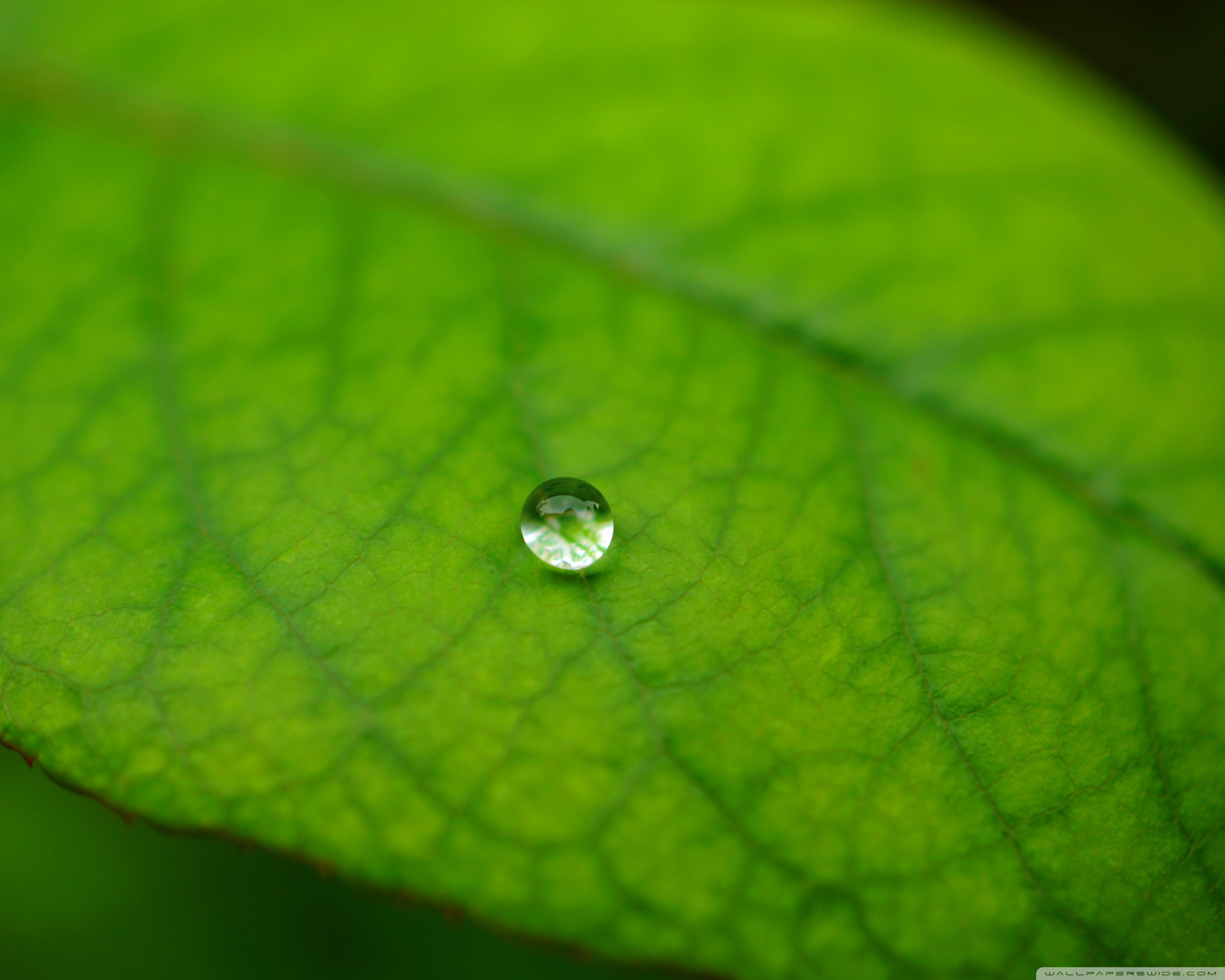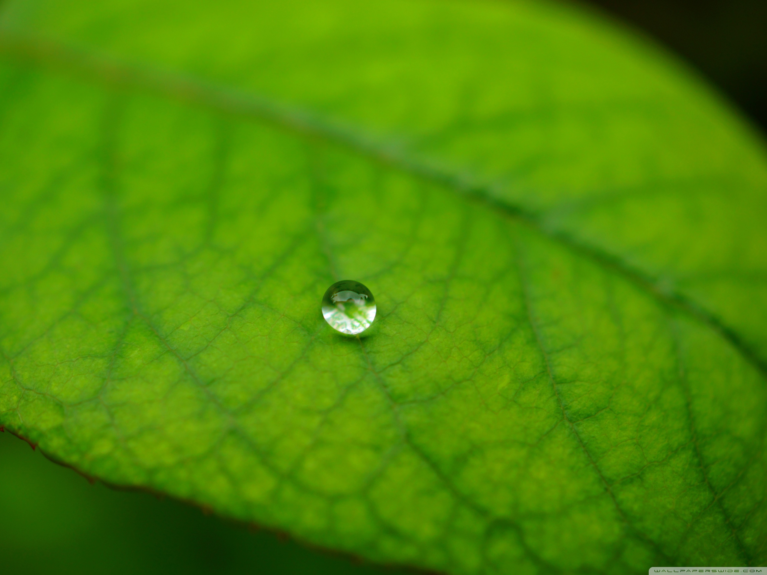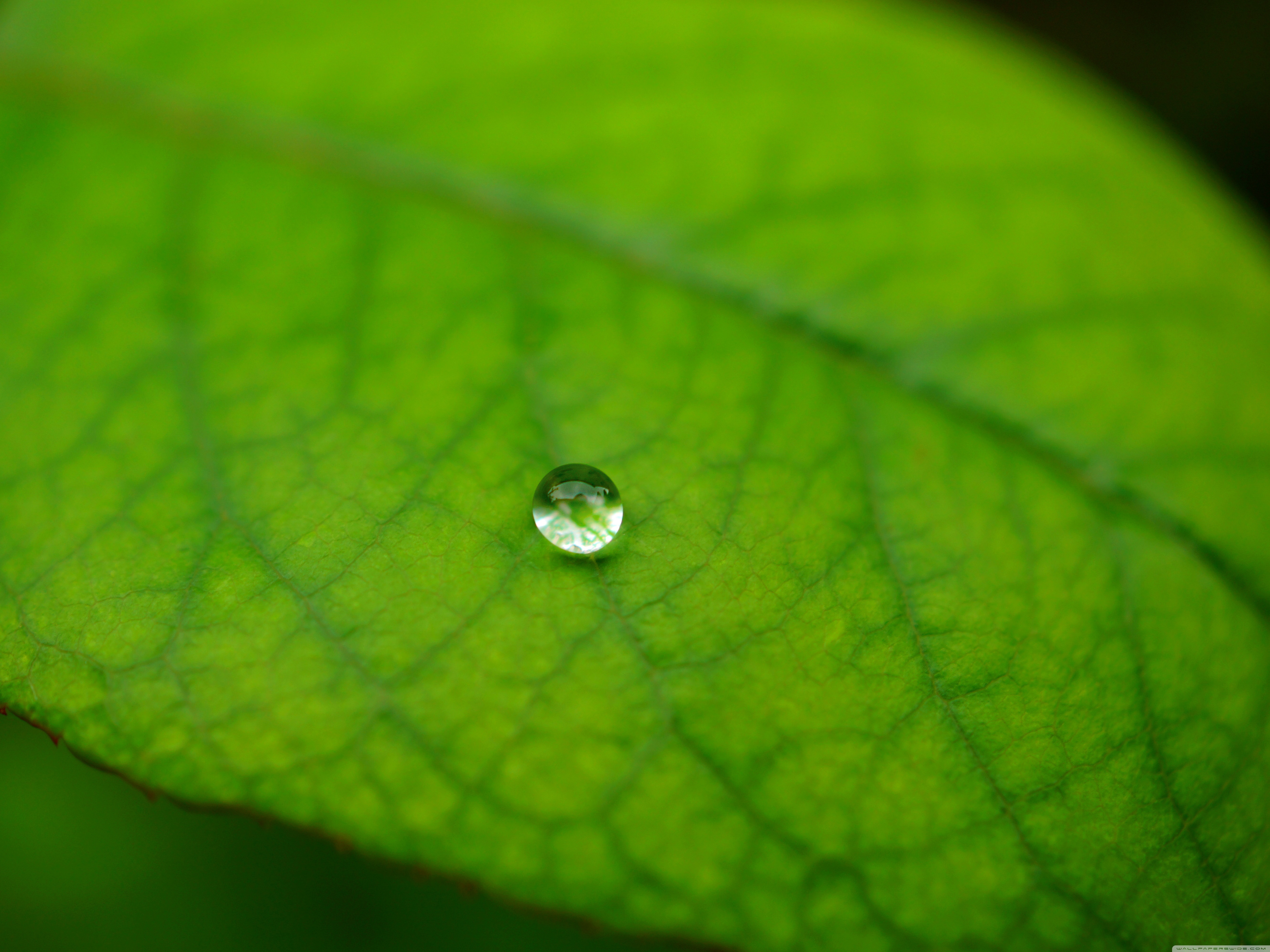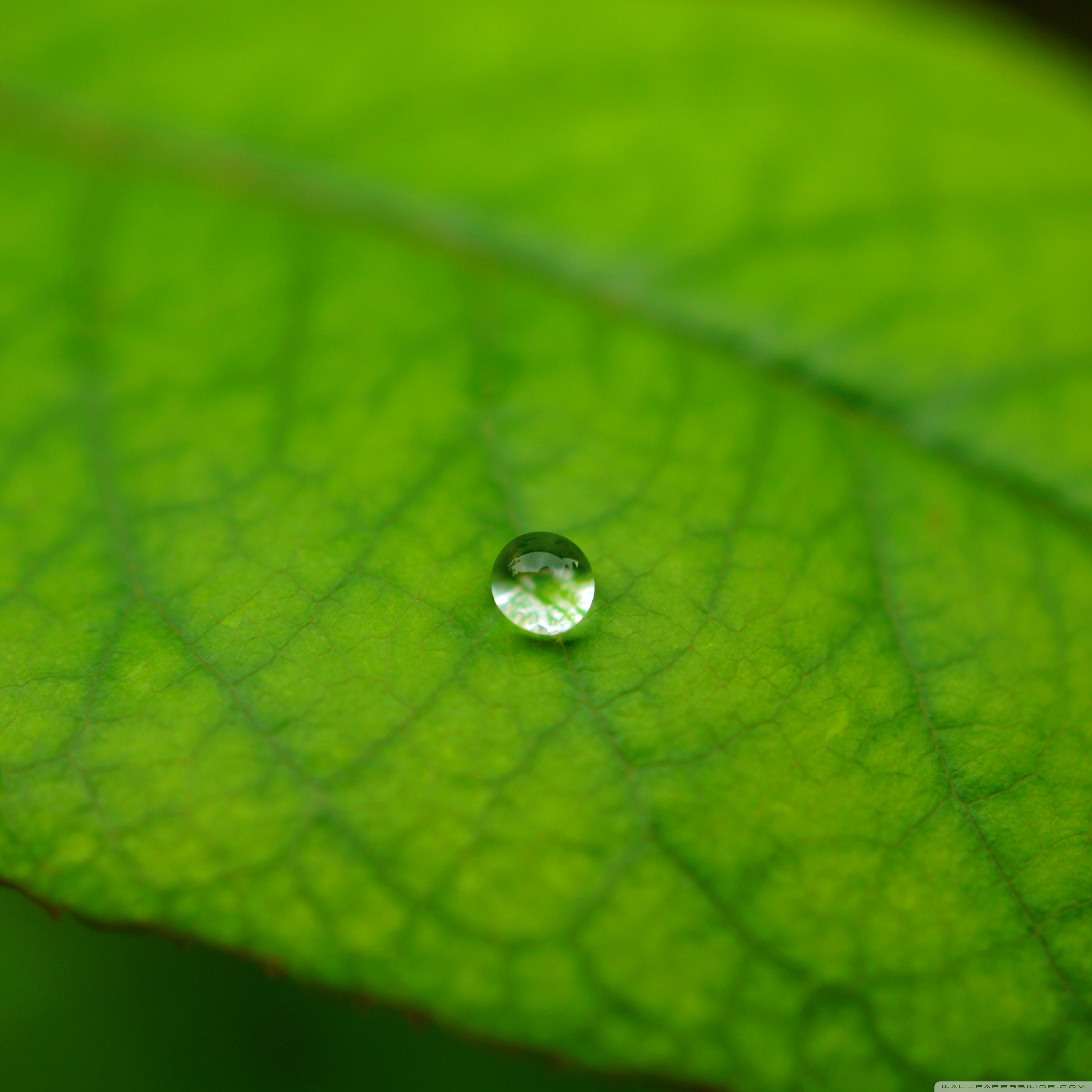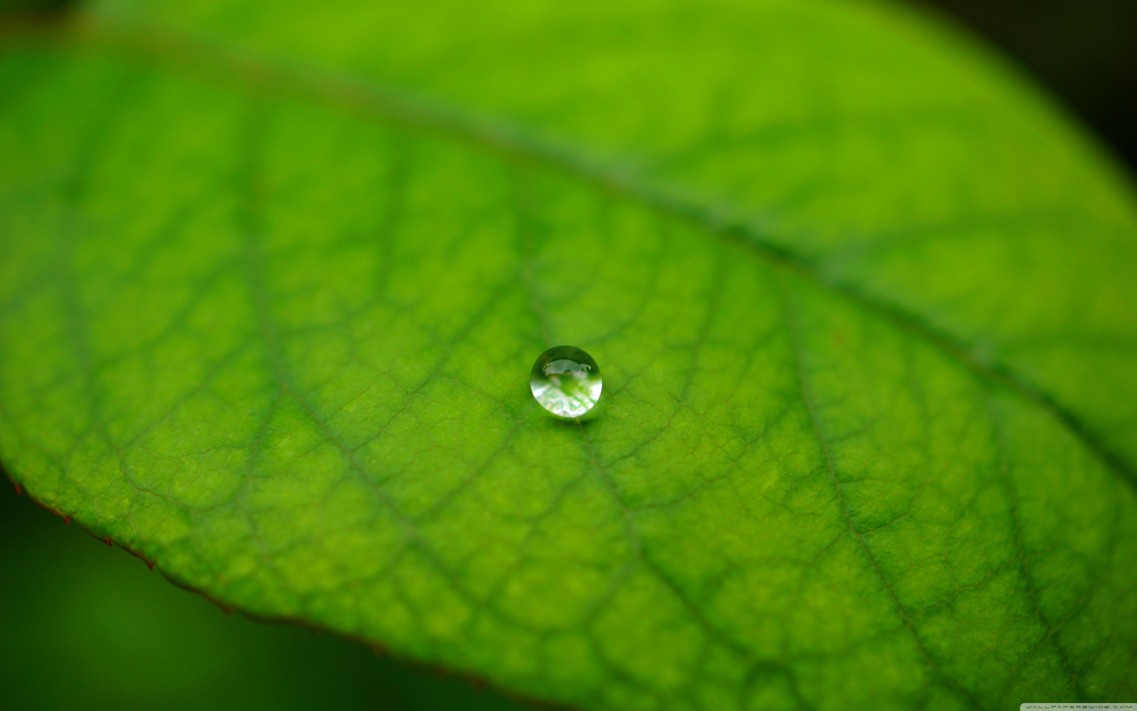 Download Macro Waterdrop on a Green Leaf 4K UHD Wallpaper