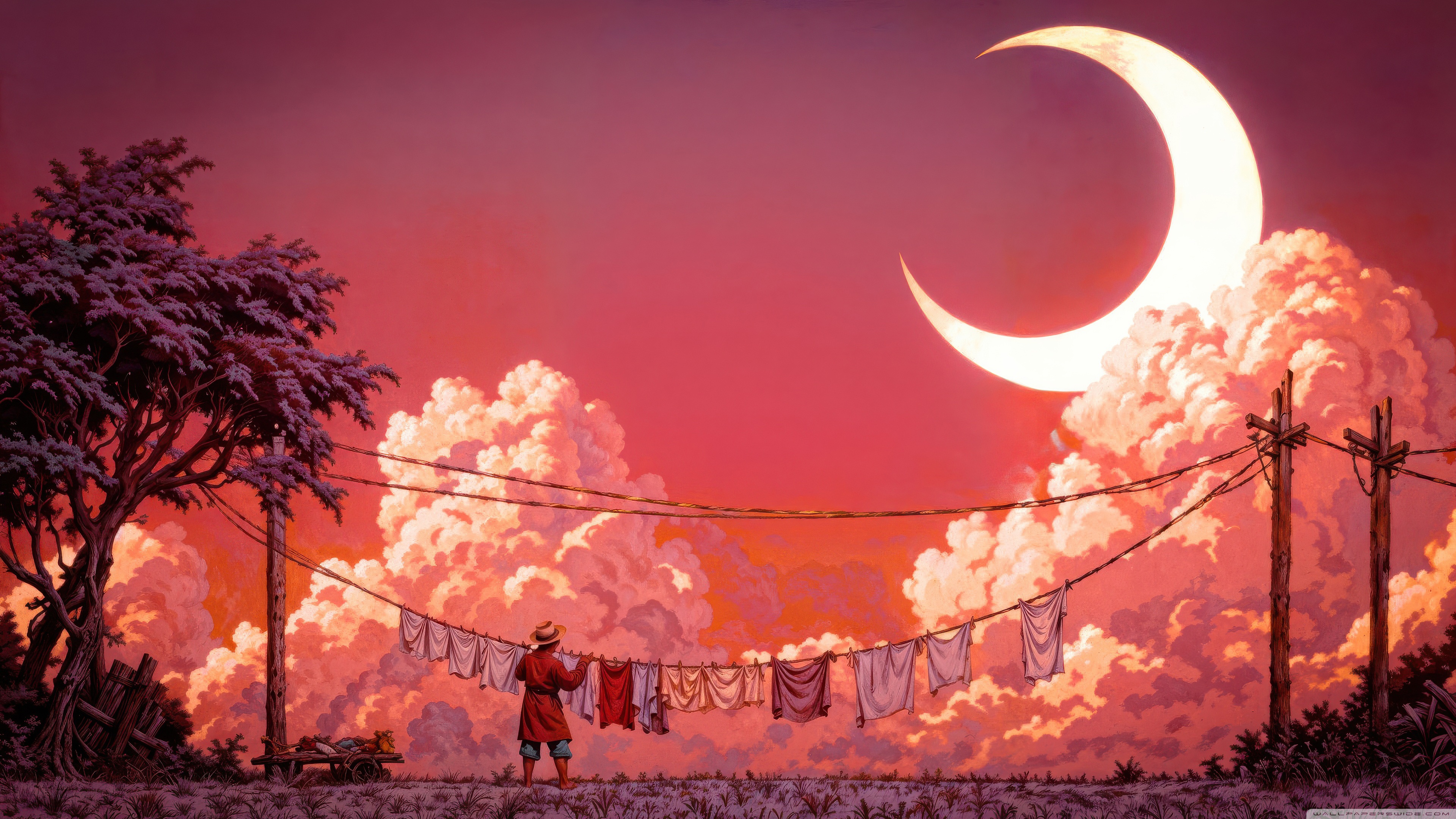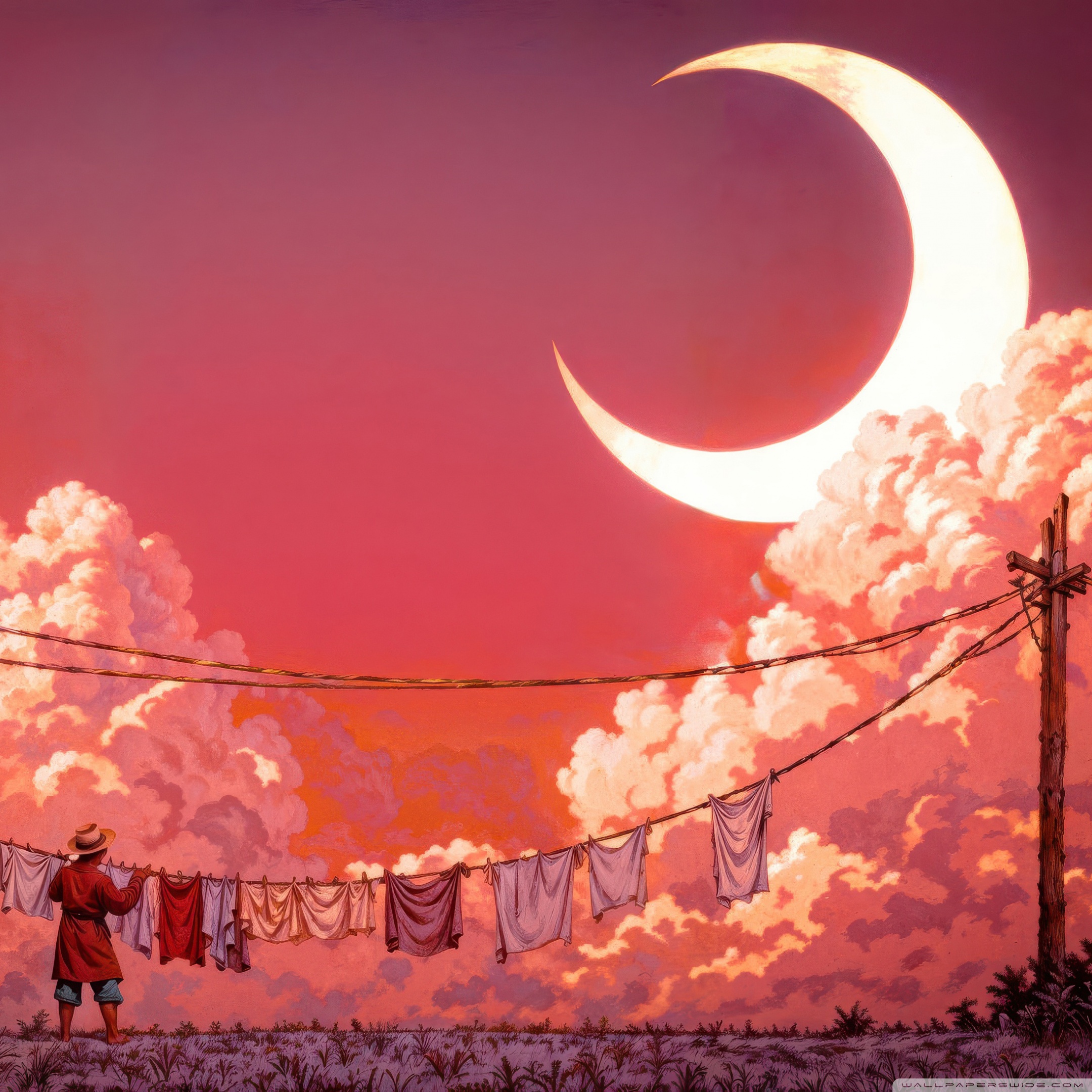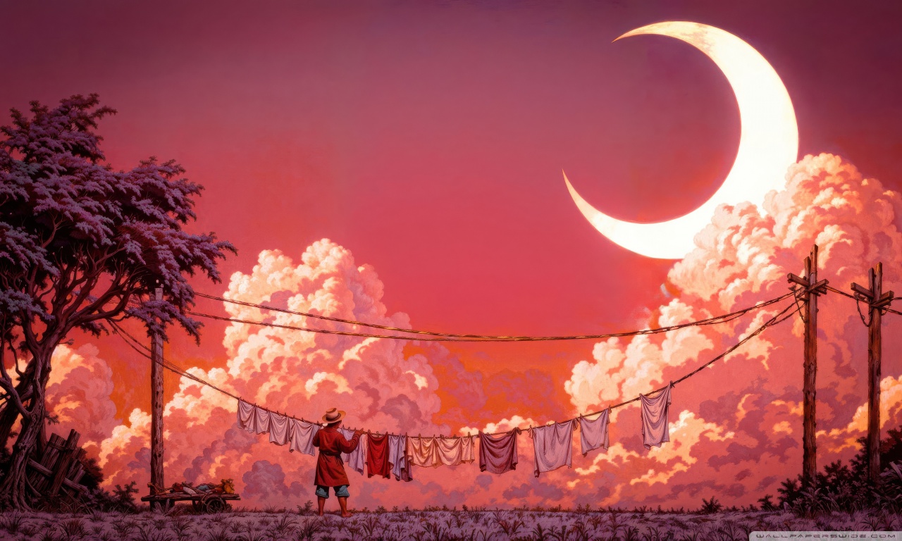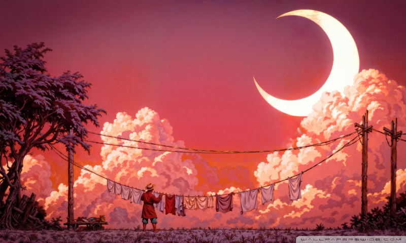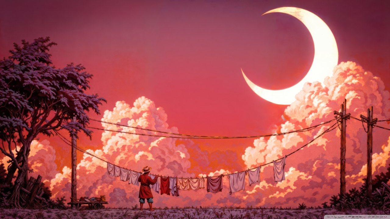 Download Man Hanging Laundry in Moonlight 4K UHD Wallpaper