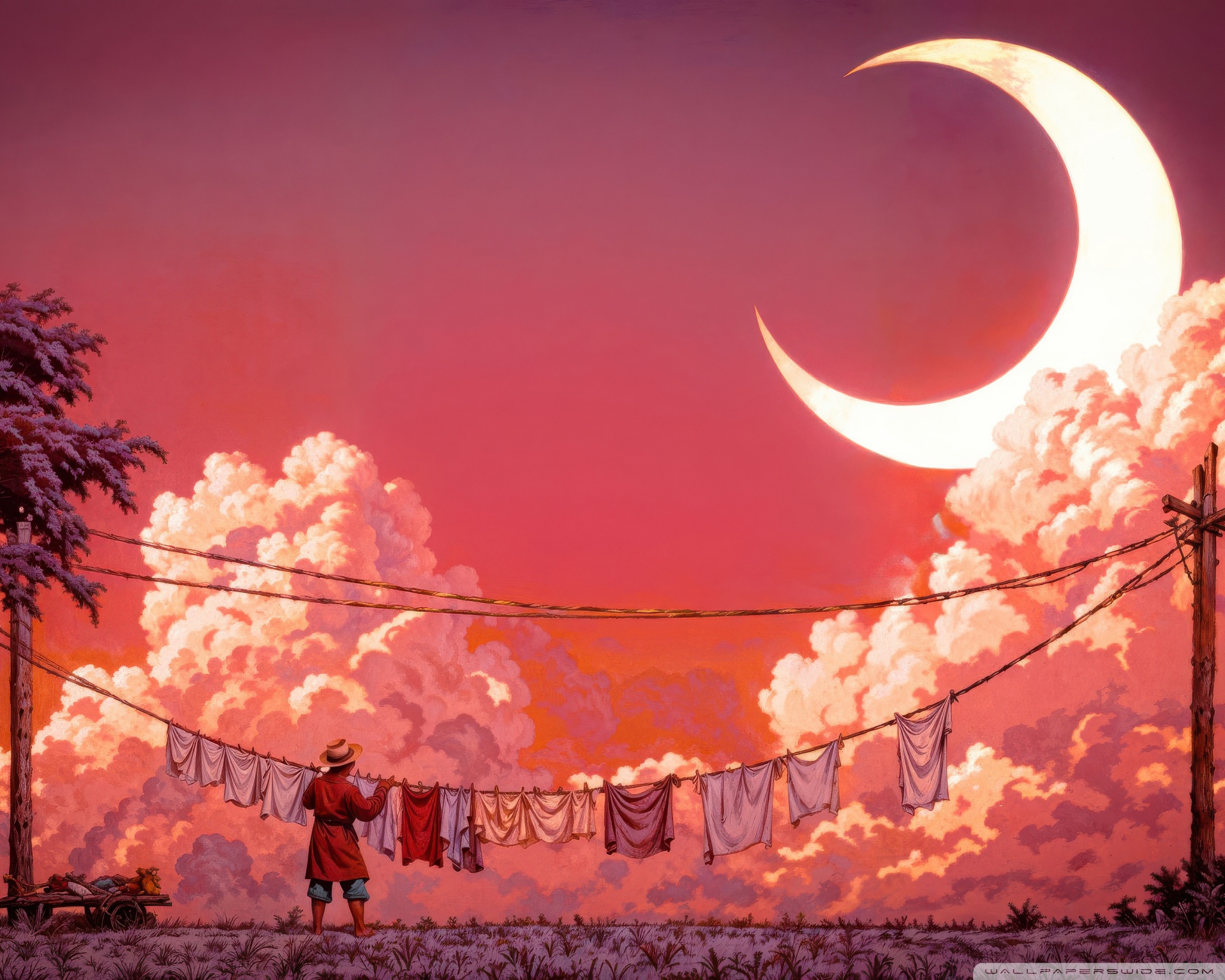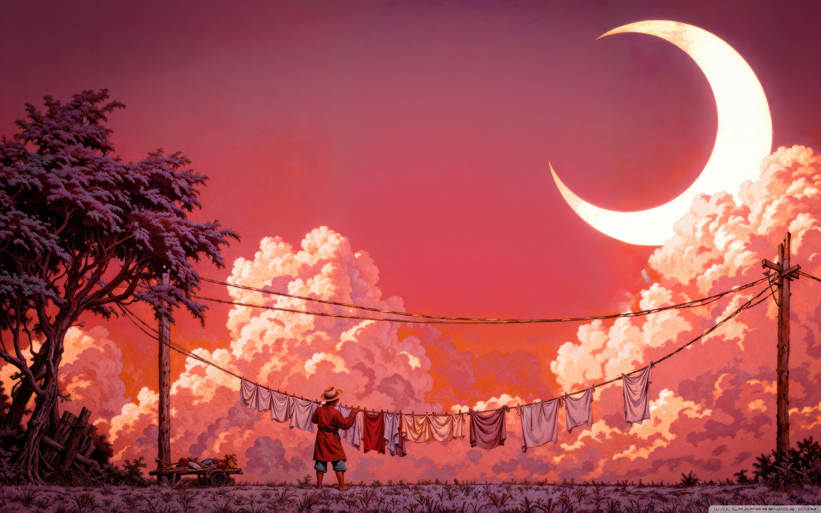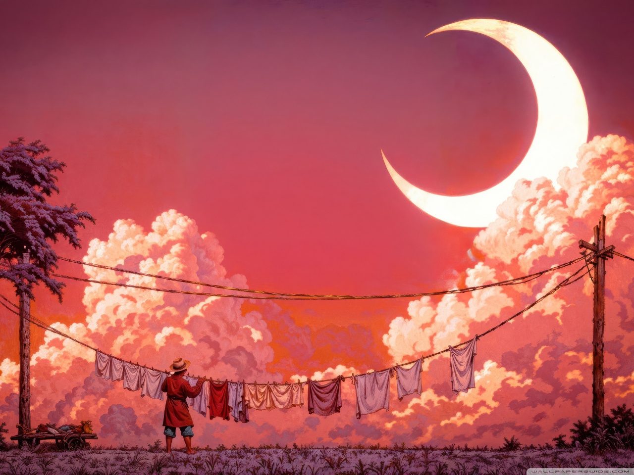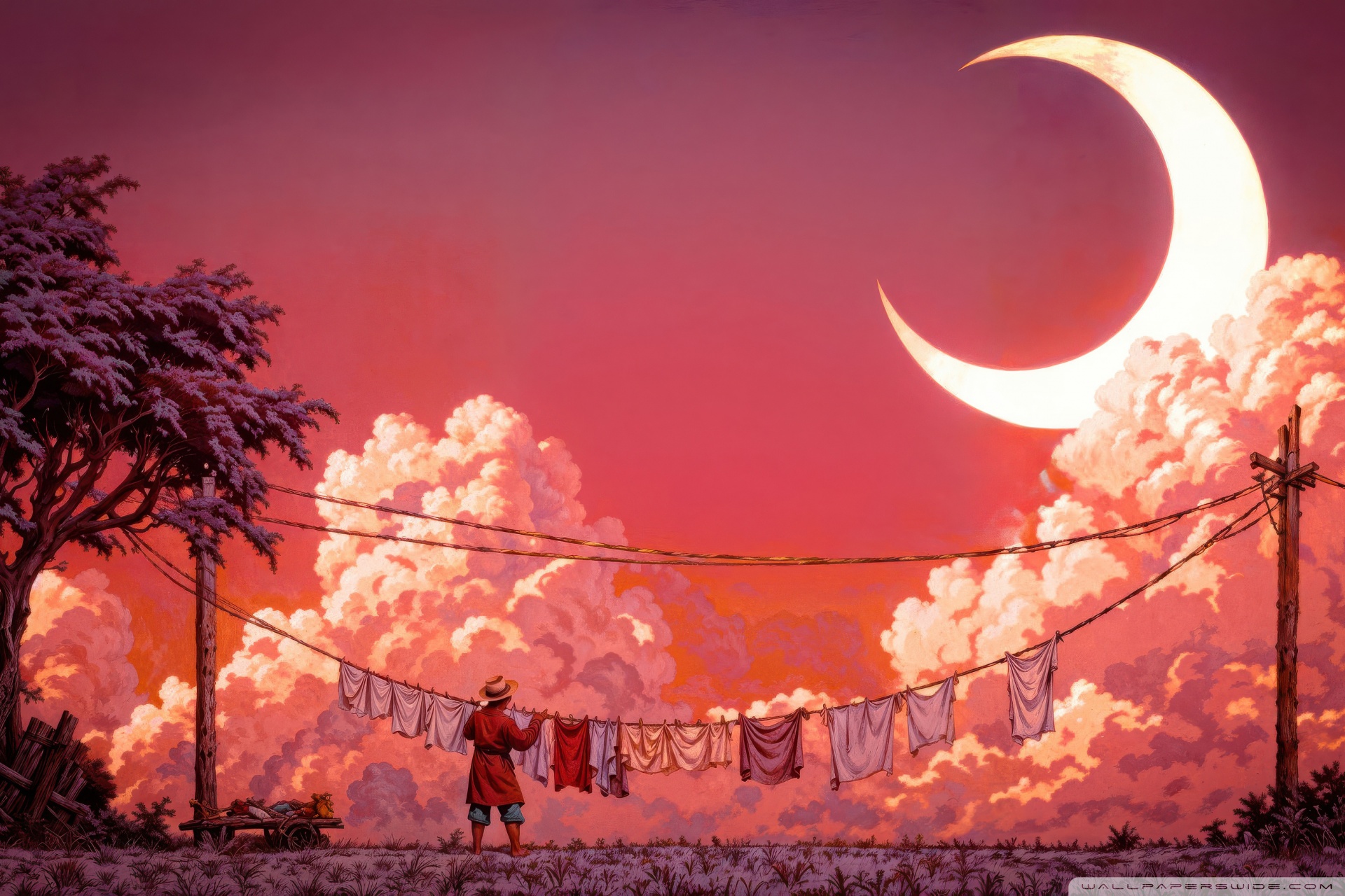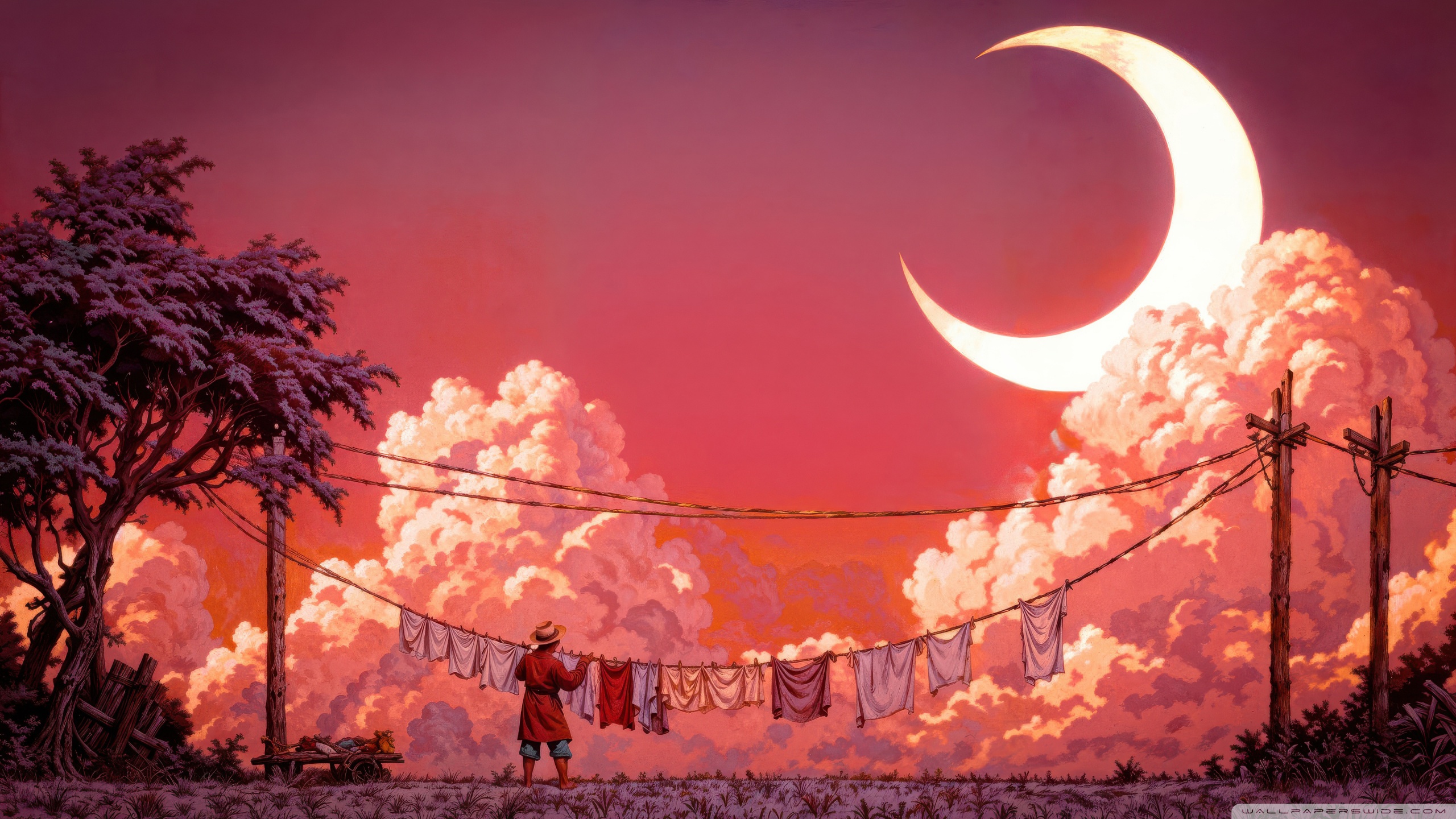 Download Man Hanging Laundry in Moonlight 4K UHD Wallpaper