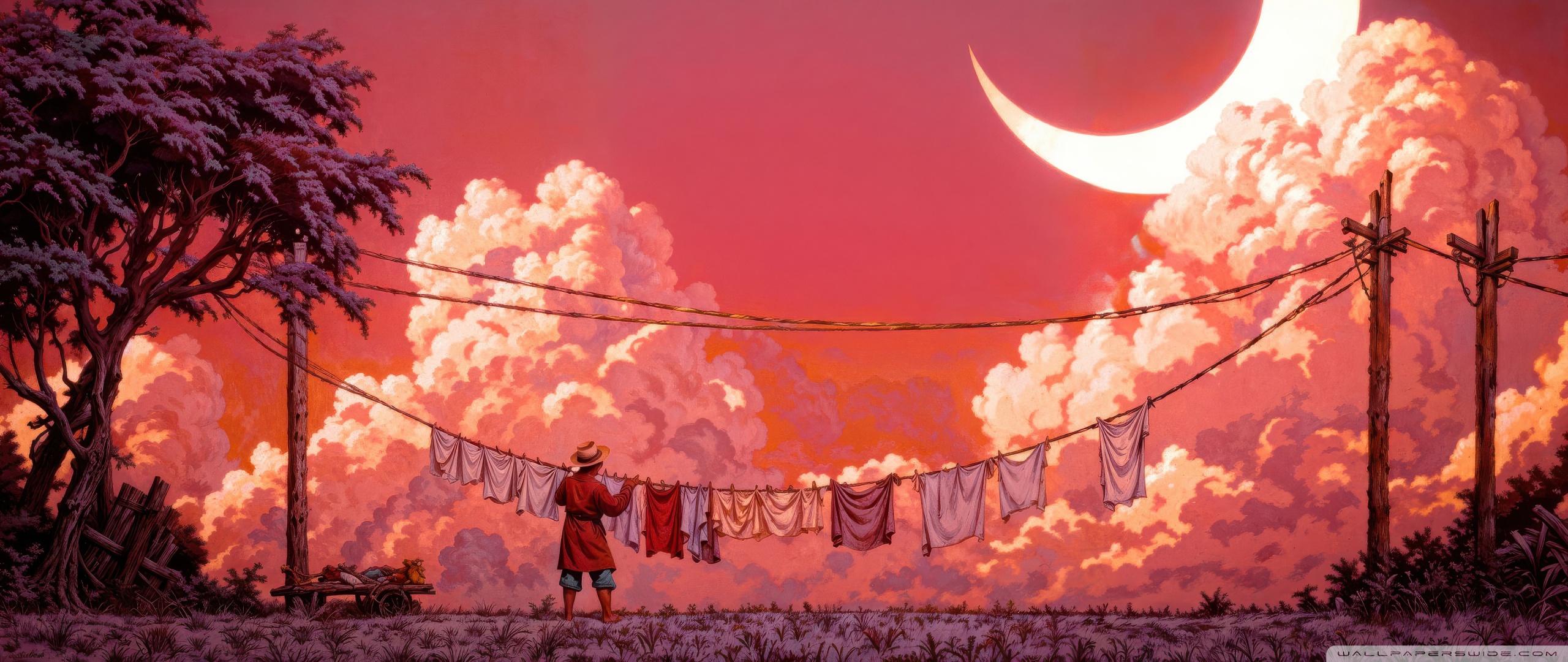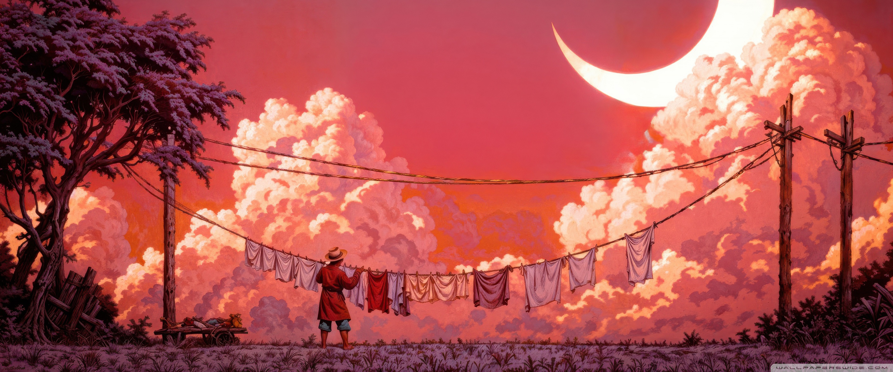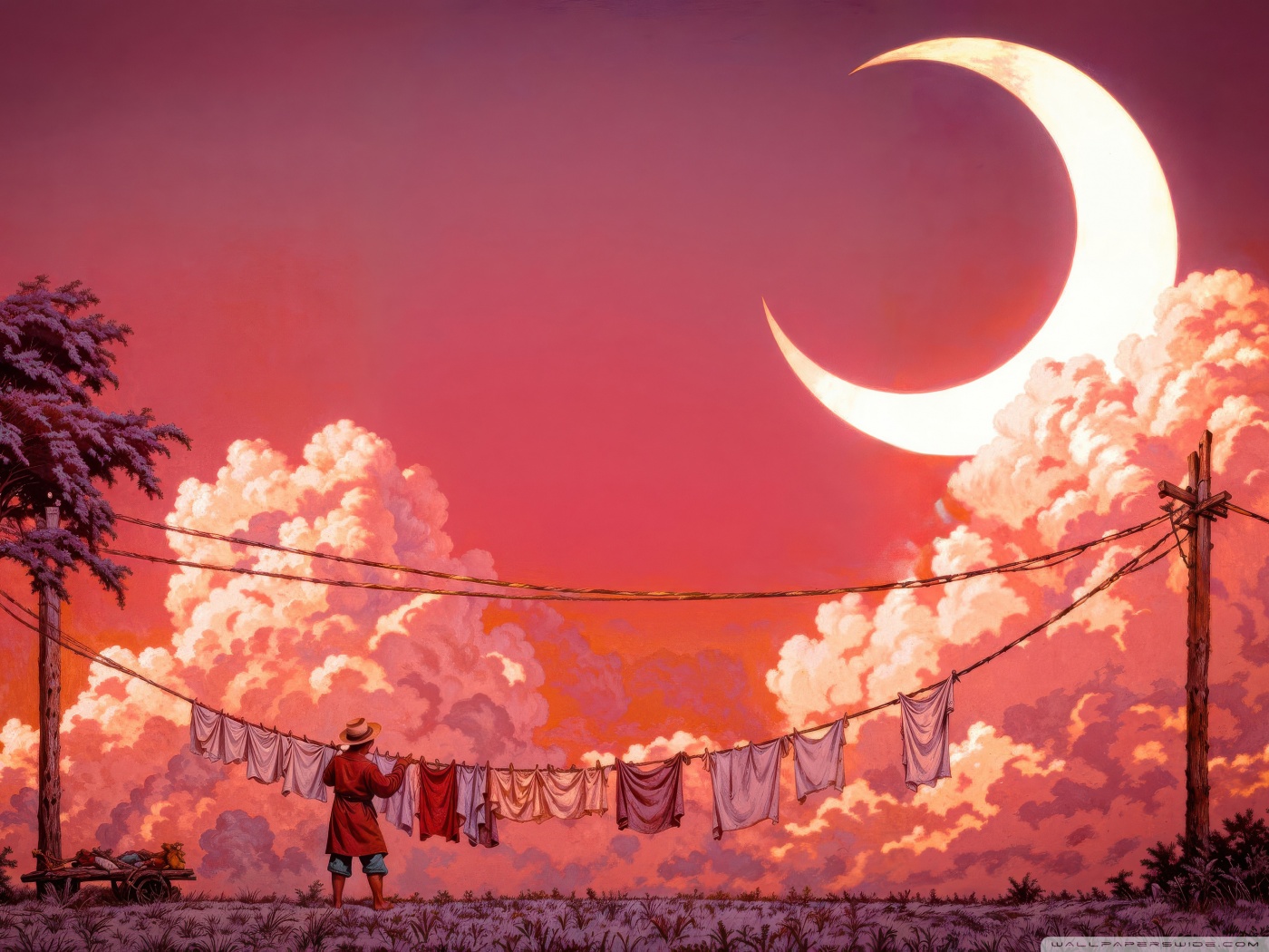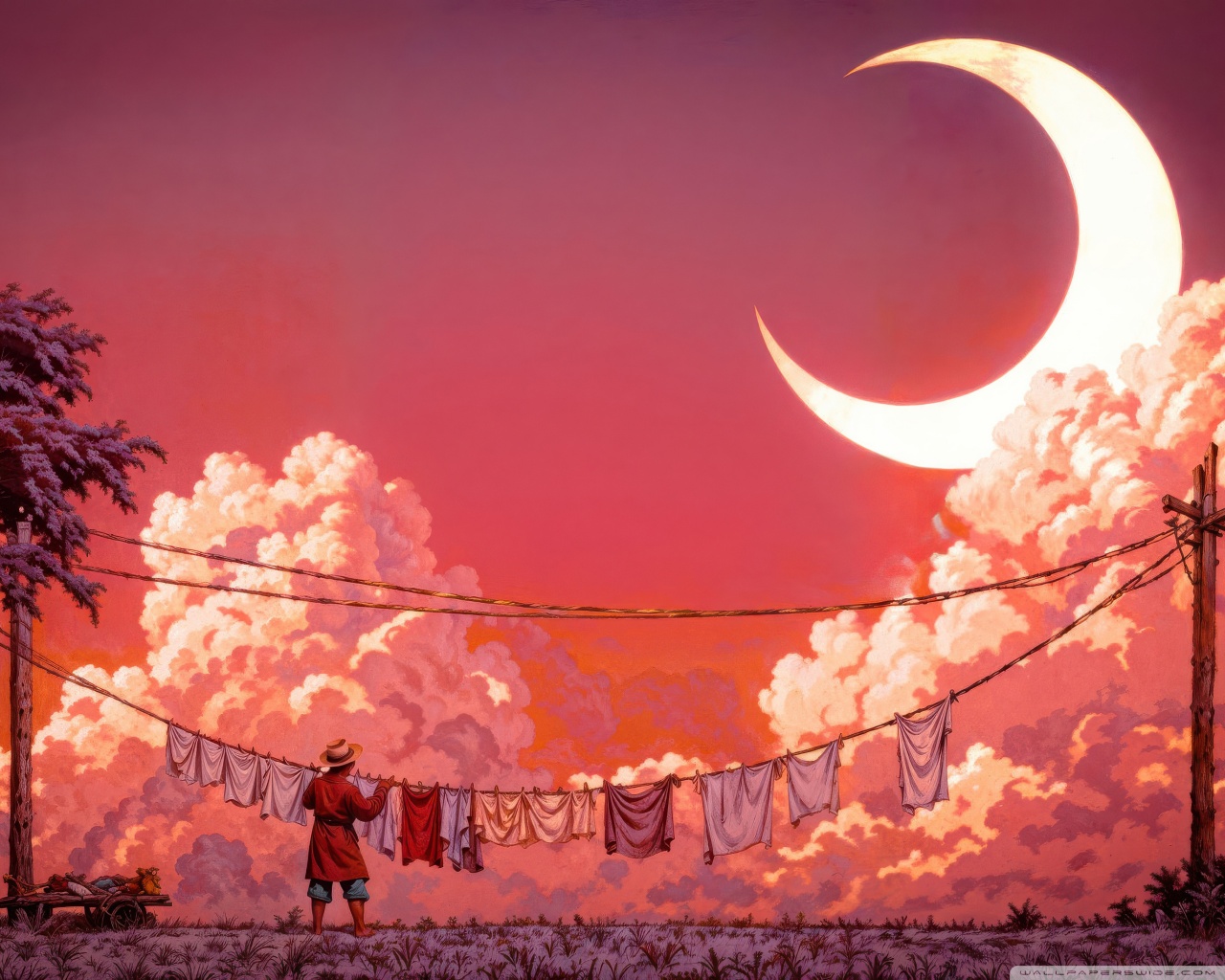 Download Man Hanging Laundry in Moonlight 4K UHD Wallpaper