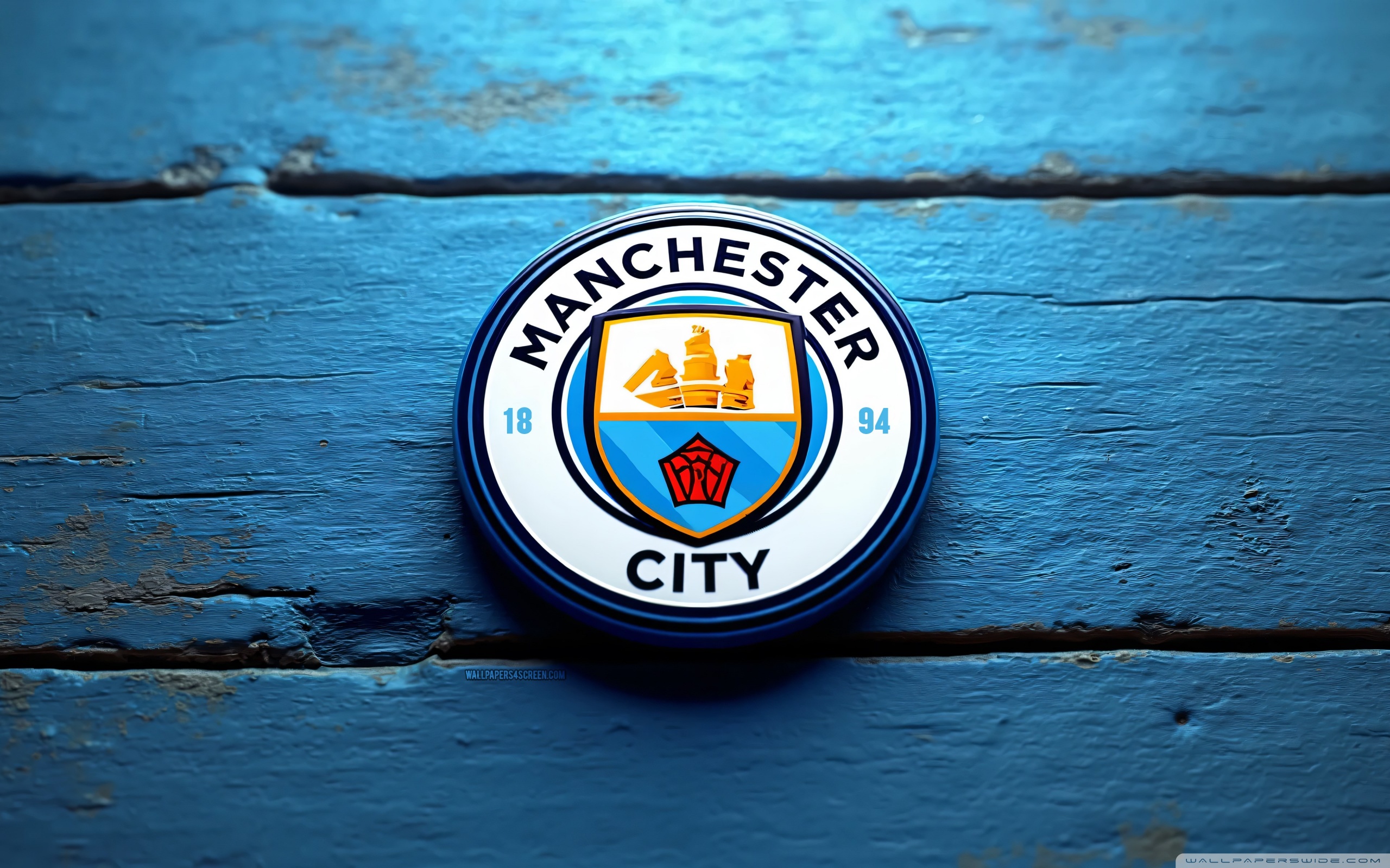 Download Manchester City Wooden Logo 4K UHD Wallpaper