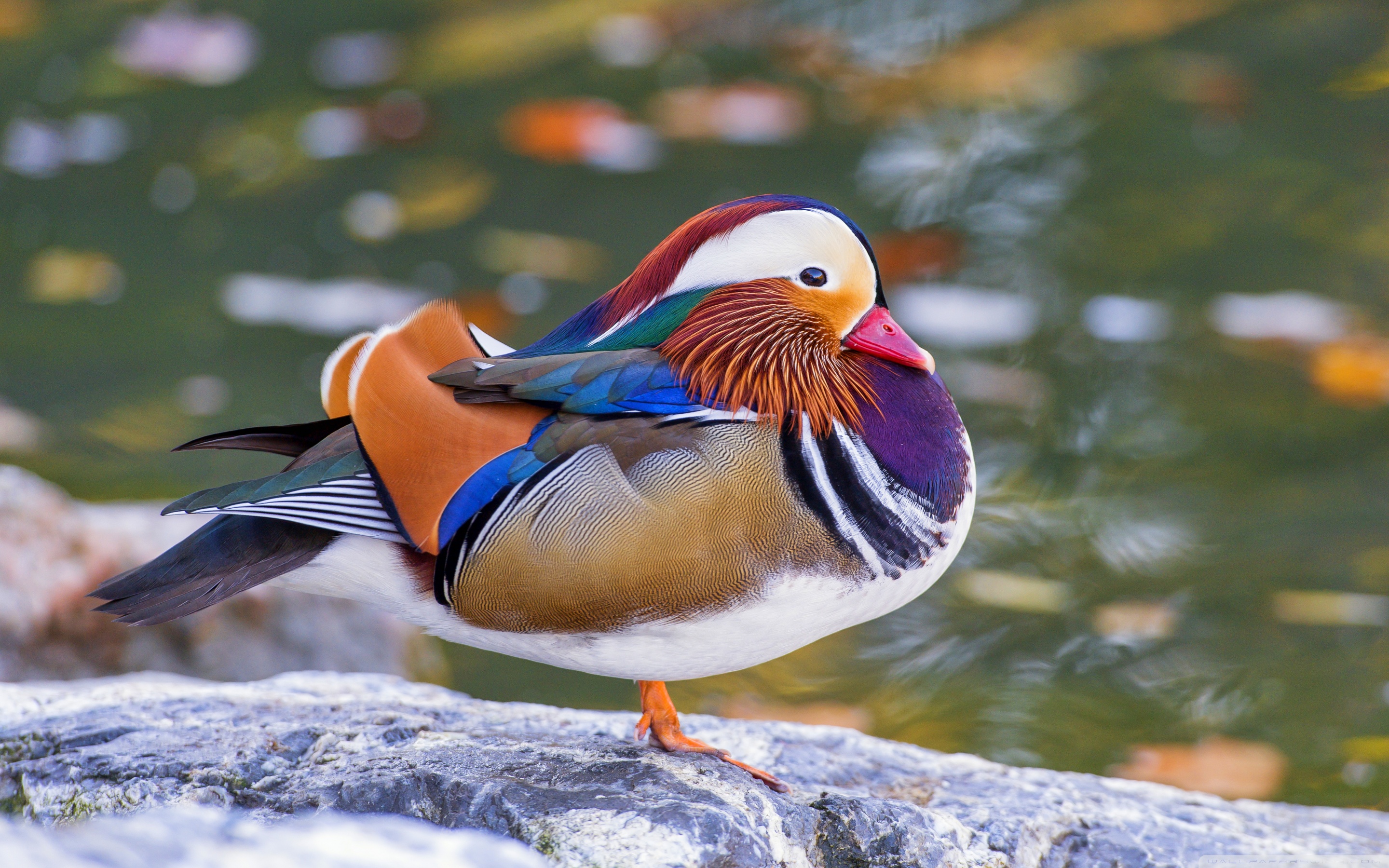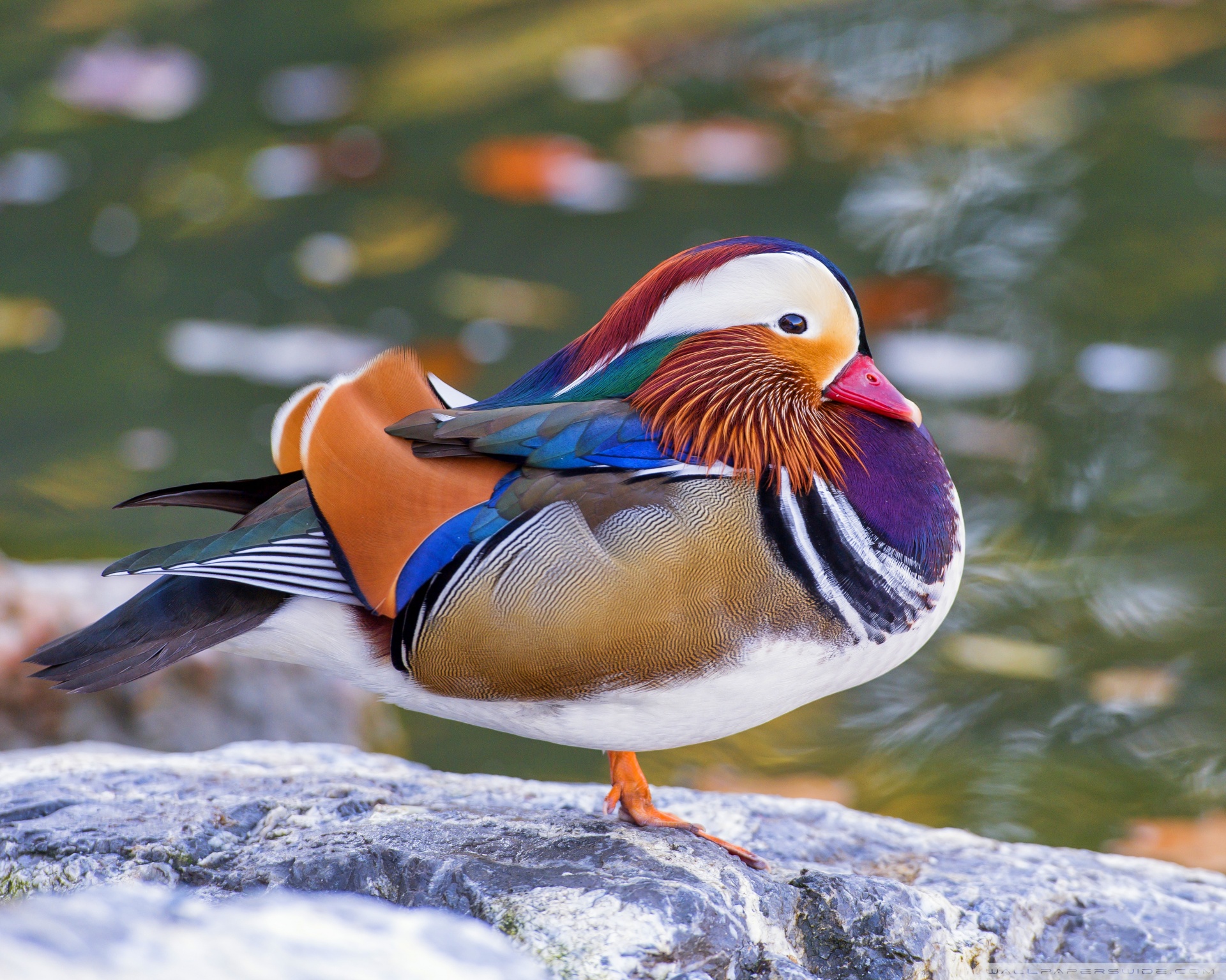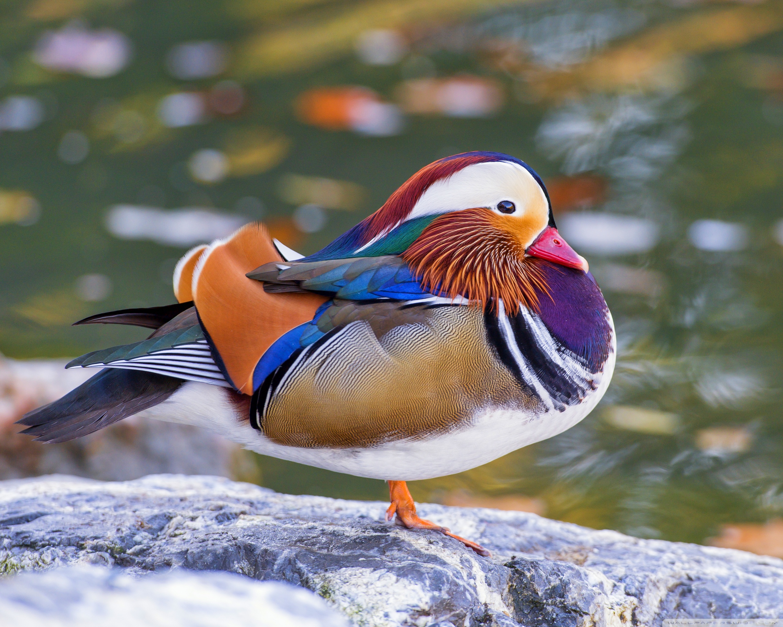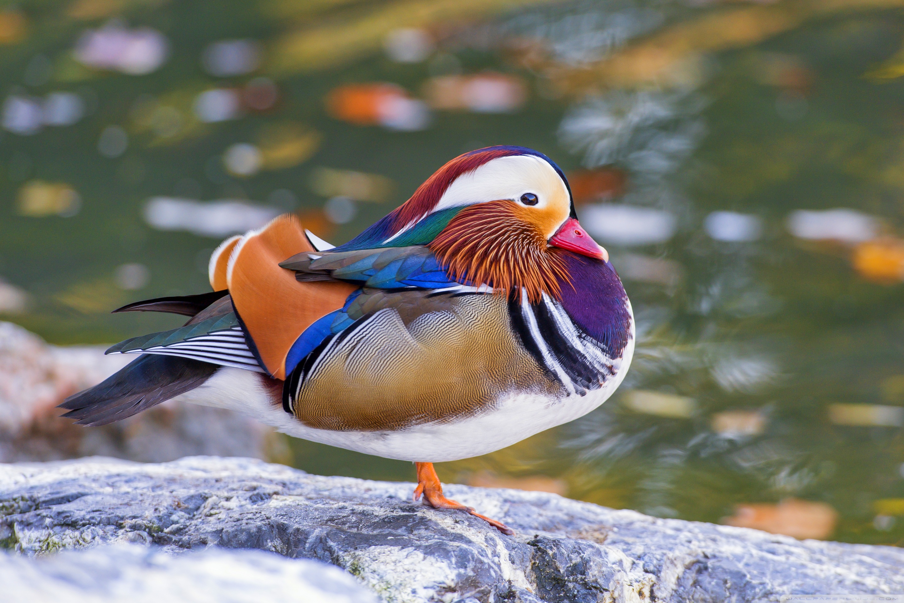 Download Mandarin Duck on the Rock 4K UHD Wallpaper